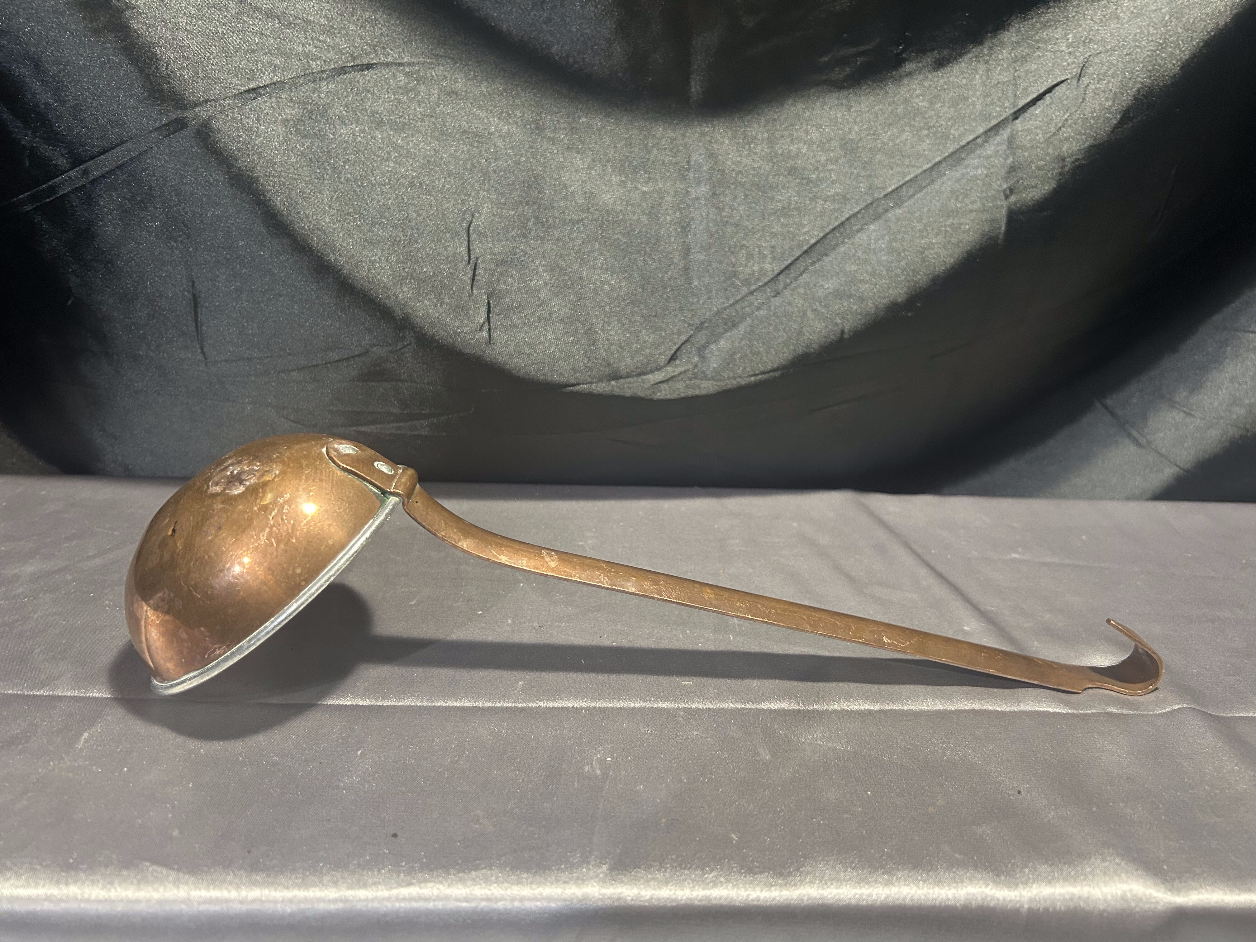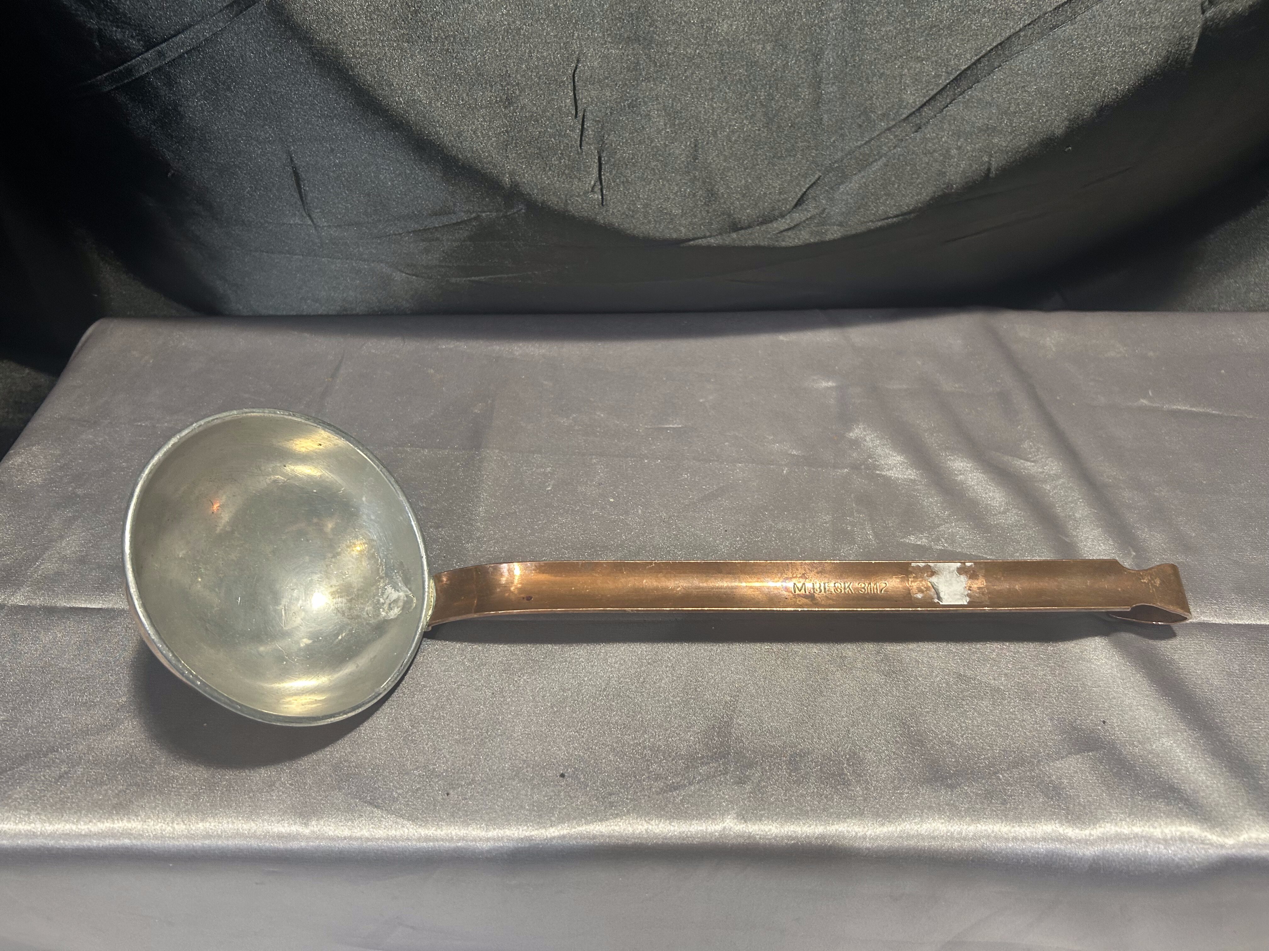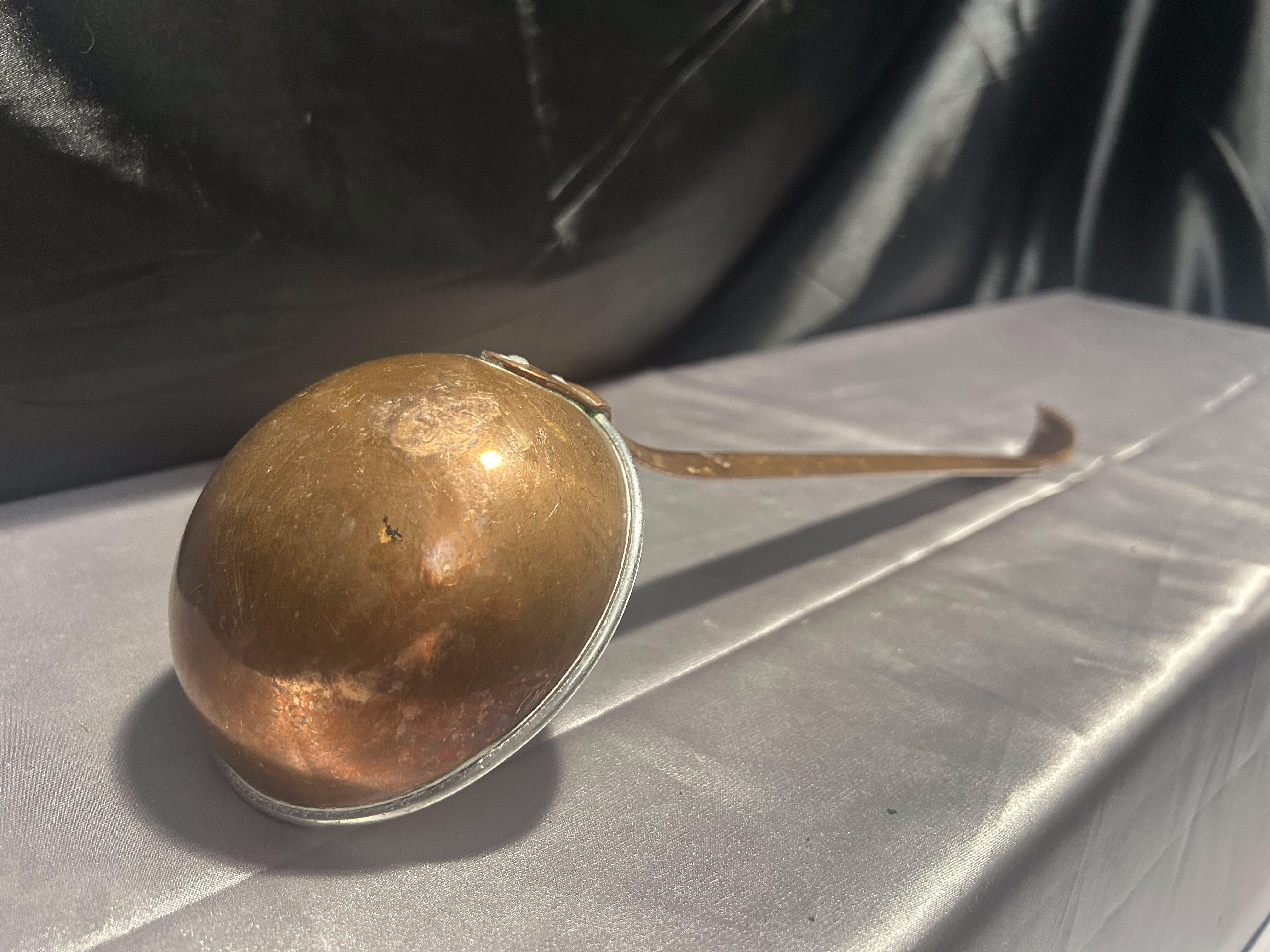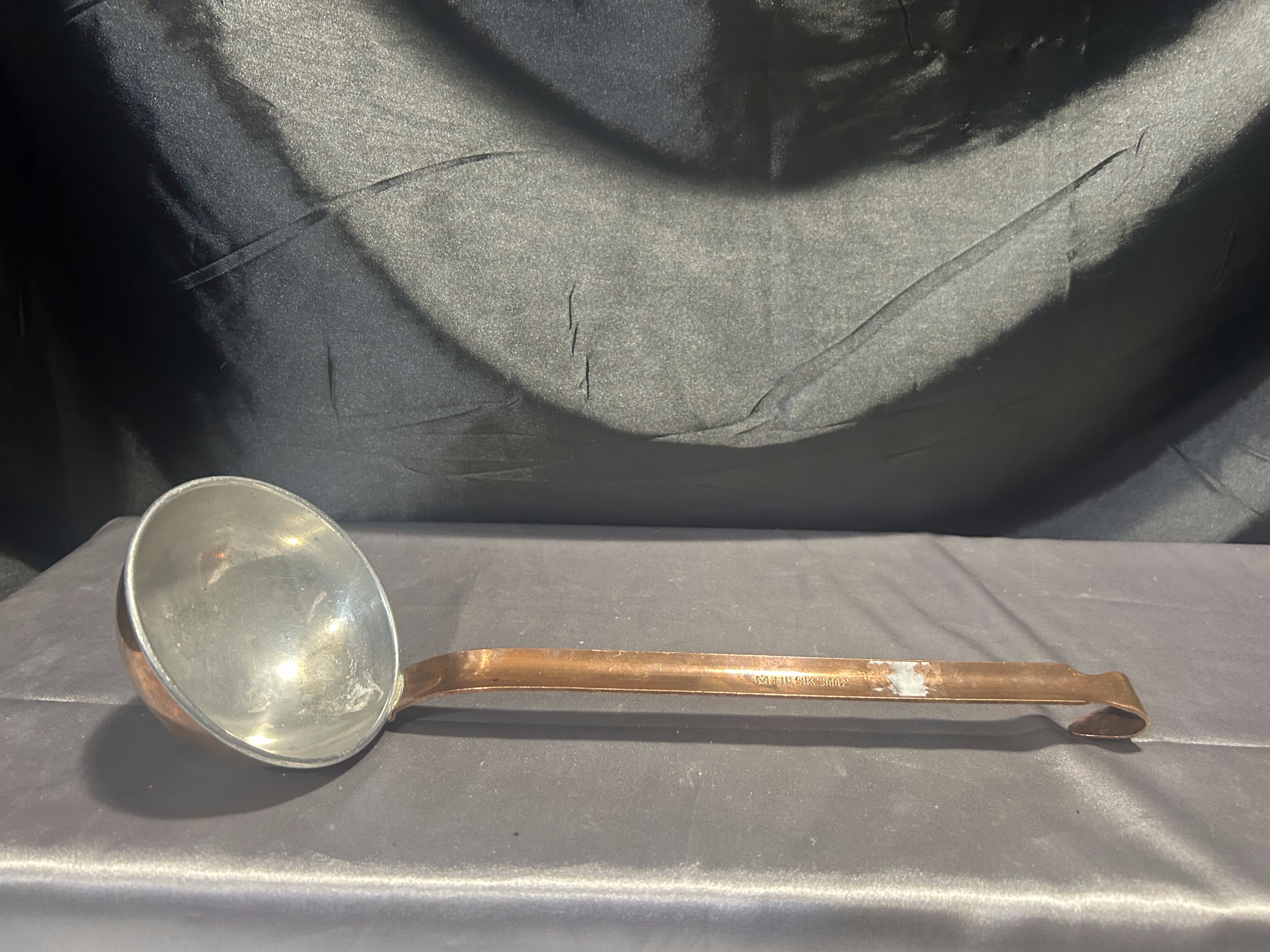 Miedziana łyżka cedzakowa – Kuta rączka – Styl rustykalny