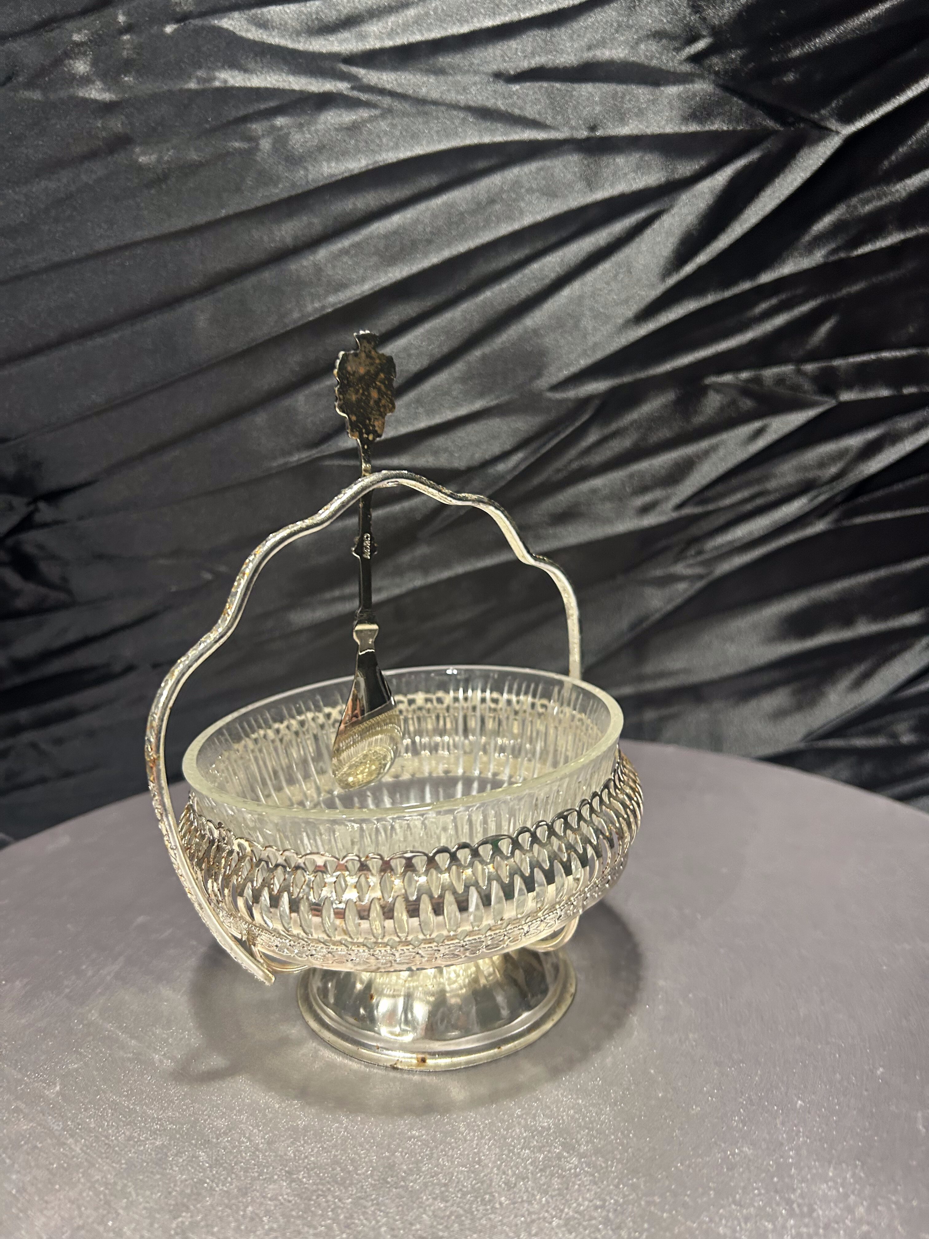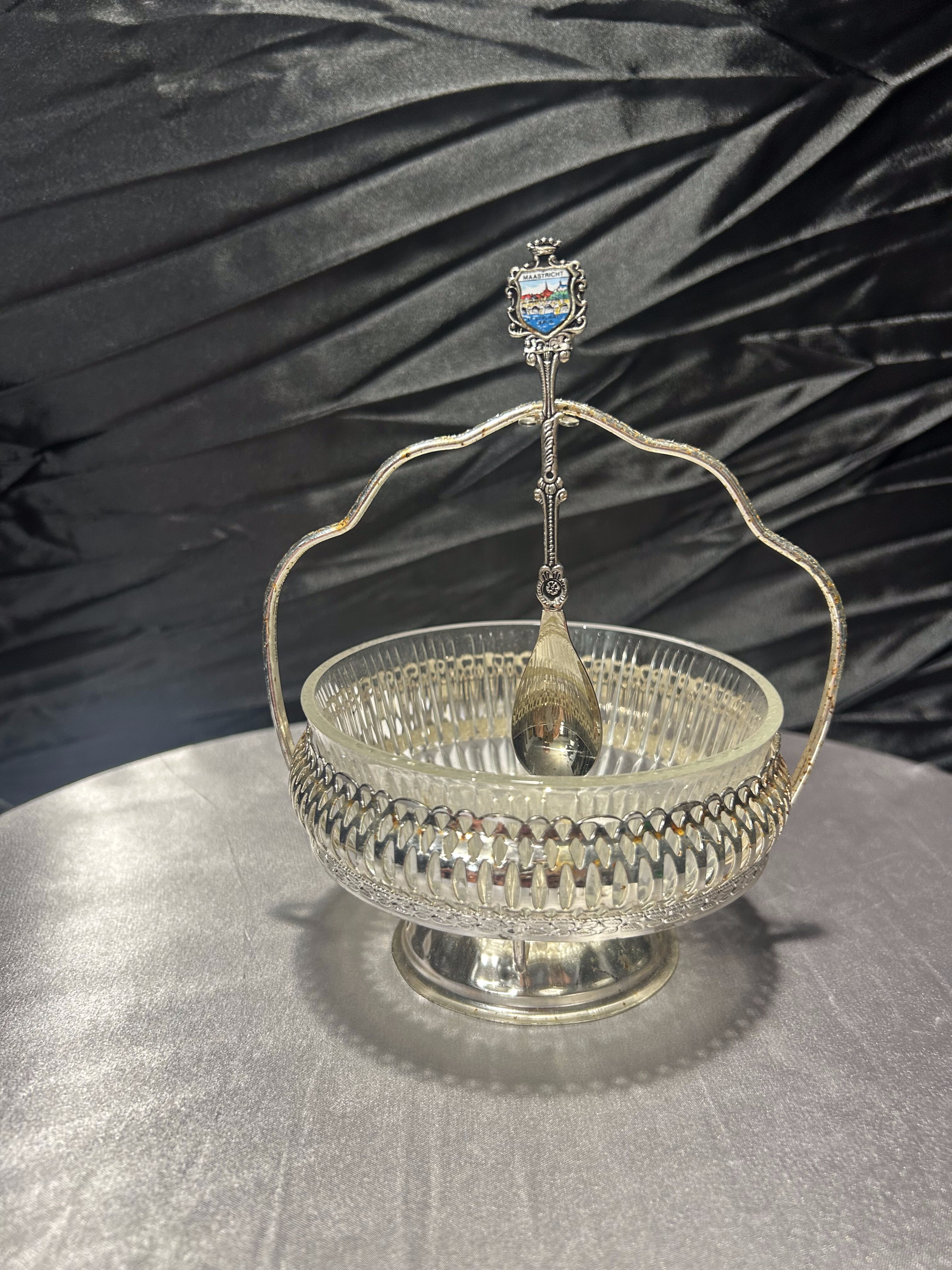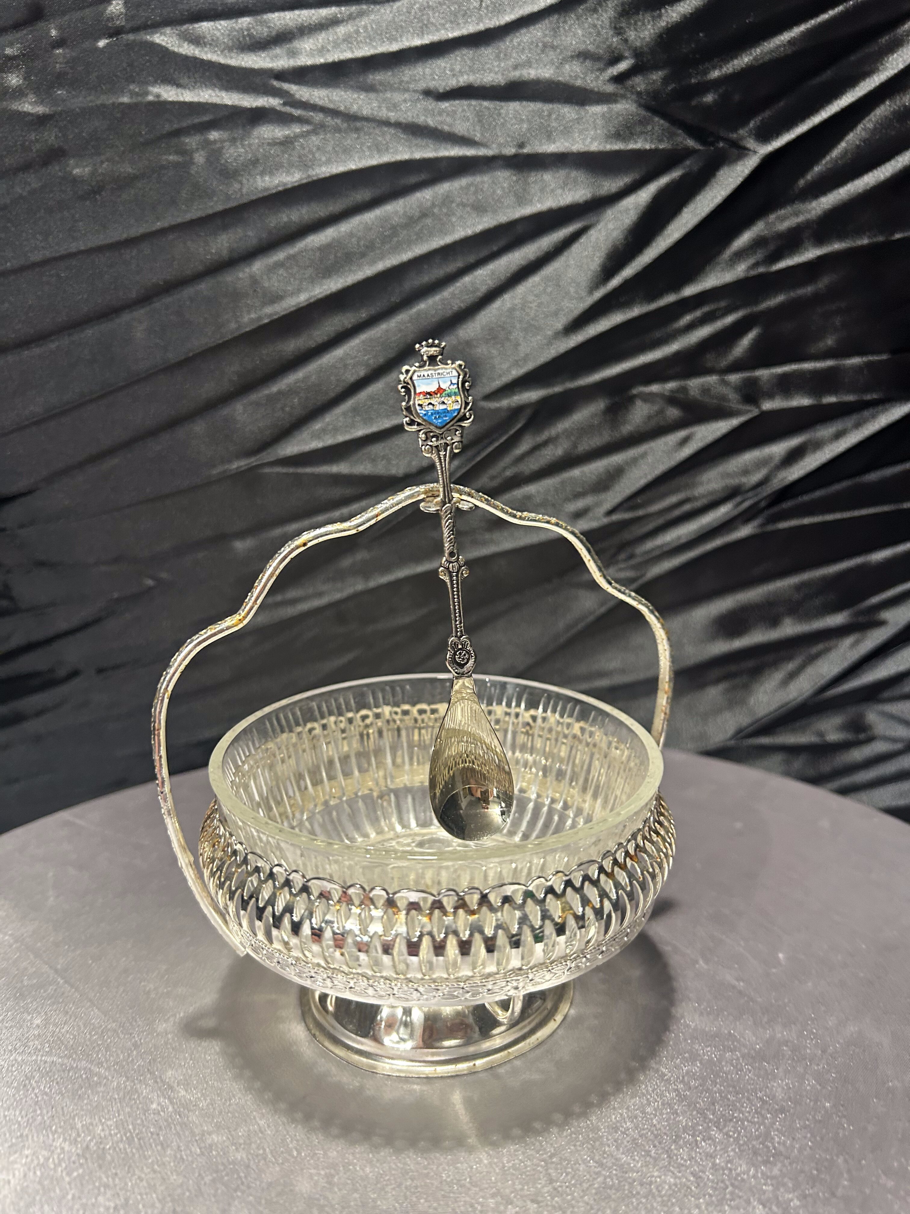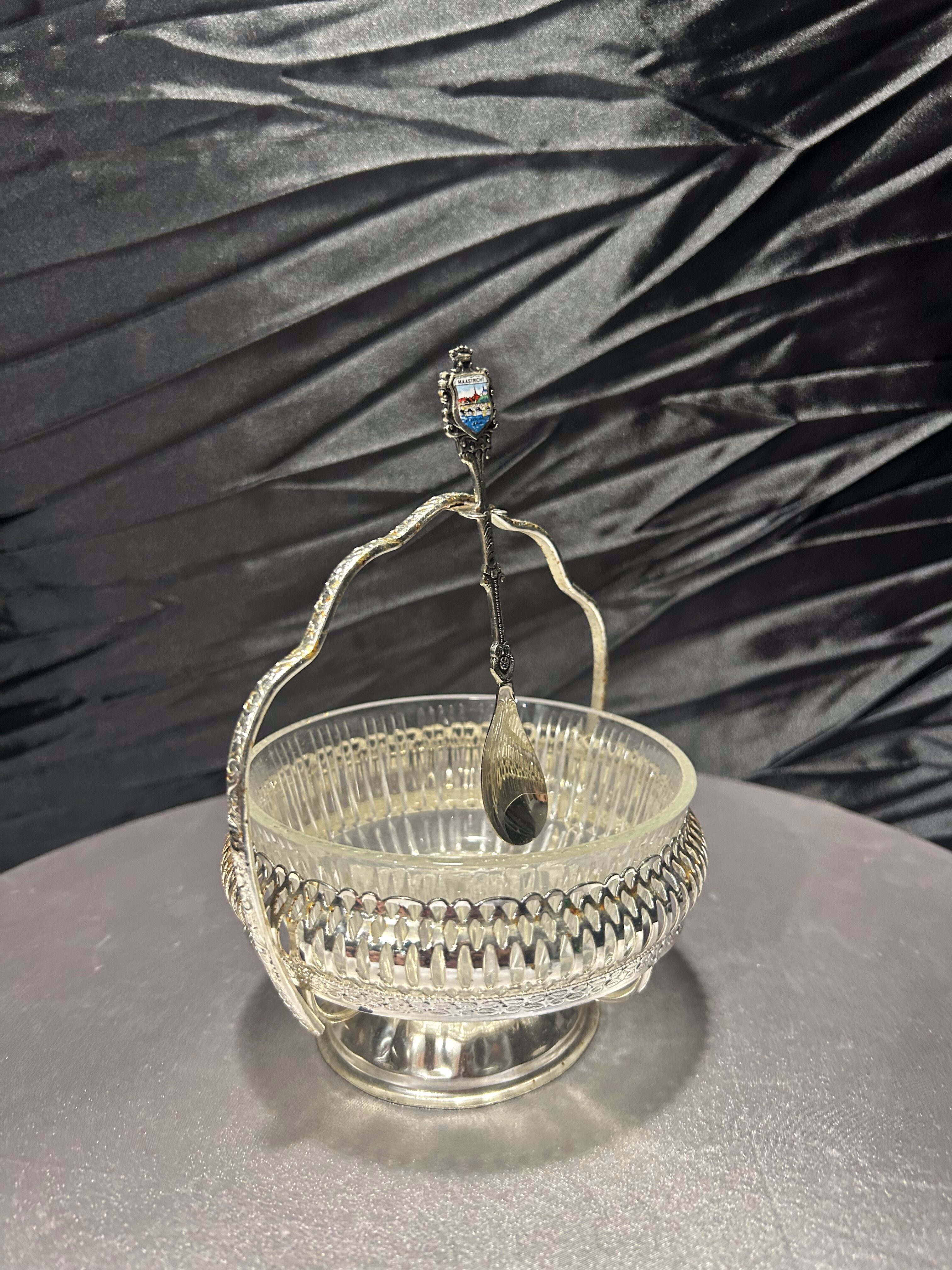 Cukiernica kryształowa ze srebrną oprawą – z łyżeczką do zawieszenia