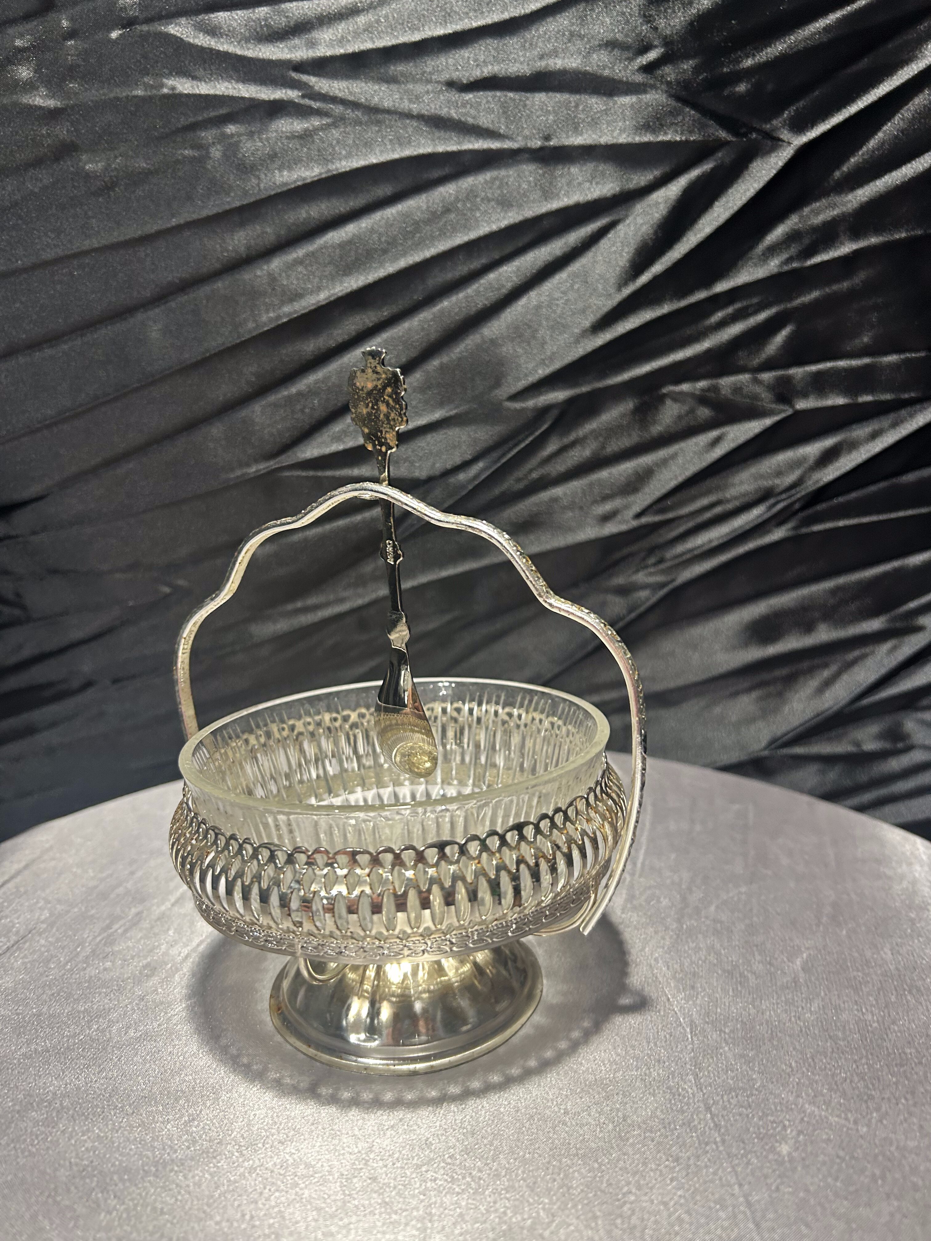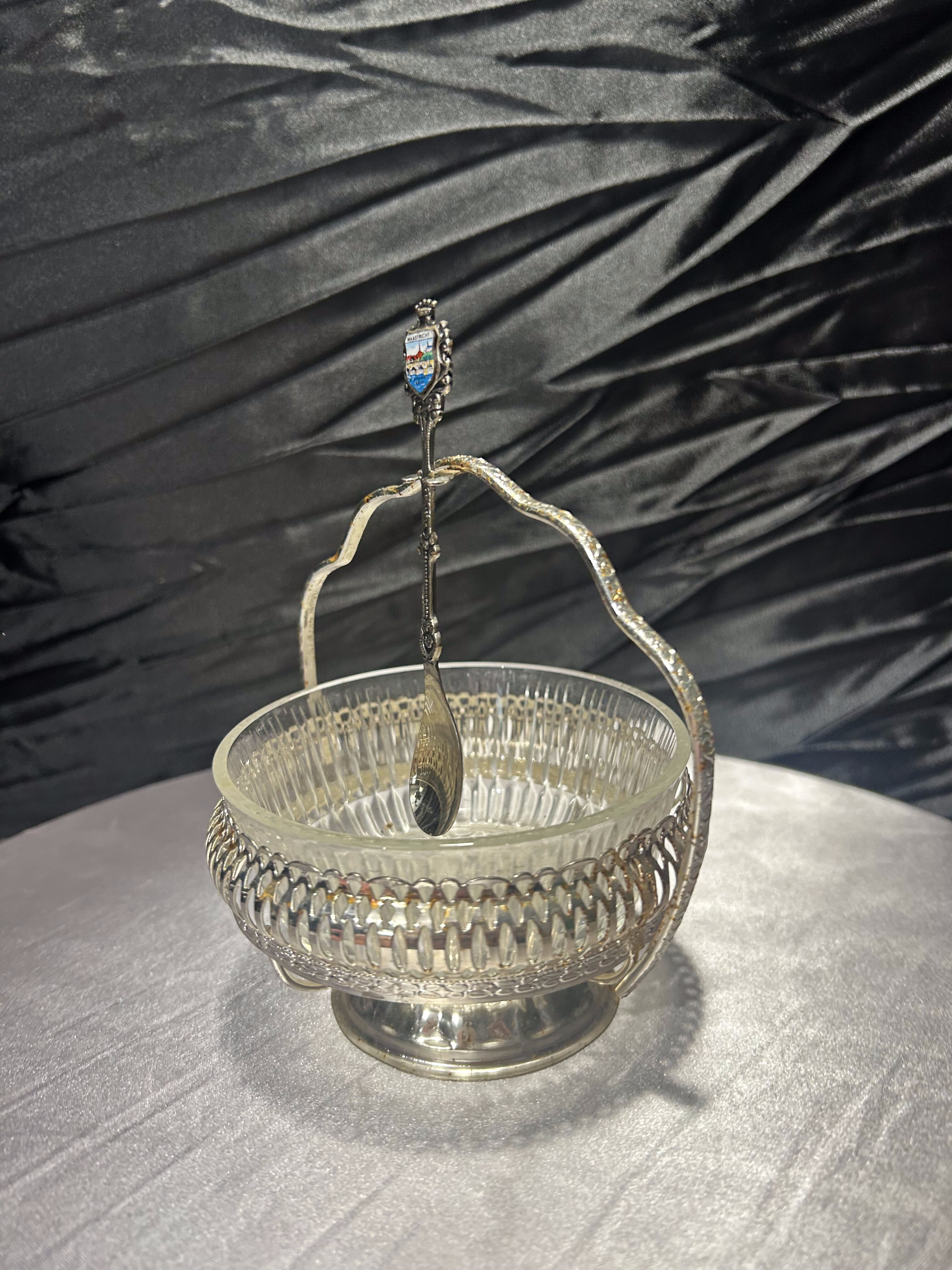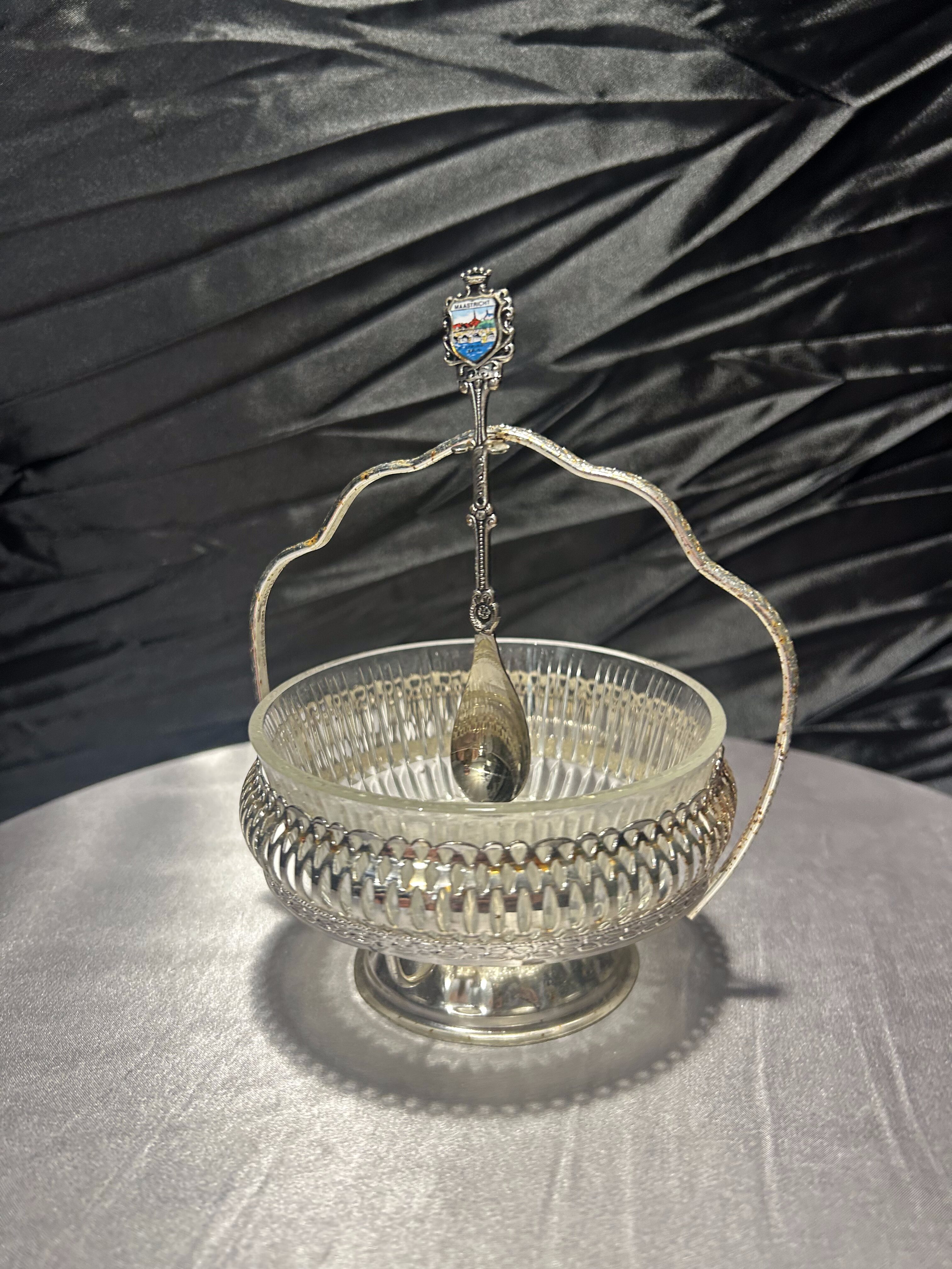Cukiernica kryształowa ze srebrną oprawą – z łyżeczką do zawieszenia