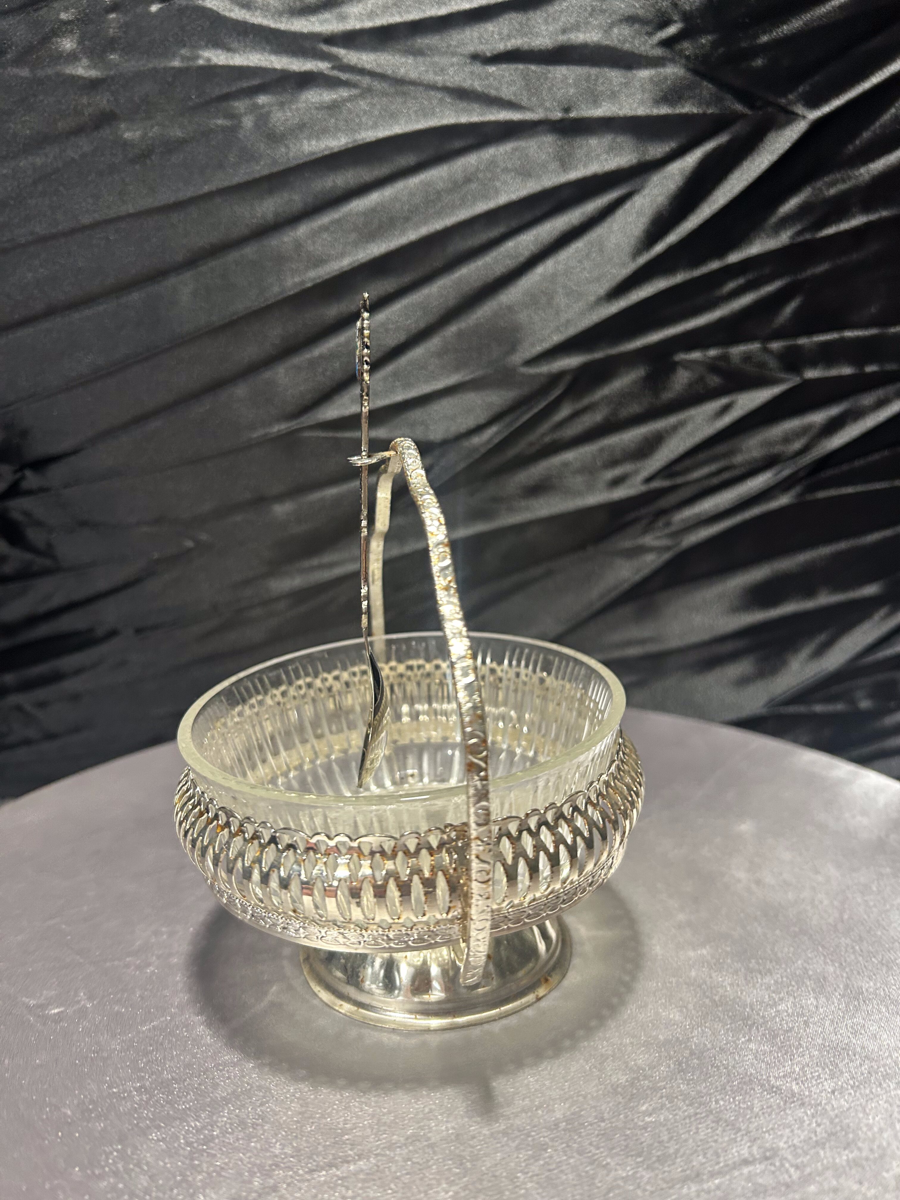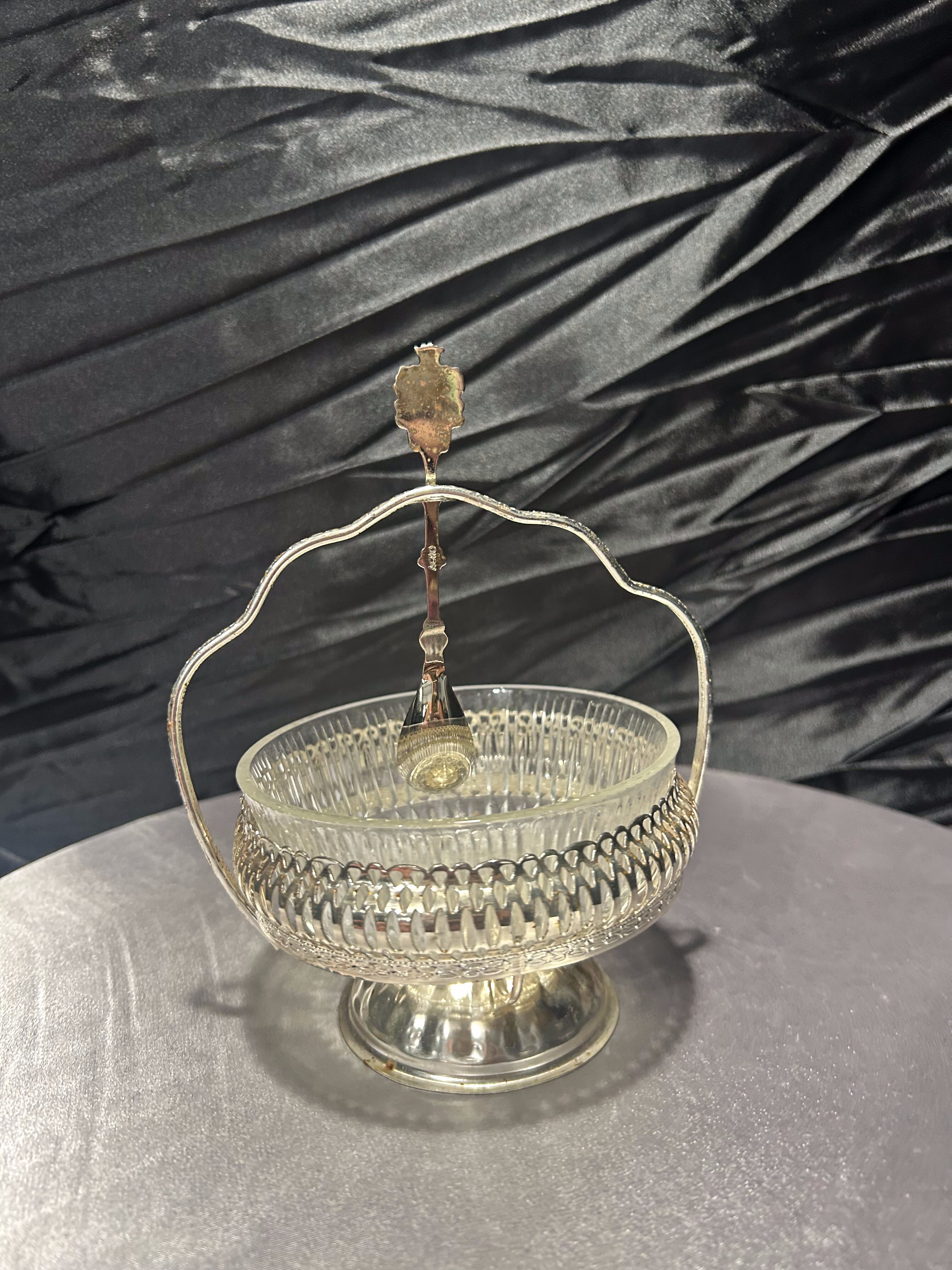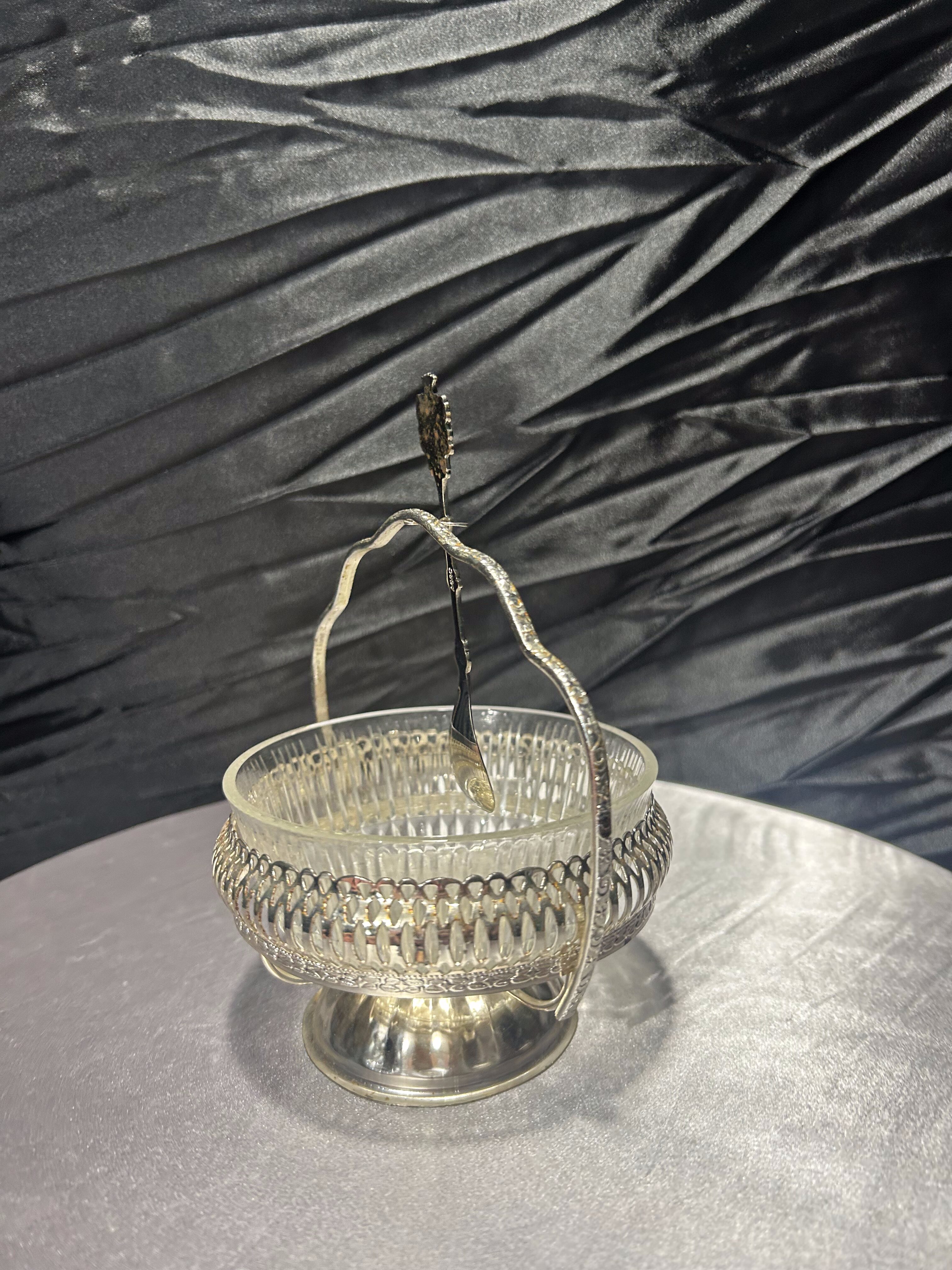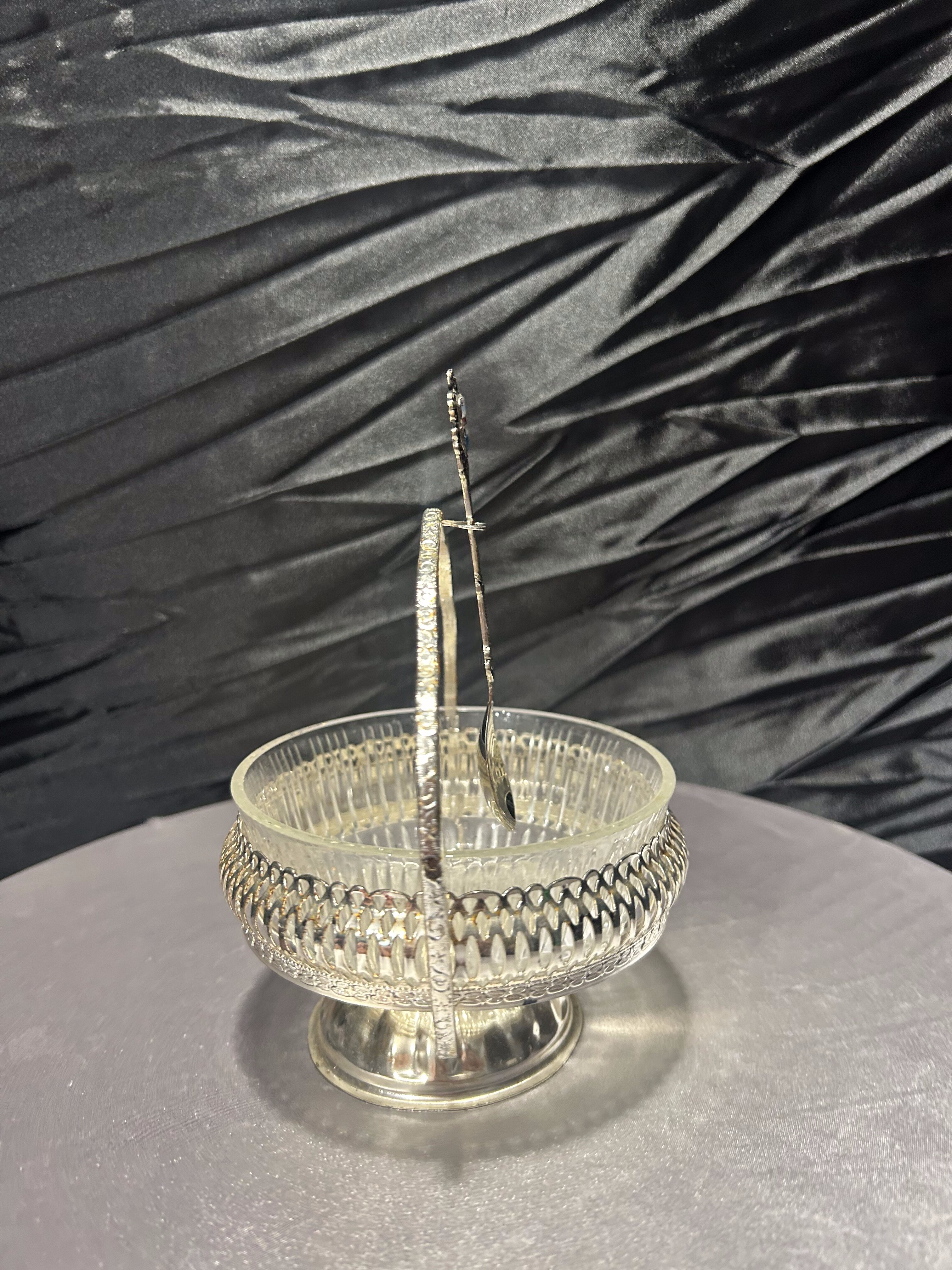 Cukiernica kryształowa ze srebrną oprawą – z łyżeczką do zawieszenia