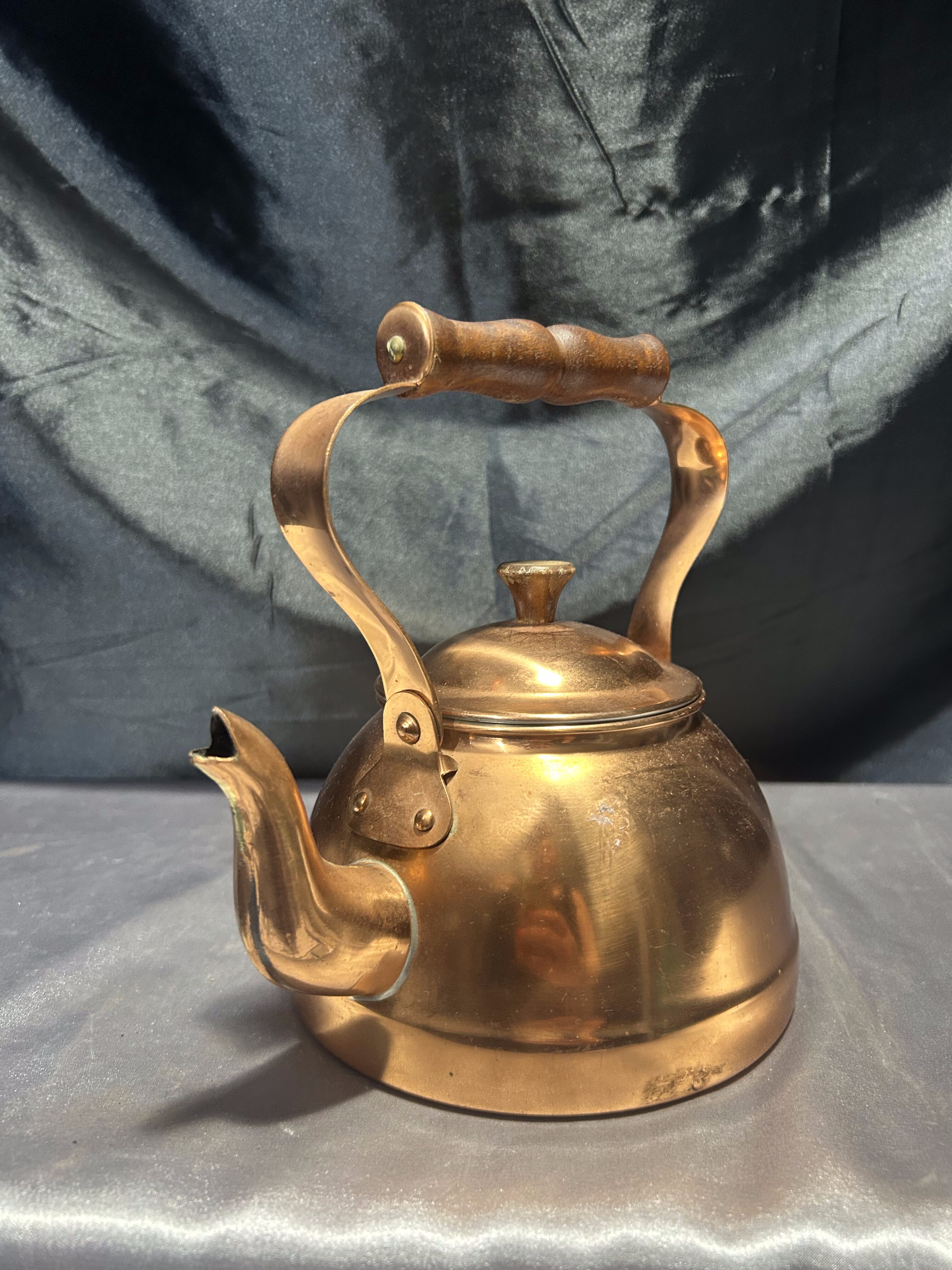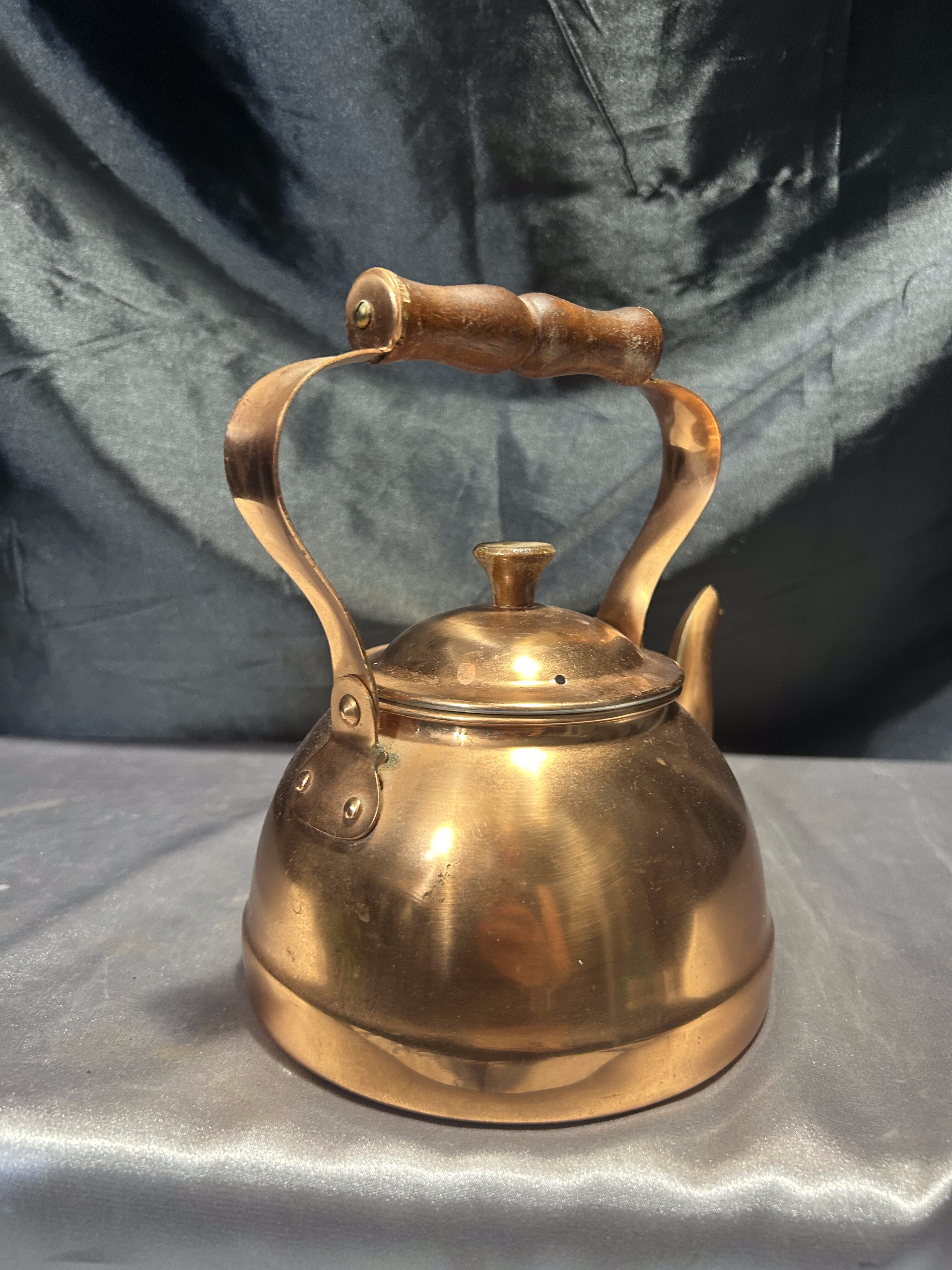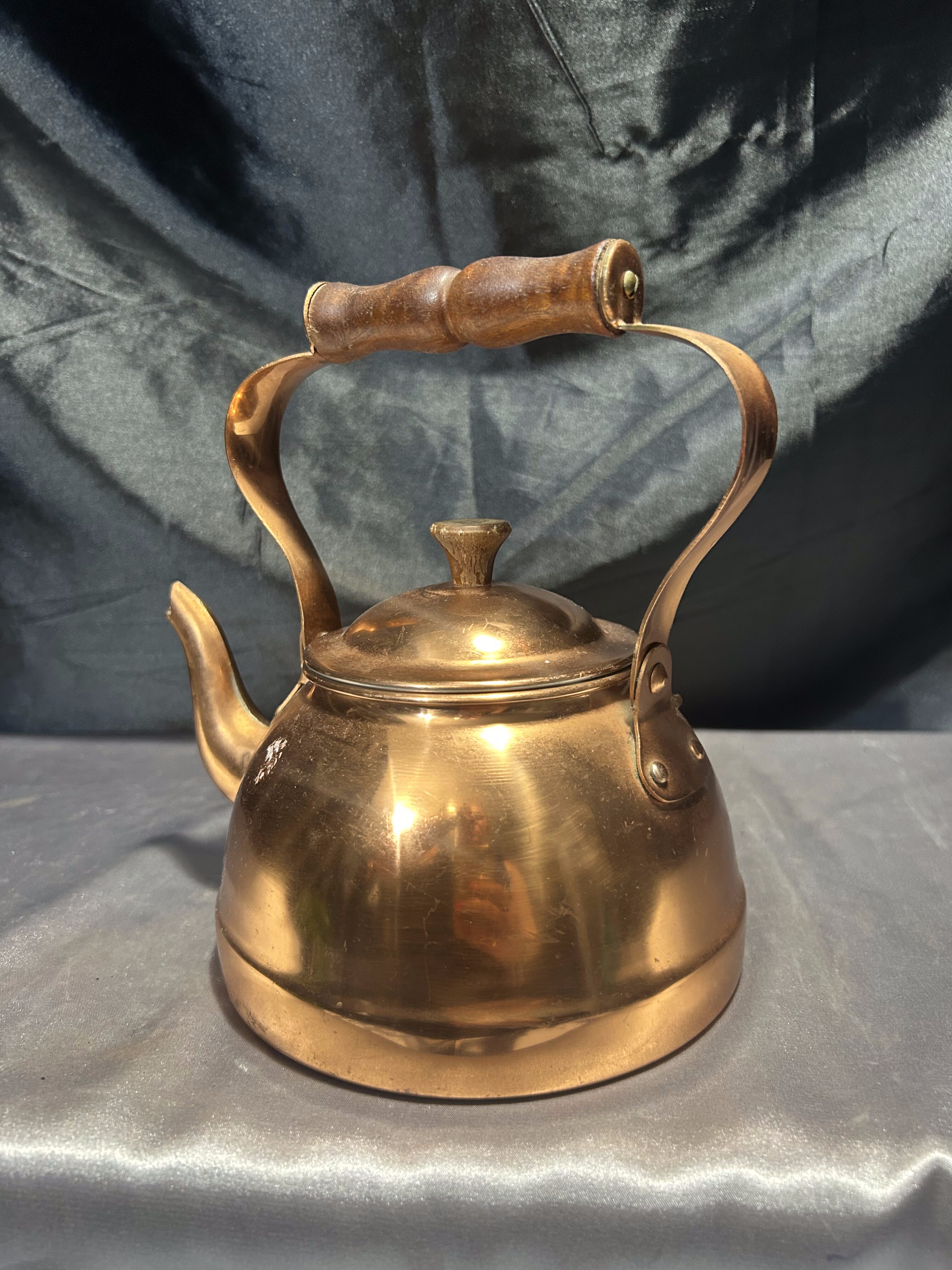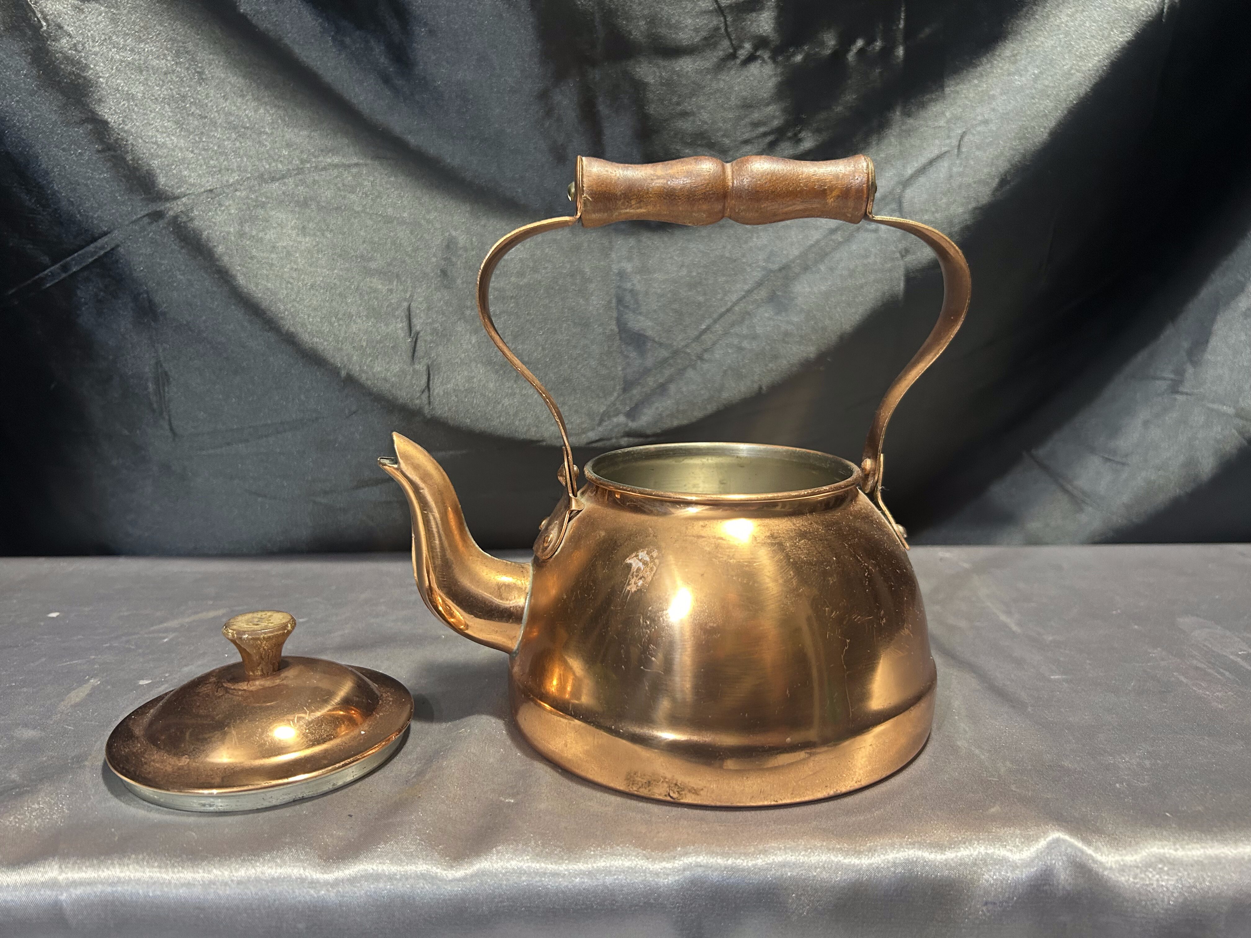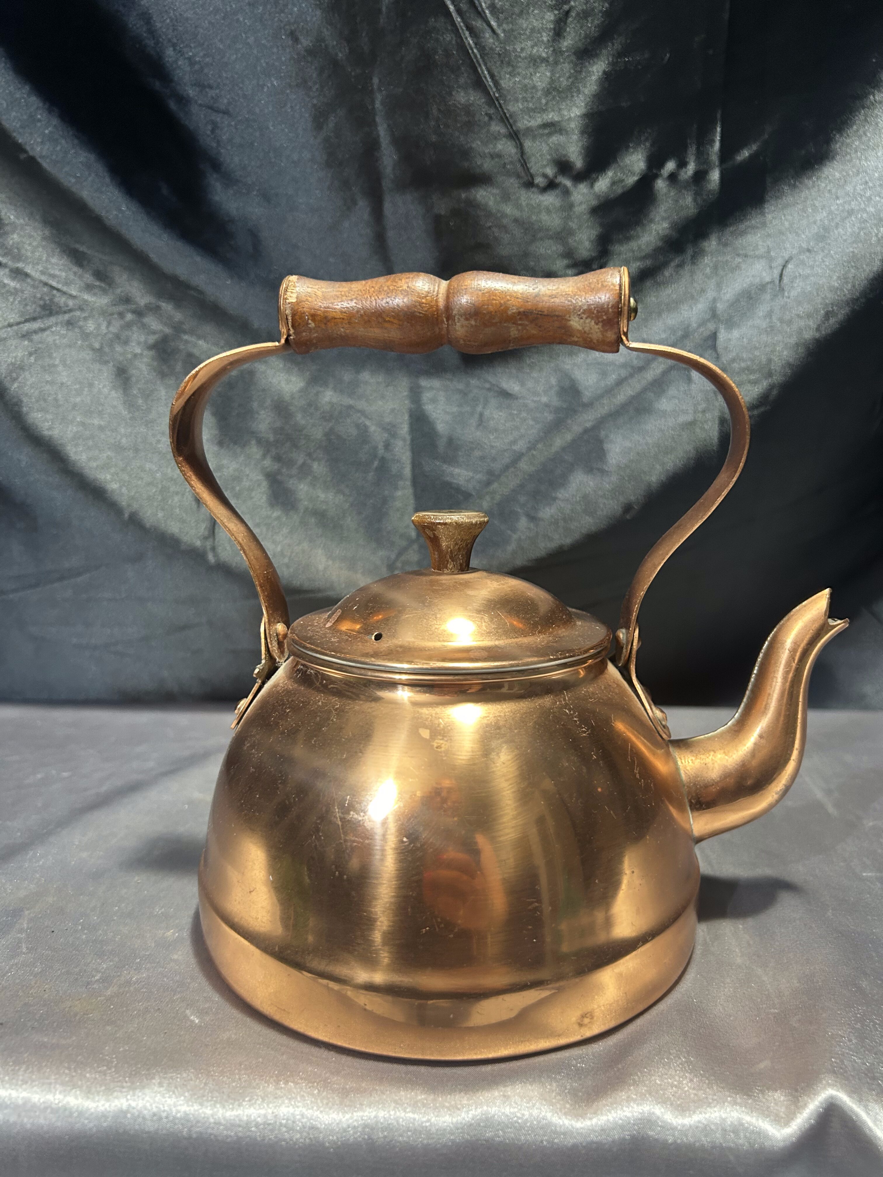 Czajnik miedziany – Drewniana rączka – Styl klasyczny, wnętrze jak nowe