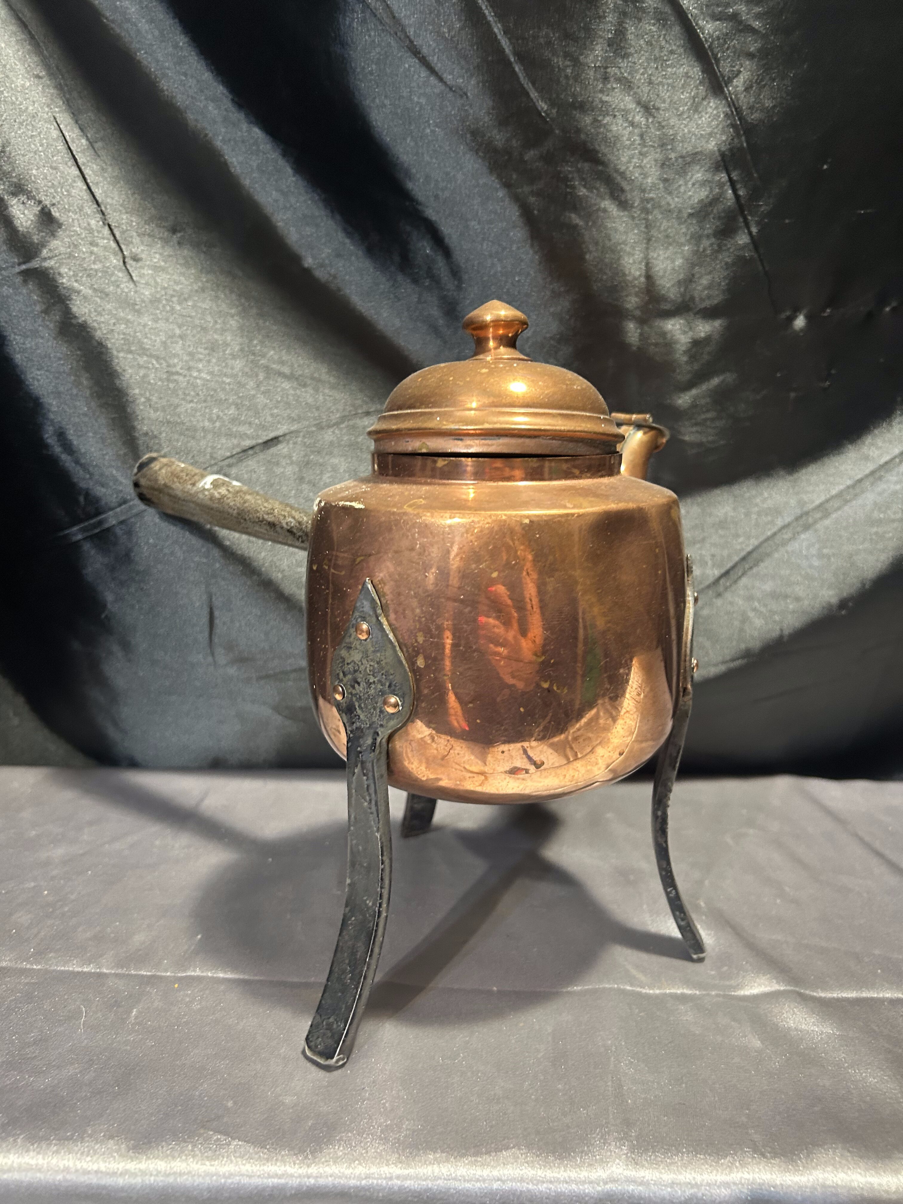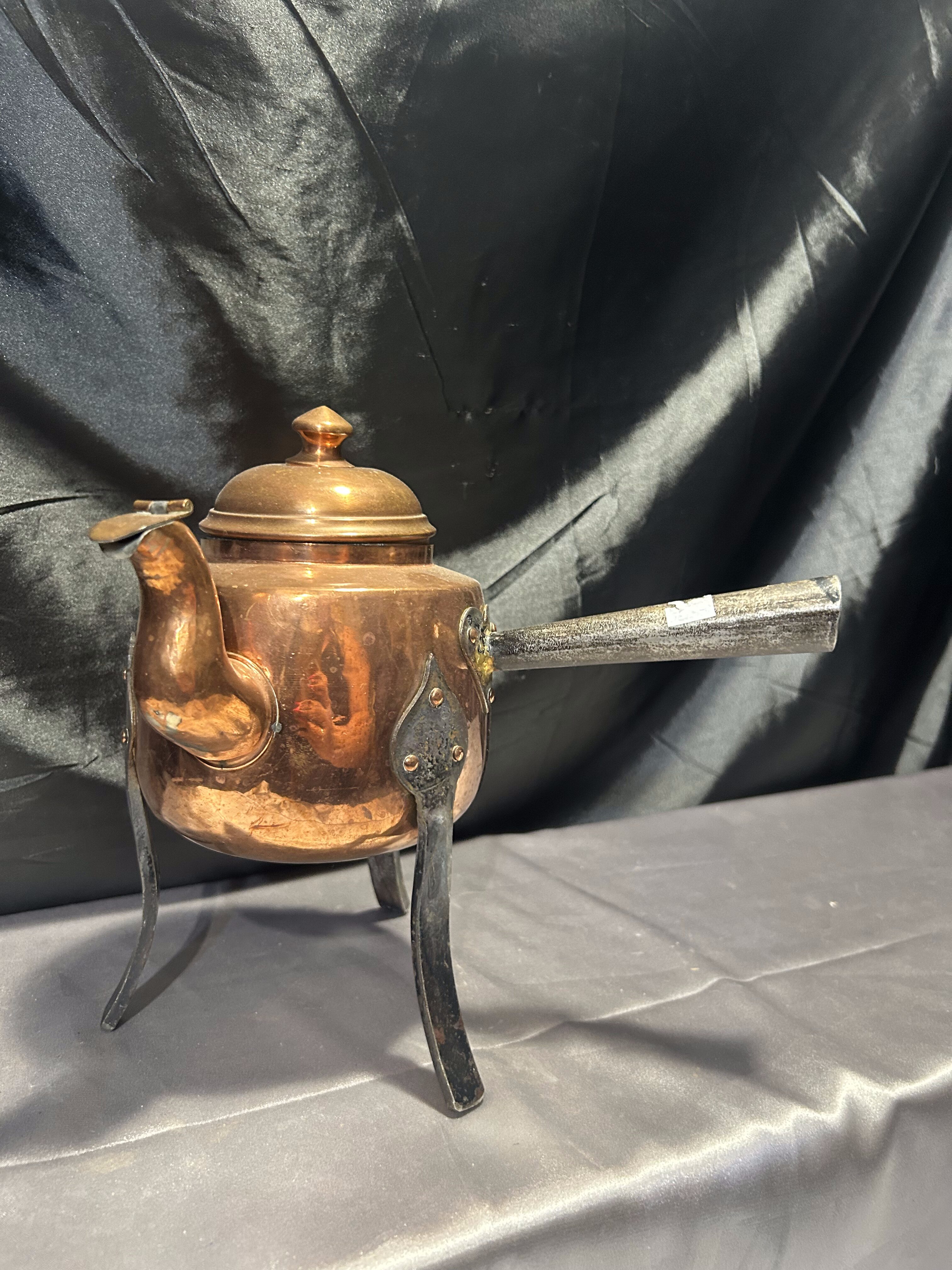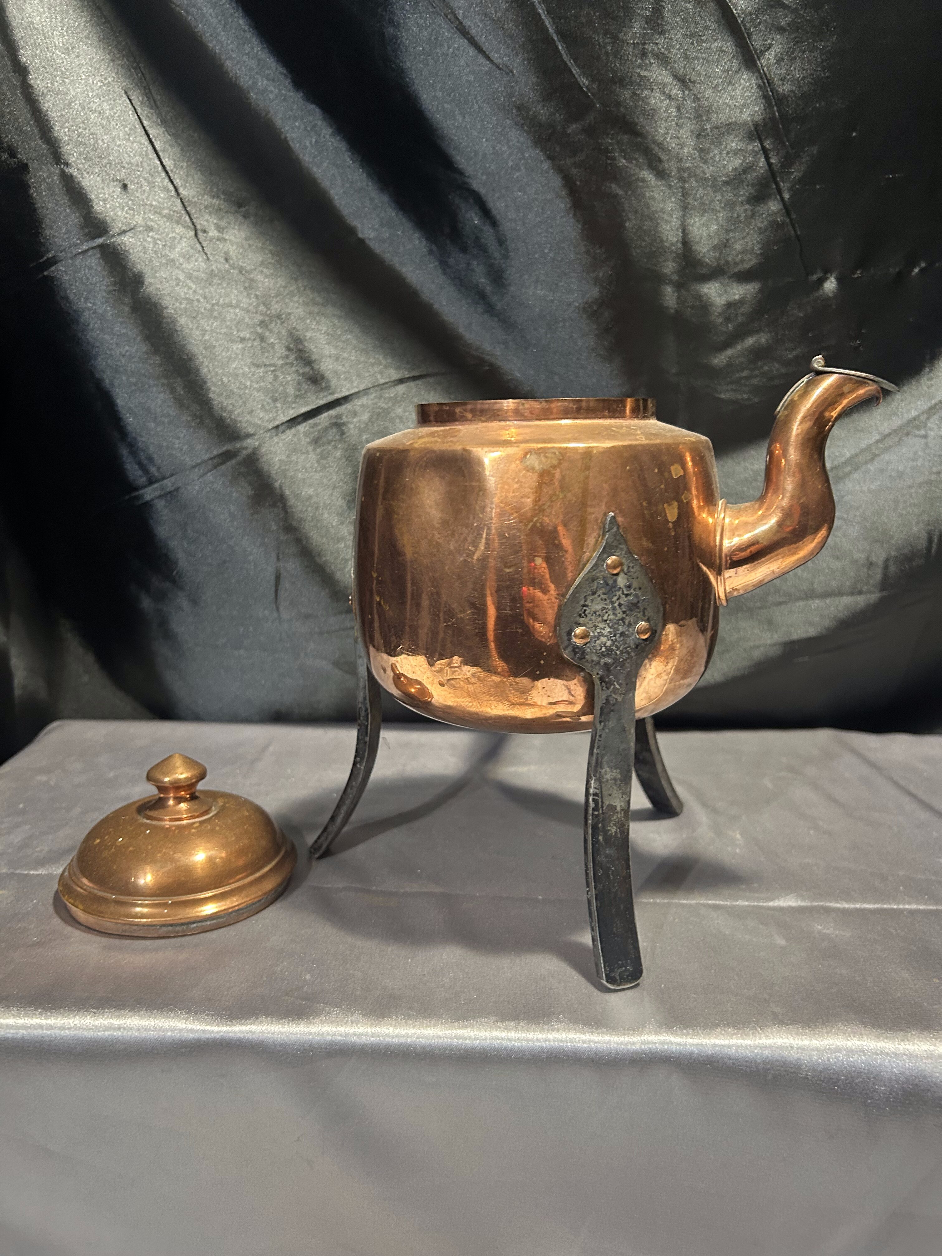 Czajnik miedziany na trzech nogach – Baniasty kształt – Stylowy imbryk vintage