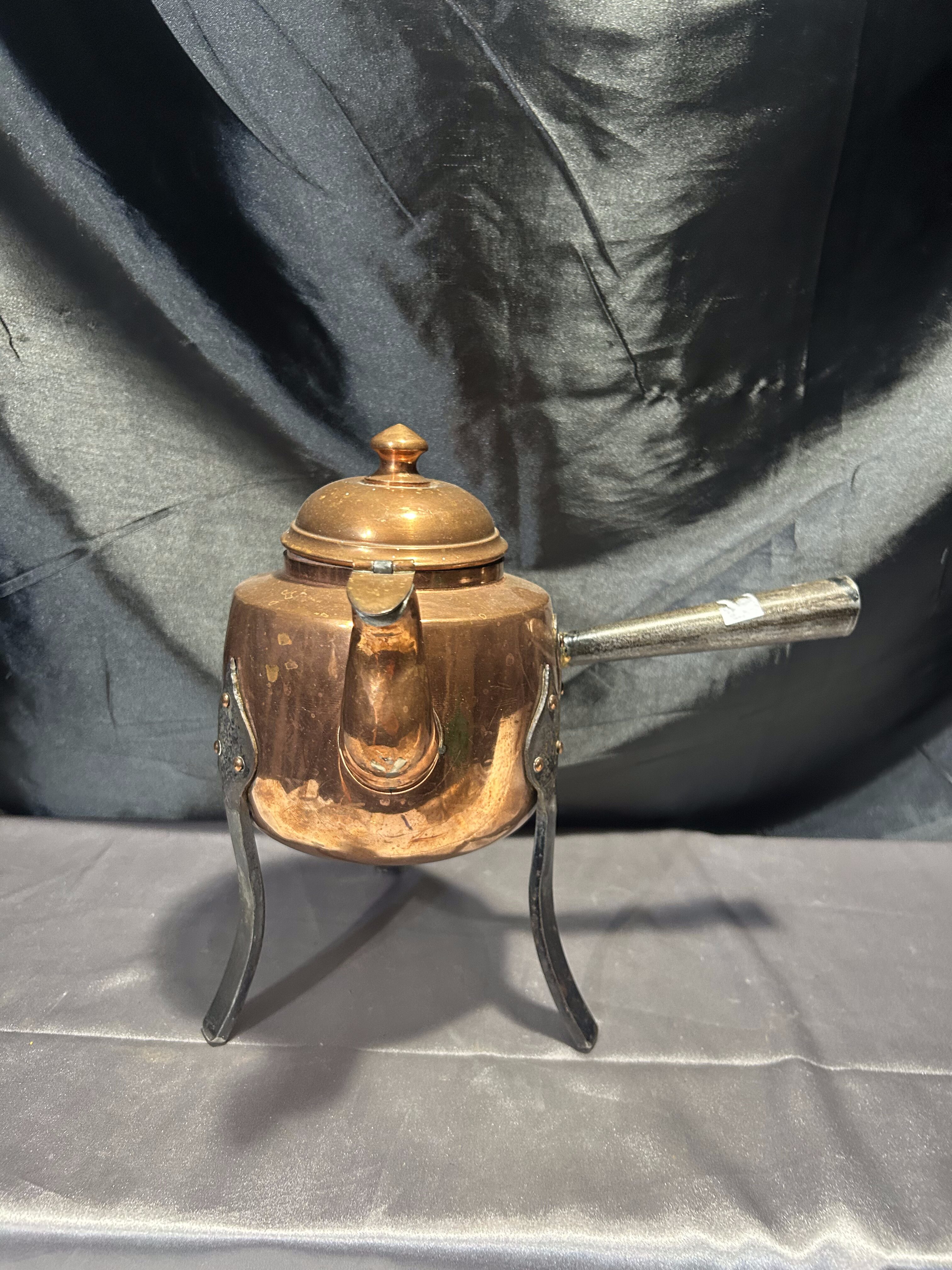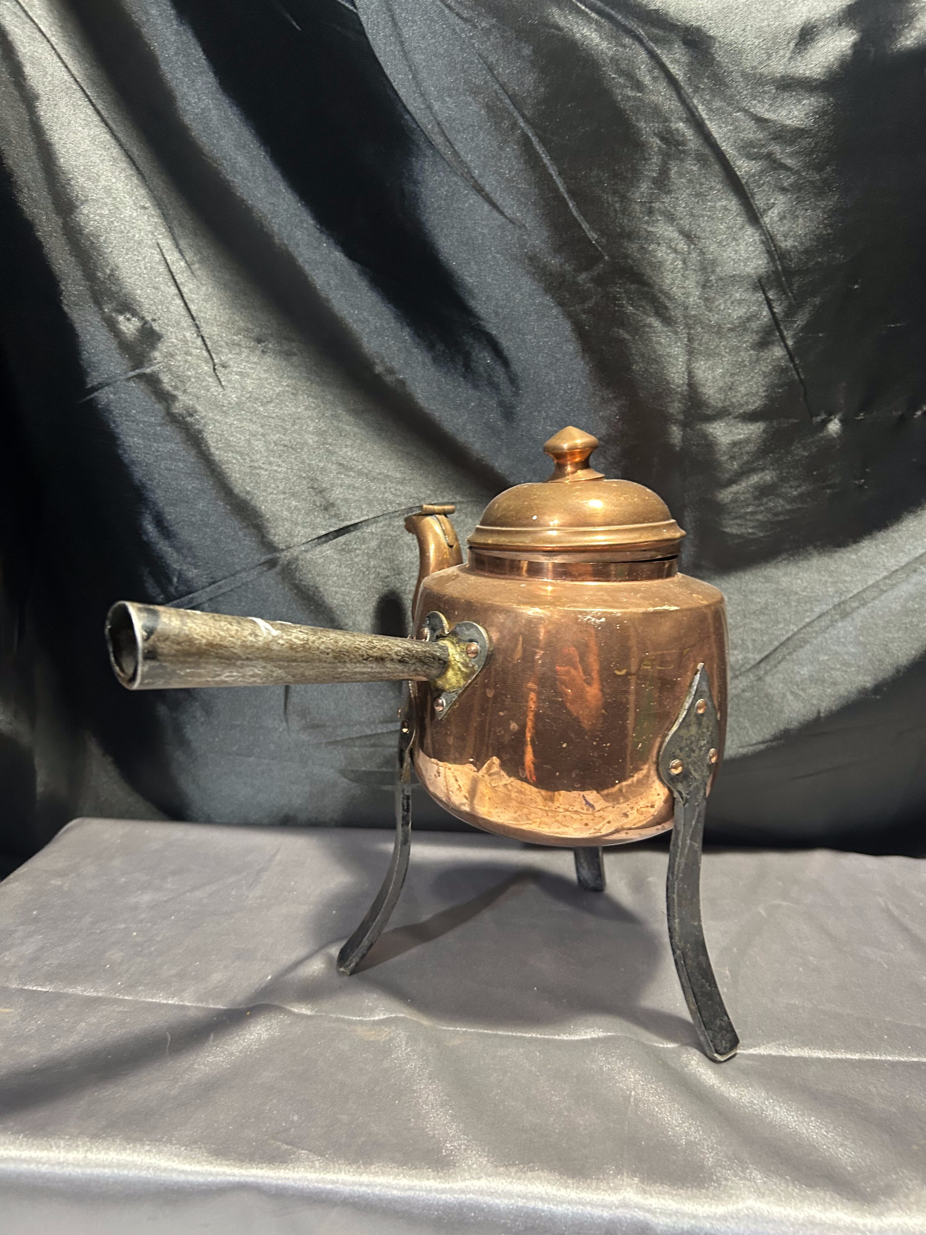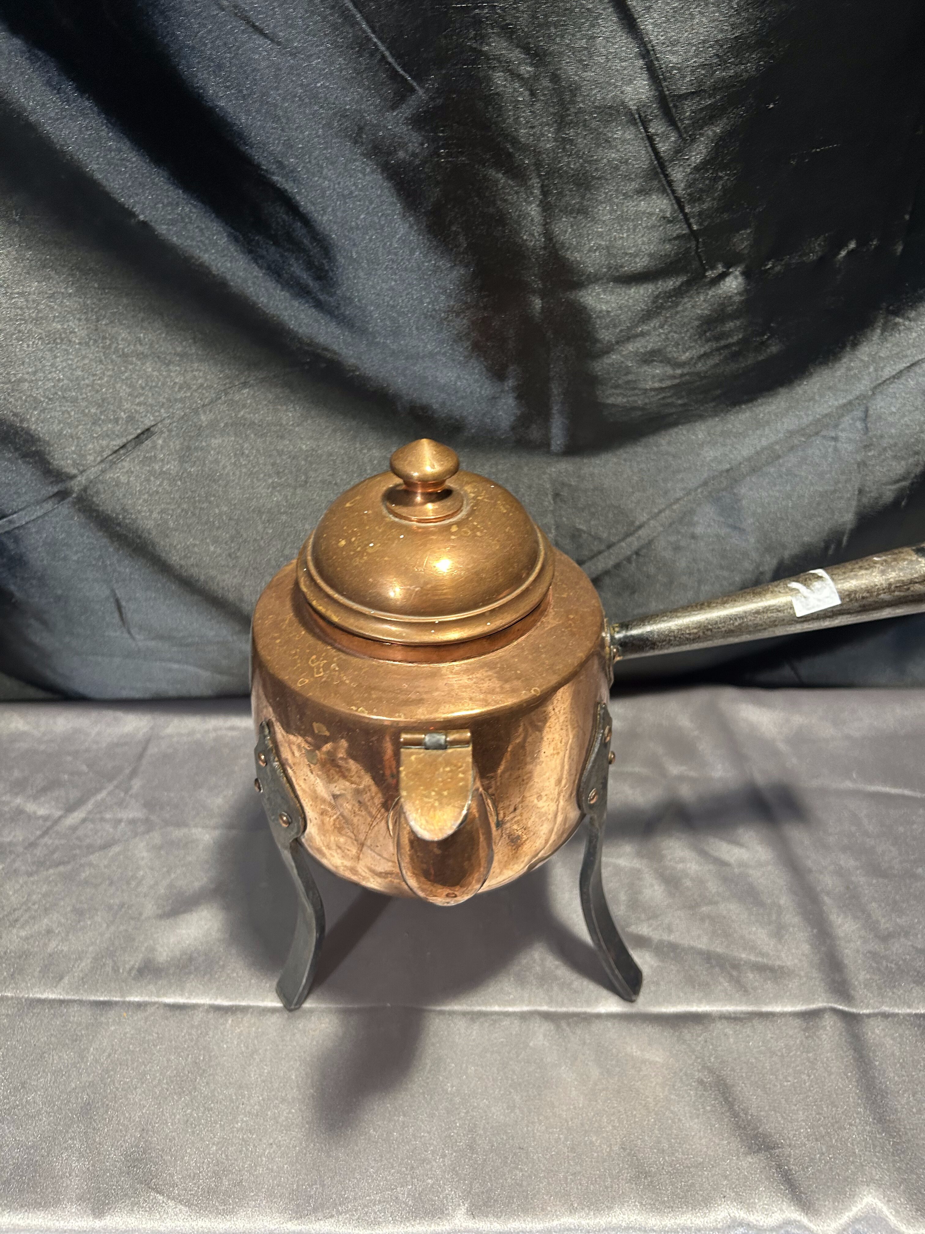 Czajnik miedziany na trzech nogach – Baniasty kształt – Stylowy imbryk vintage