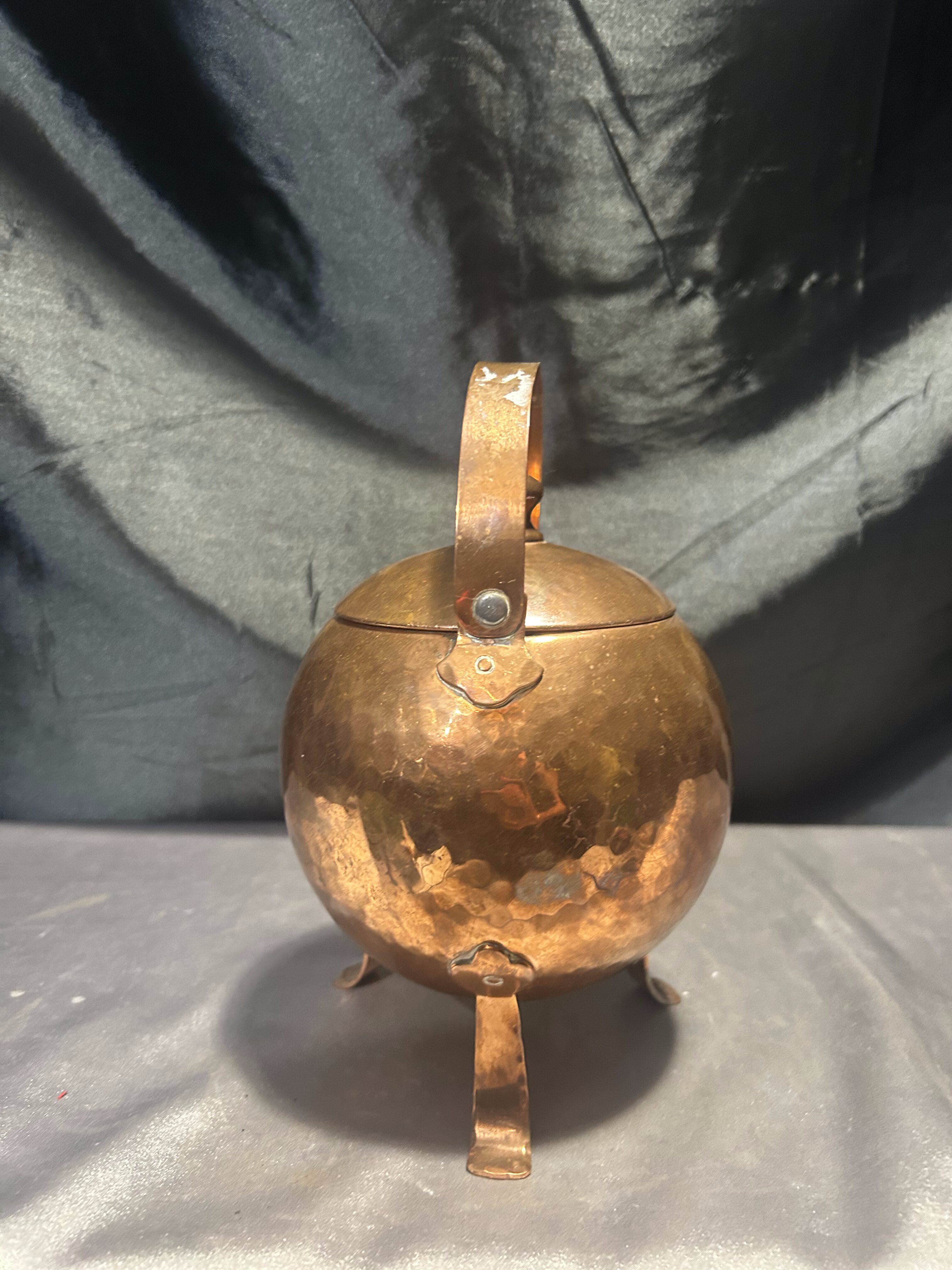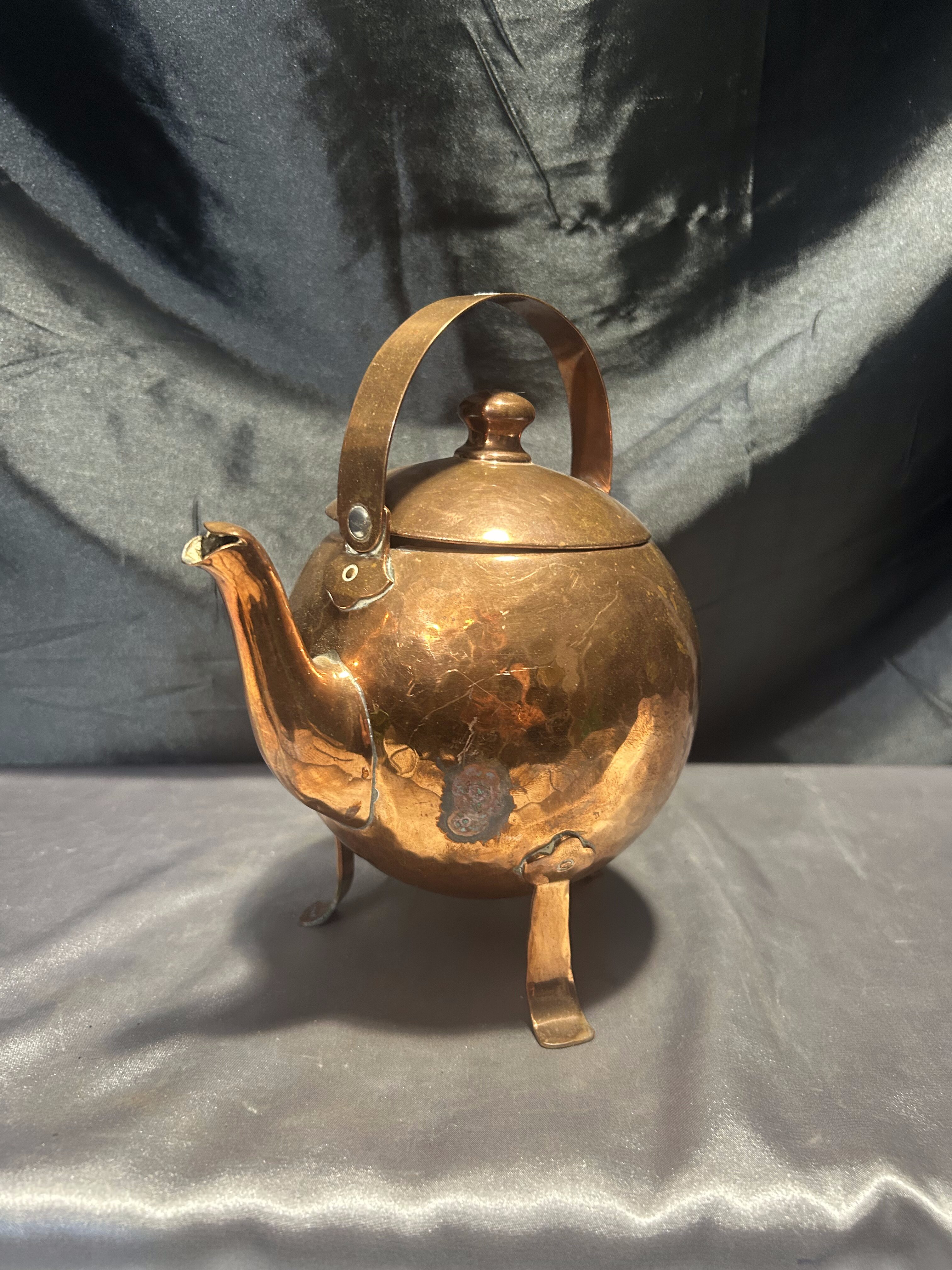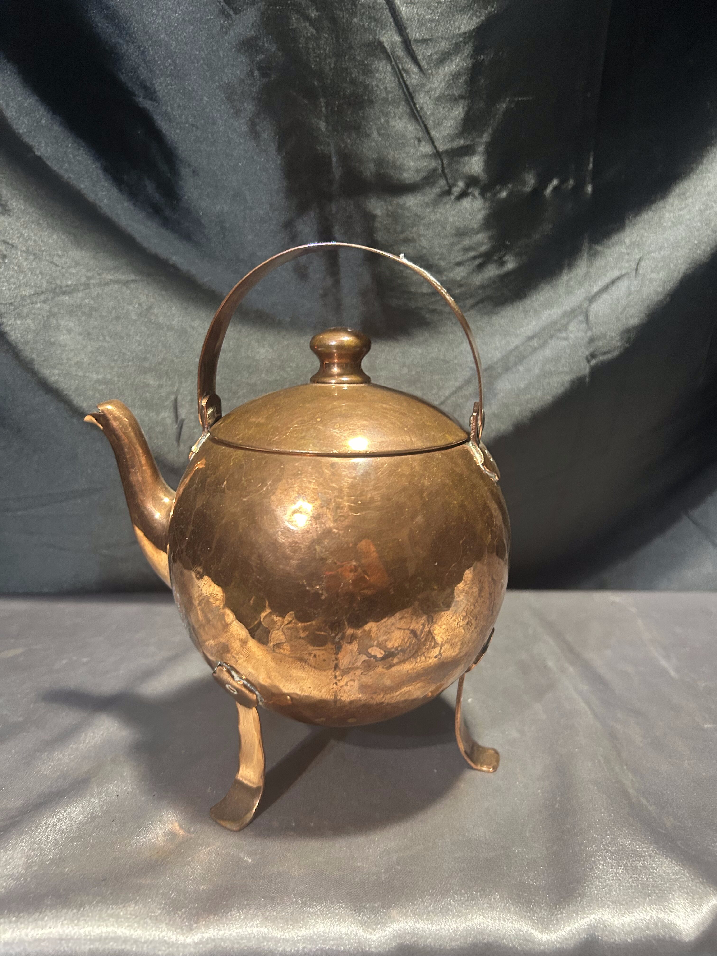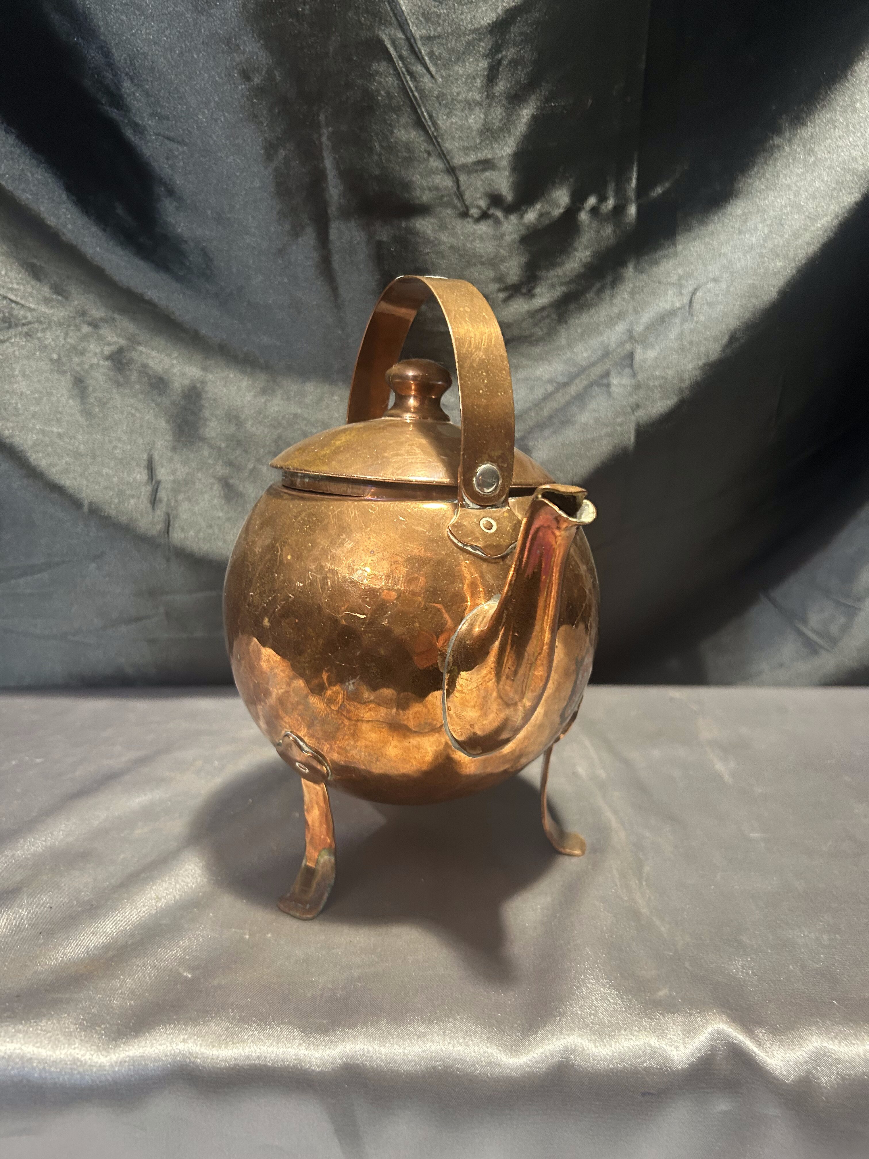 Czajnik miedziany na trzech nogach – Baniasty kształt – Stylowy imbryk vintage