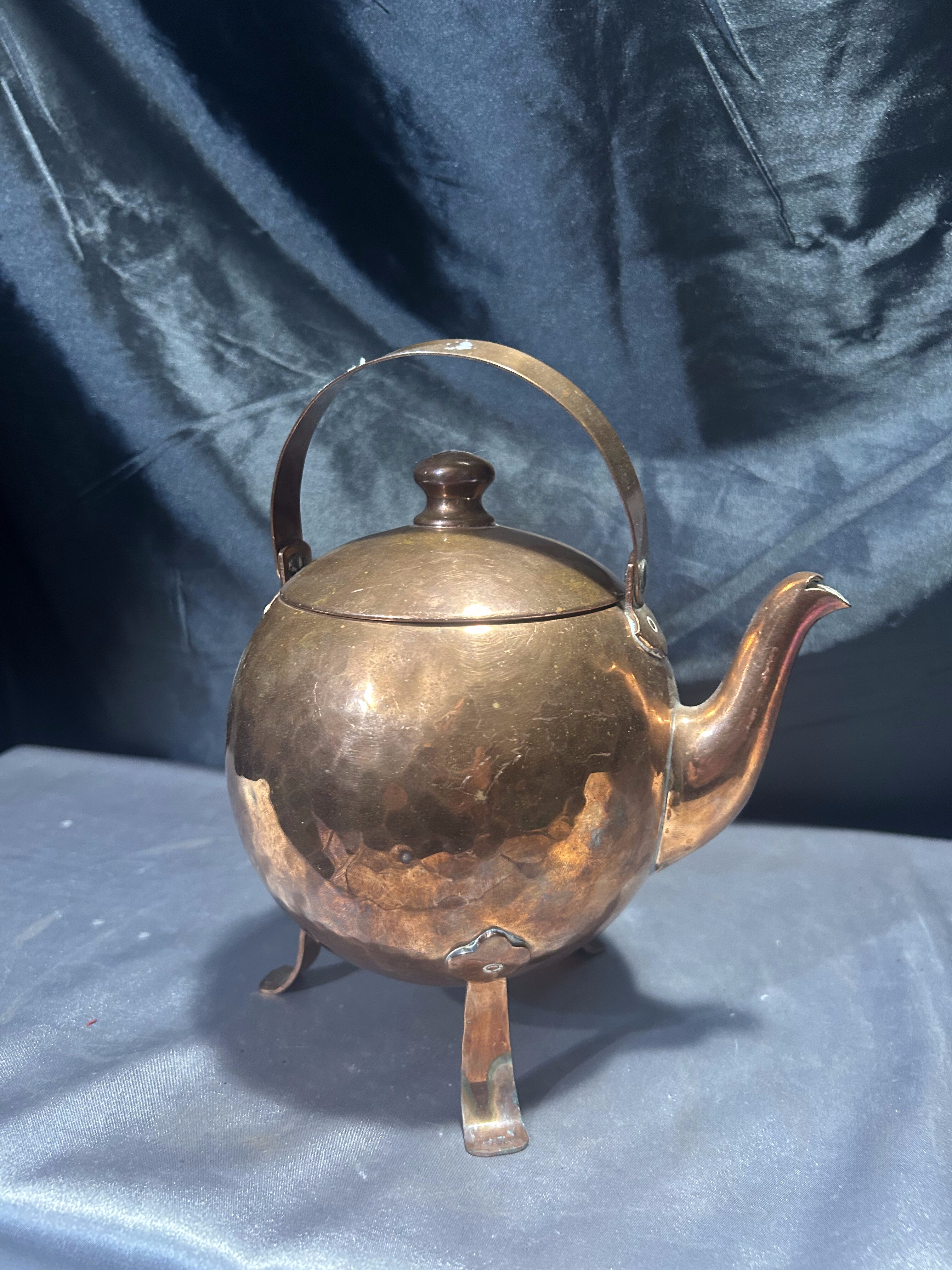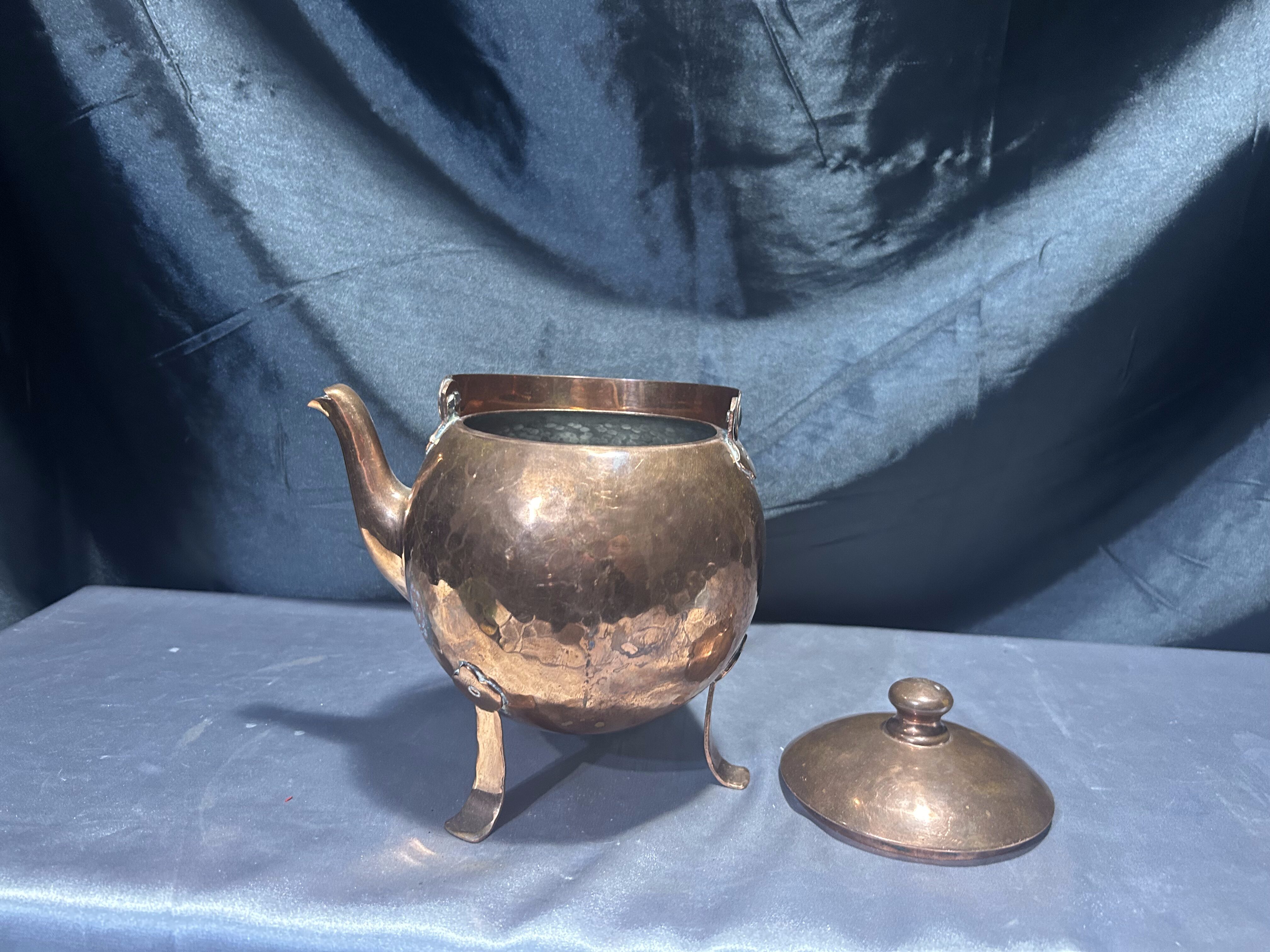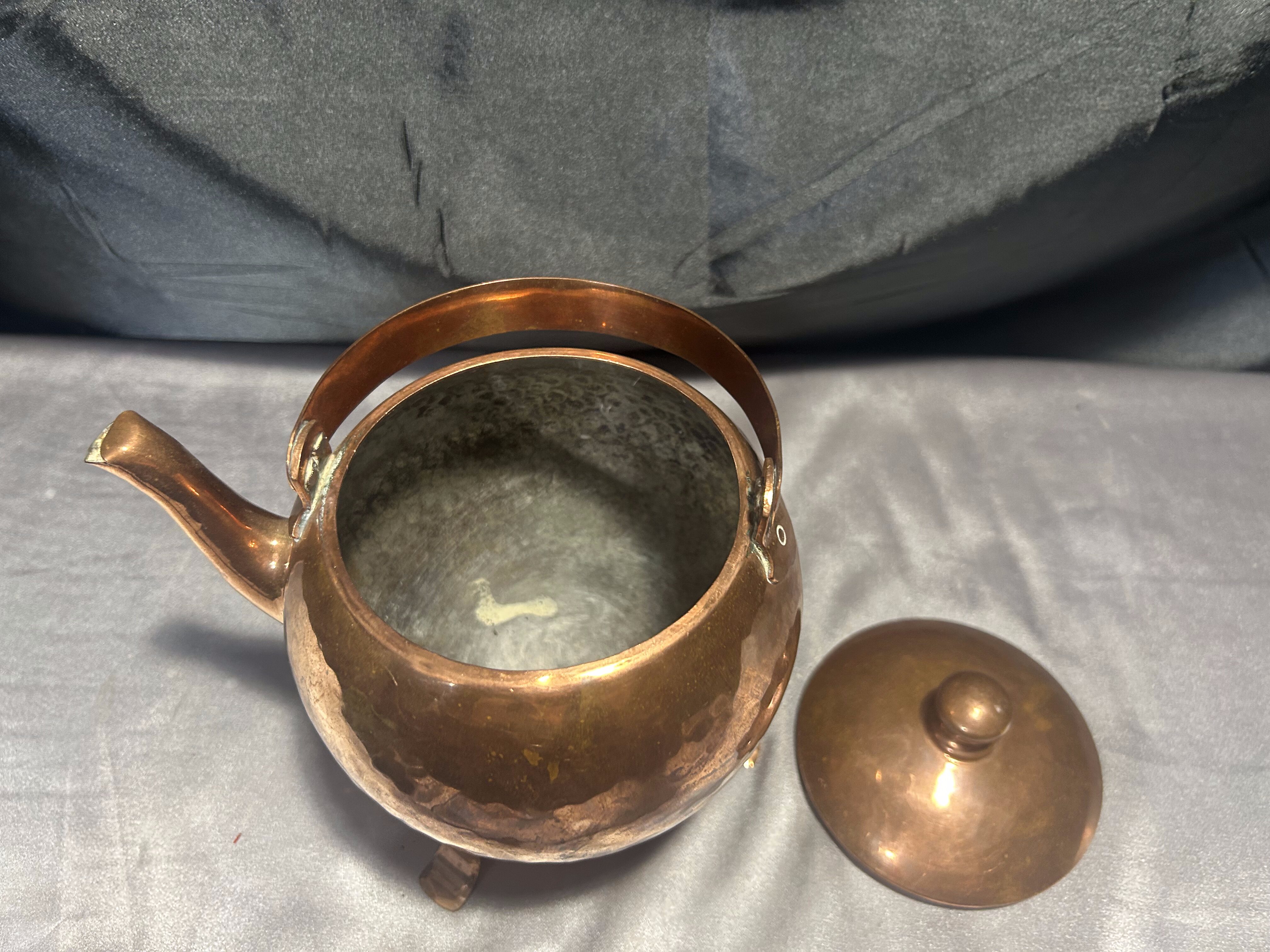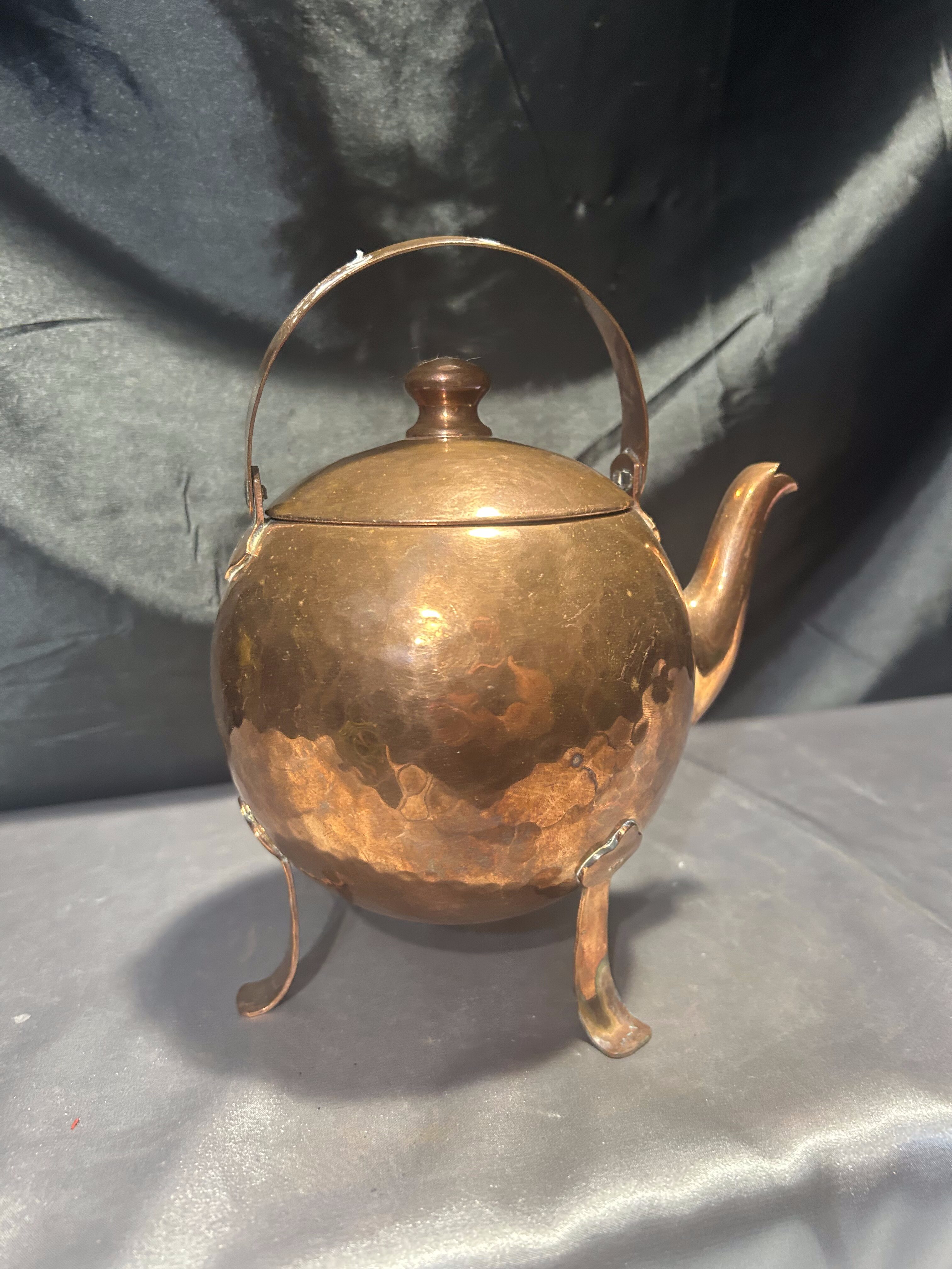 Czajnik miedziany na trzech nogach – Baniasty kształt – Stylowy imbryk vintage