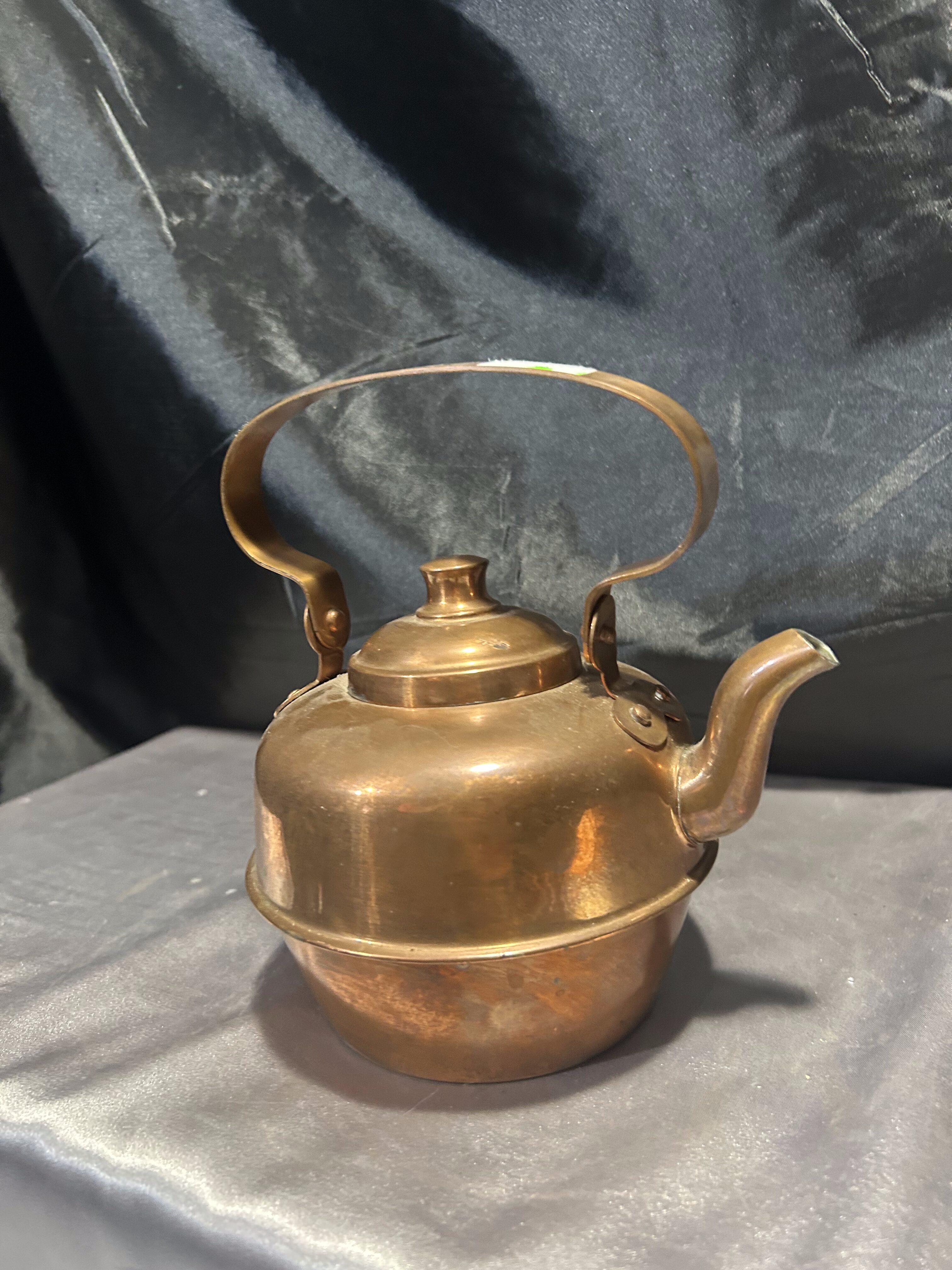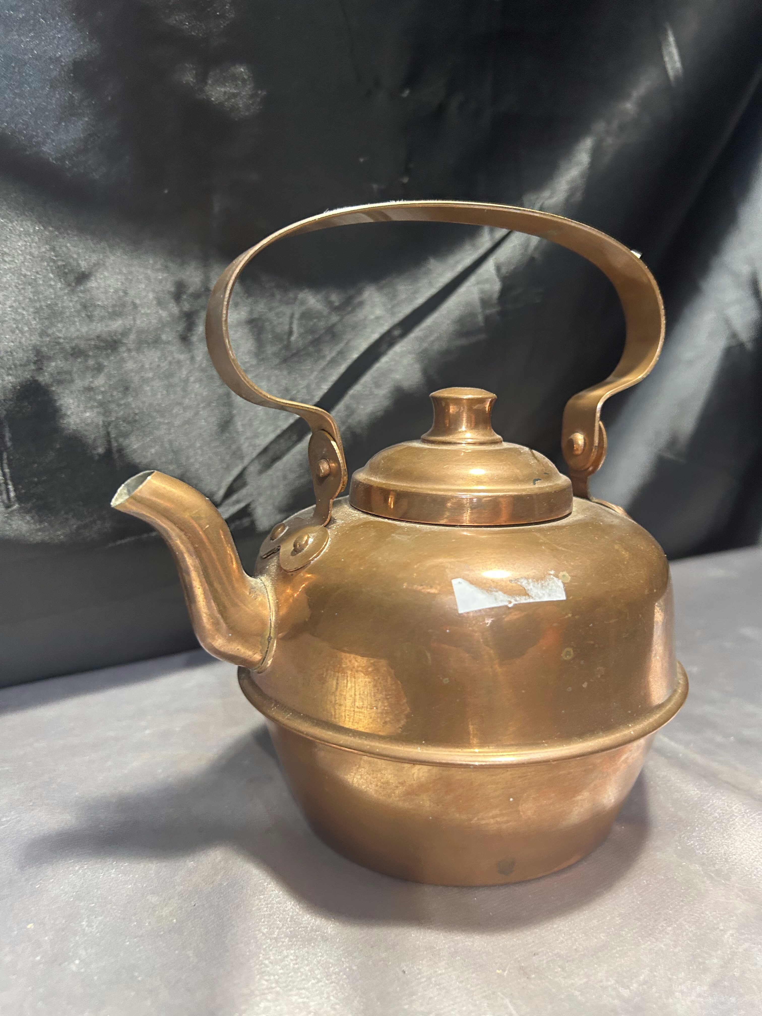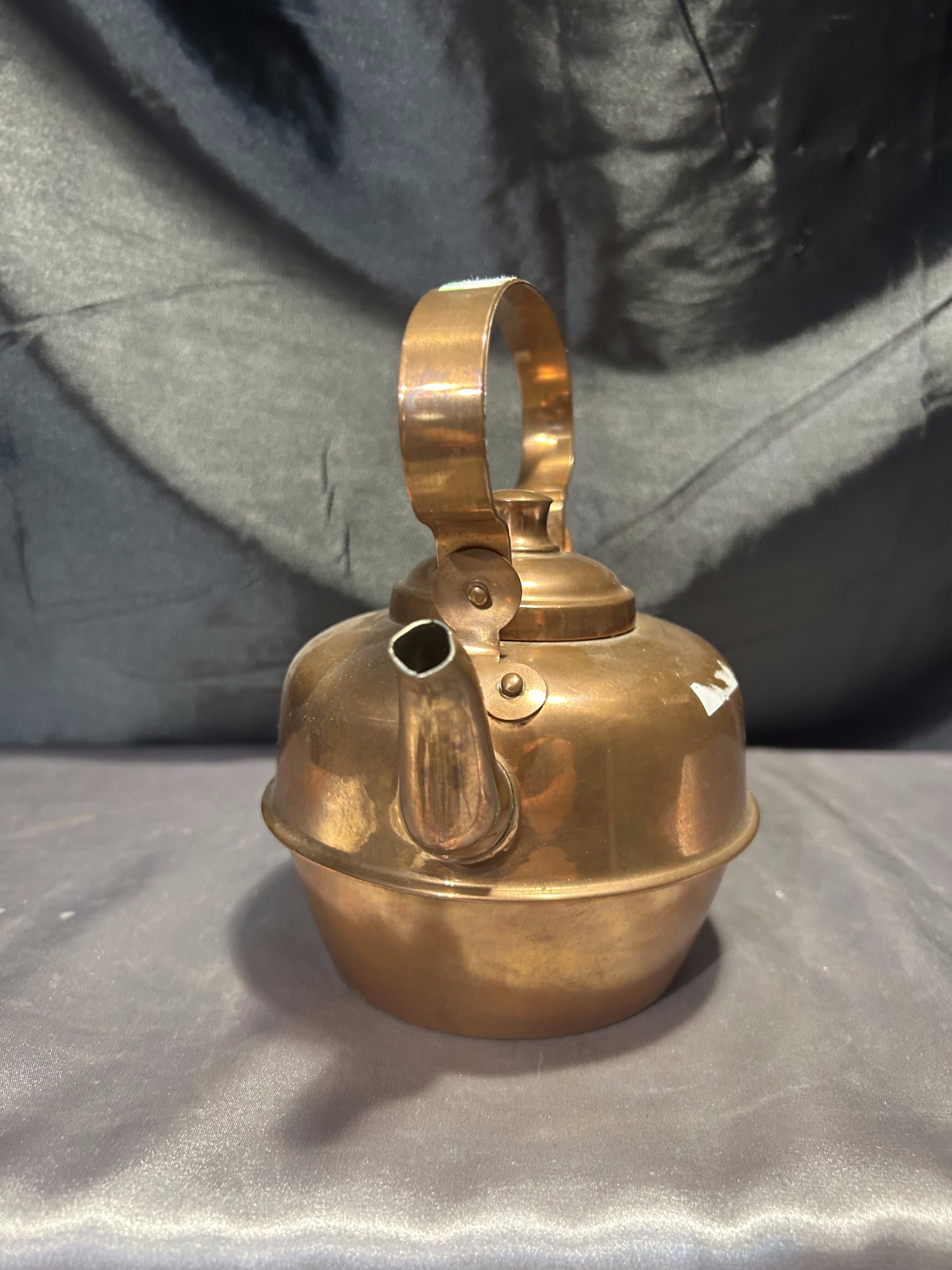 Na sprzedaż miedziany czajnik o pojemności 0,9 litra, wyposażony w rant, który umożliwia gotowanie bezpośrednio na kuchni z fajerką. Czajnik jest szczelny i w pełni funkcjonalny, a przy tym zachwyca klasyczną formą i naturalnym blaskiem miedzi.