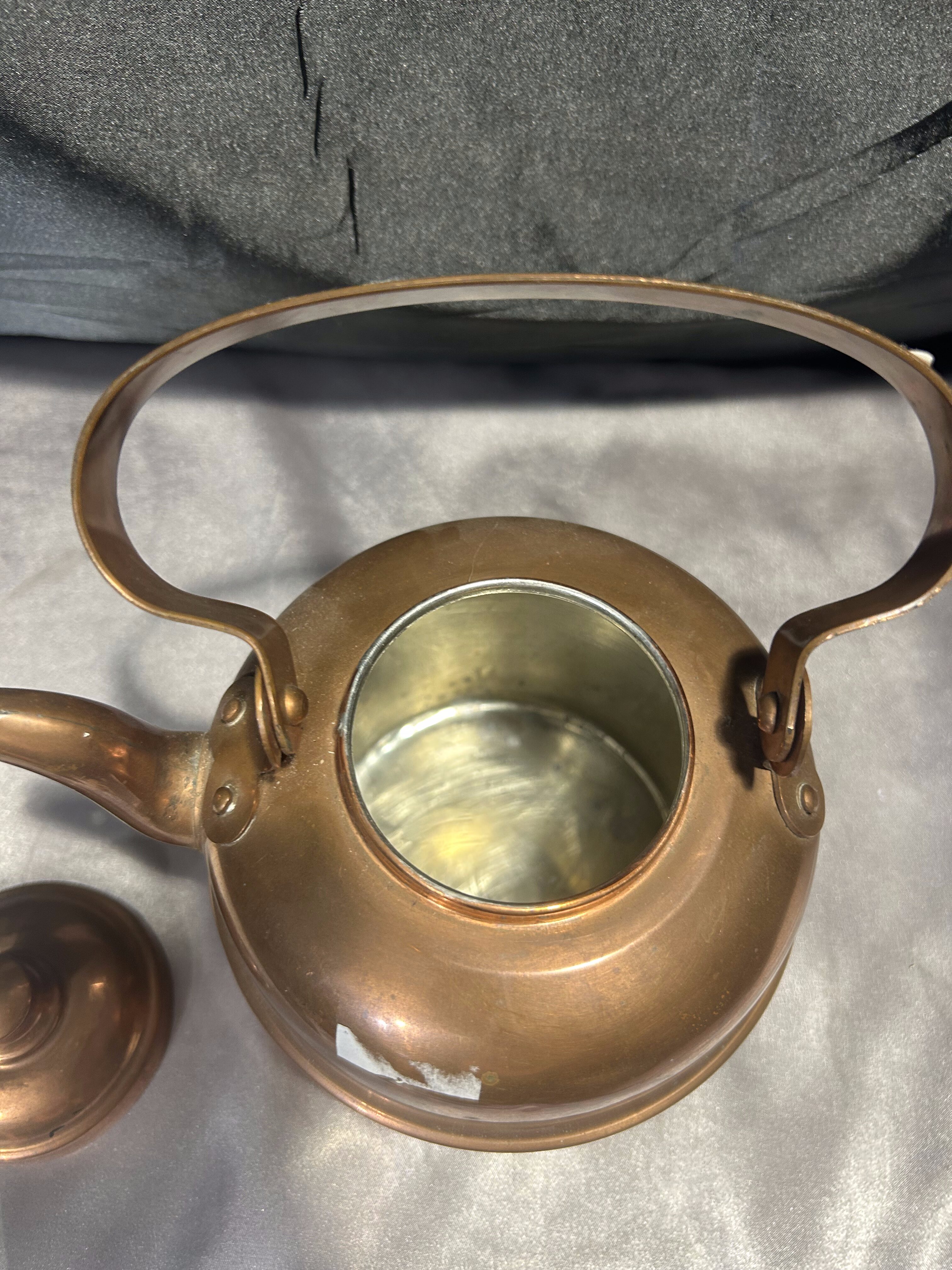 Czajnik miedziany – Mosiężne detale – Pleciona rączka – Styl vintage