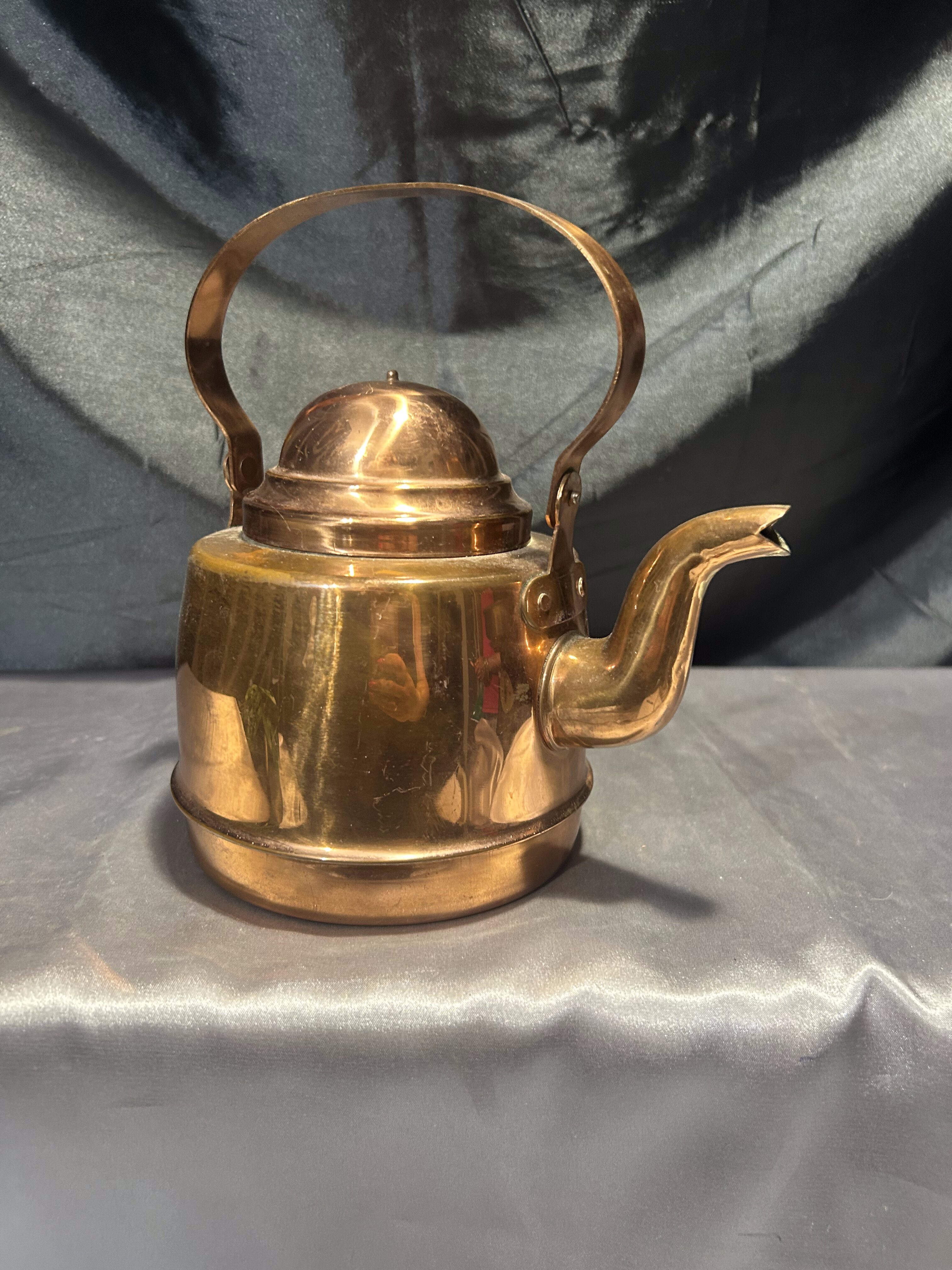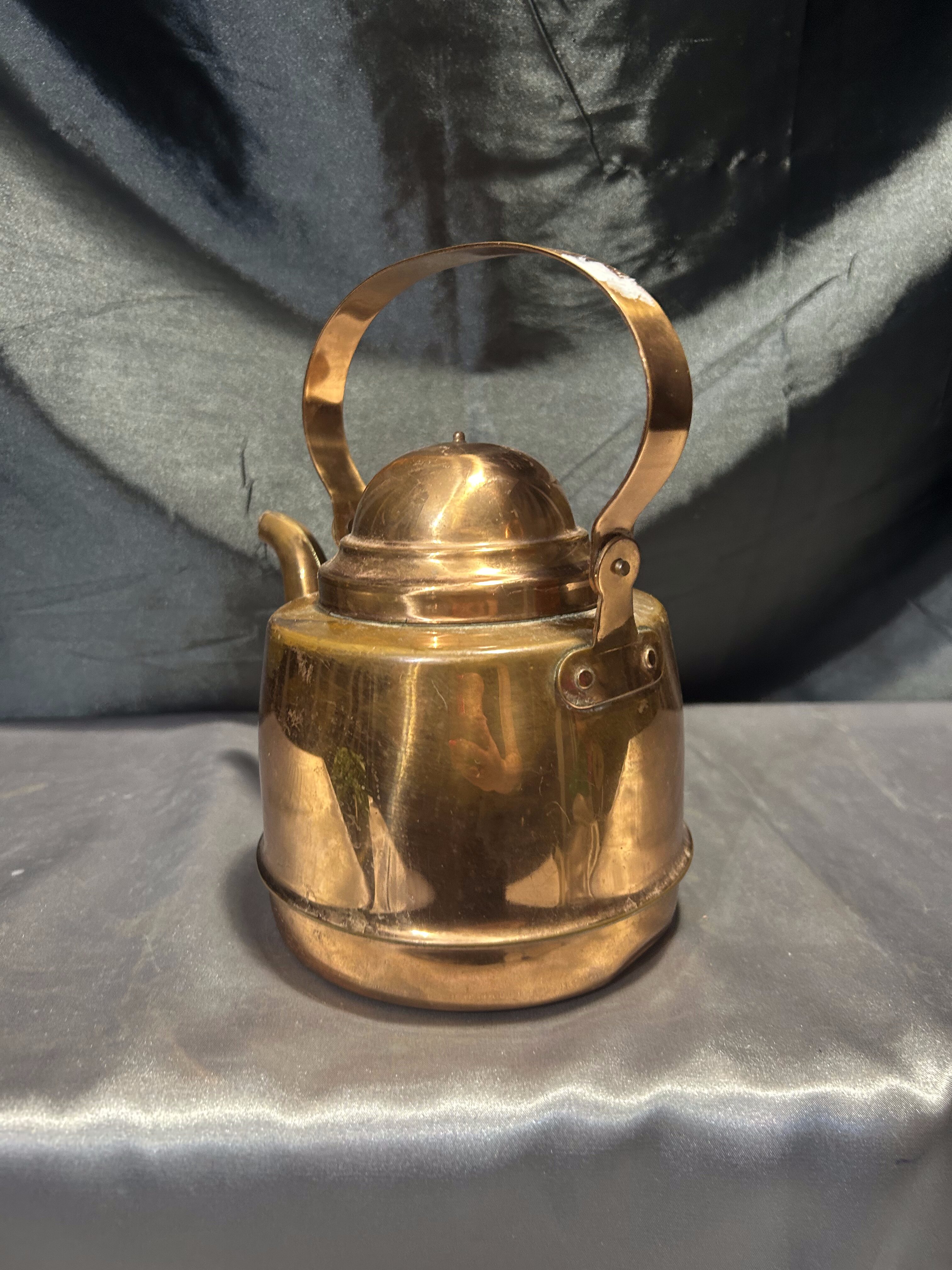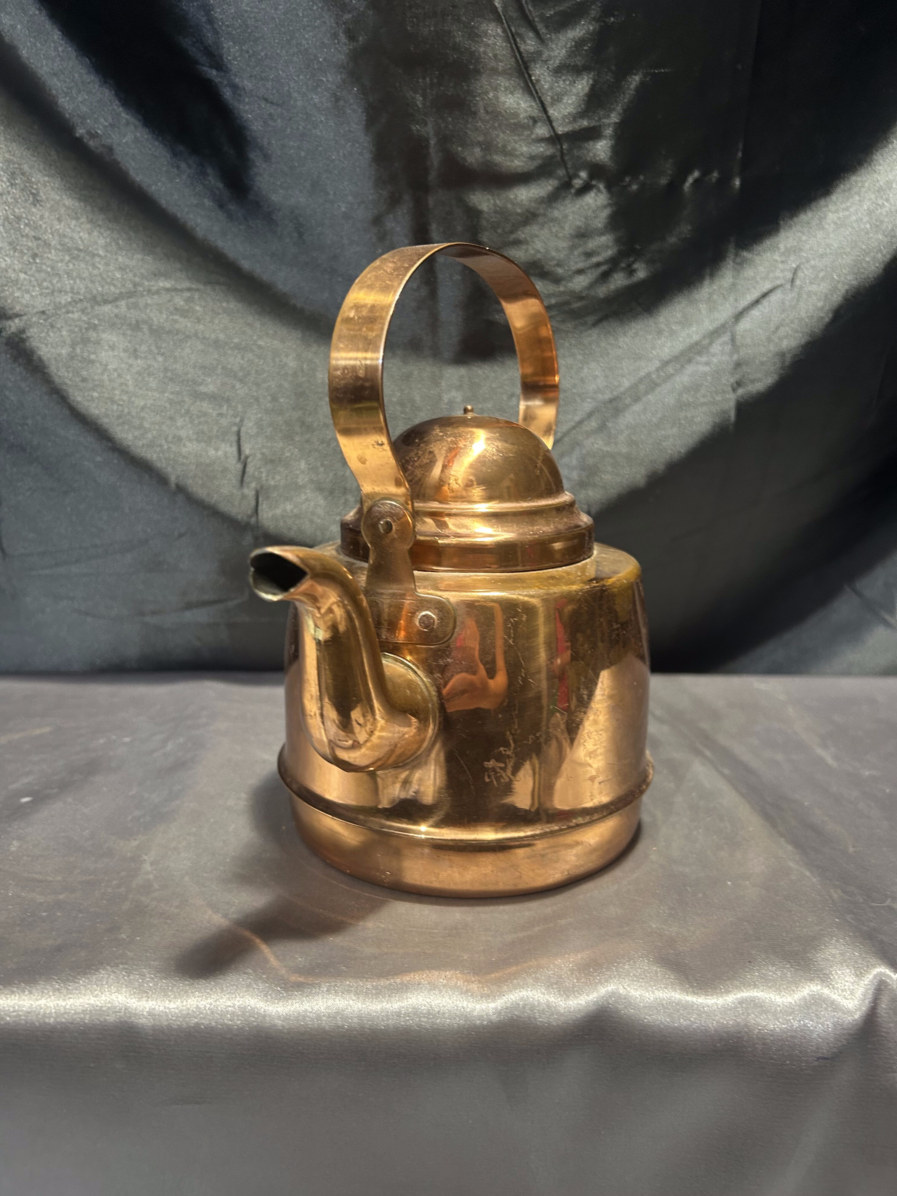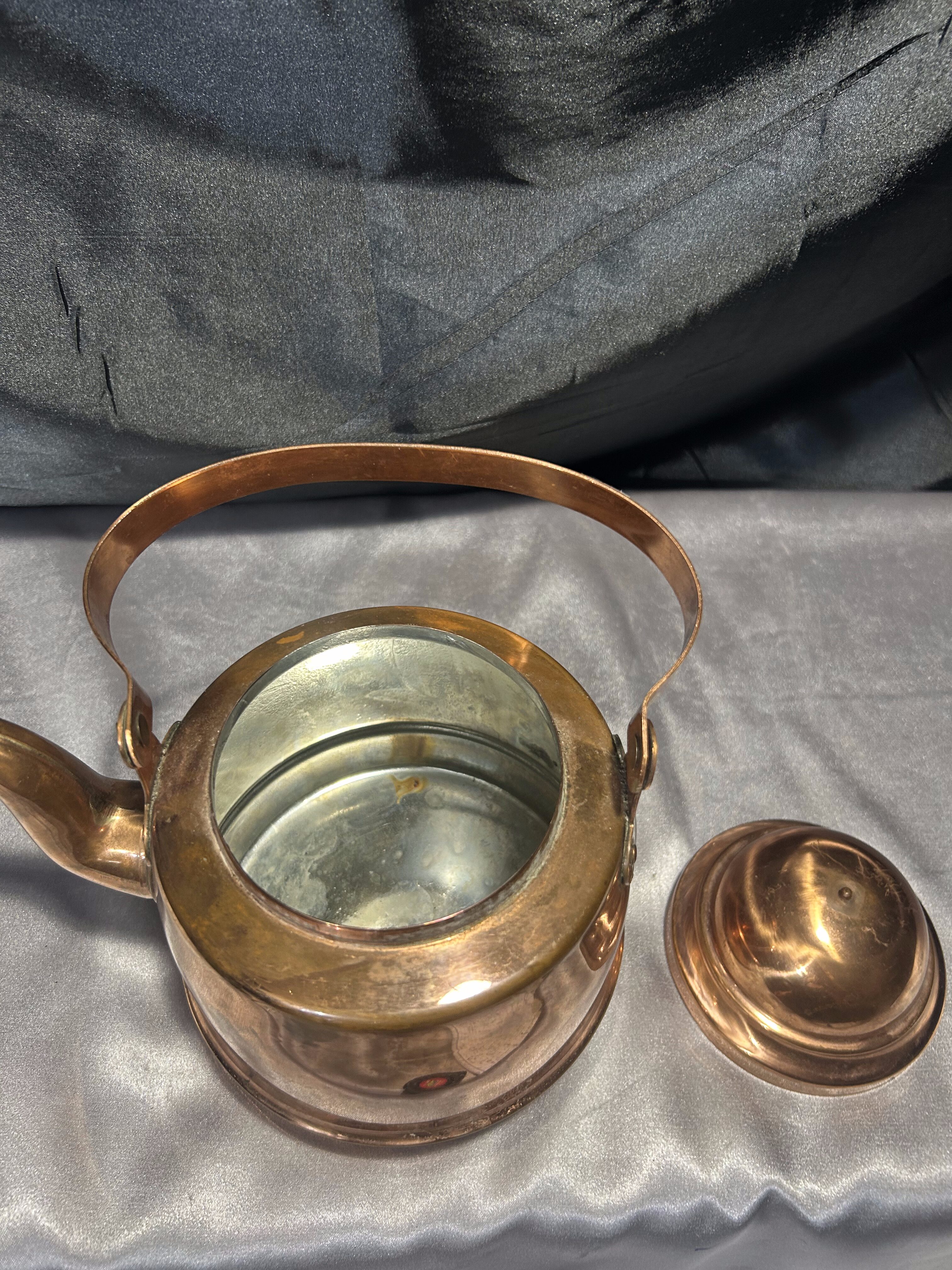 Na sprzedaż klasyczny miedziany czajnik z rantem, przystosowany do używania na kuchniach z fajerkami. Solidnie wykonany, o pojemności 1,2 litra, stanowi doskonałe połączenie funkcjonalności i eleganckiego stylu retro.