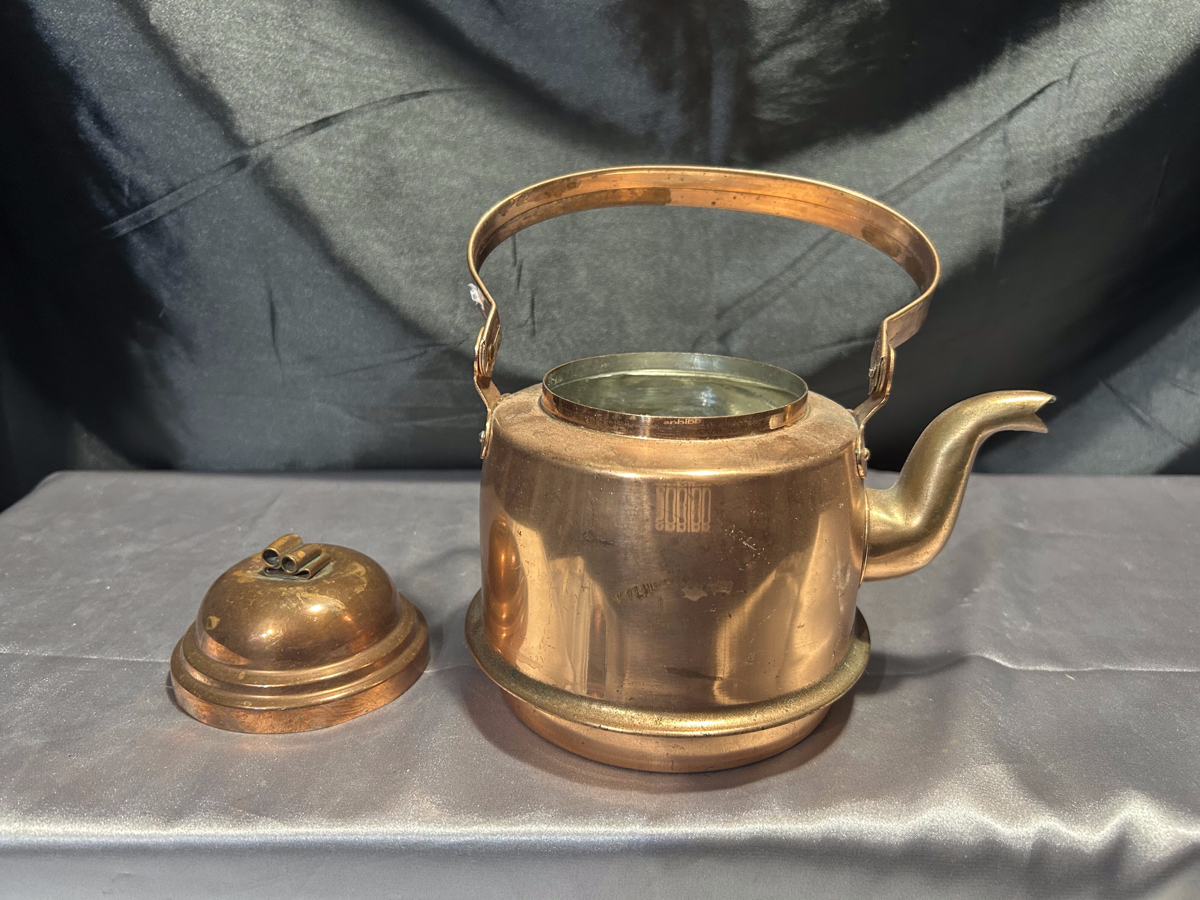 Czajnik miedziany – Z rantem, sygnowany – Na kuchnię z fajerką