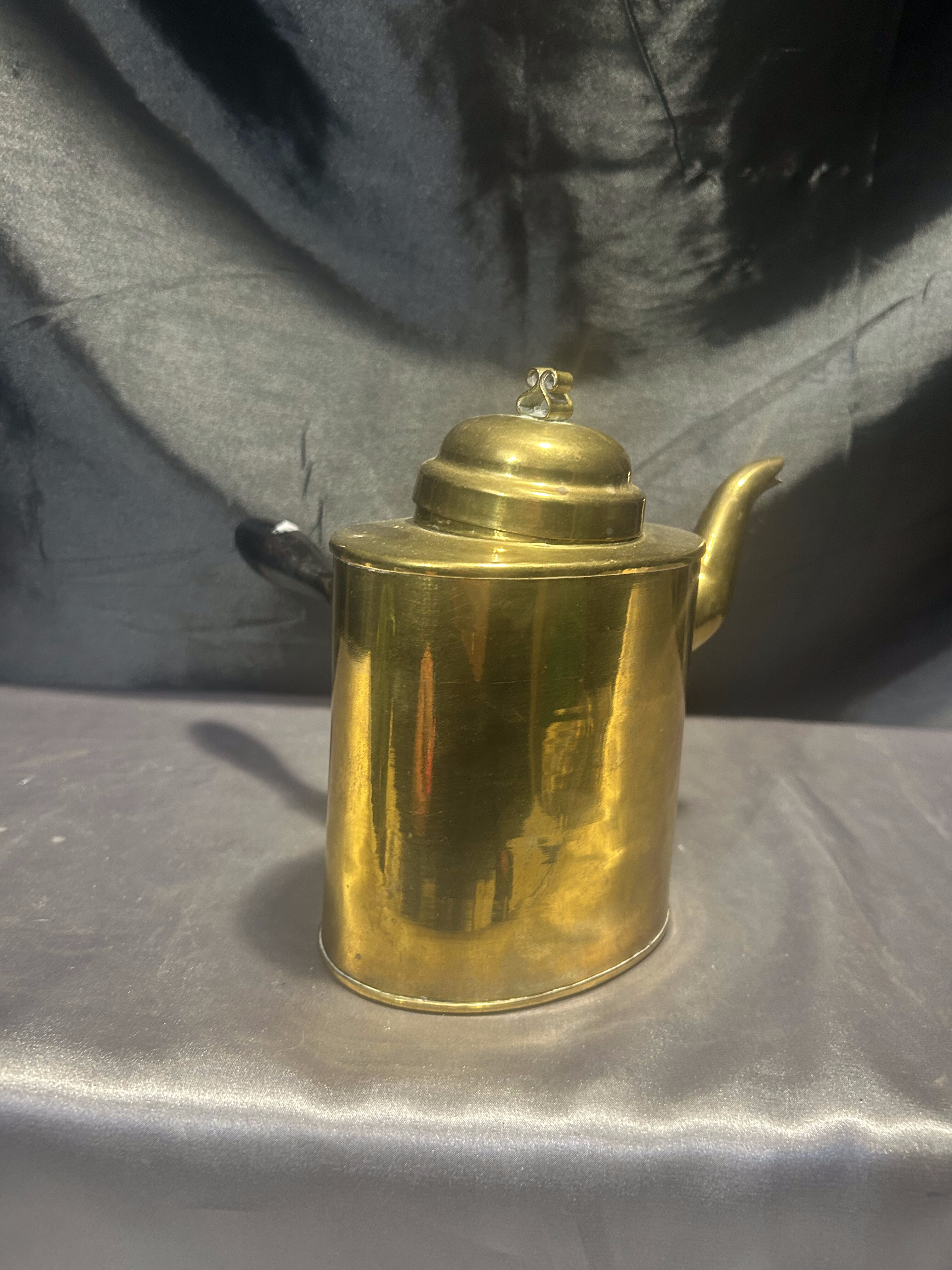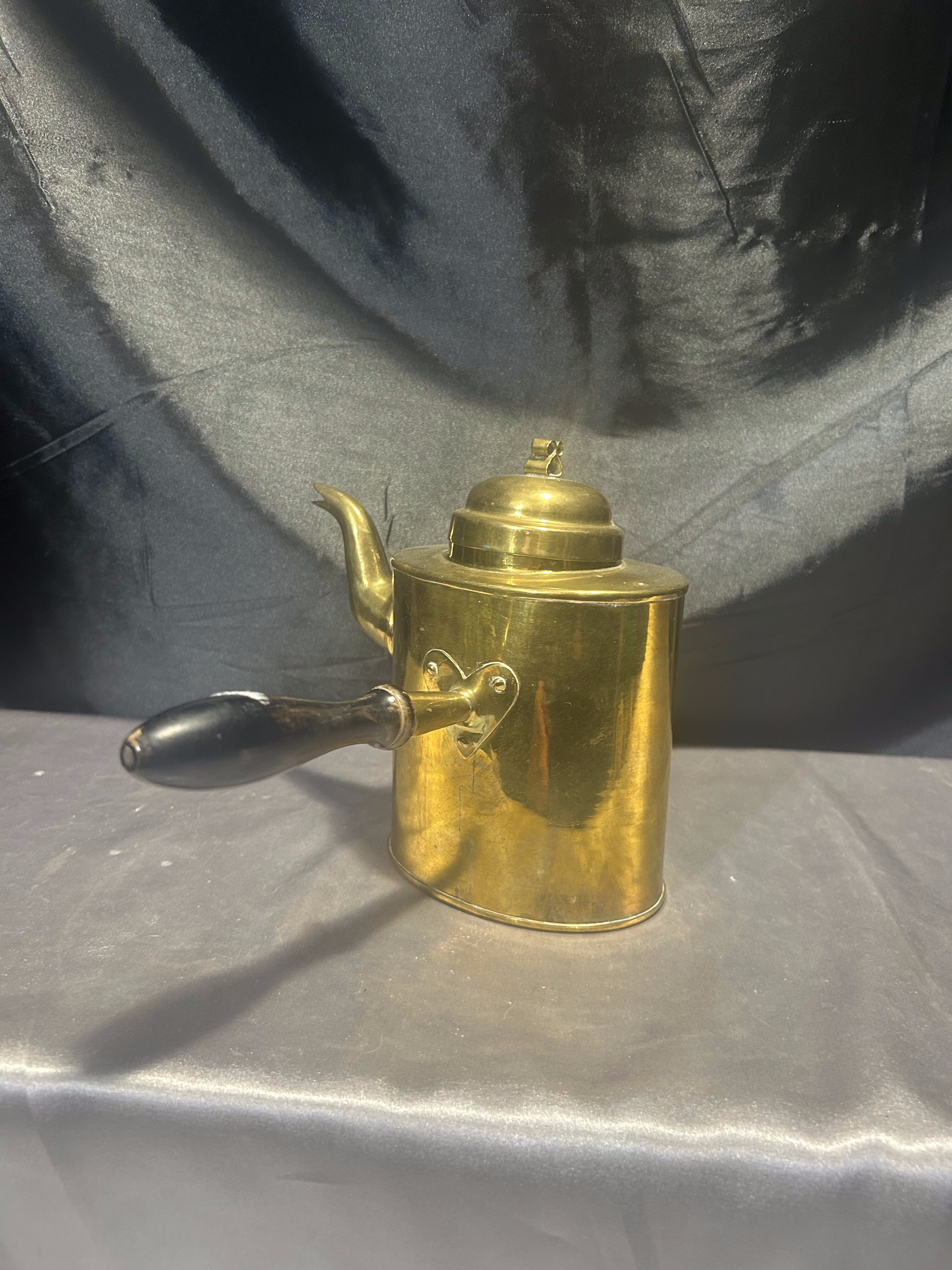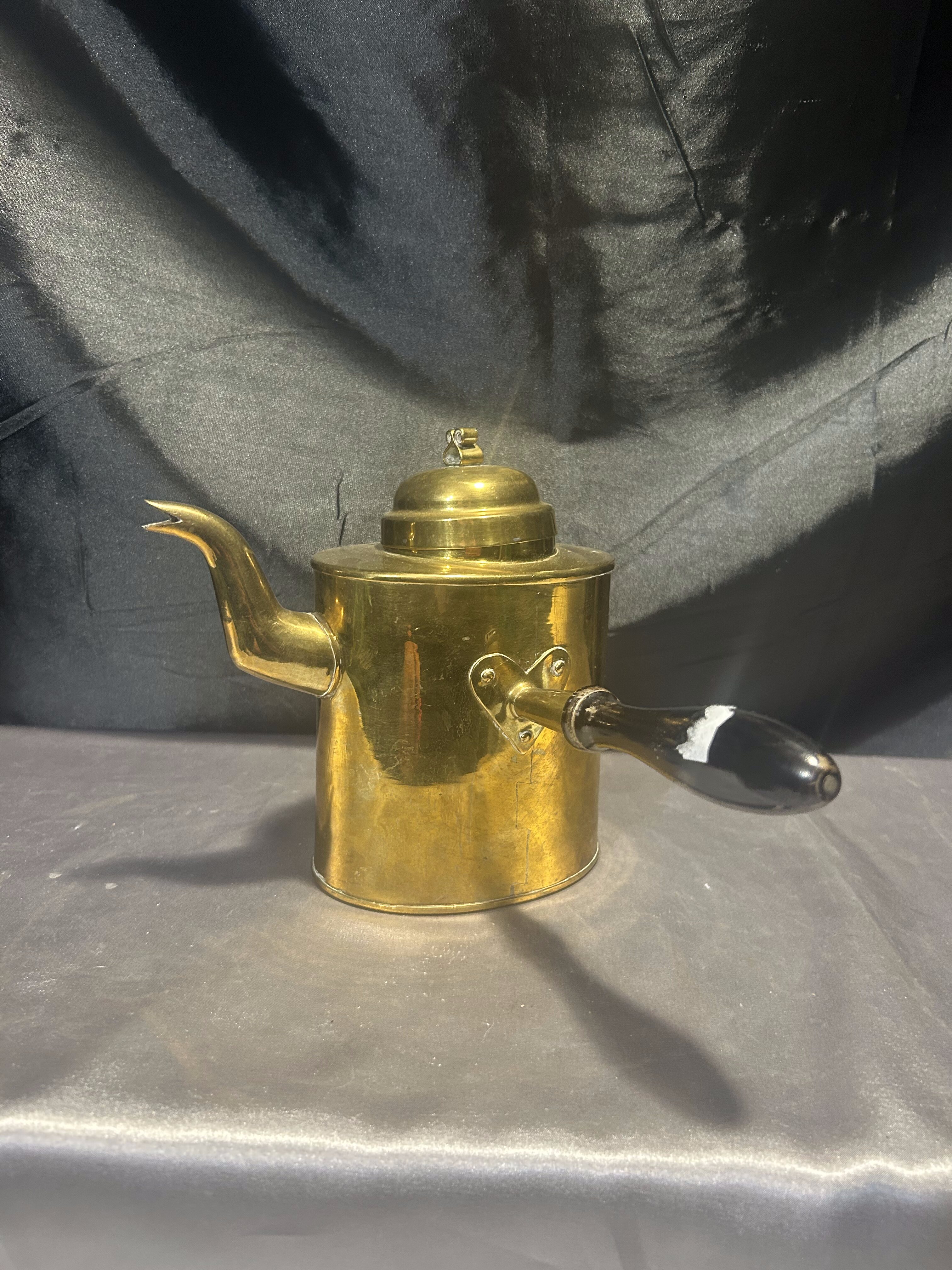 Czajnik Mosiężny z Bocznie Umieszczoną Drewnianą Rączką – 0,8 Litra – Sygnowany, Szczelny
