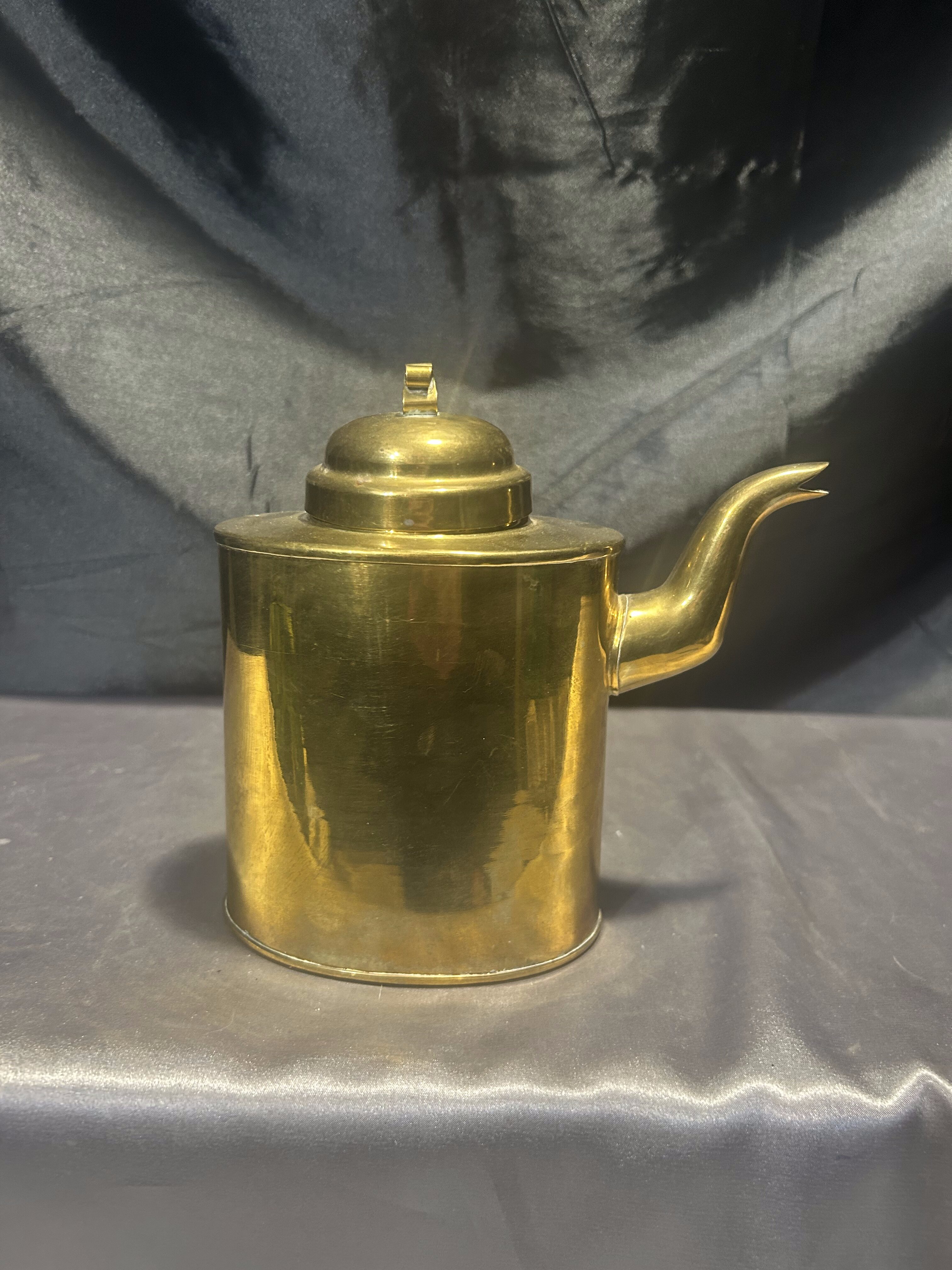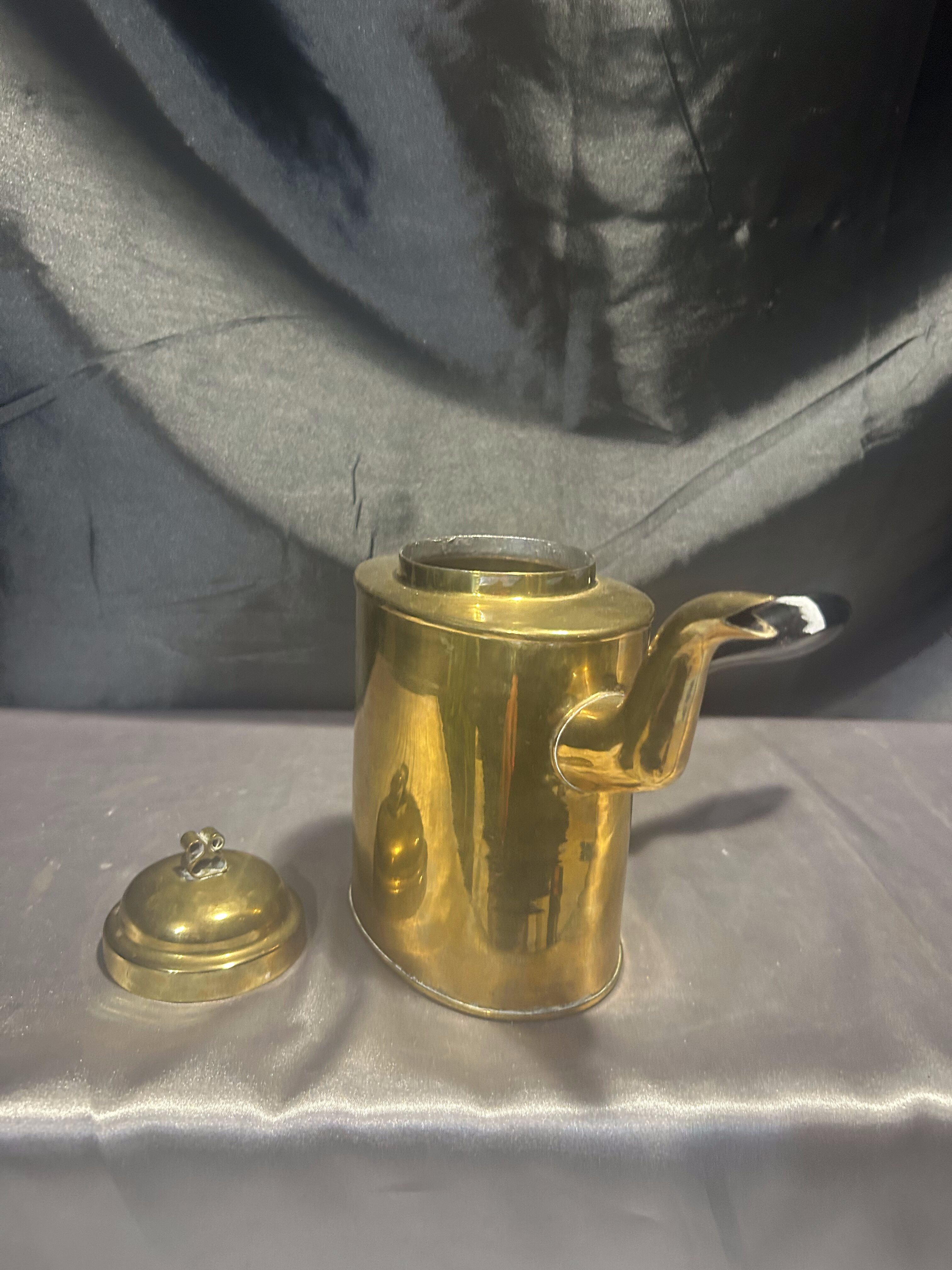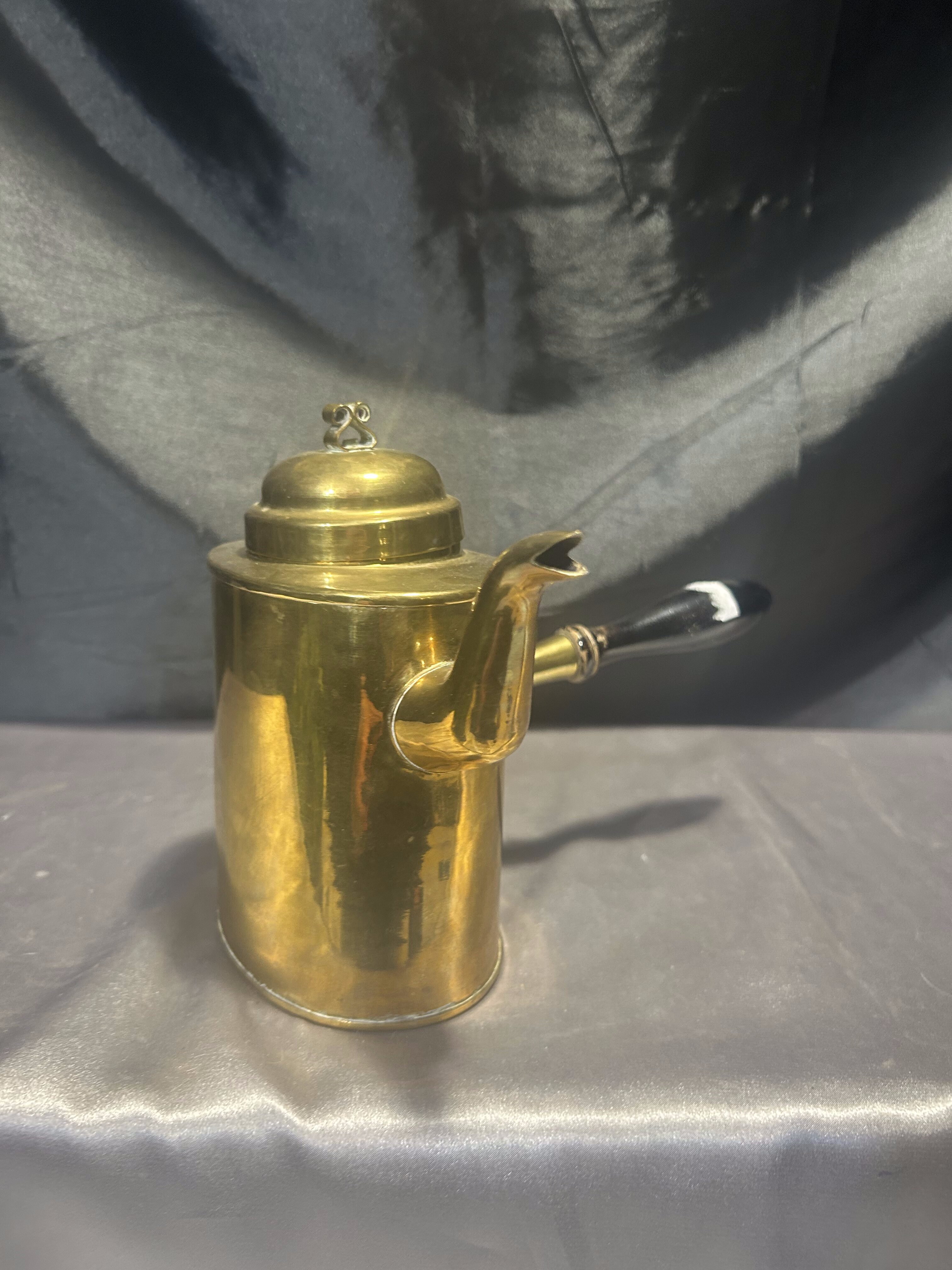 Czajnik Mosiężny z Bocznie Umieszczoną Drewnianą Rączką – 0,8 Litra – Sygnowany, Szczelny