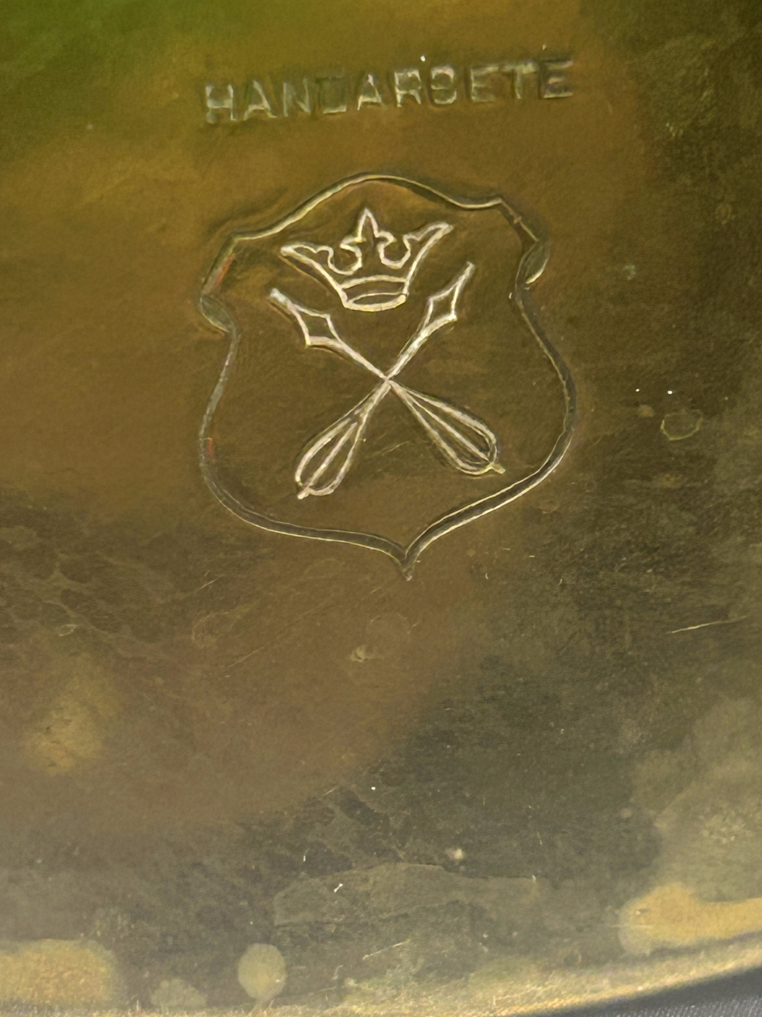 Na sprzedaż oryginalny czajnik wykonany z mosiądzu, wyposażony w drewnianą rączkę umieszczoną z boku, co nadaje mu wyjątkowy wygląd i praktyczność. Czajnik jest szczelny, w pełni sprawny i sygnowany, co potwierdza jego jakość i ręczne wykonanie.