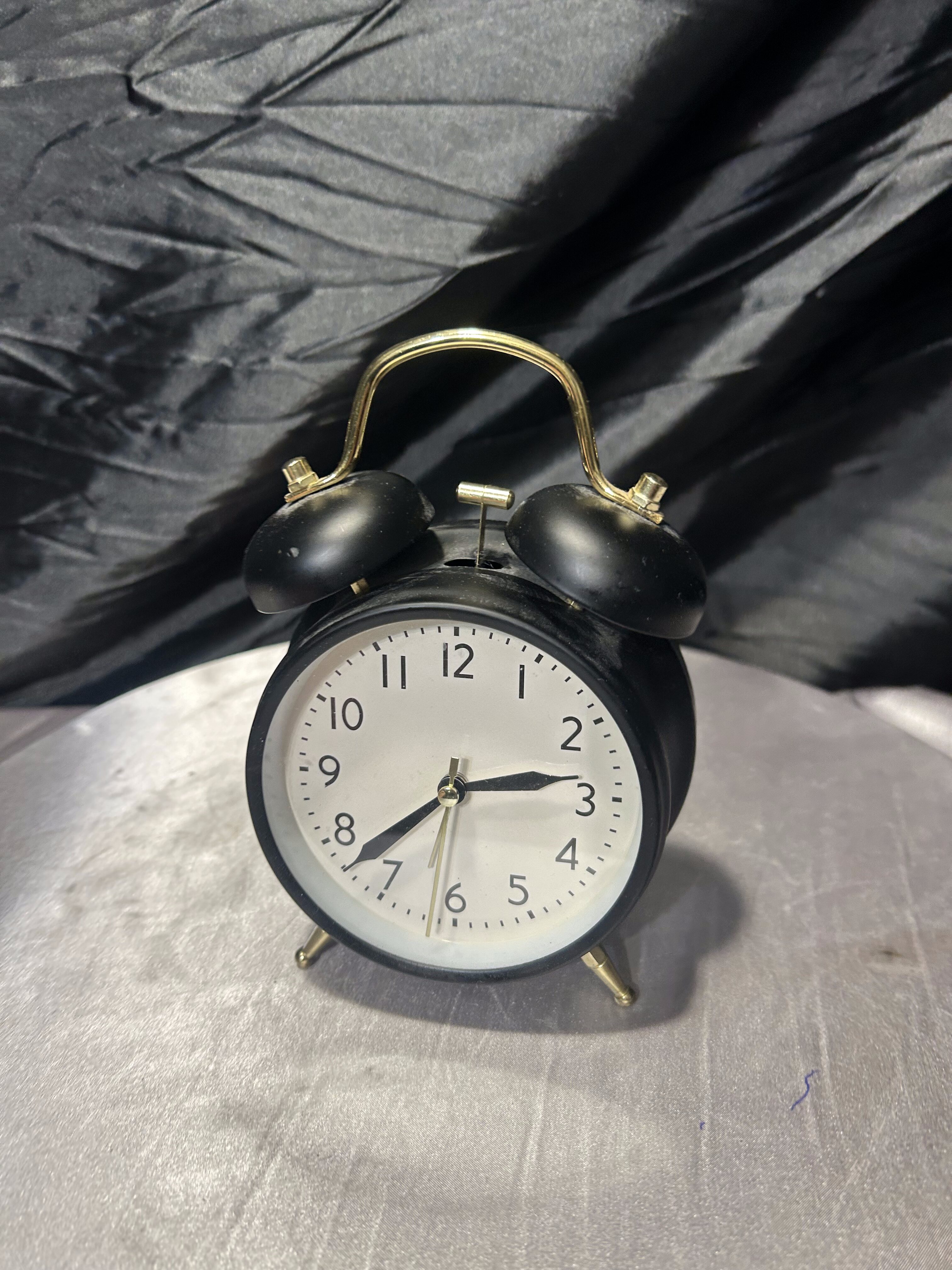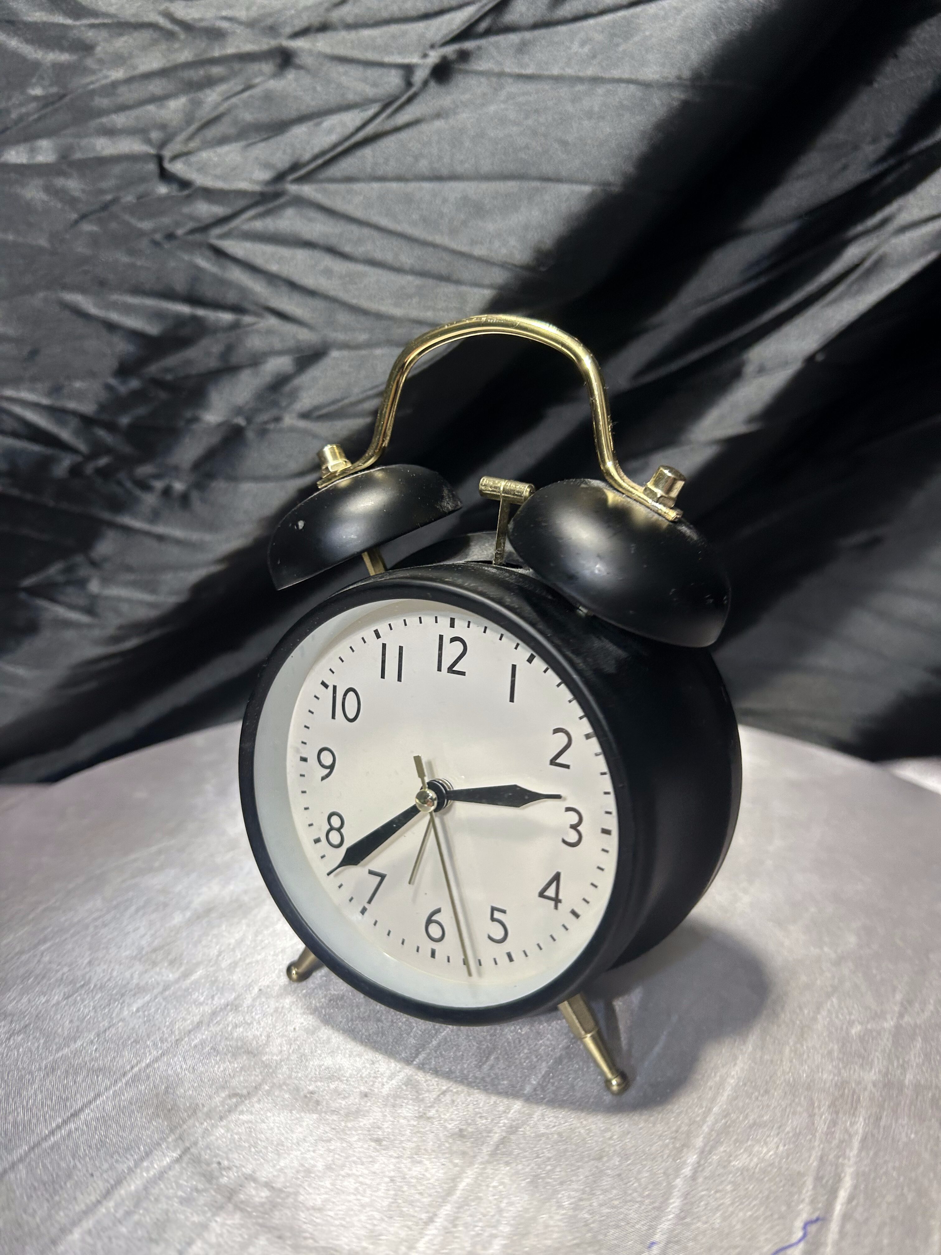 Czarny klasyczny budzik retro – styl vintage, metalowa obudowa