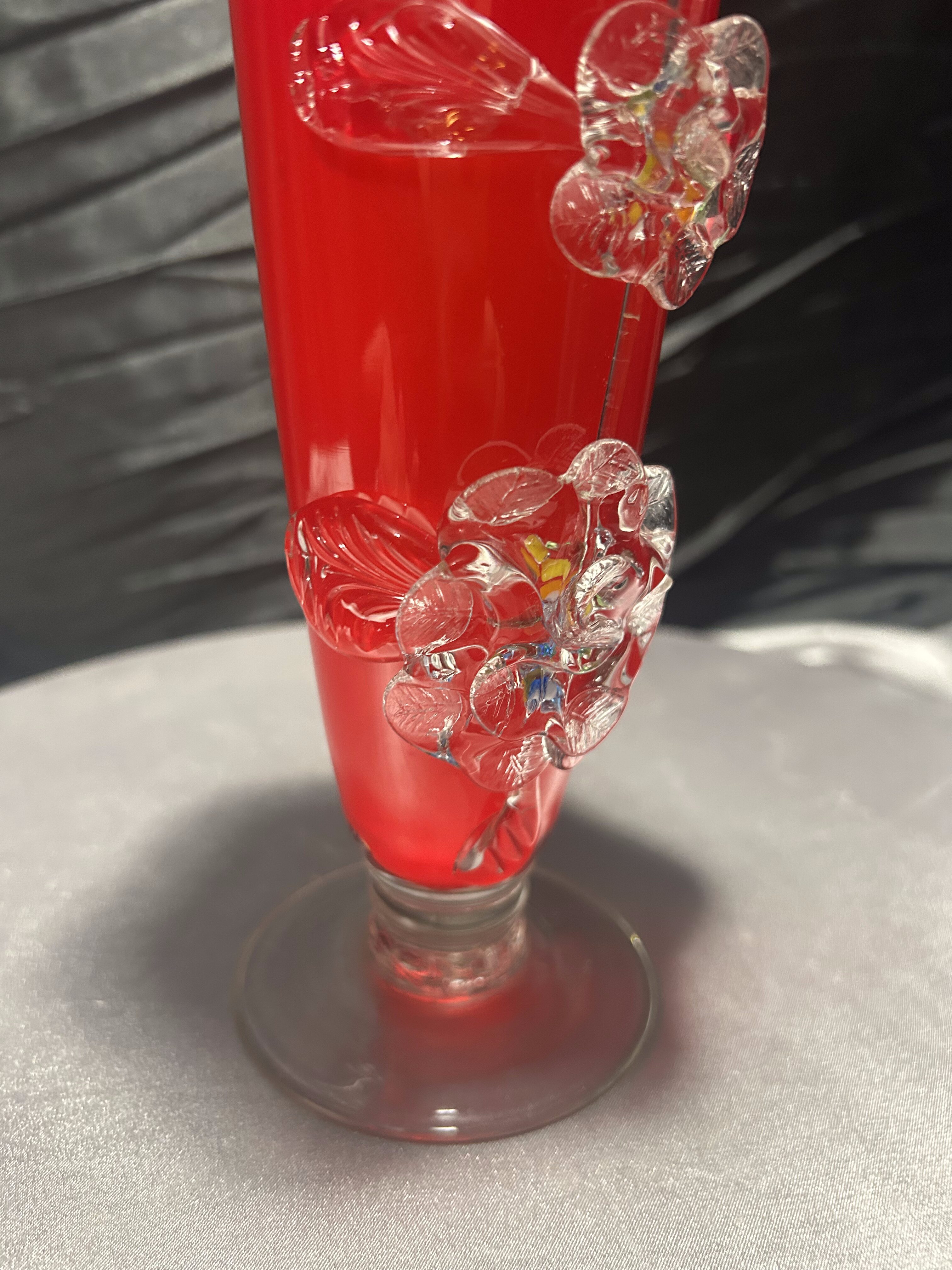 Czerwony flakon z aplikacjami kwiatowymi ze szkła – włoski styl artystyczny