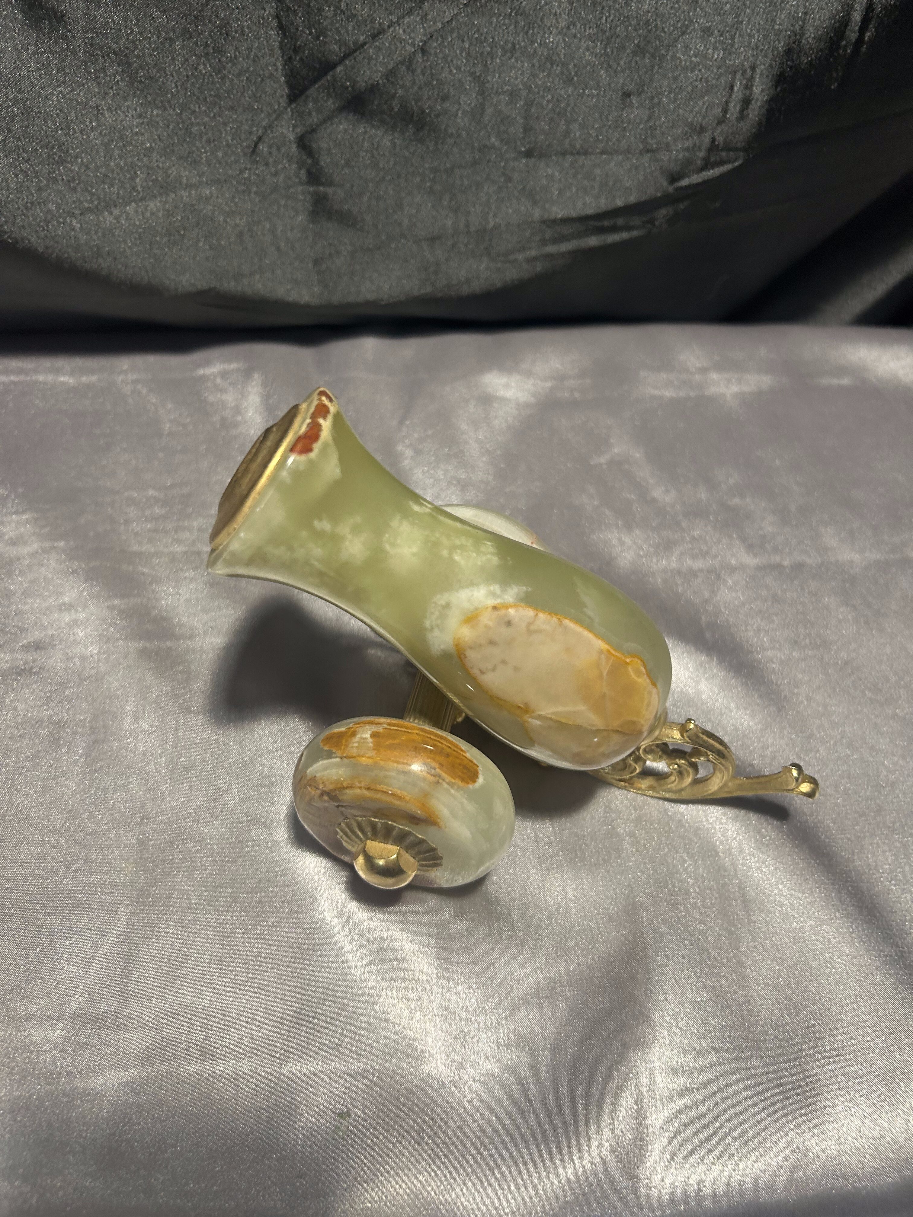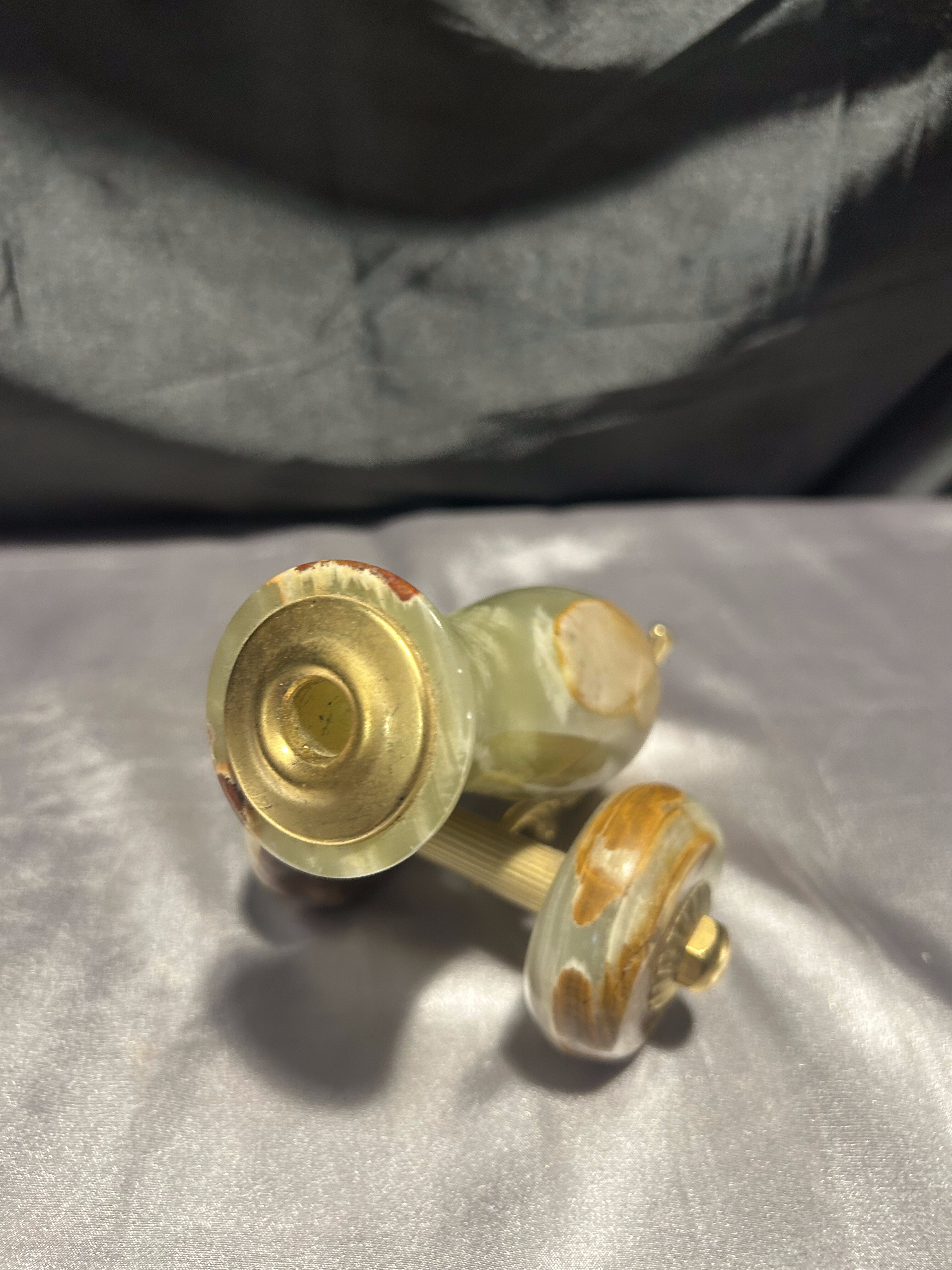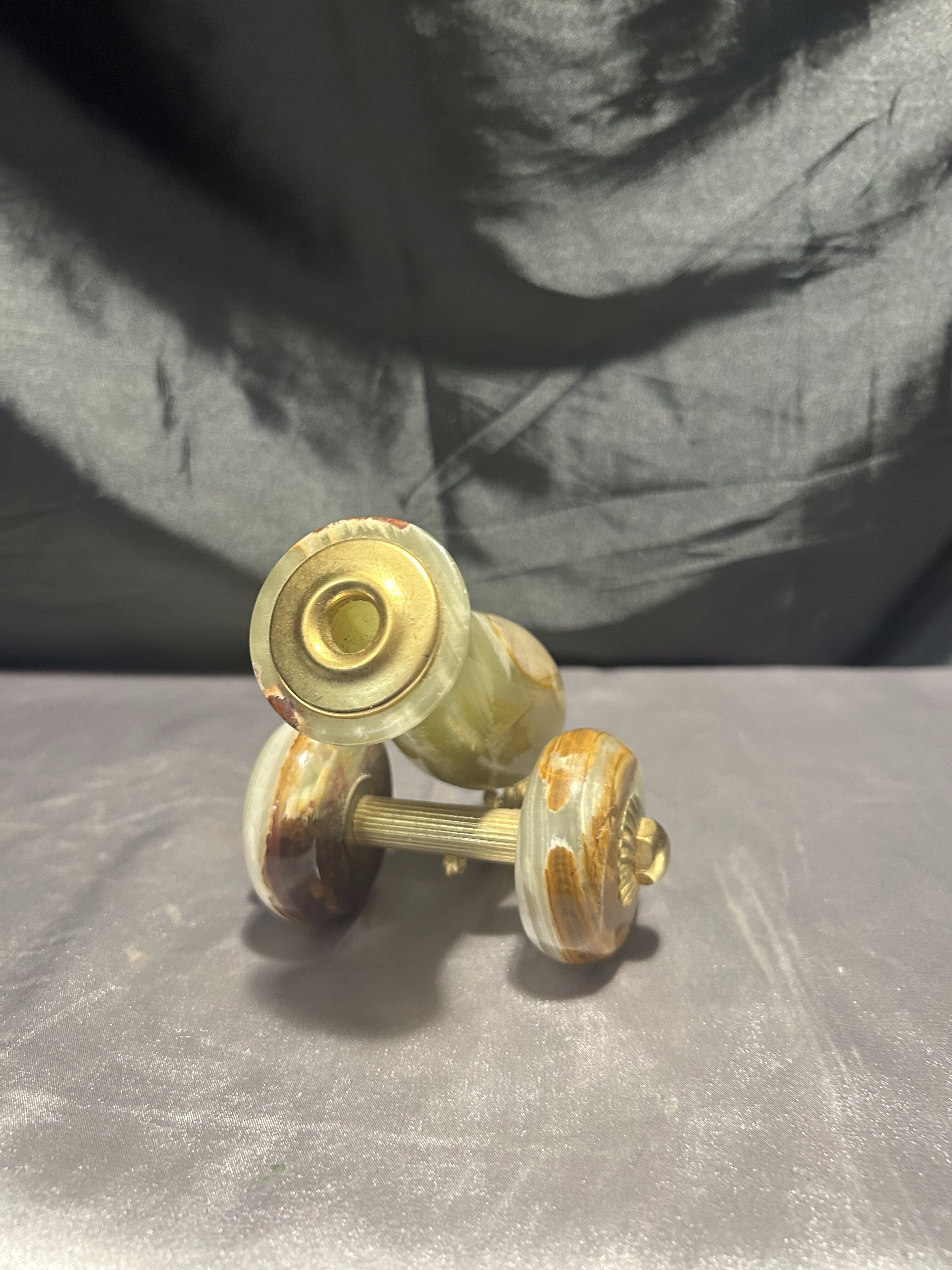 Dekoracyjna armata z onyksu i mosiądzu – stojak na pióro