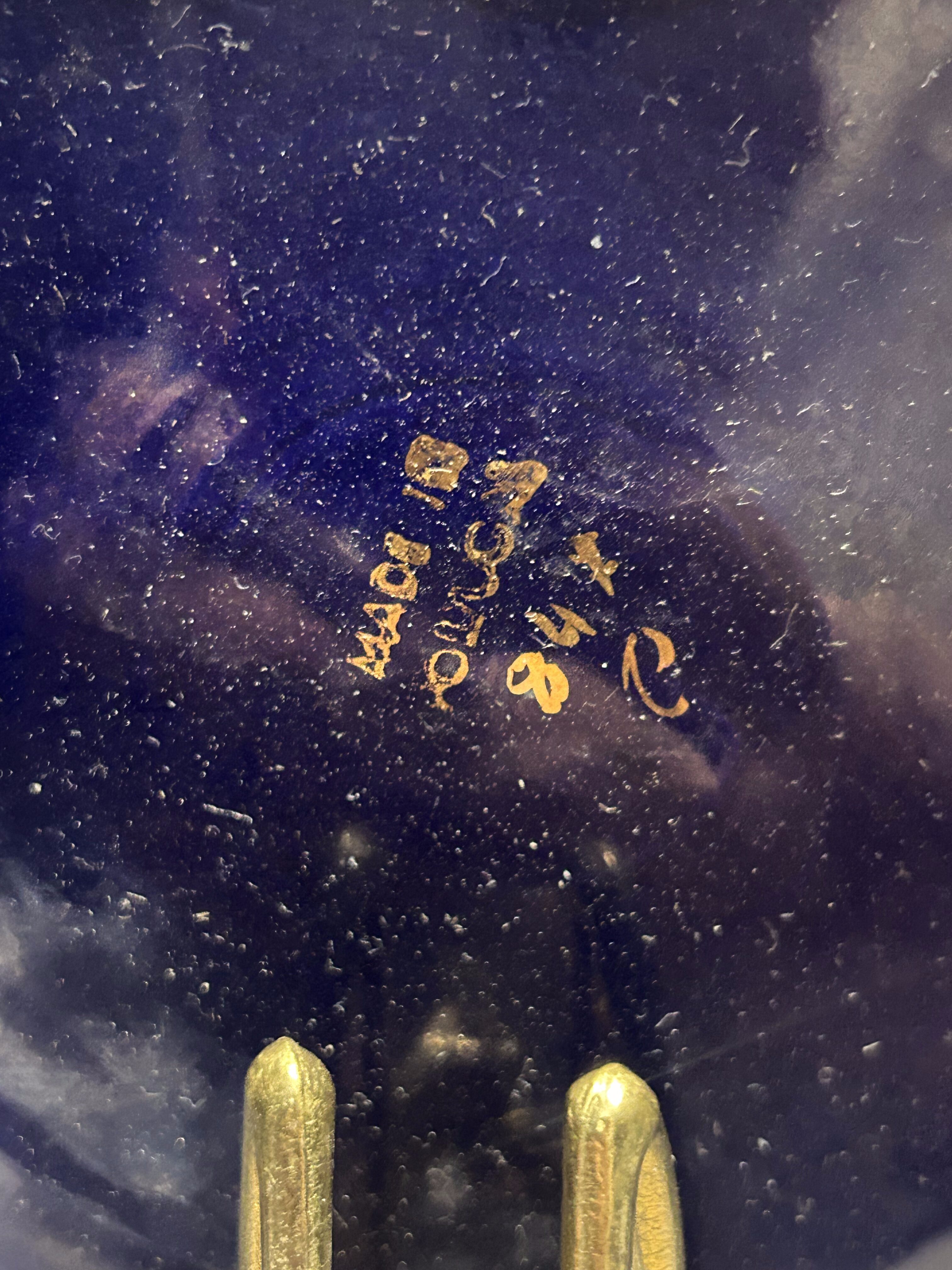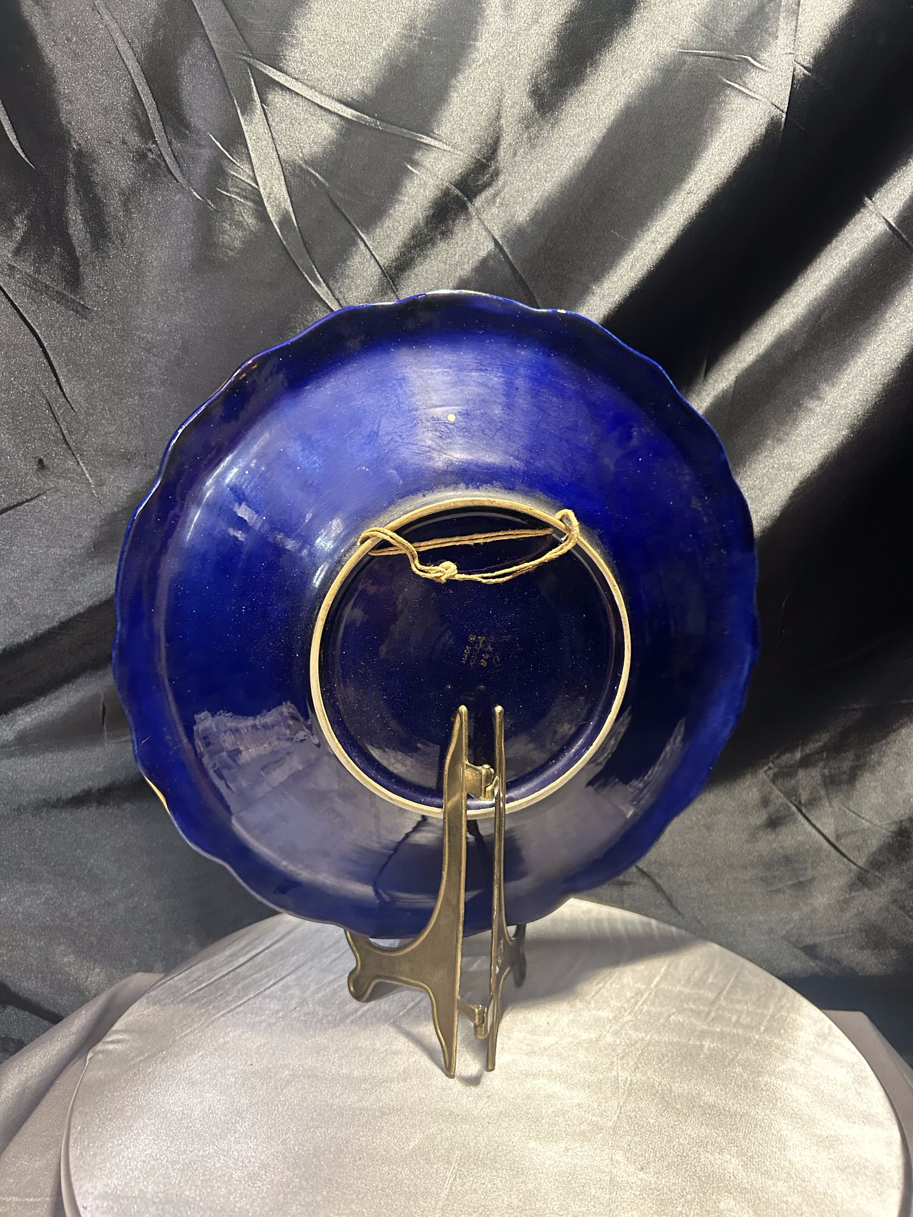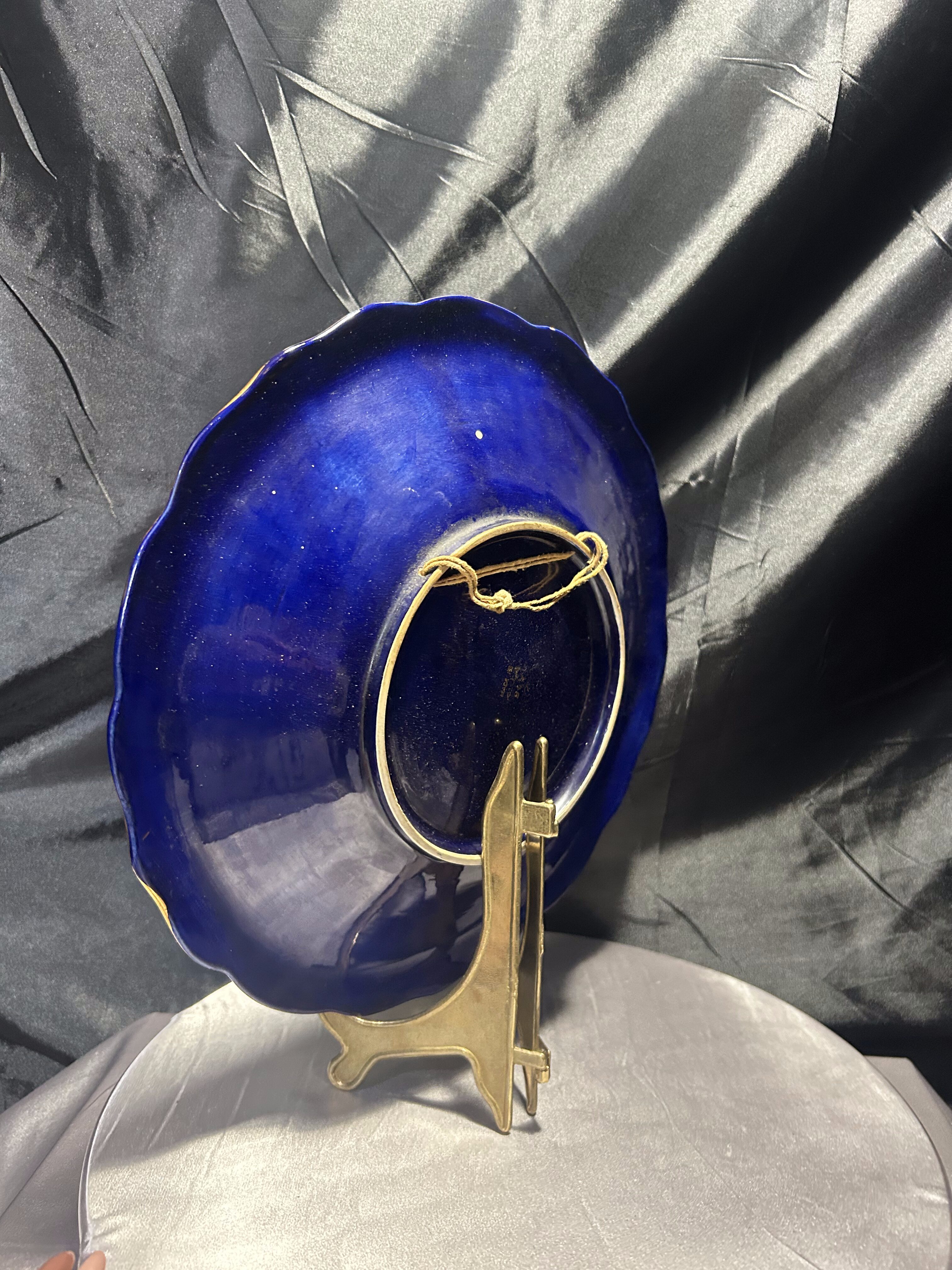 Dekoracyjny talerz porcelanowy – ręcznie malowany pejzaż – cobalt & złoto – Italy