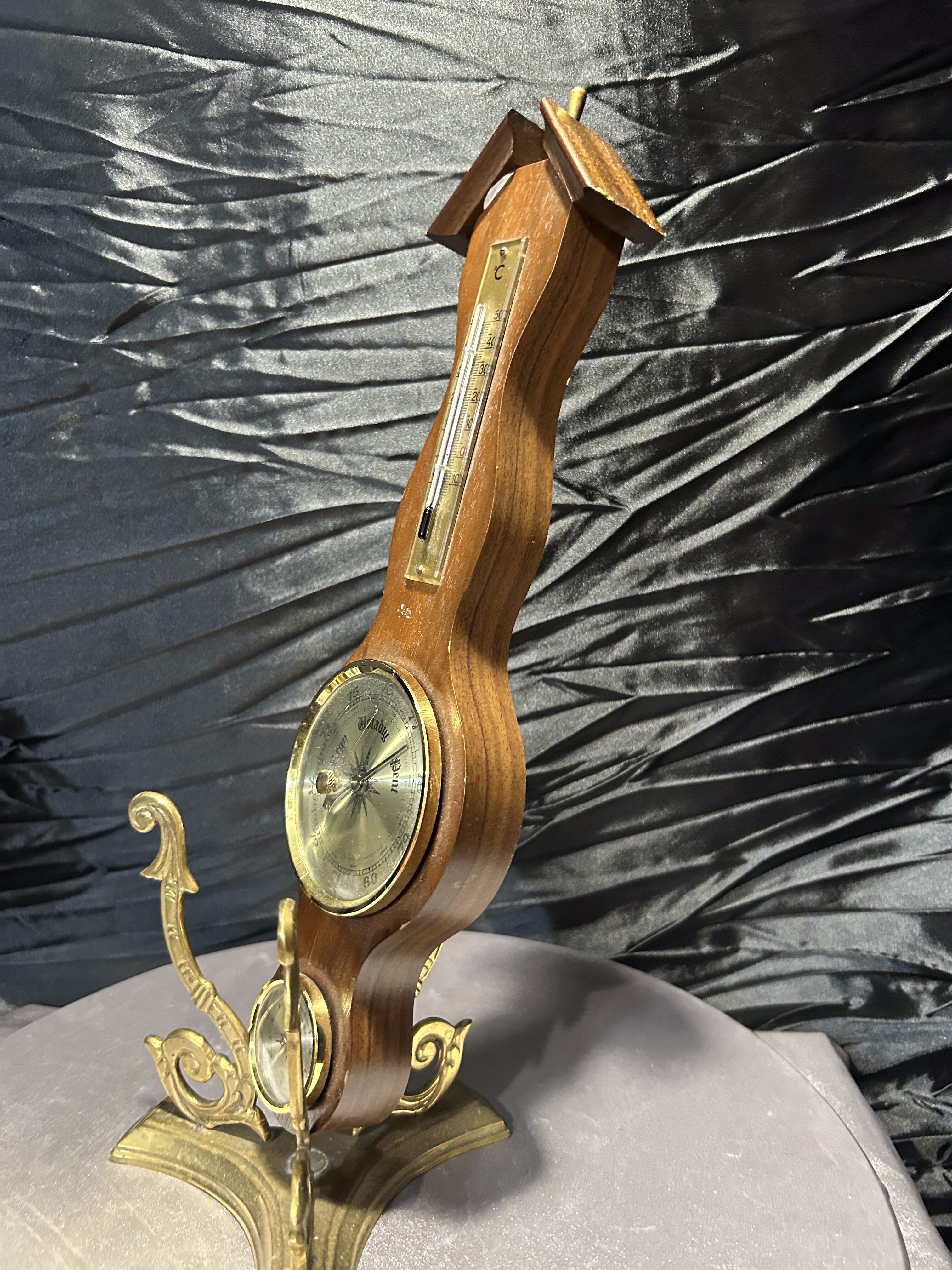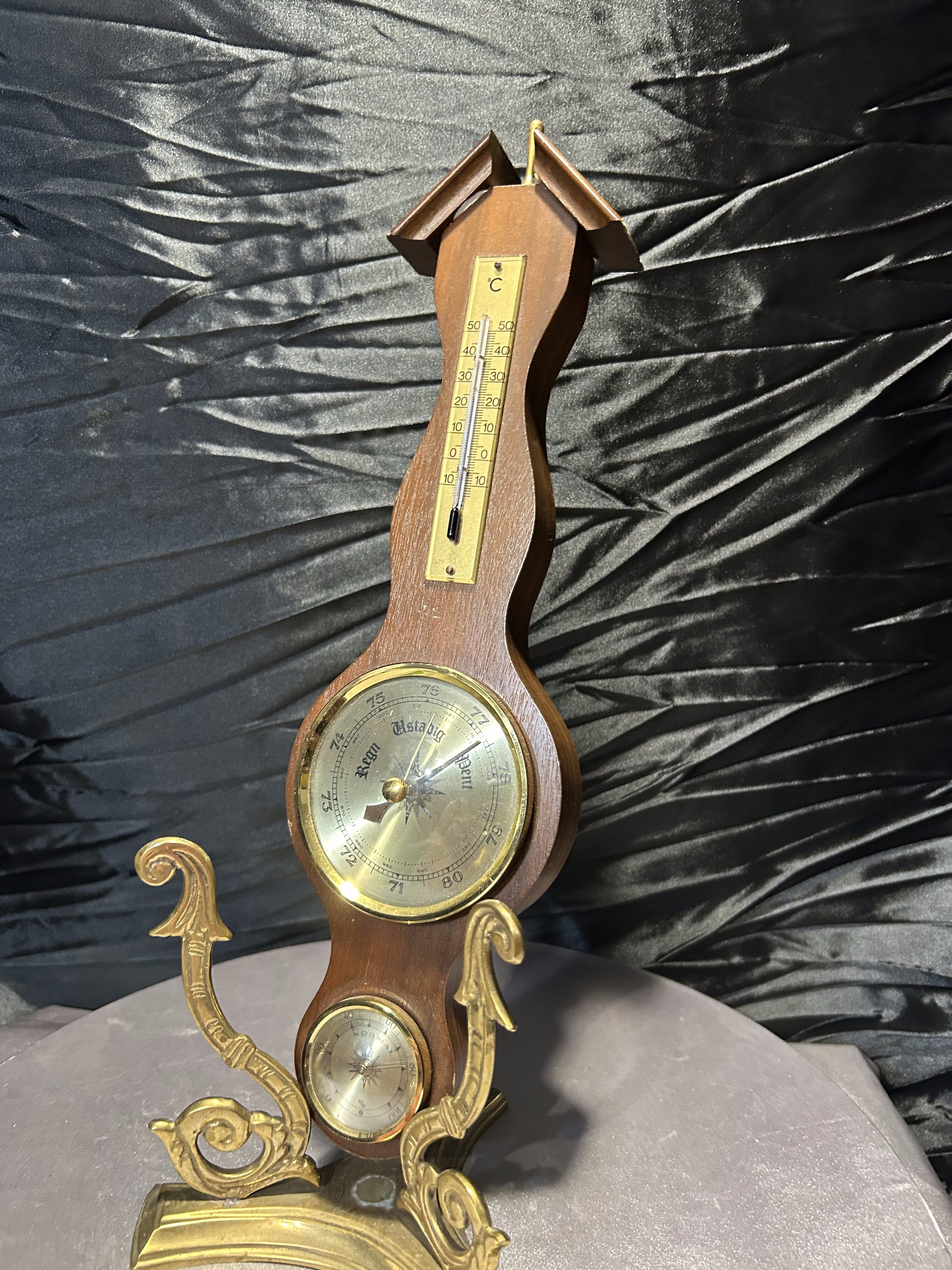 Klasyczna stacja pogody, łącząca funkcjonalność z eleganckim stylem, idealna do wnętrz o tradycyjnym lub vintage charakterze.