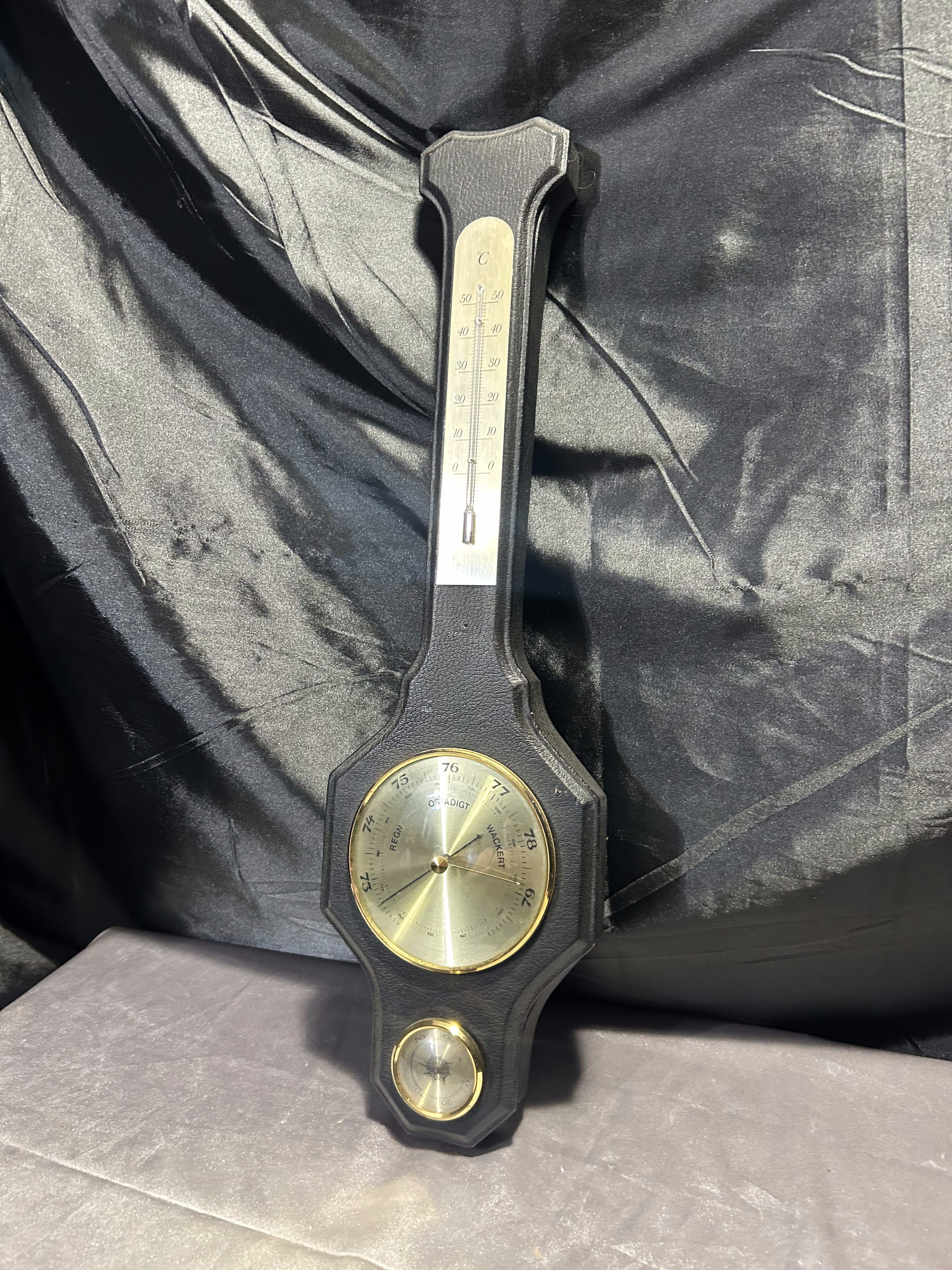Barometr, higrometr, termometr – Rzeźbiona drewniana oprawa – Sygnowany HMH 1994