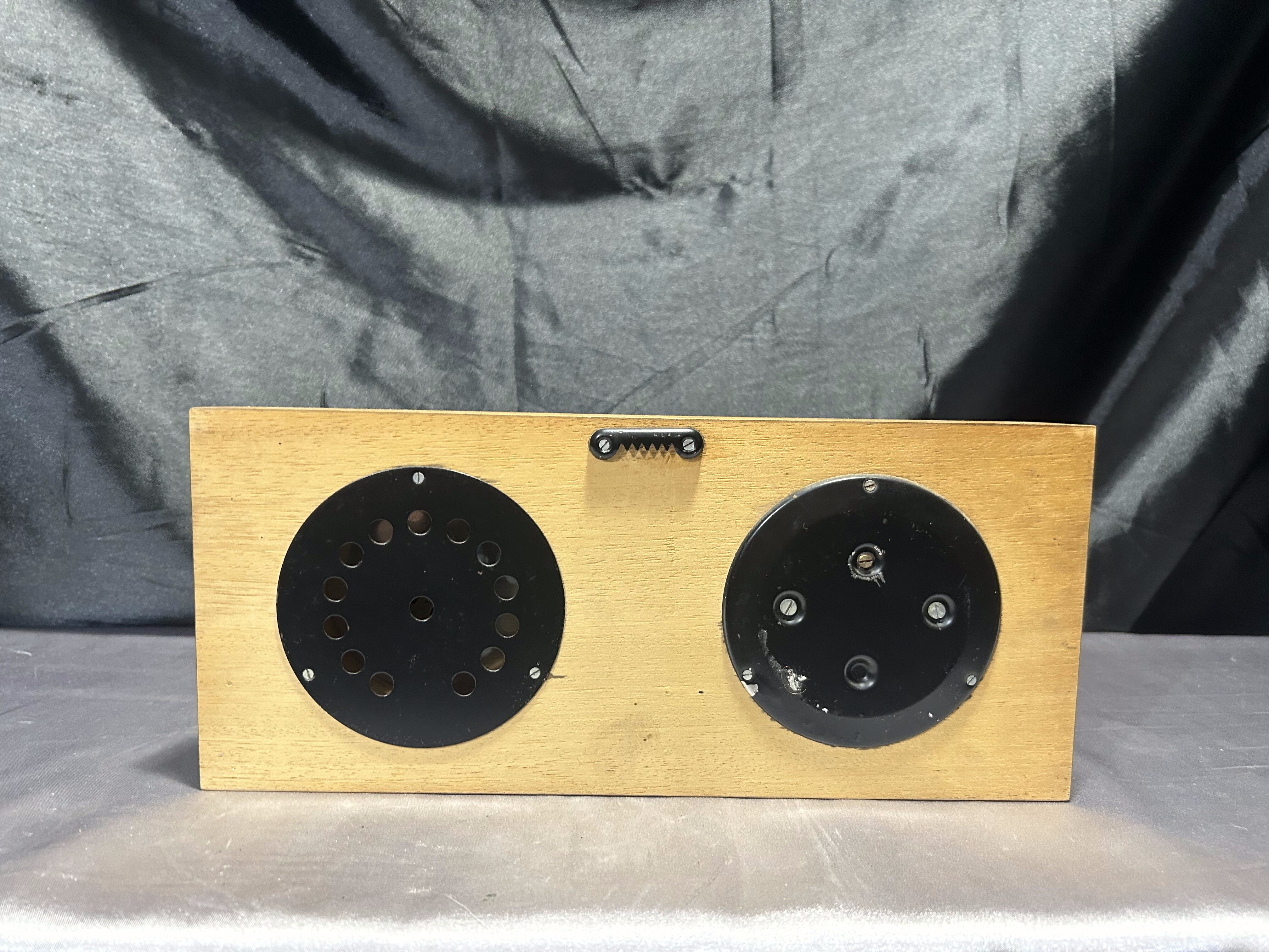 Stylowa stacja meteorologiczna 3w1, w skład której wchodzą barometr, termometr oraz higrometr, oprawione w elegancką, jasną drewnianą ramę. Wszystkie trzy wskaźniki są ułożone poziomo i zamknięte w metalowych pierścieniach, co nadaje całości harmonijny i uporządkowany wygląd.