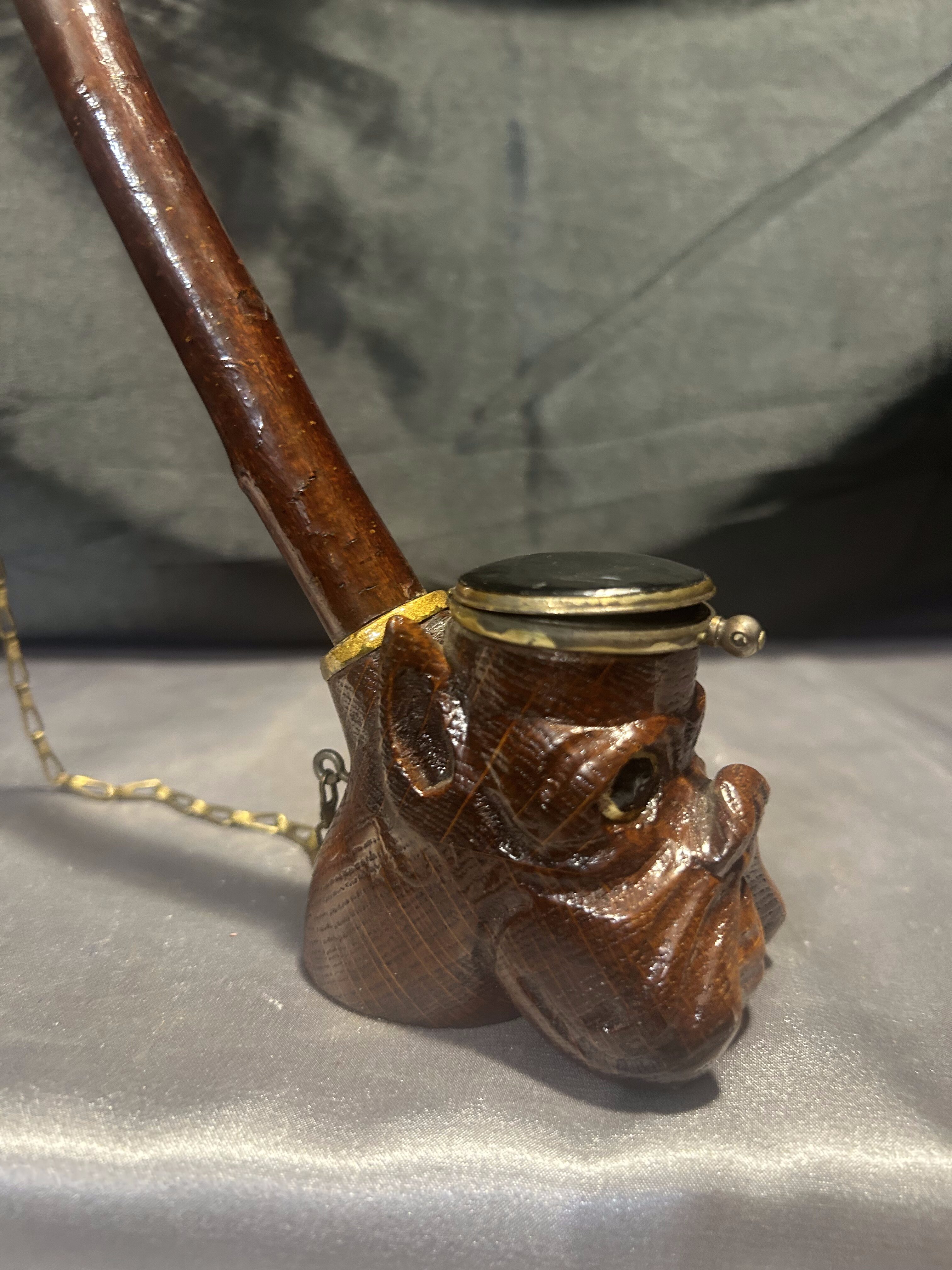 Drewniana Fajka z Podobizną Psa – Ręcznie Rzeźbiona – Z Łańcuszkiem