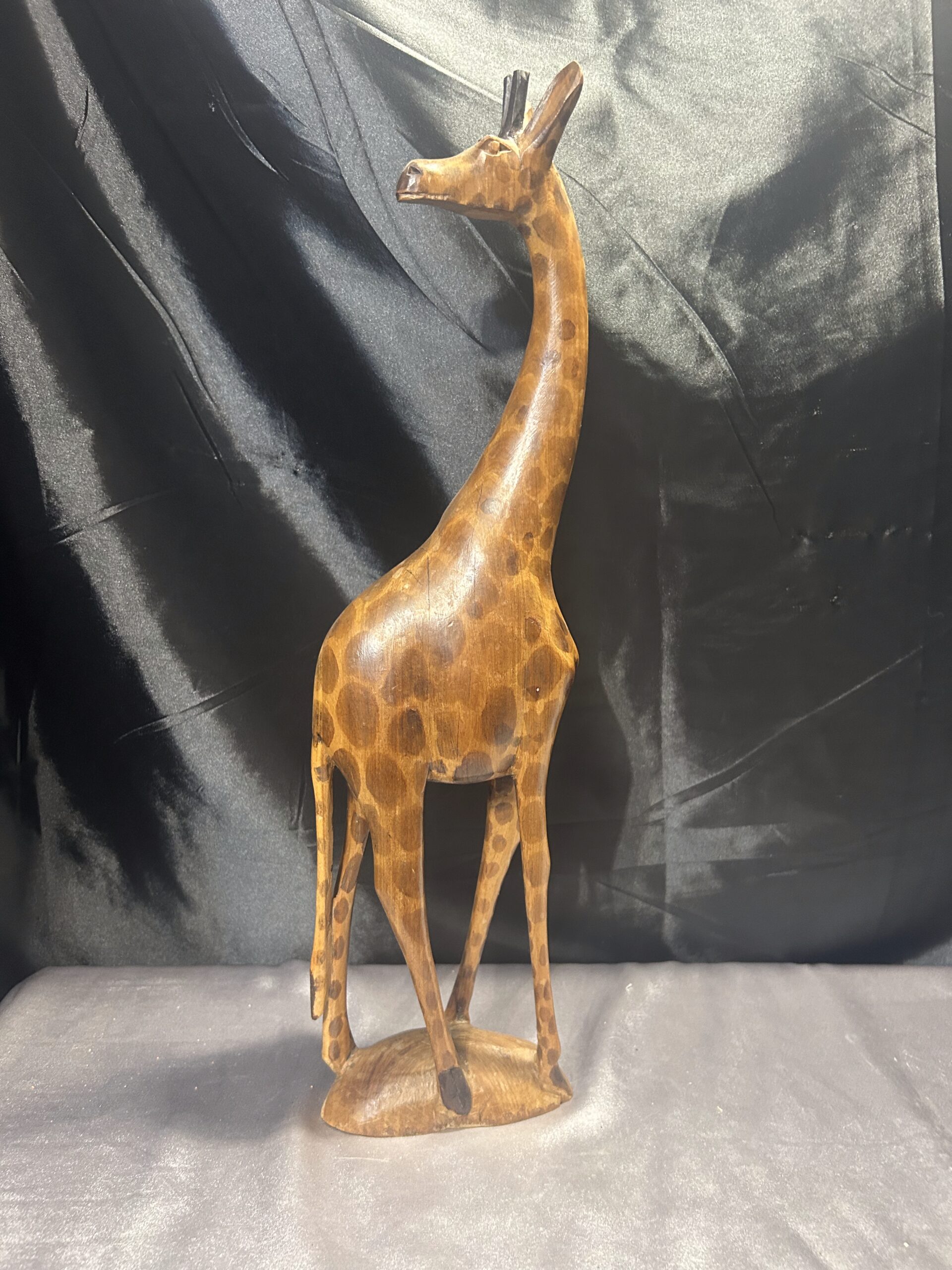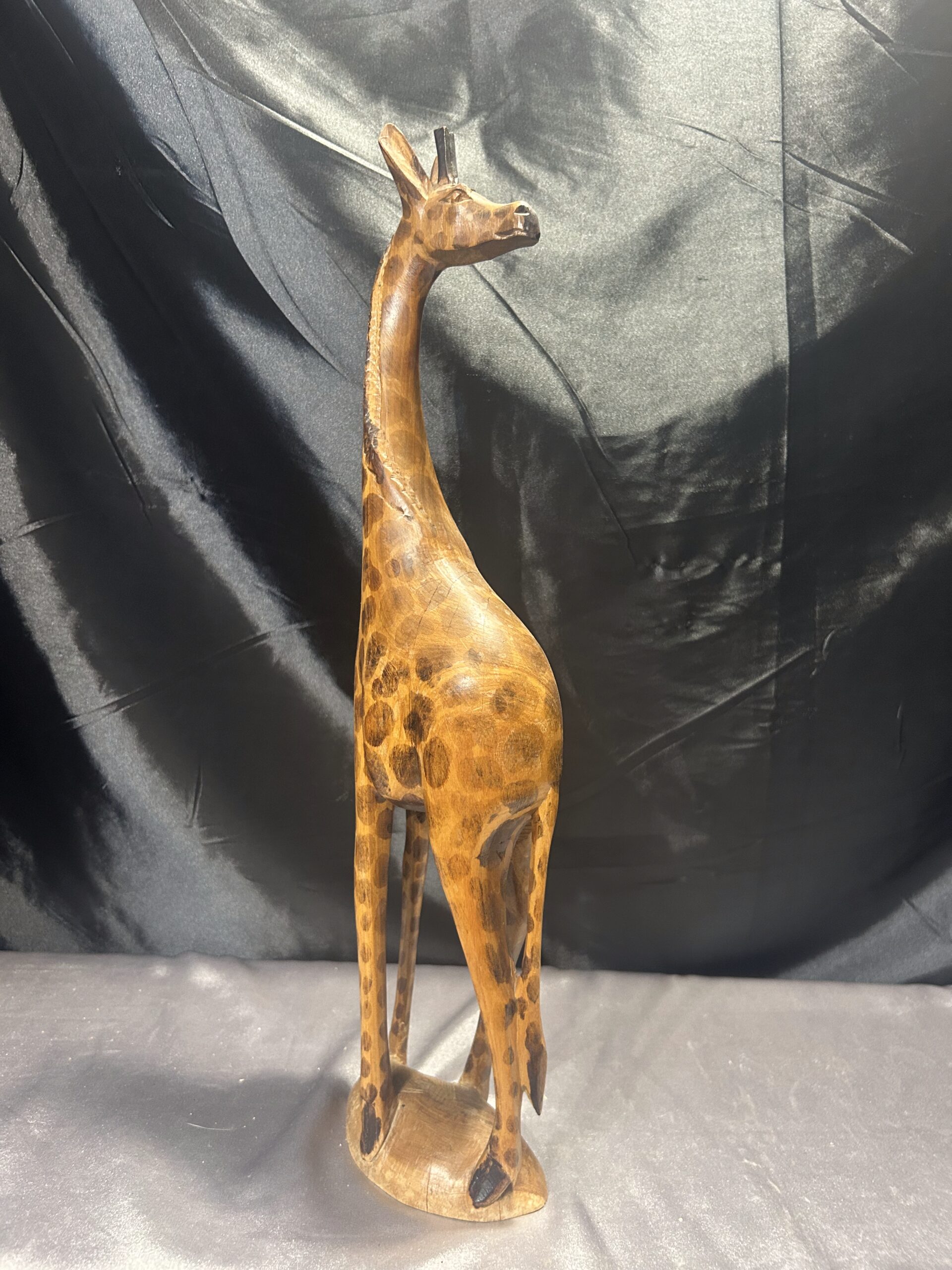 Drewniana rzeźba żyrafy – realistyczna figurka z egzotycznego drewna
