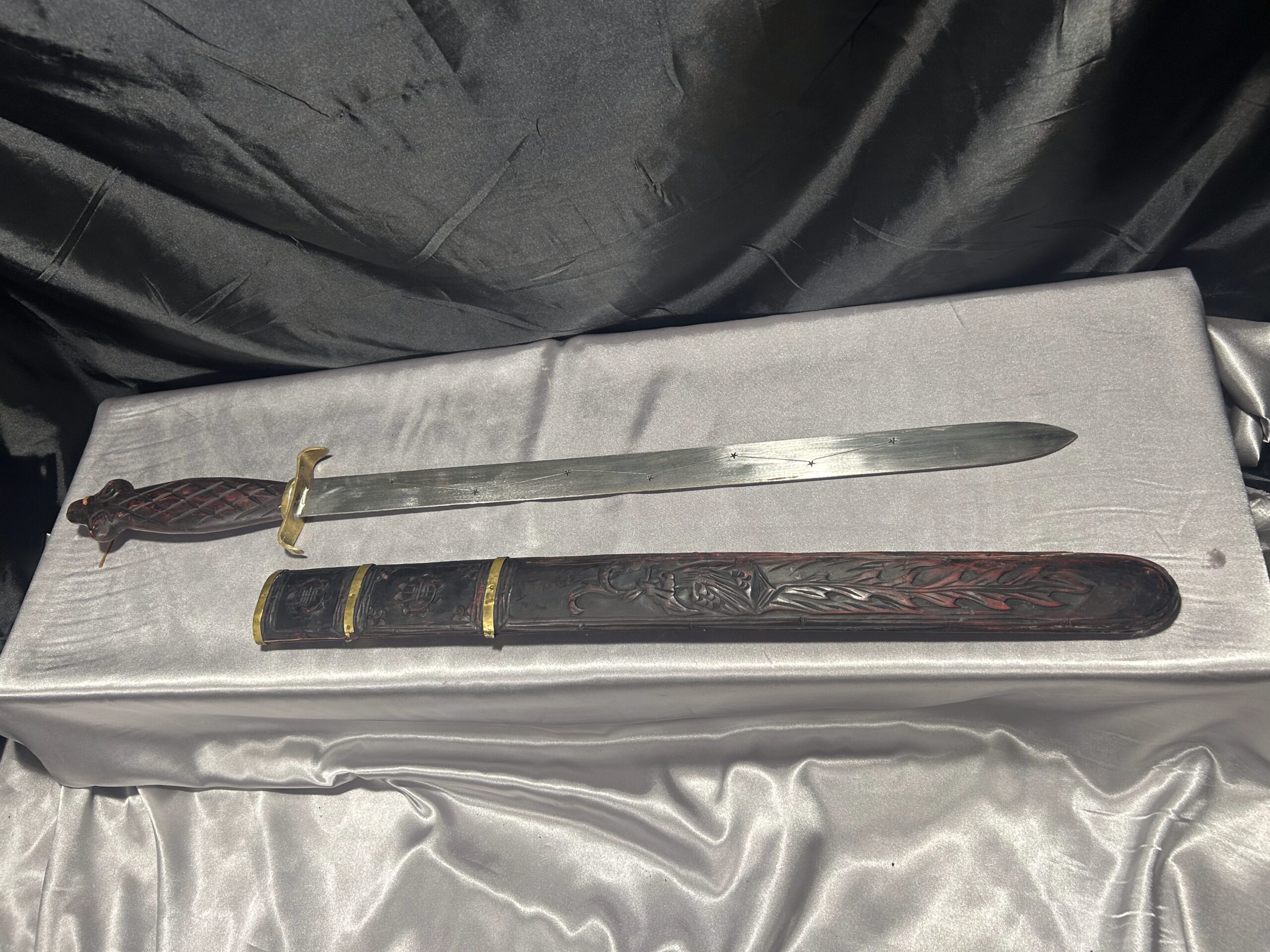 Szabla w stylu afrykańskim z rzeźbioną pochwą