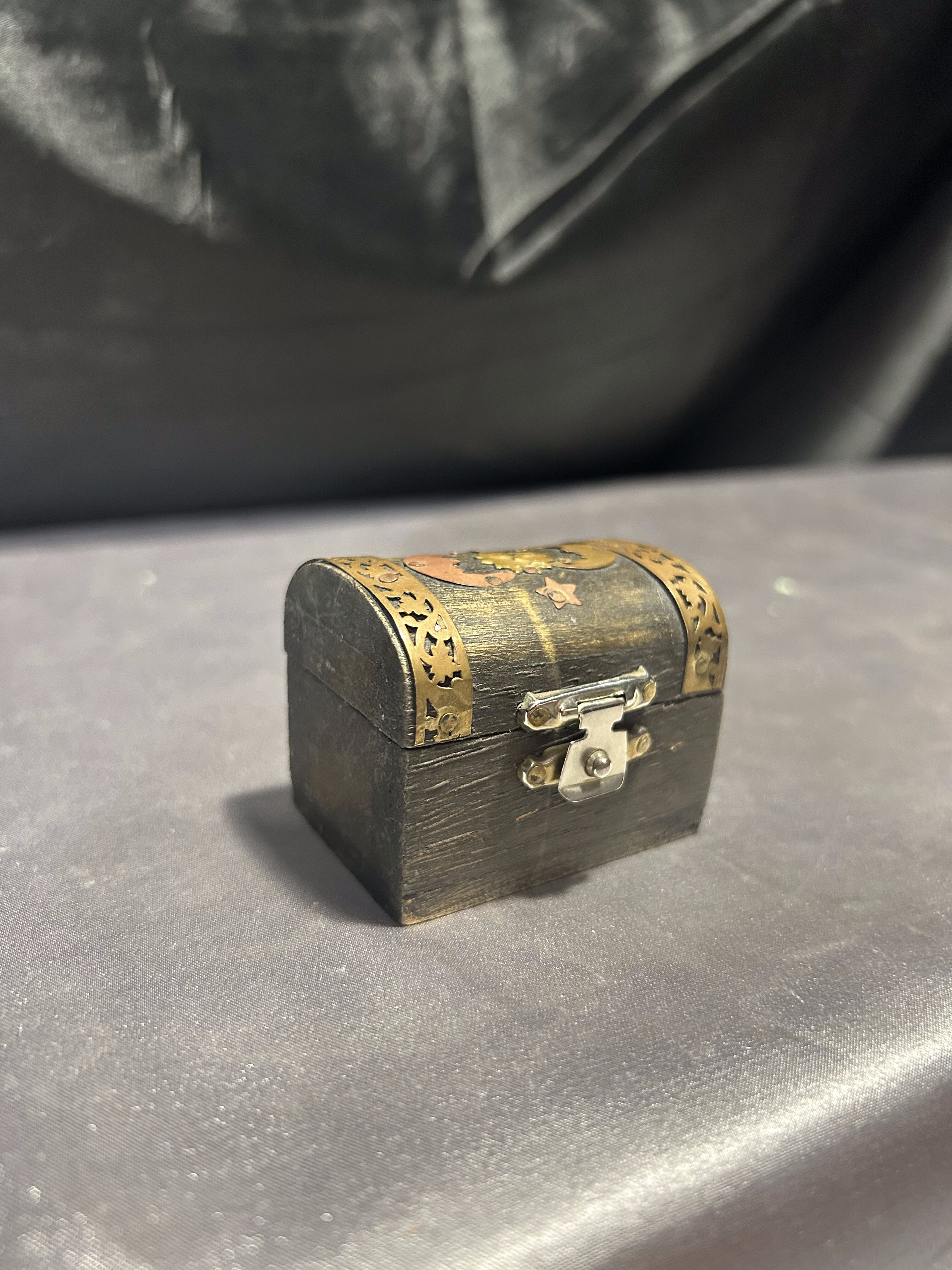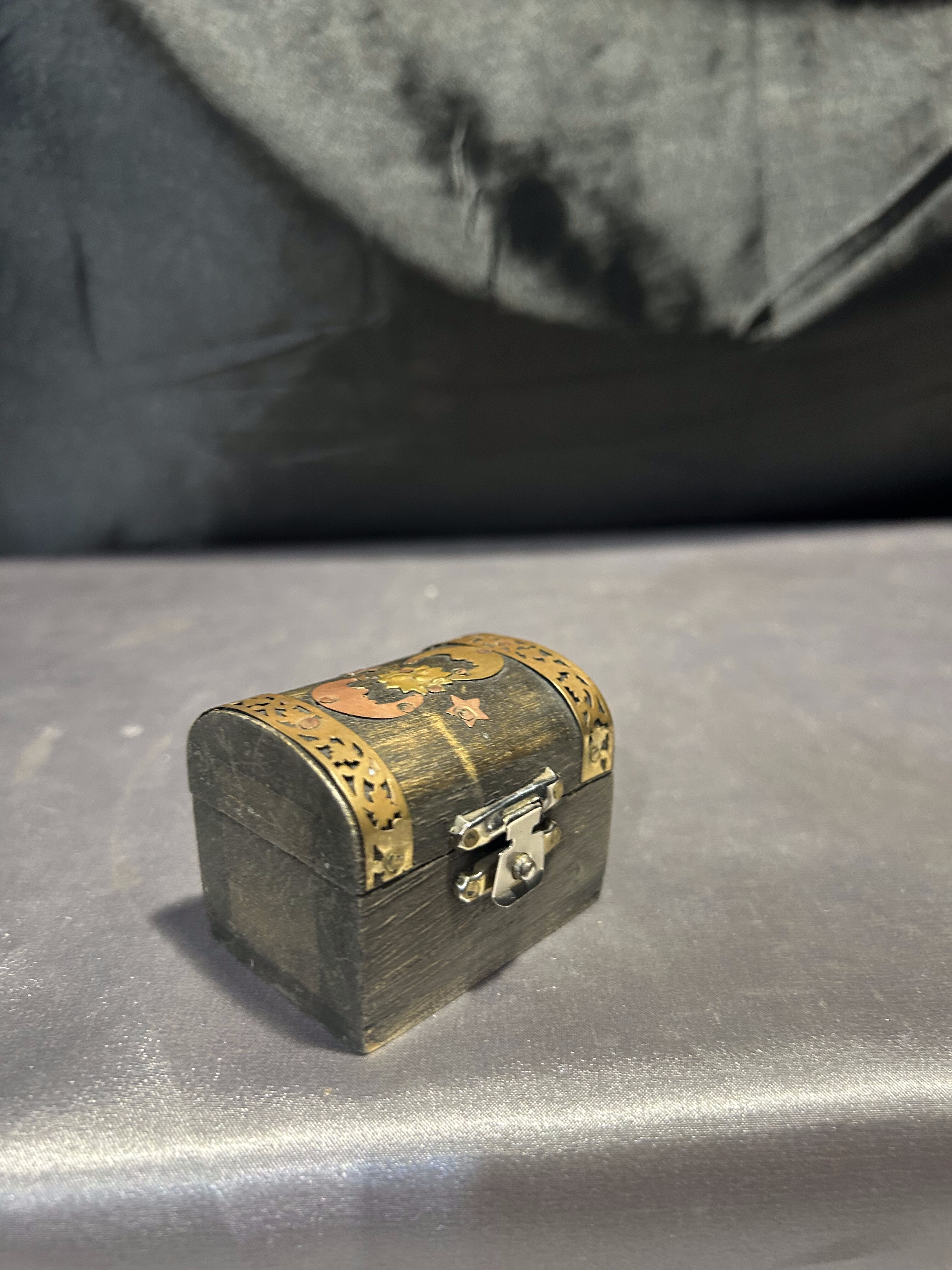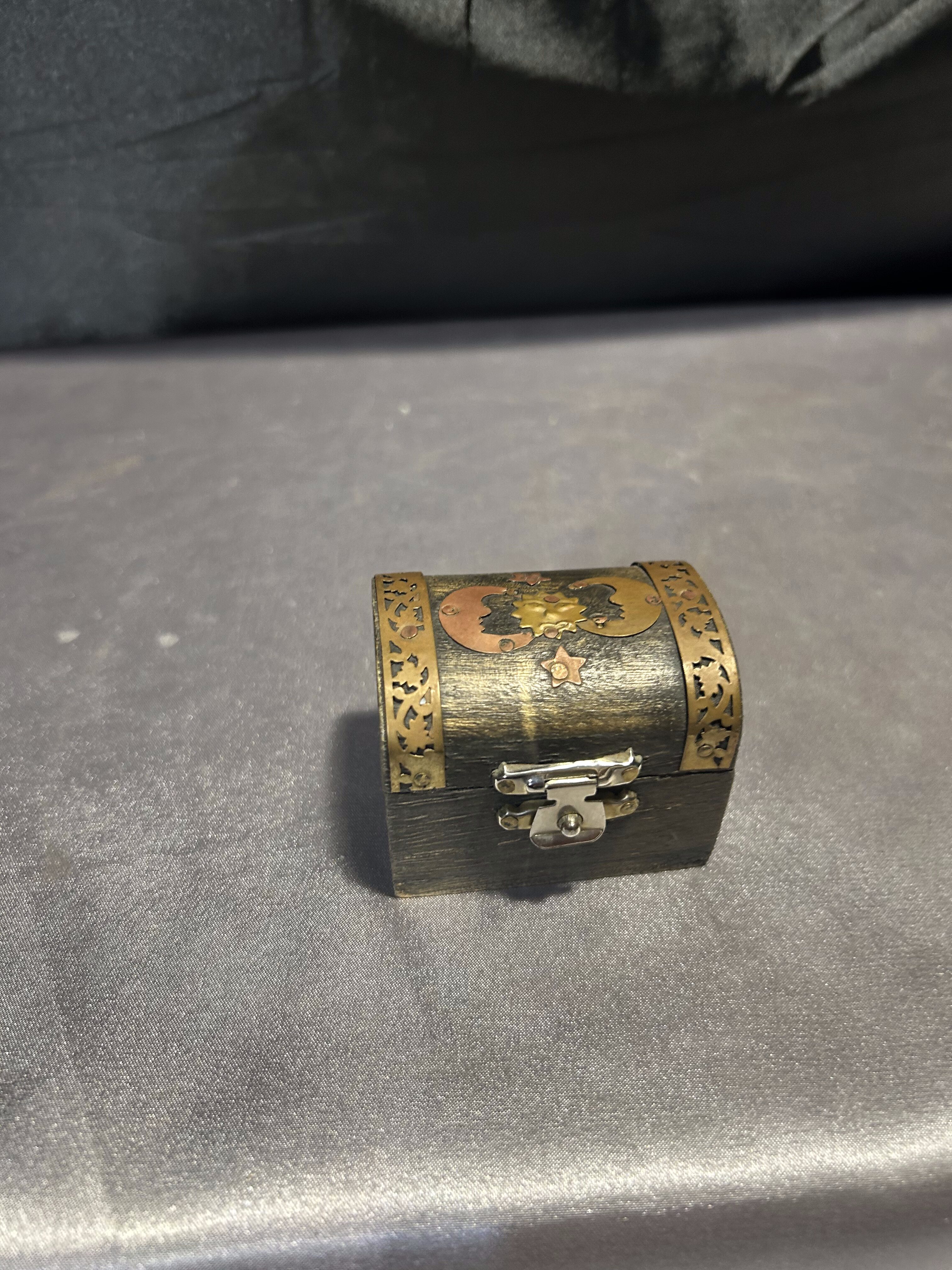 Na sprzedaż elegancka drewniana szkatułka, ozdobiona subtelnymi zdobieniami, które nadają jej wyjątkowy charakter. Jej niewielkie wymiary sprawiają, że doskonale nadaje się do przechowywania drobiazgów, biżuterii lub pamiątek.