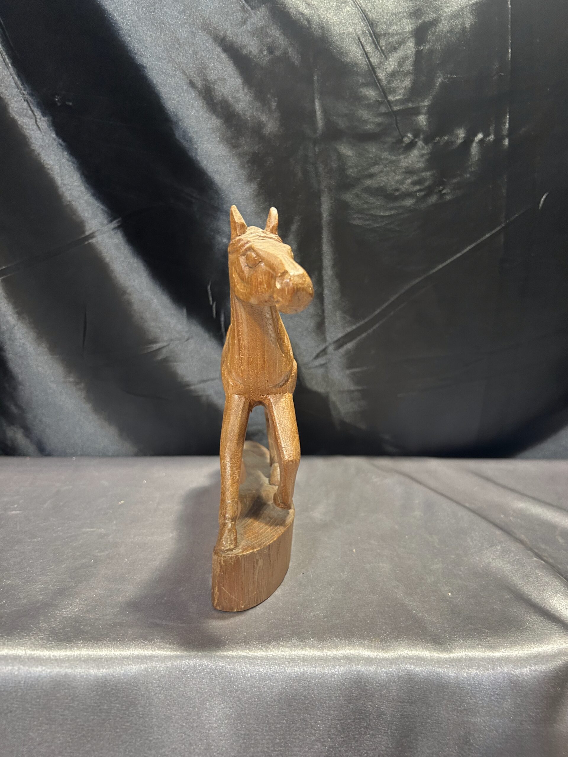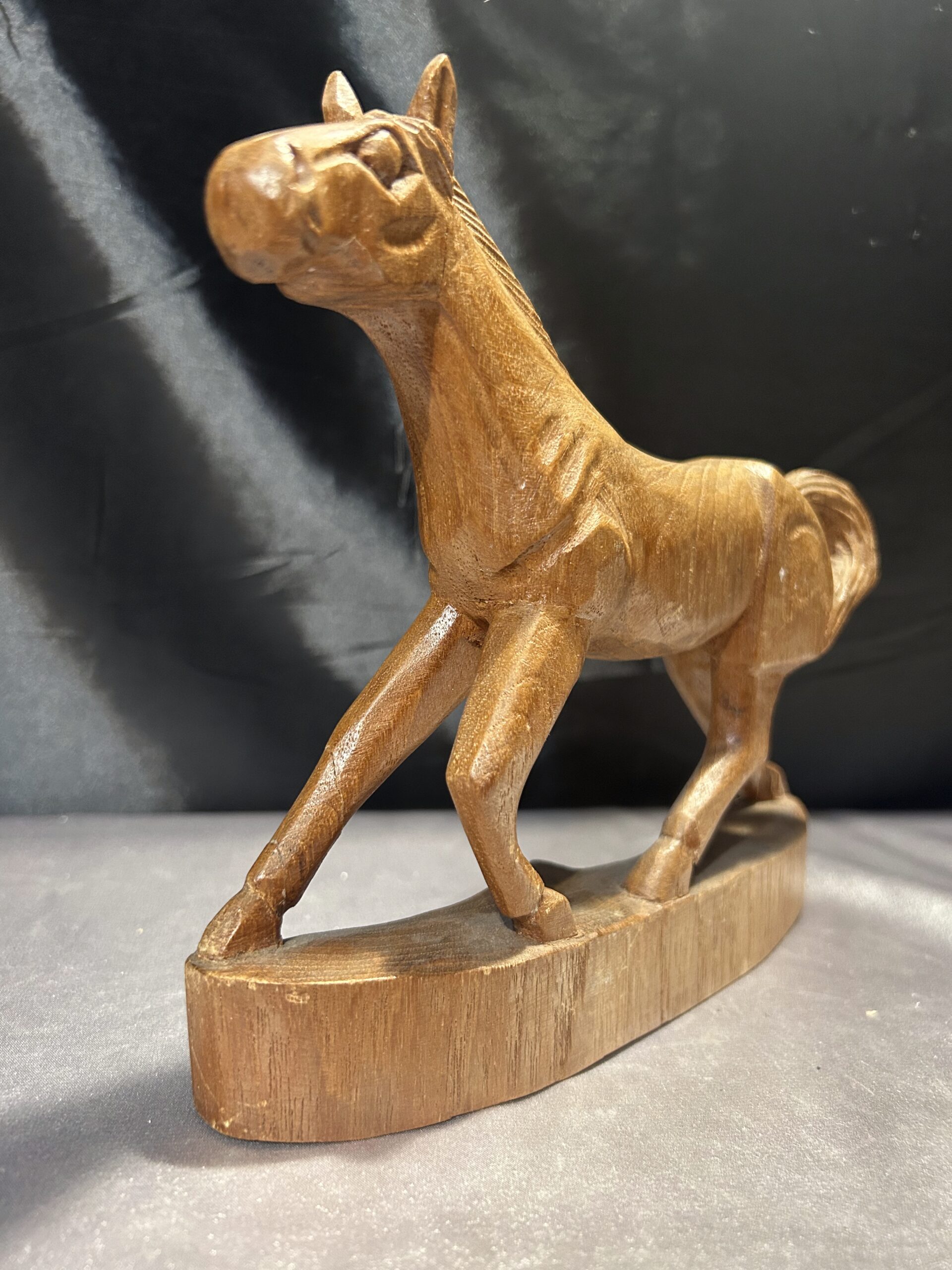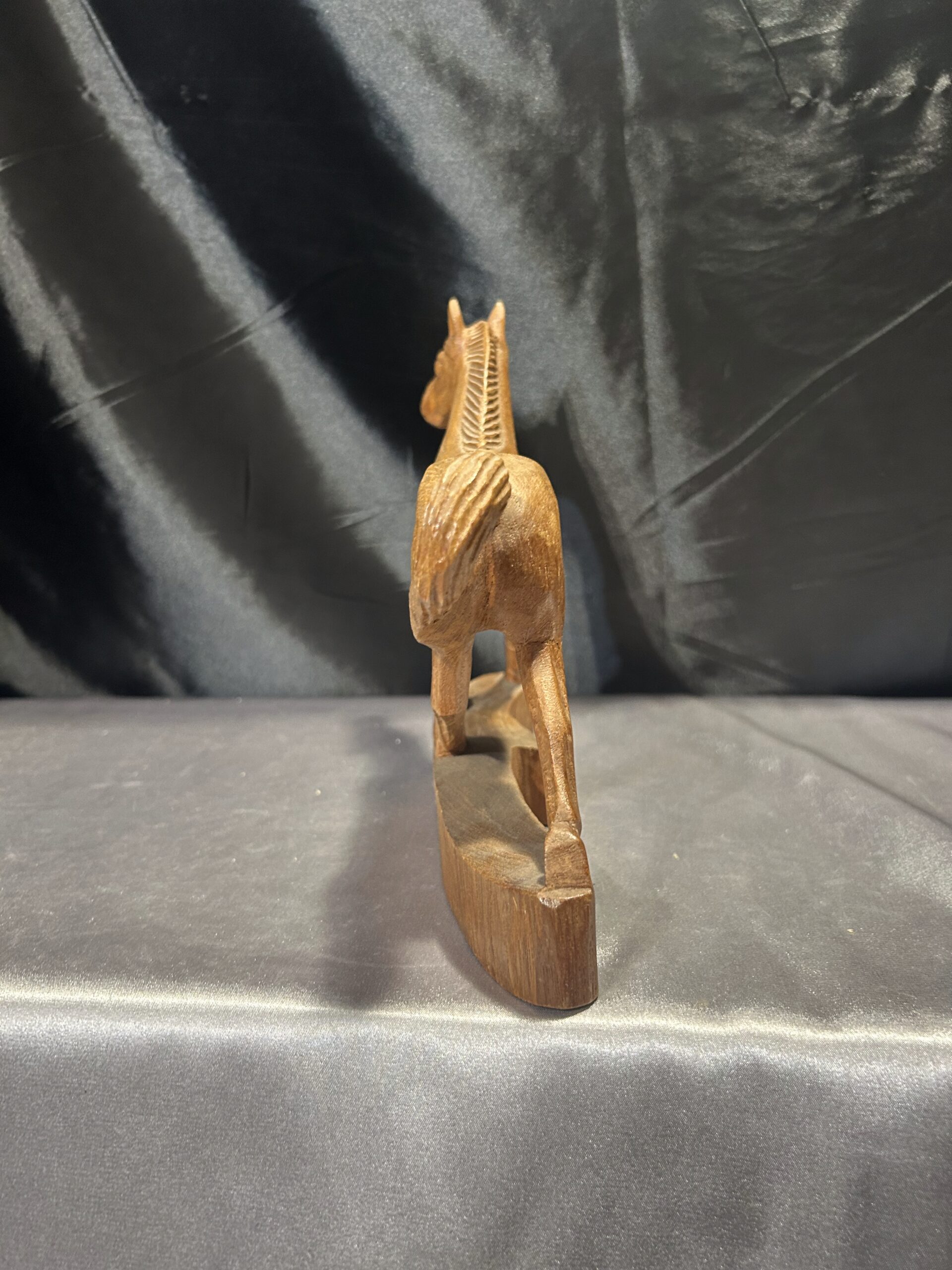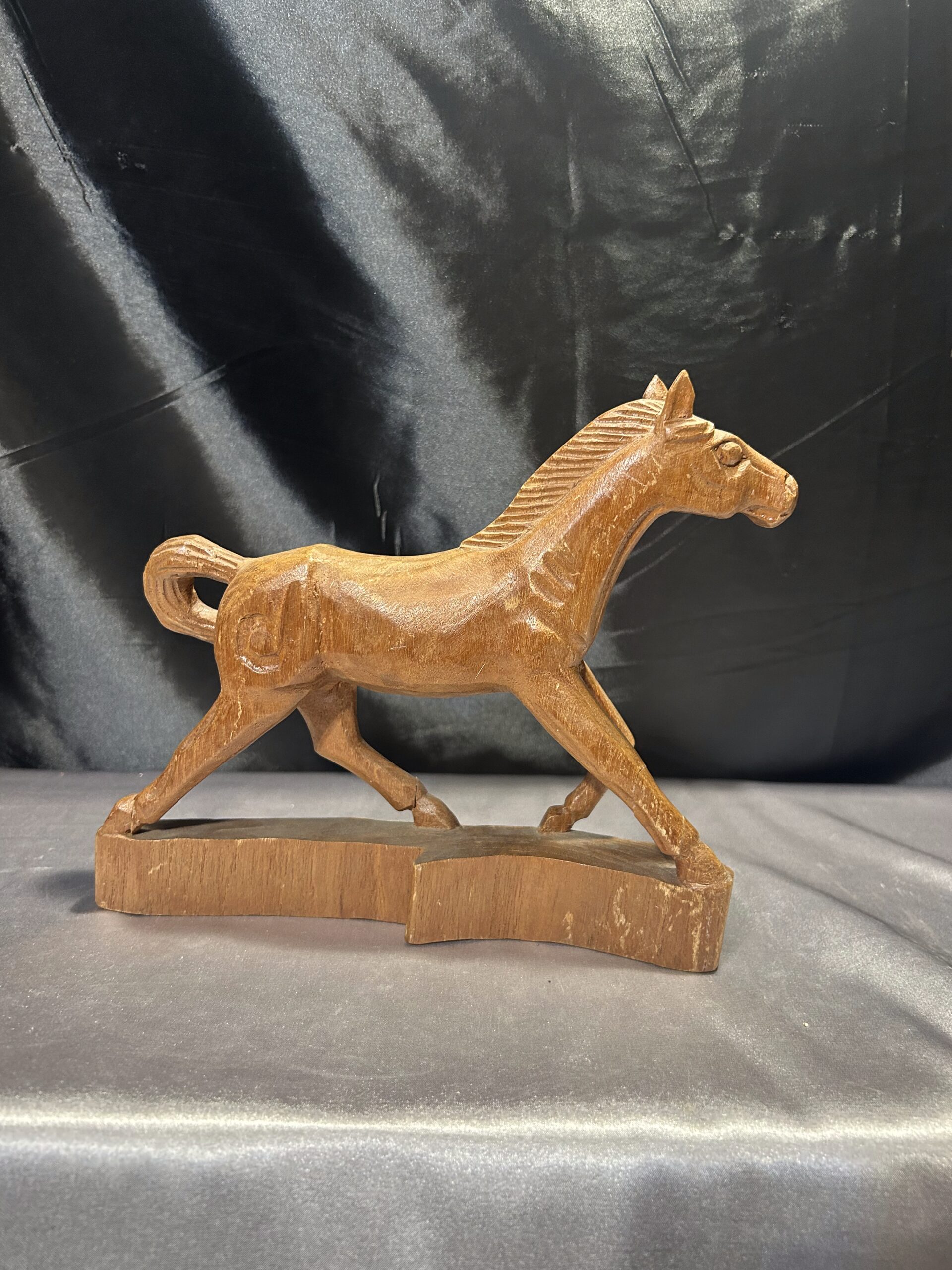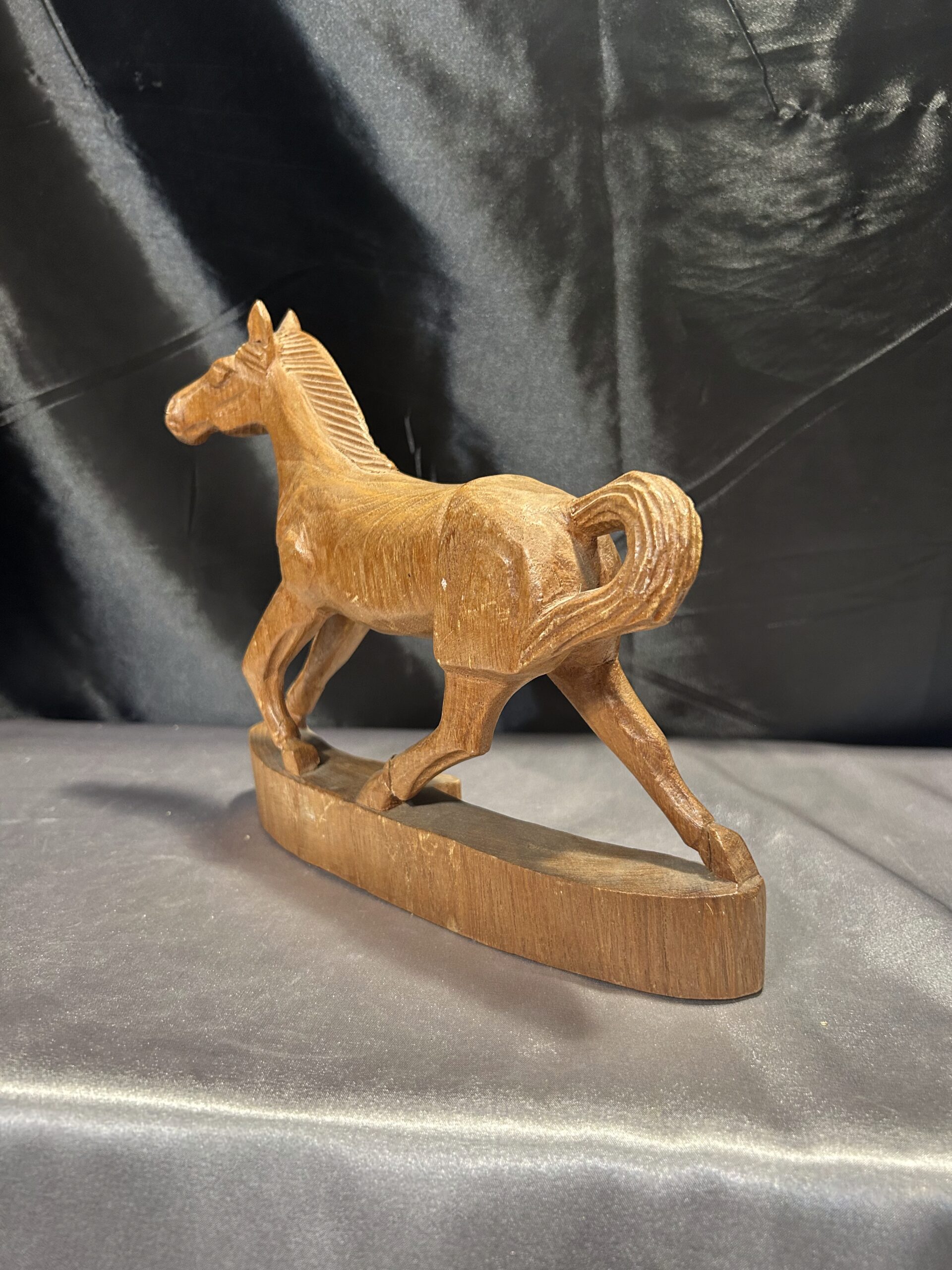 Przedstawiam drewnianą rzeźbę konia w biegu, wykonaną z dbałością o detale i realistyczne proporcje. Dynamiczna poza i precyzyjne wykończenie sprawiają, że rzeźba oddaje ruch i siłę galopującego konia, czyniąc ją wyjątkową dekoracją wnętrza.
