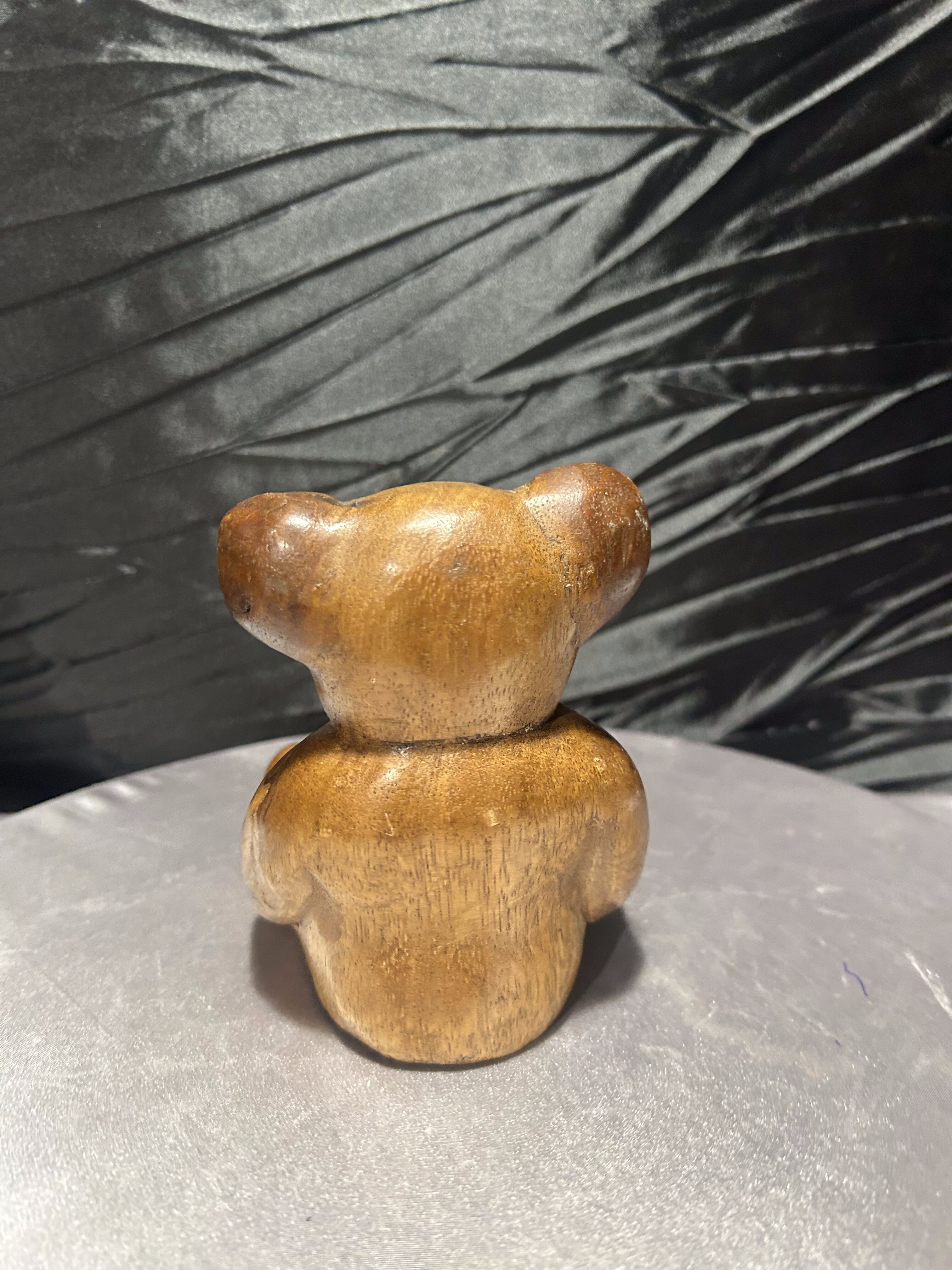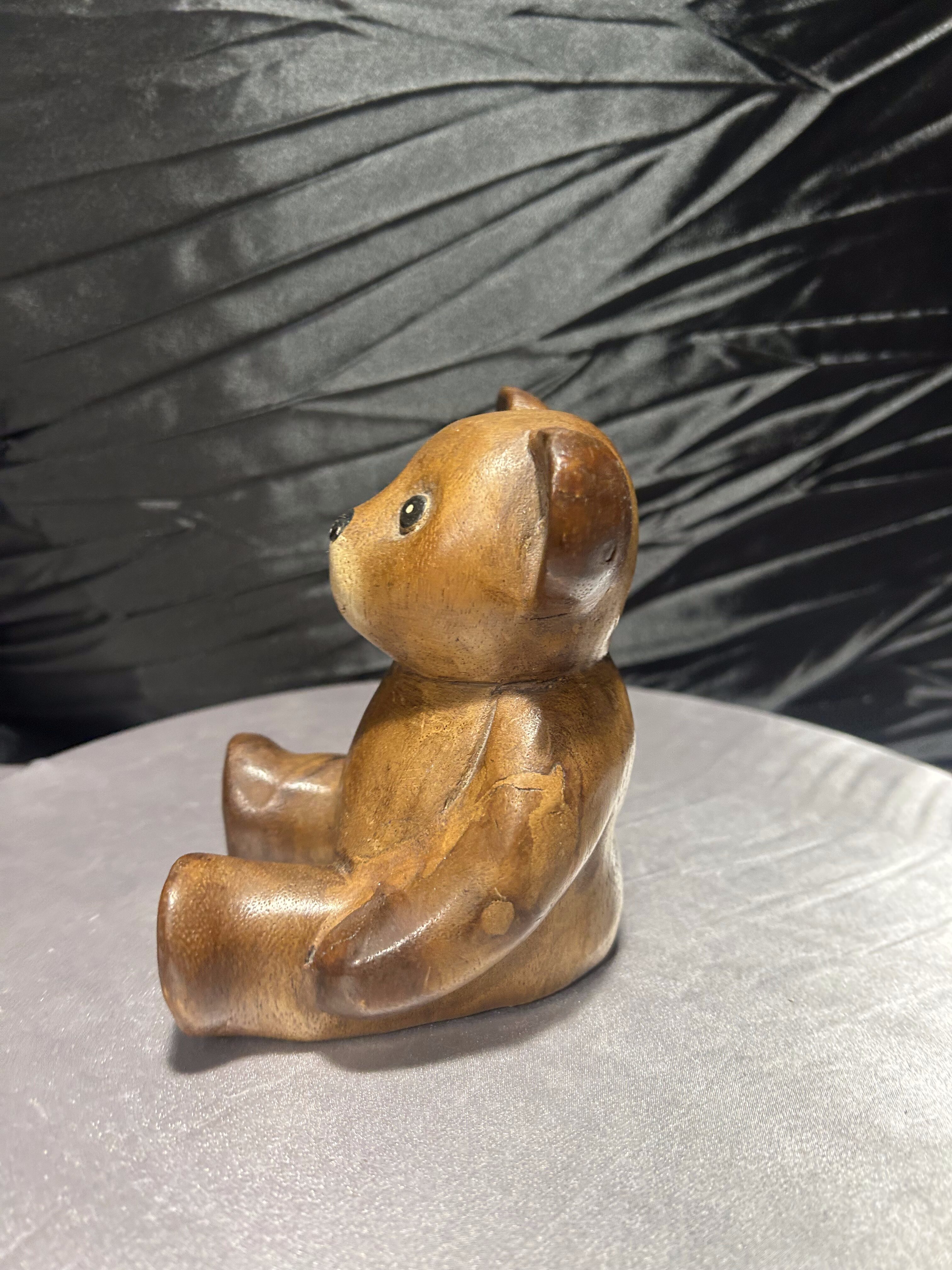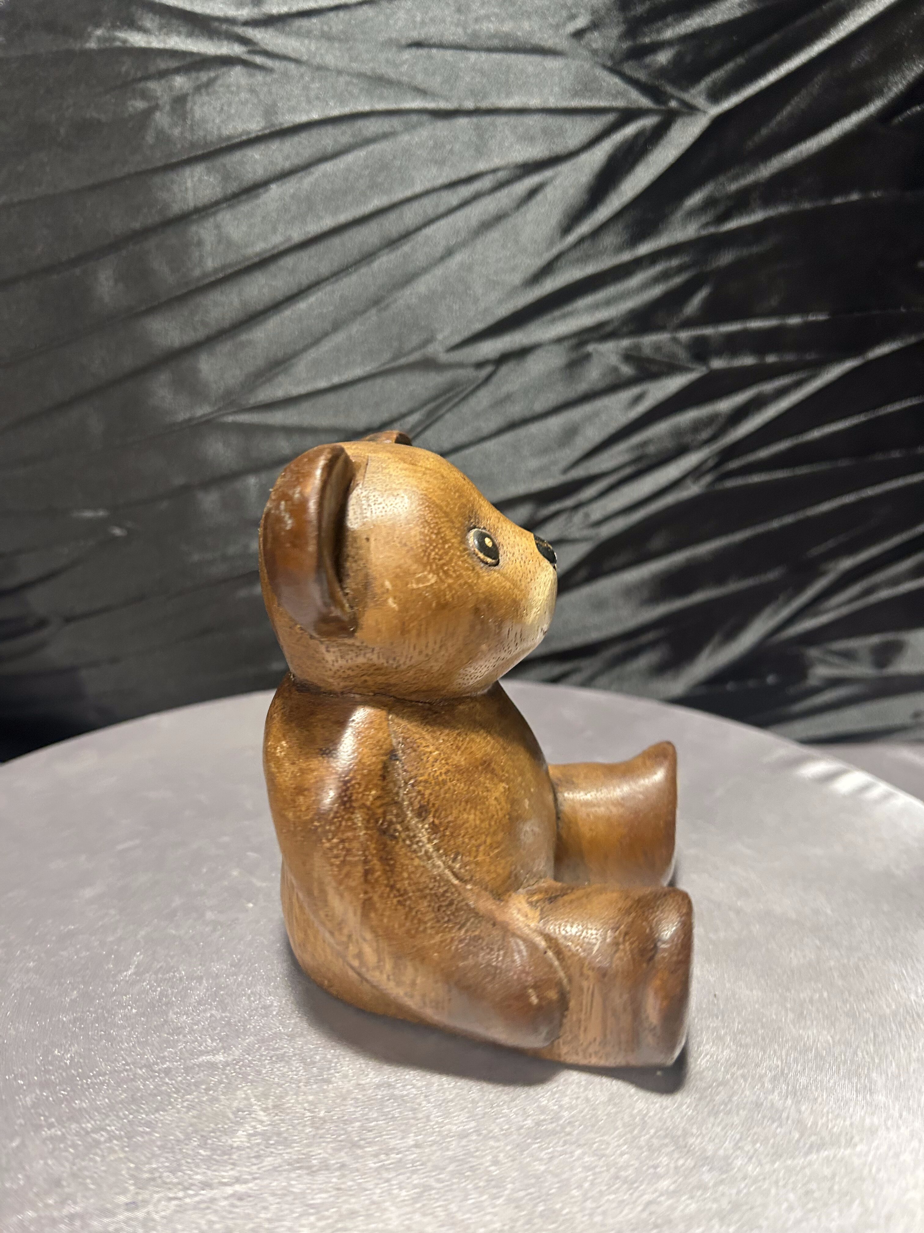 Drewniany miś siedzący – urocza ręcznie rzeźbiona ozdoba, wysokość 13,5 cm
