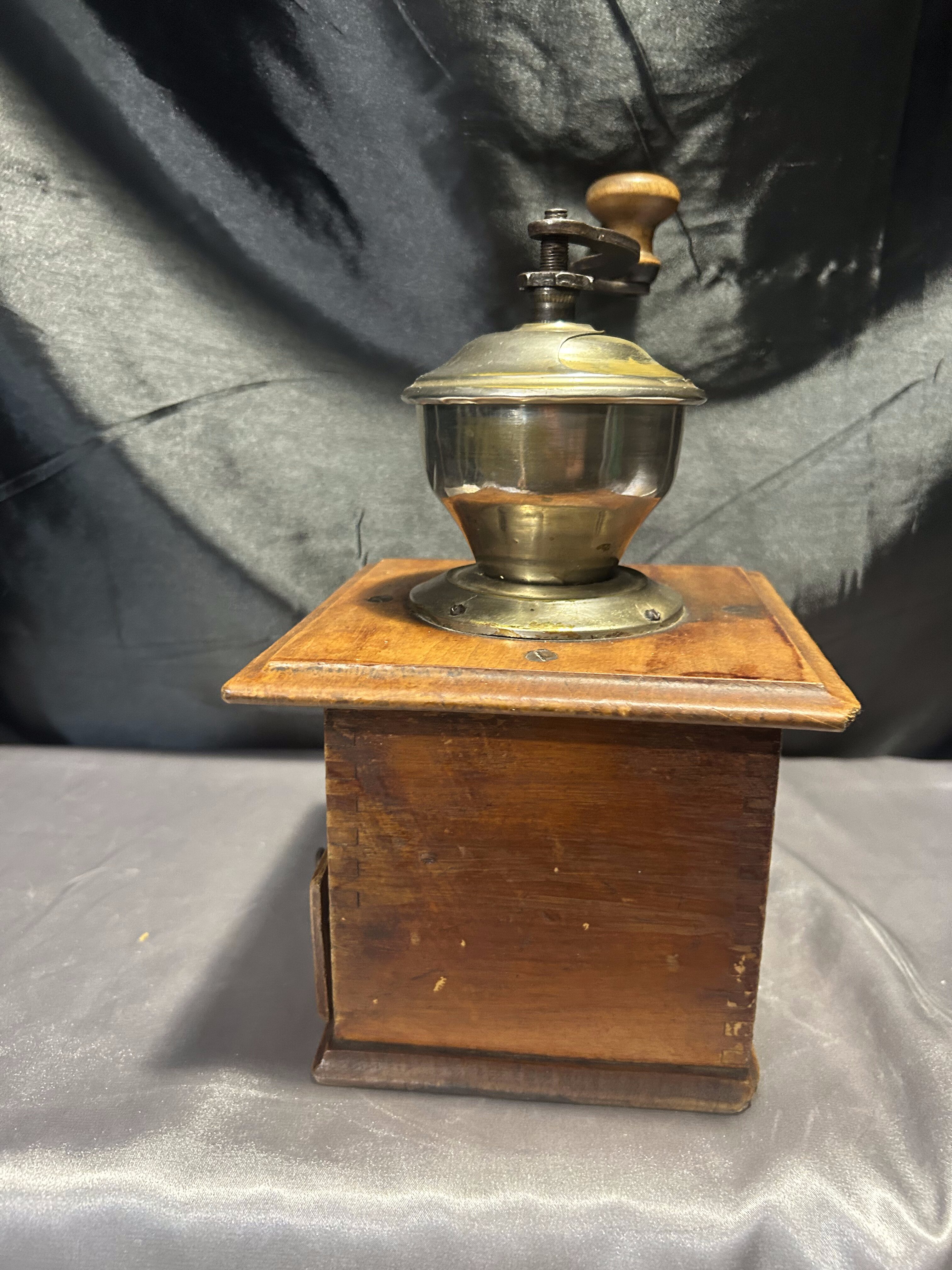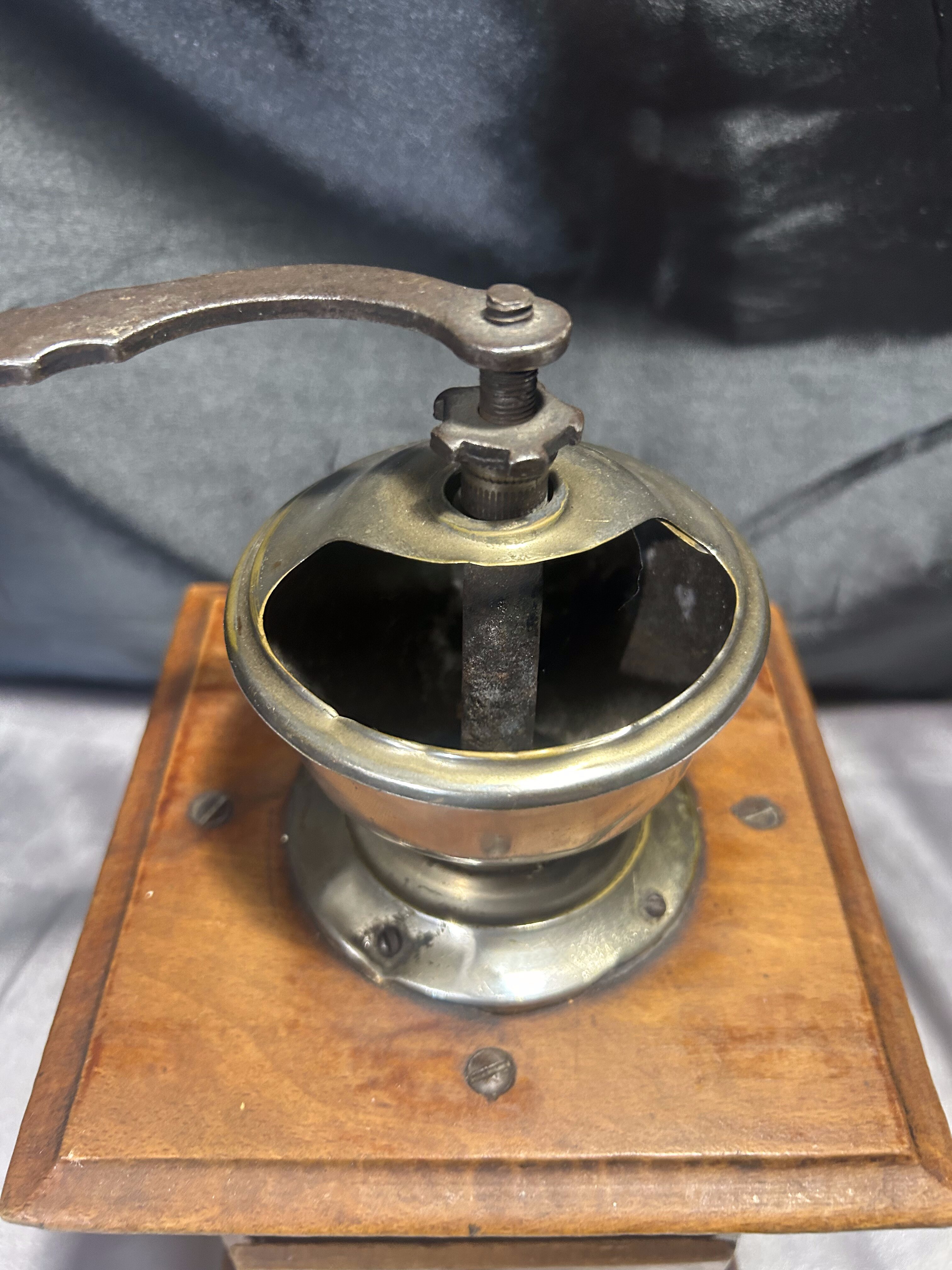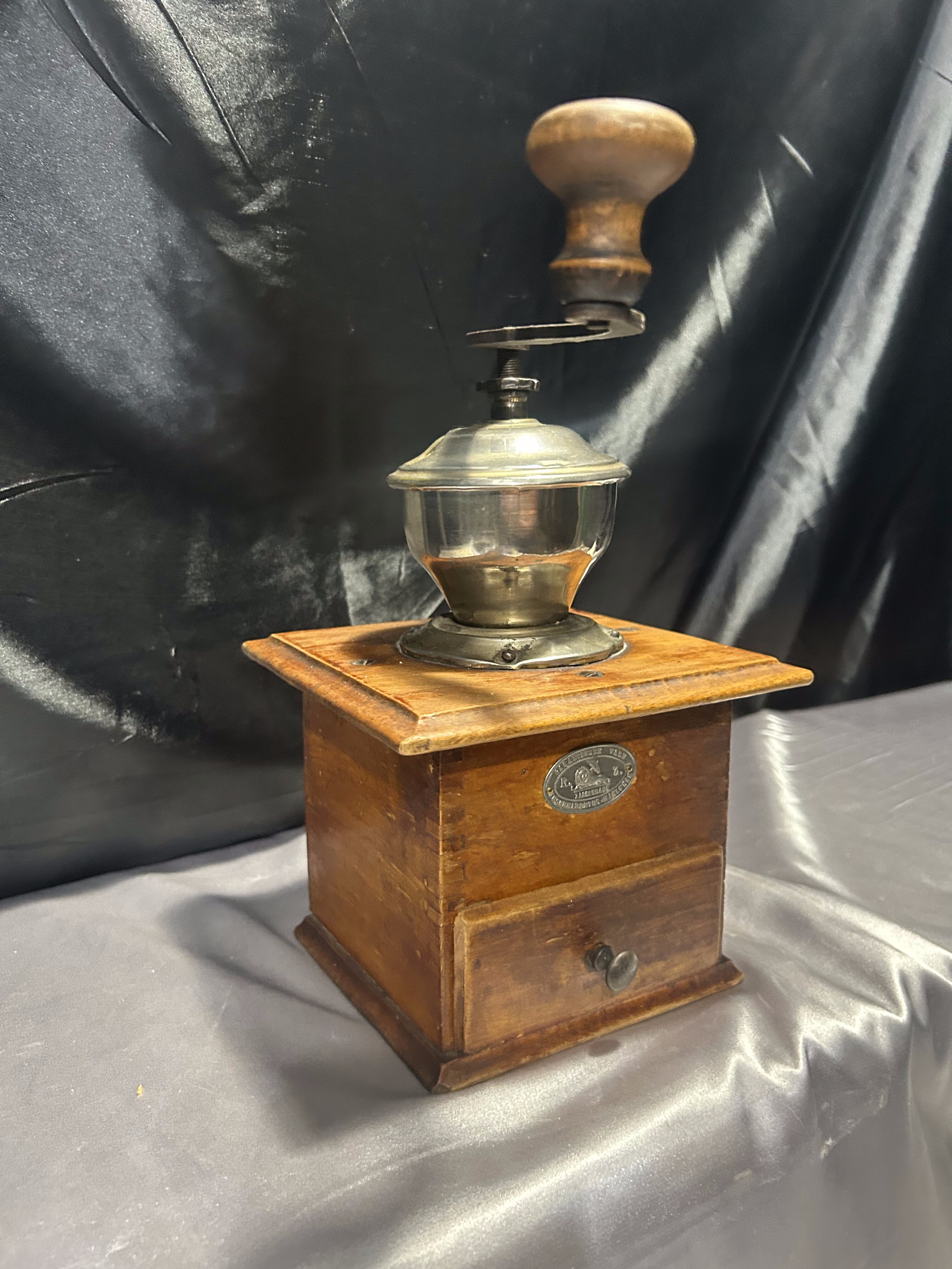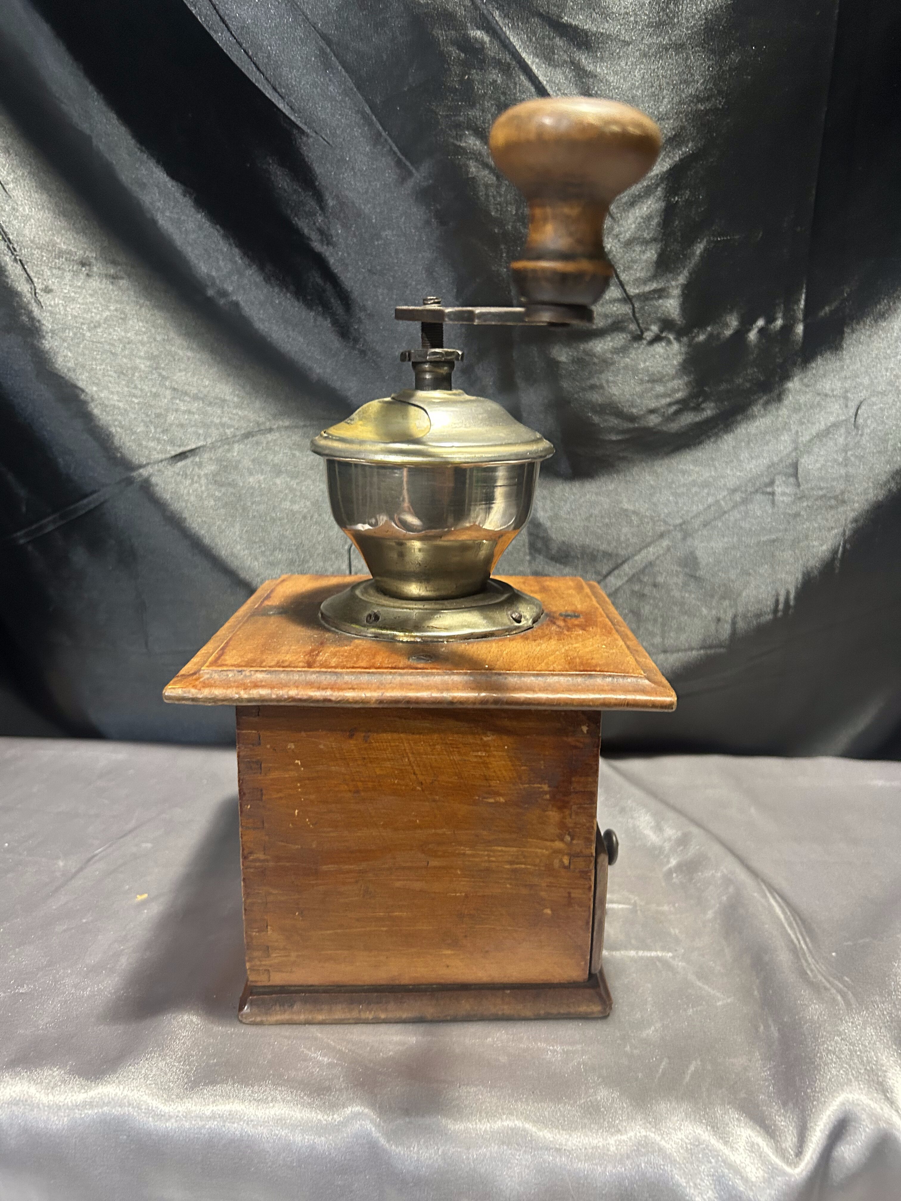 Zabytkowy młynek do kawy – Drewniana obudowa – Szufladka – Kolekcjonerski egzemplarz