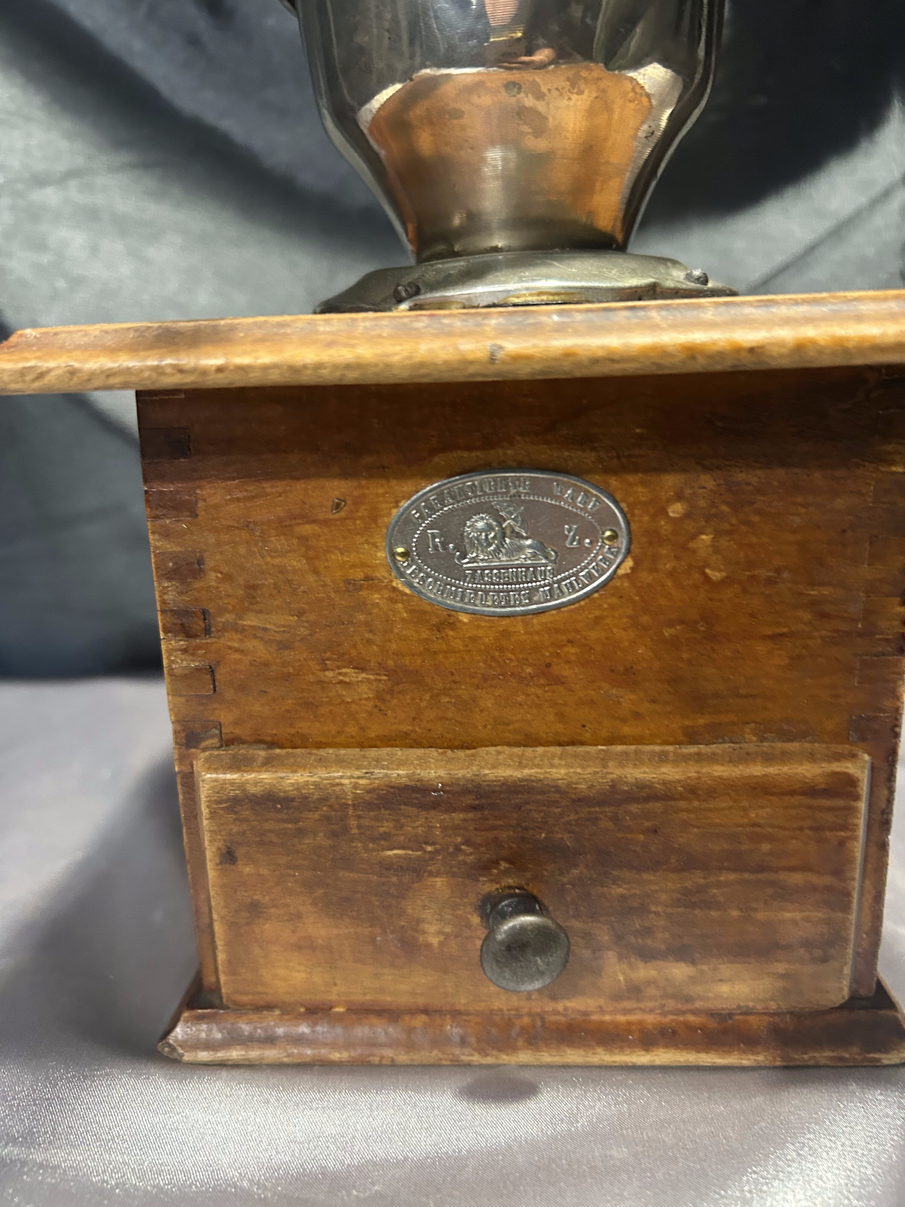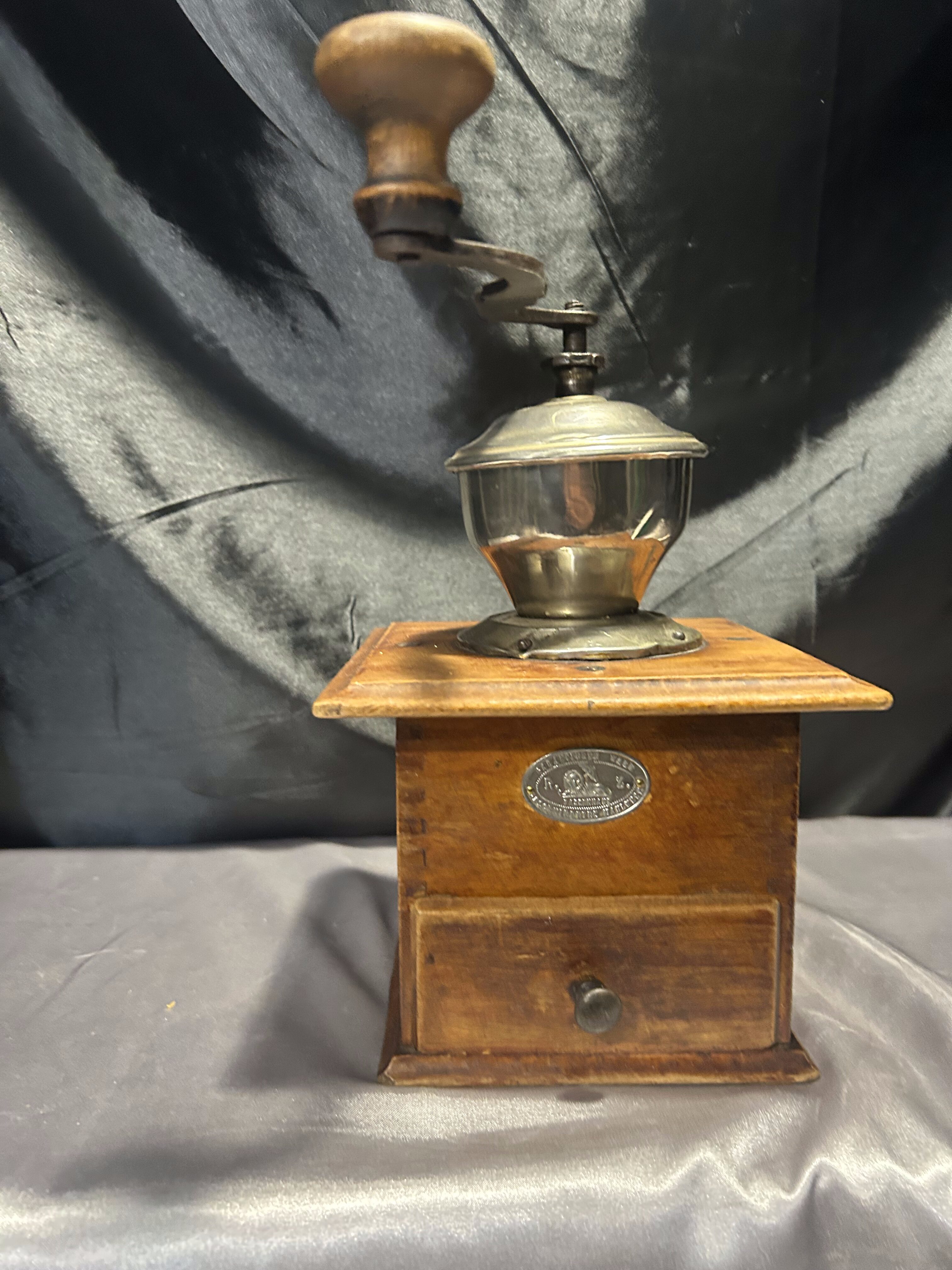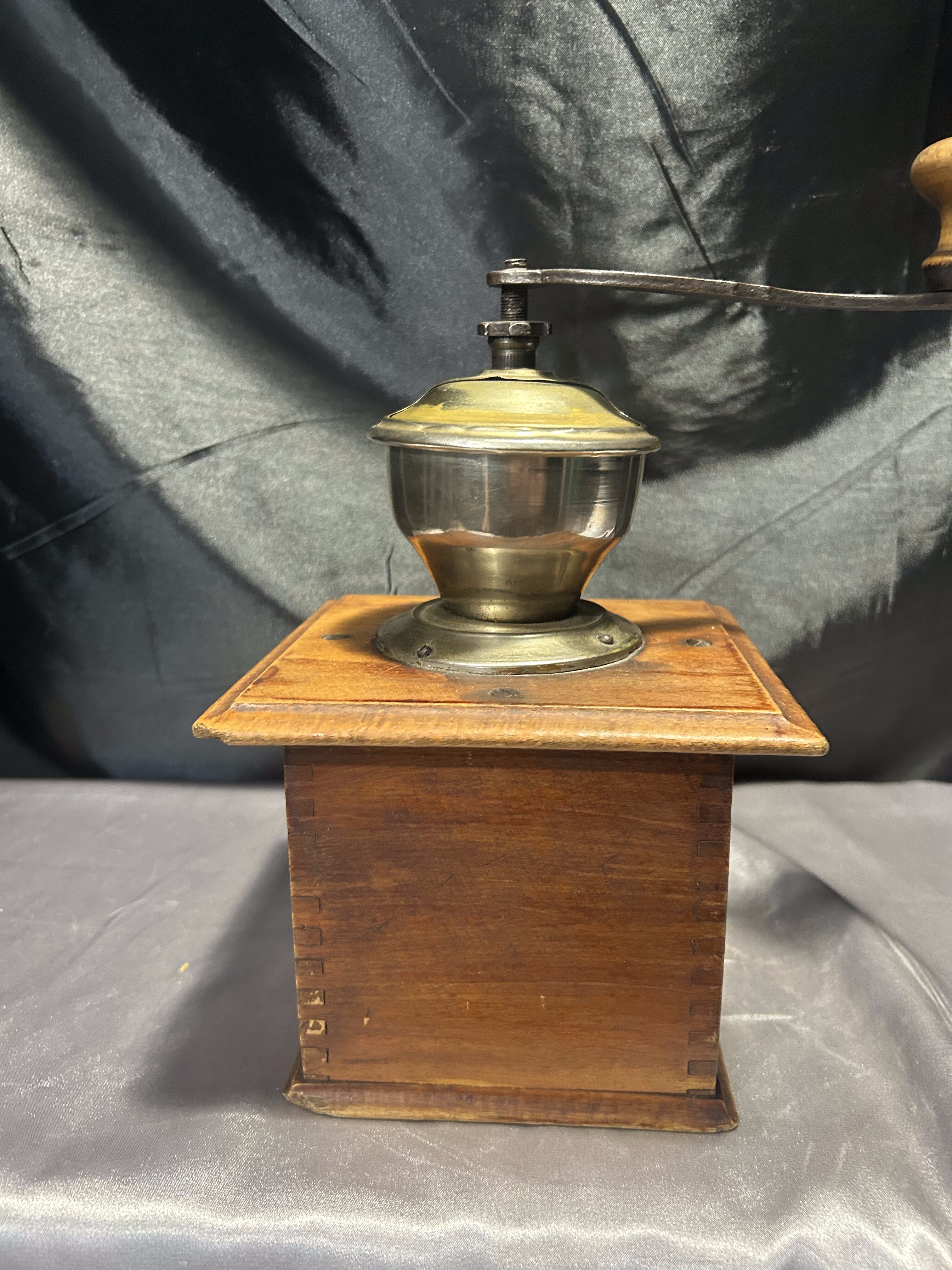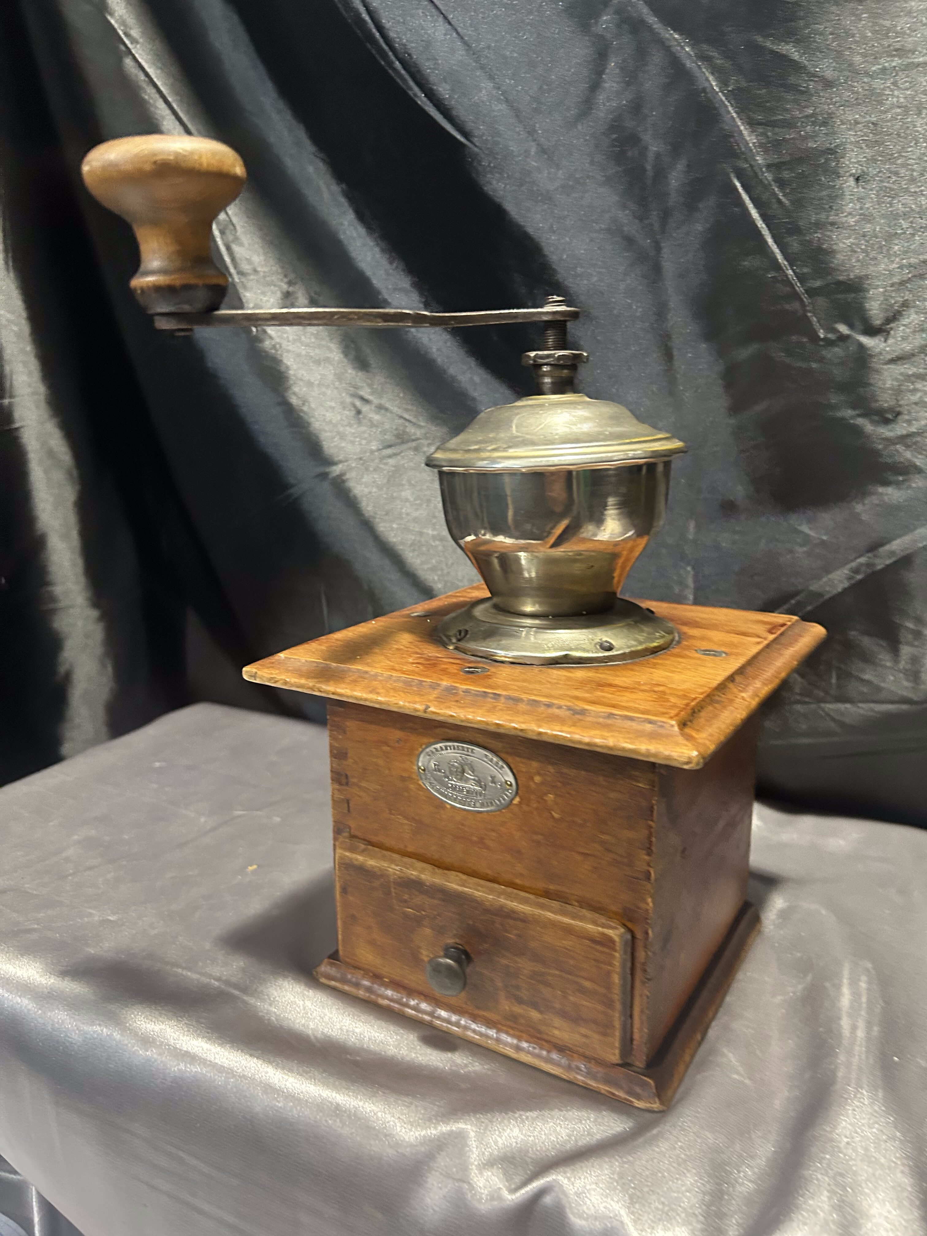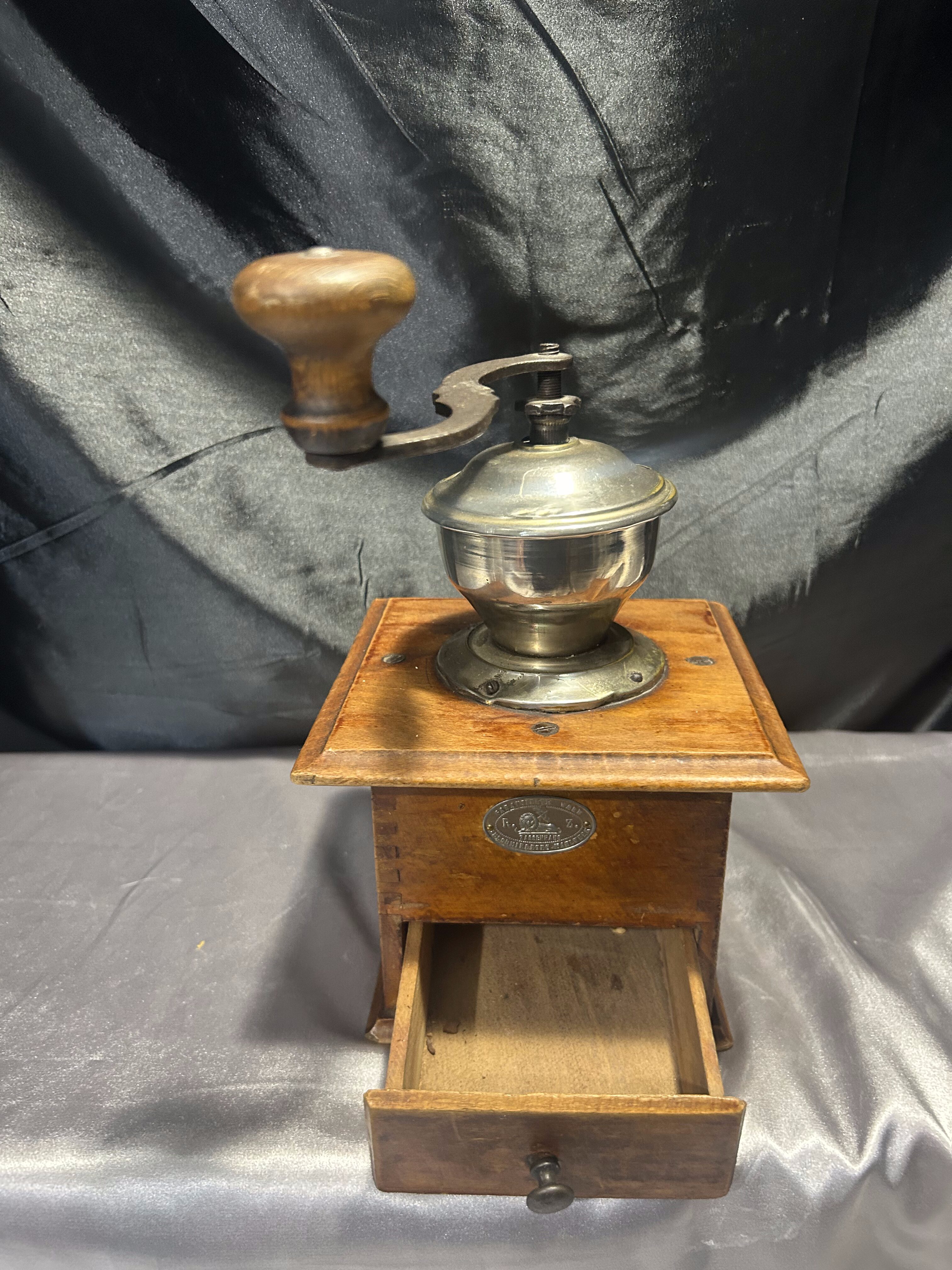Zabytkowy młynek do kawy – Drewniana obudowa – Szufladka – Kolekcjonerski egzemplarz