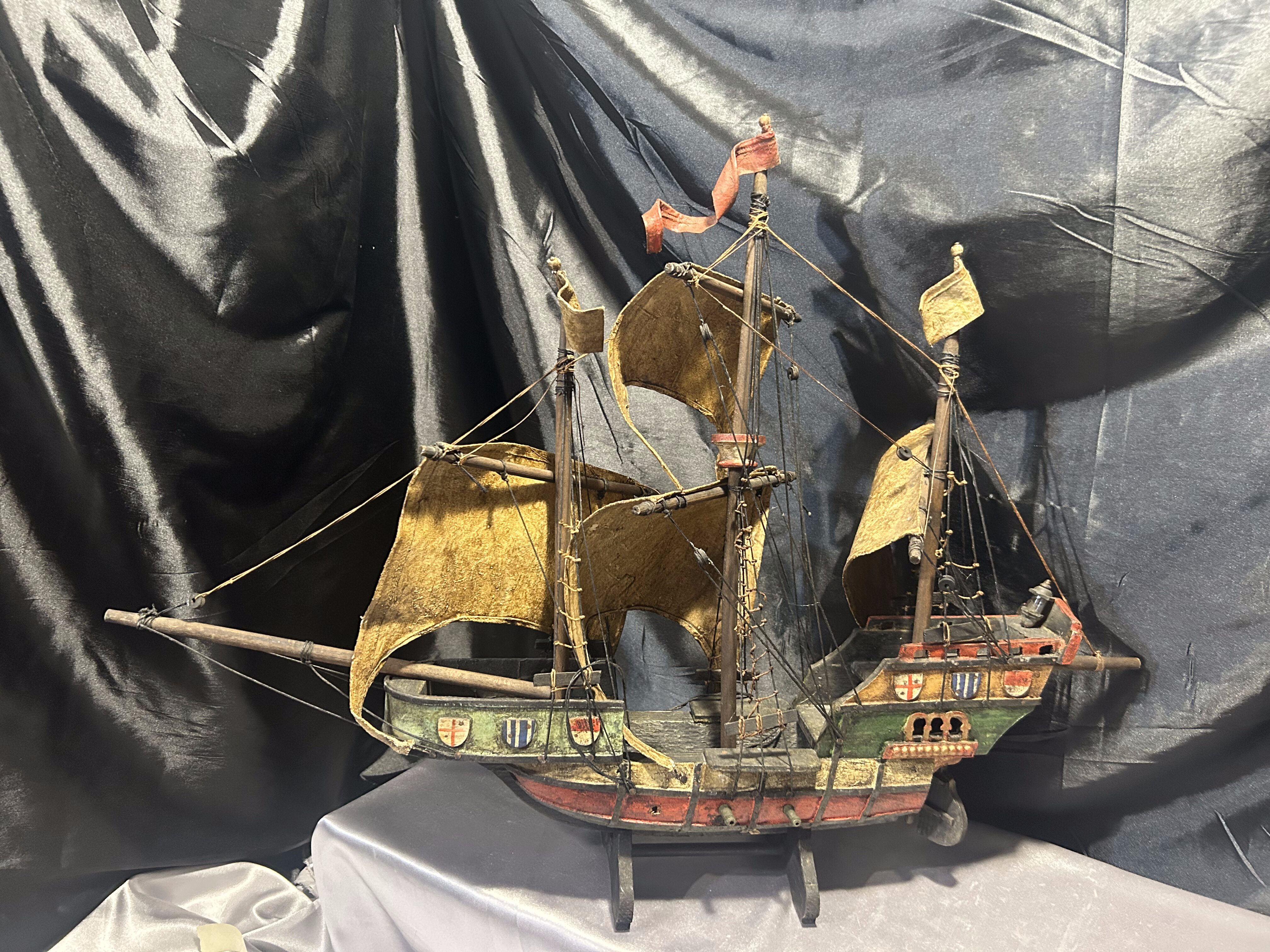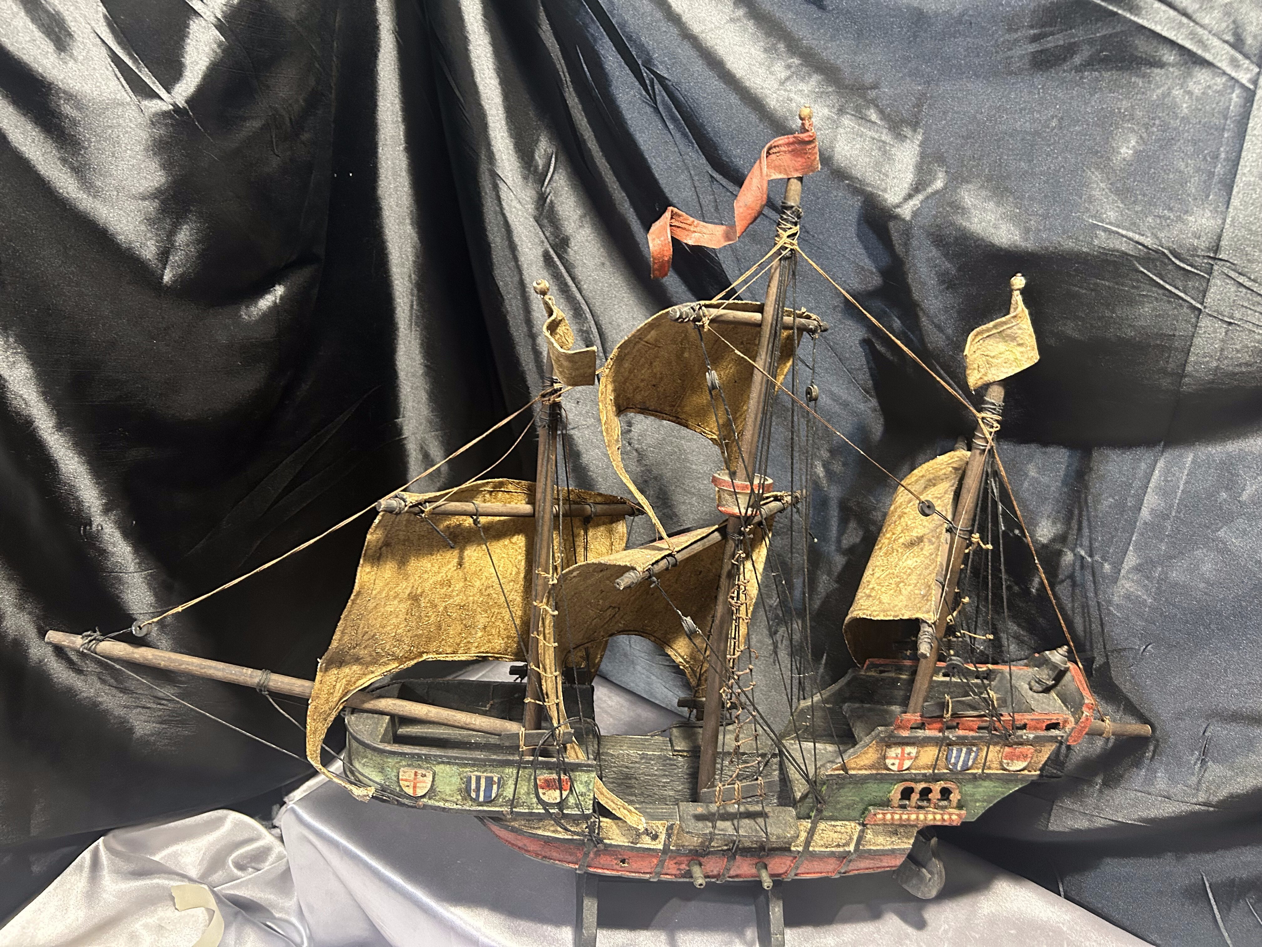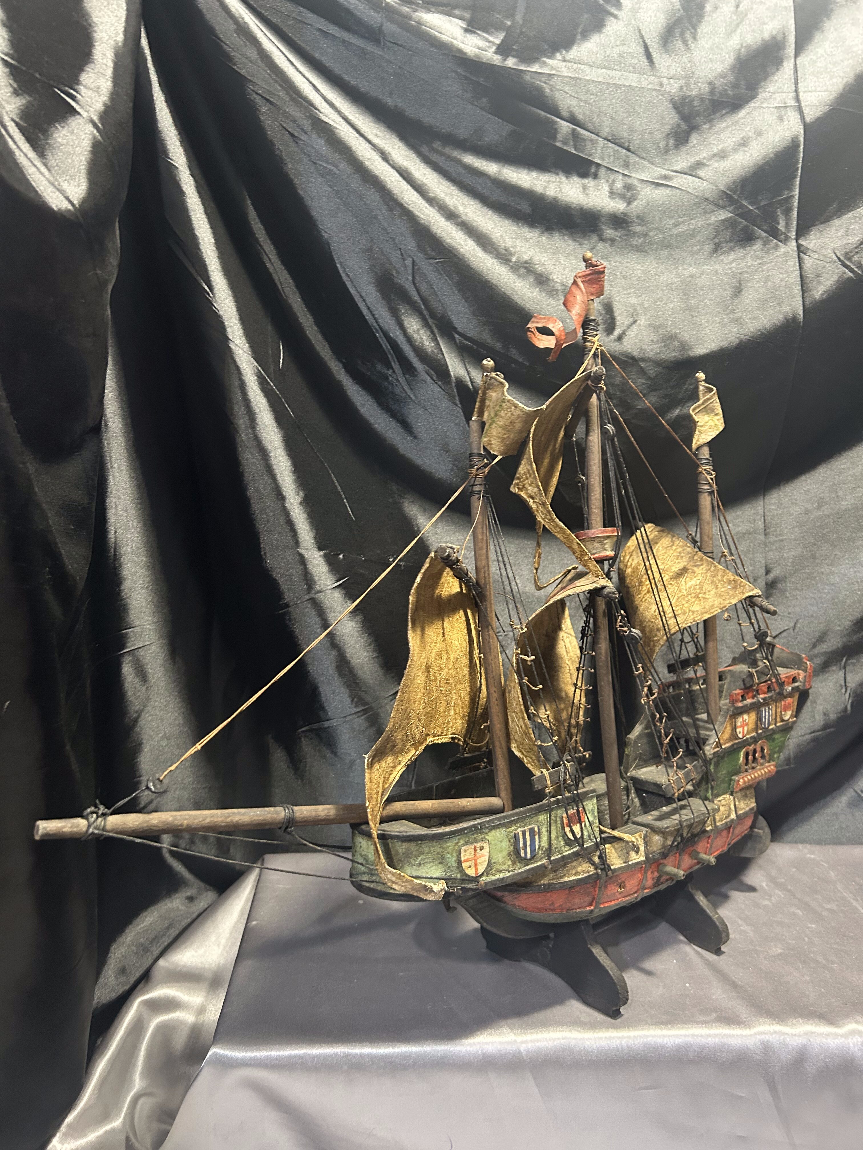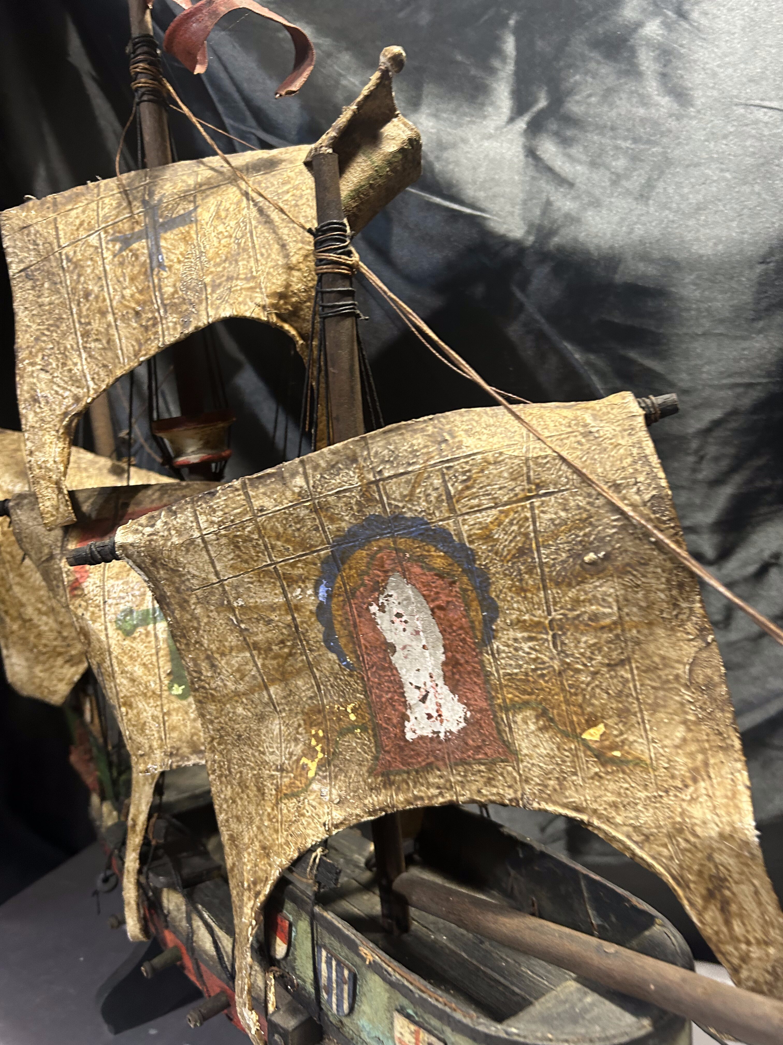 Drewniany Statek – Żaglowiec Fregata, 3 Maszty, Stonowane Kolory