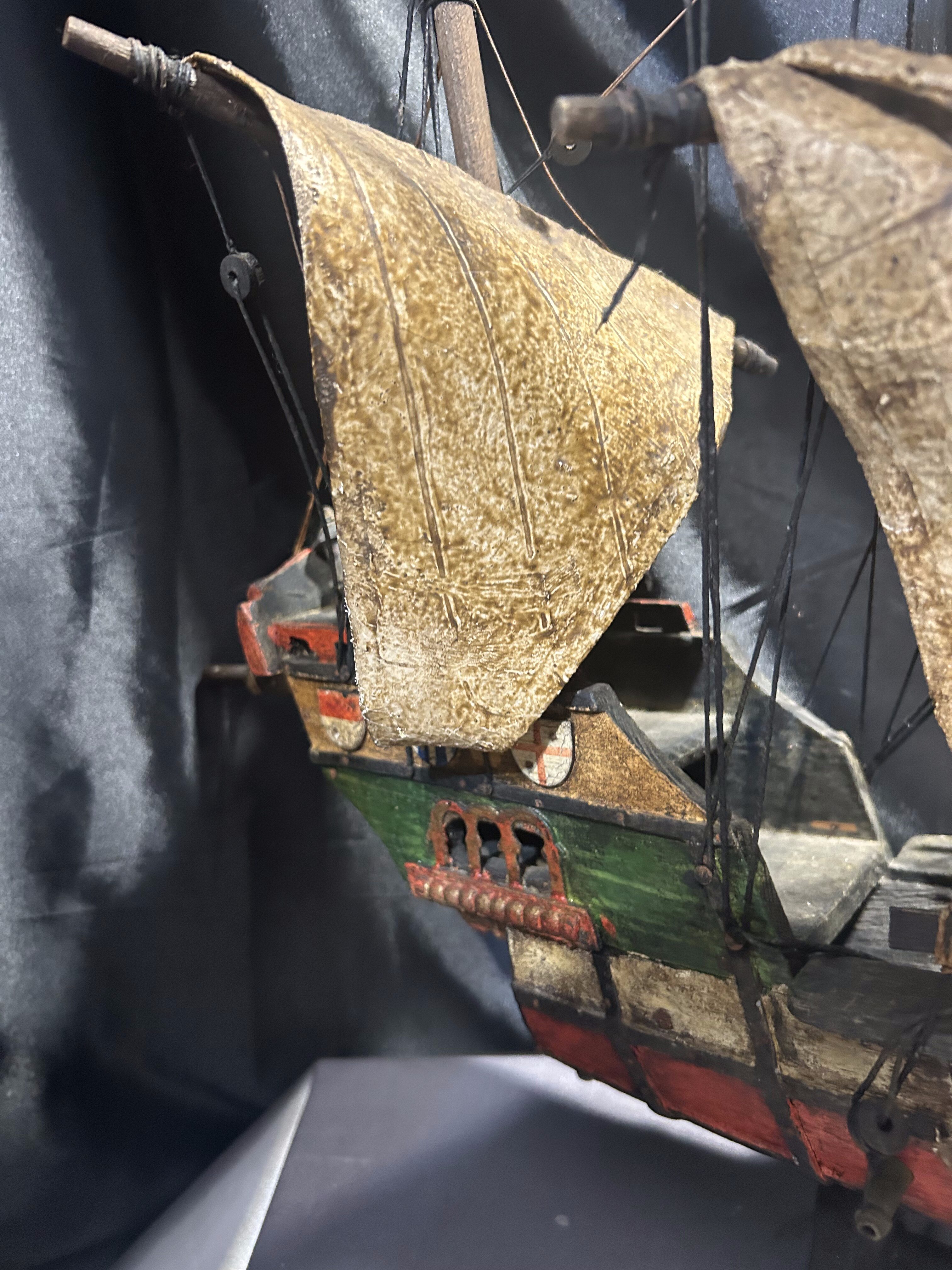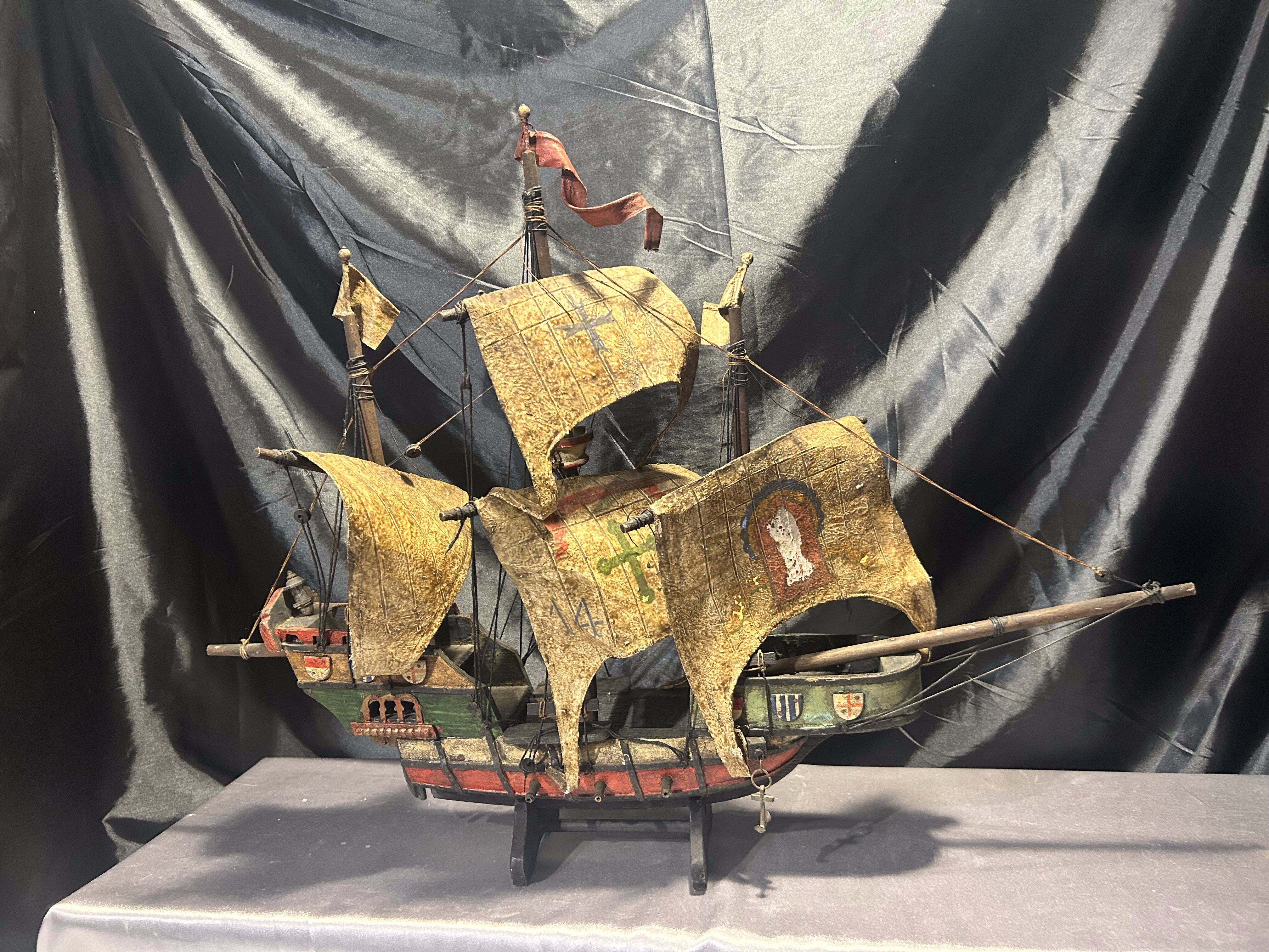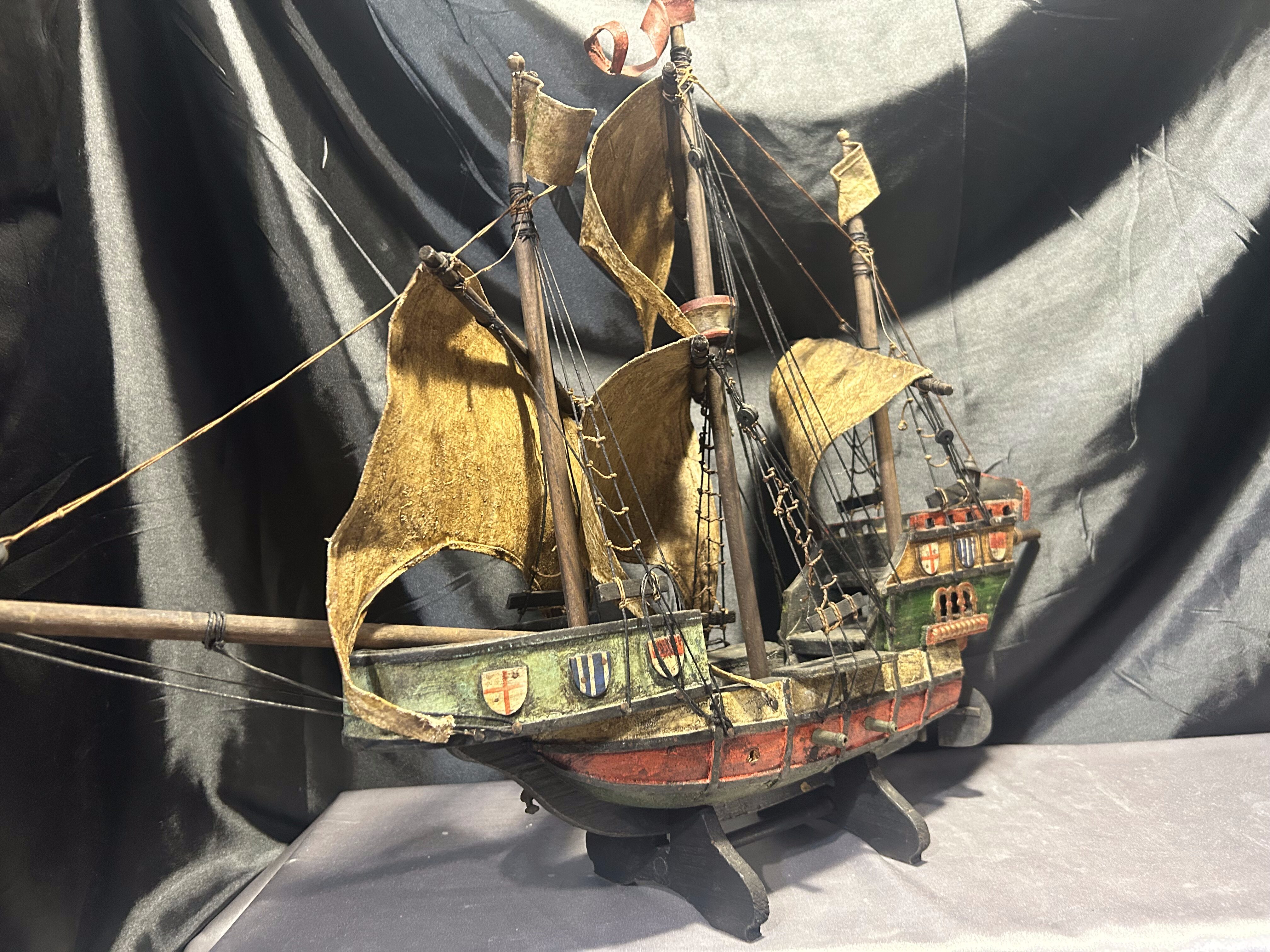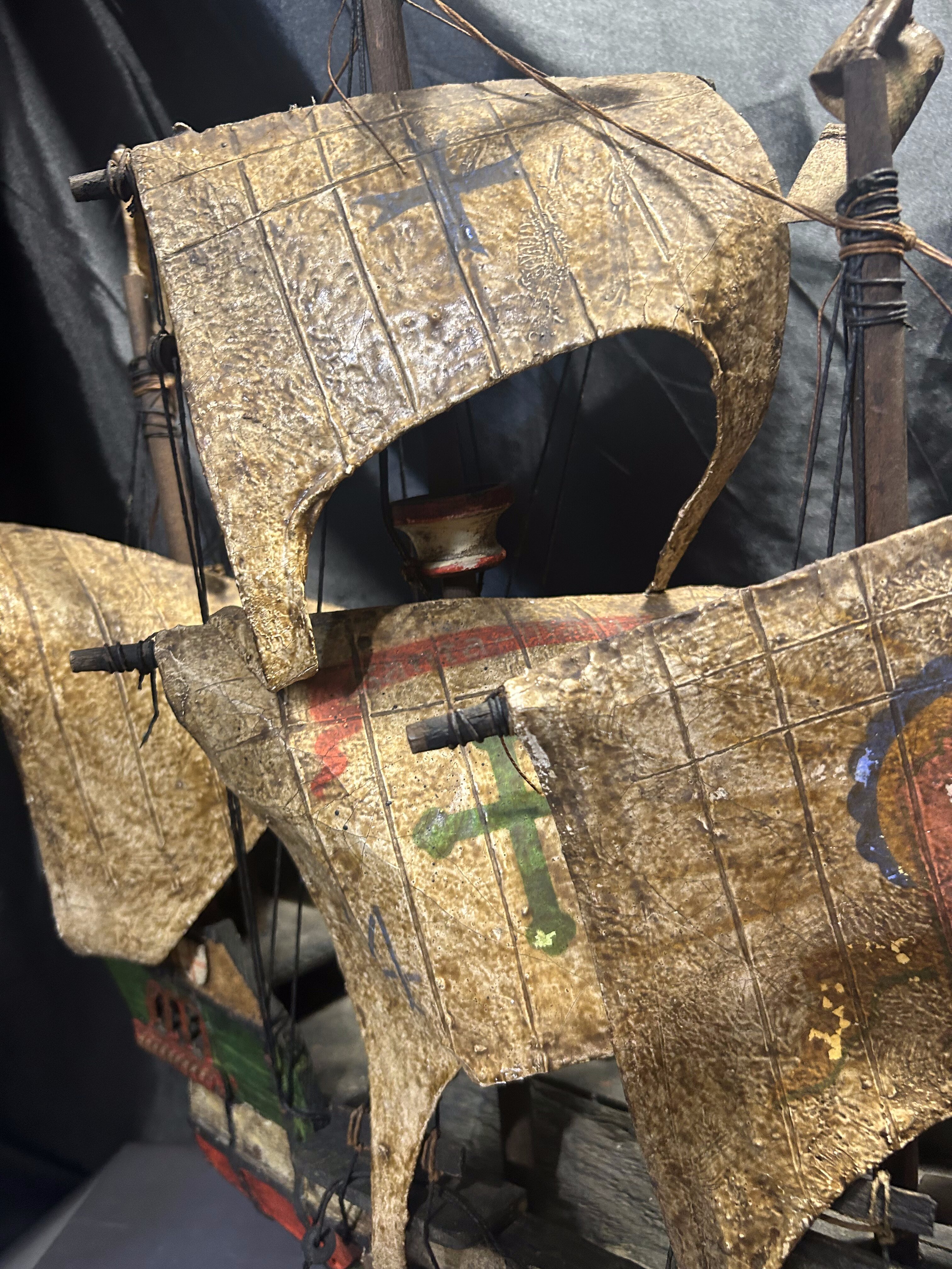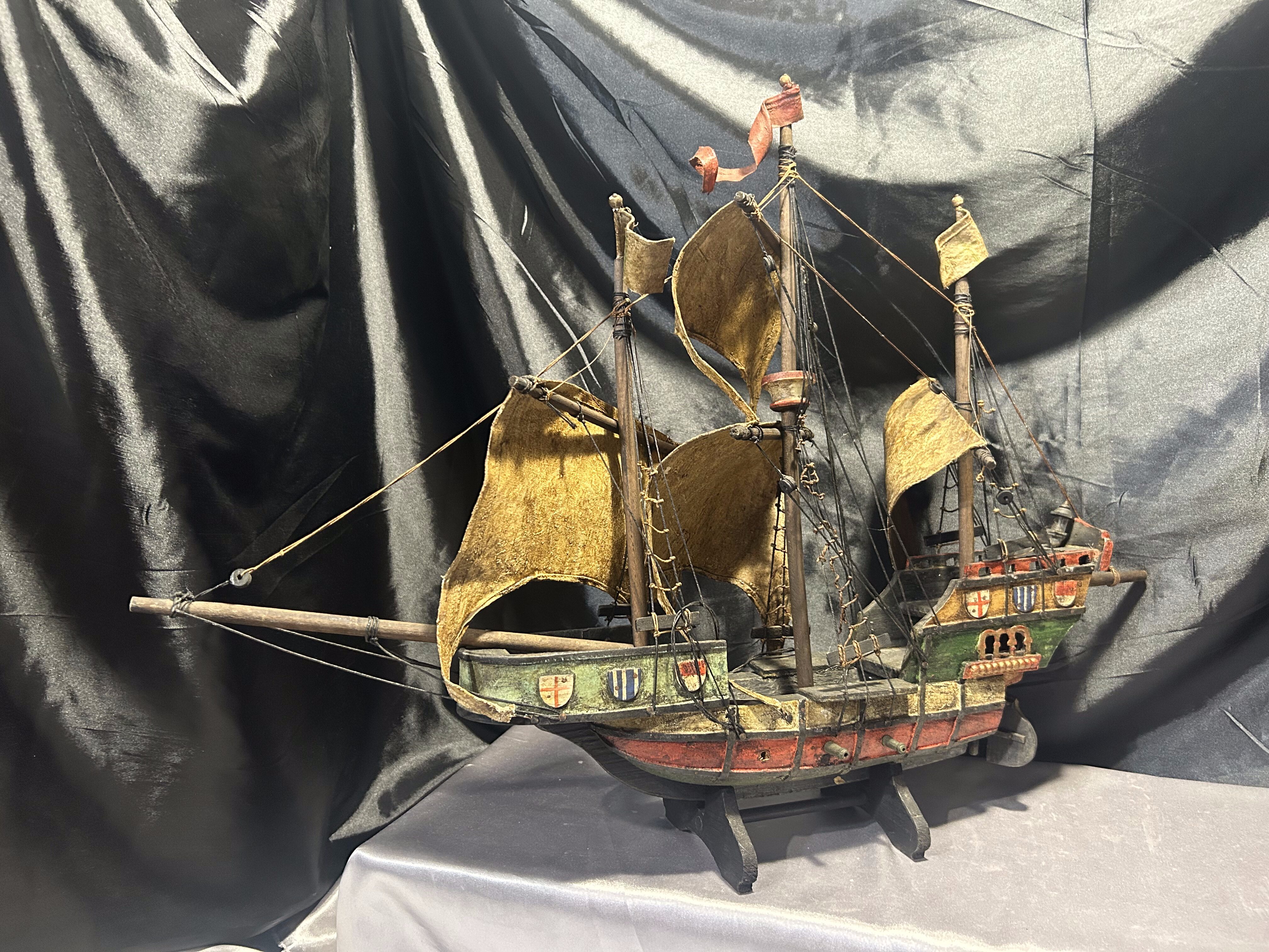 Drewniany Statek – Żaglowiec Fregata, 3 Maszty, Stonowane Kolory
