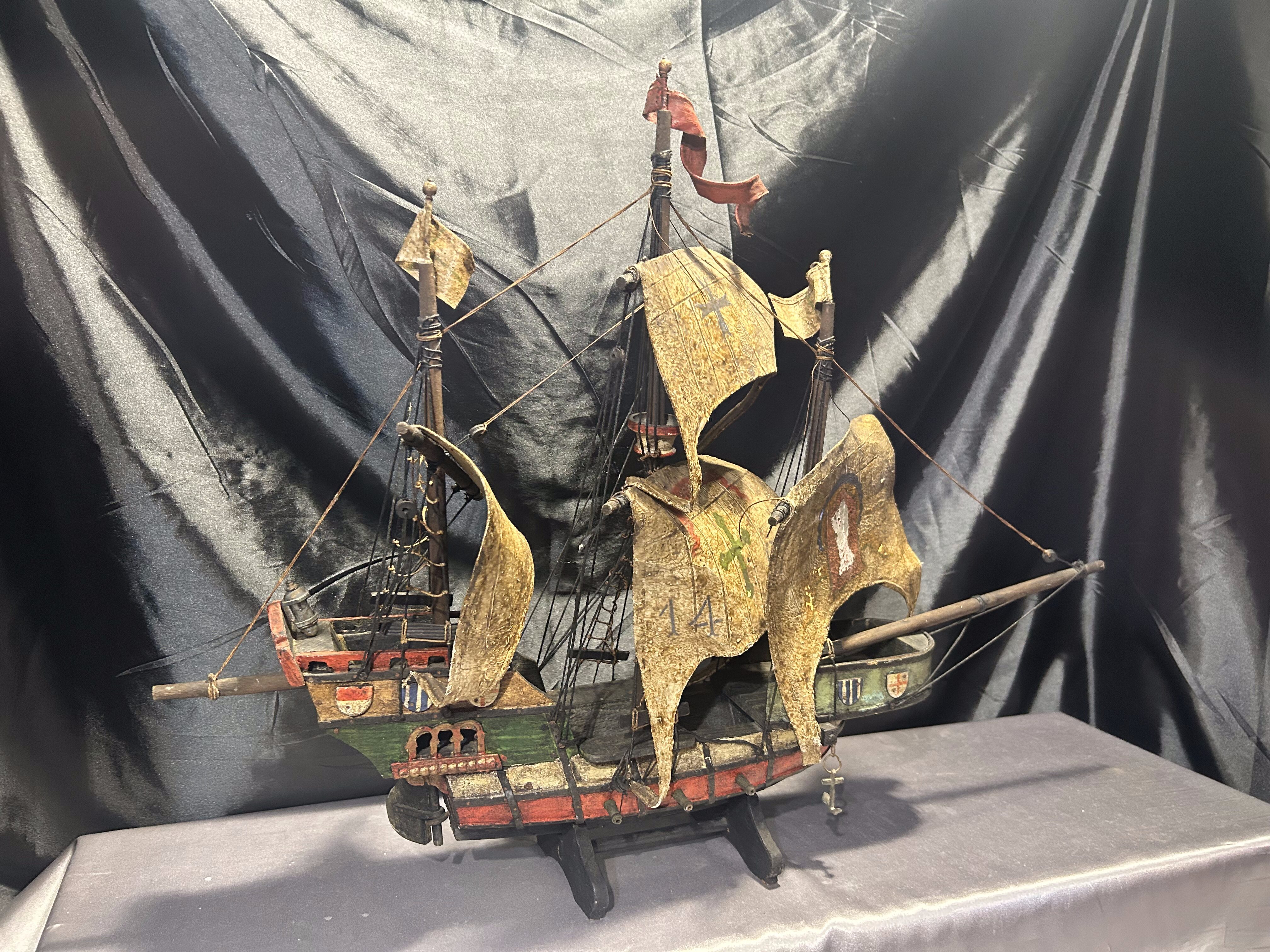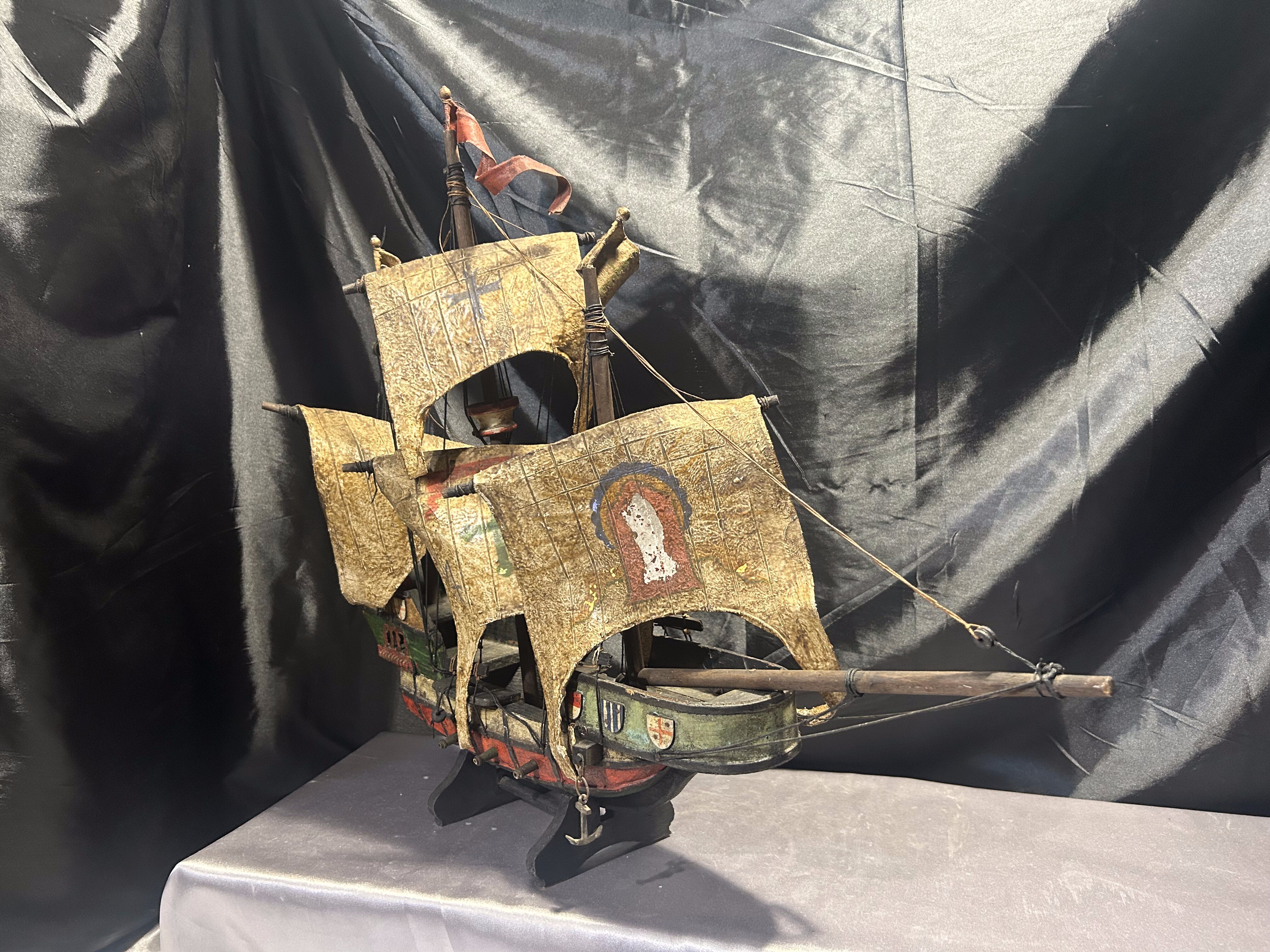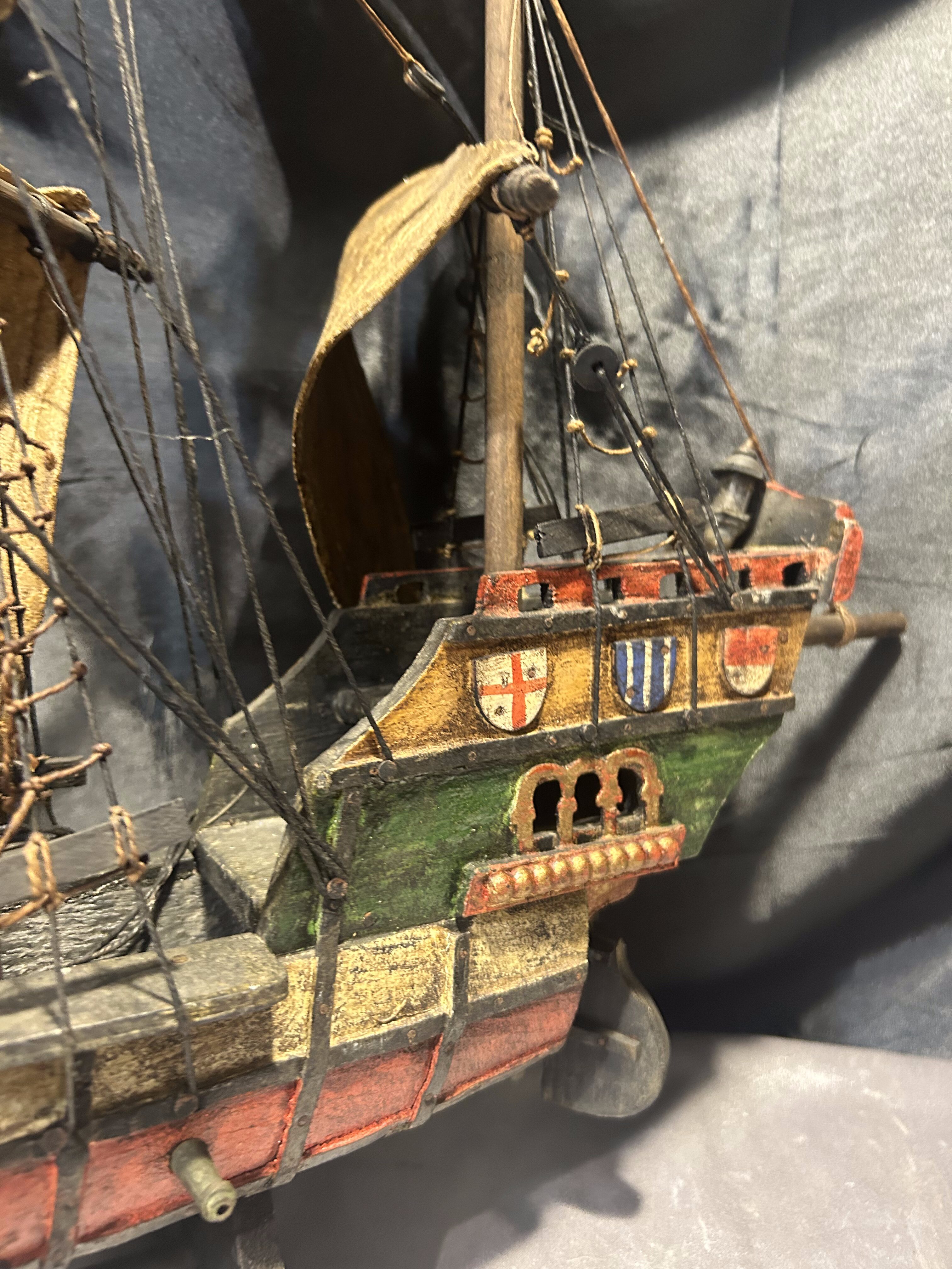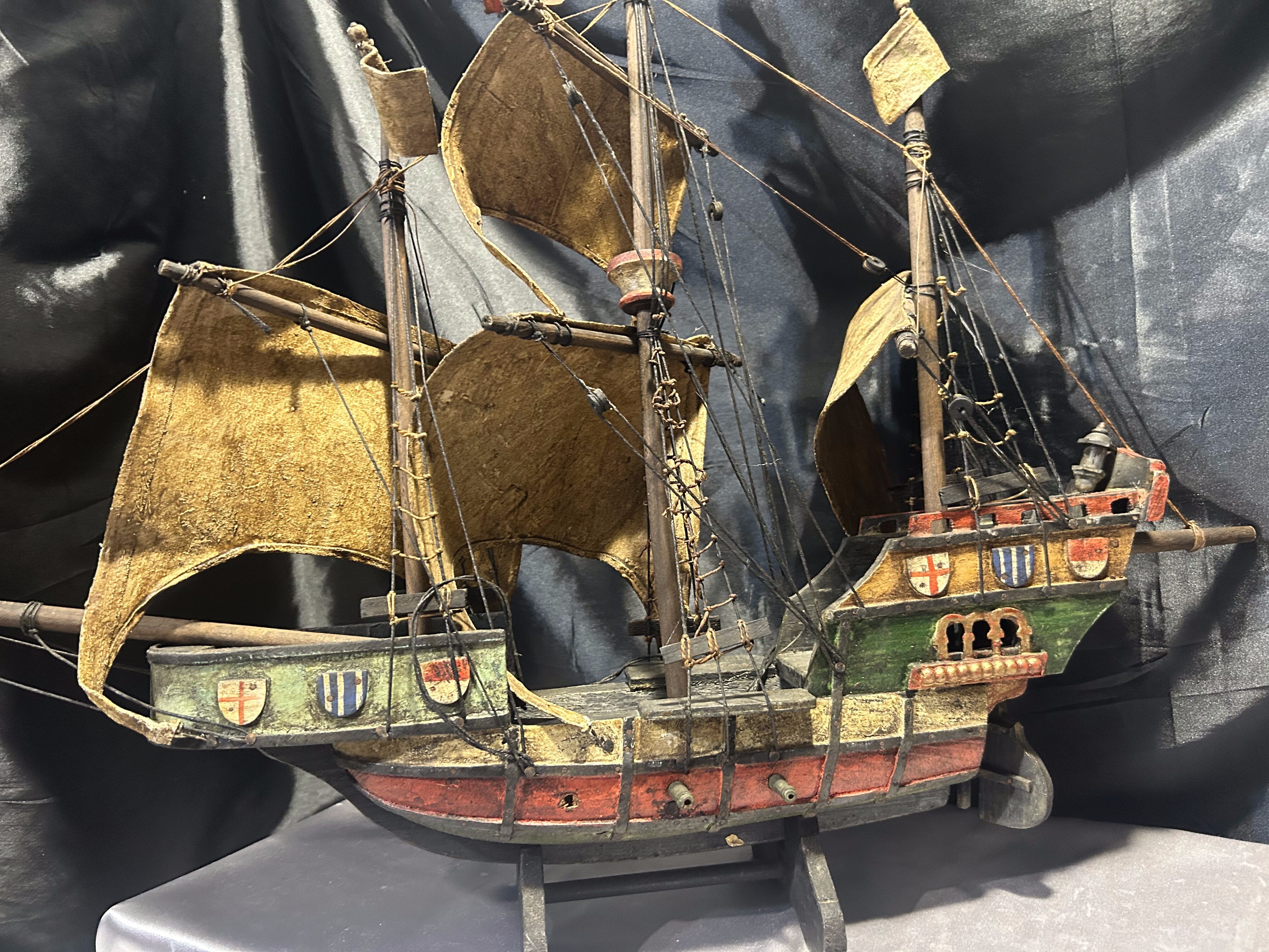 Drewniany Statek – Żaglowiec Fregata, 3 Maszty, Stonowane Kolory
