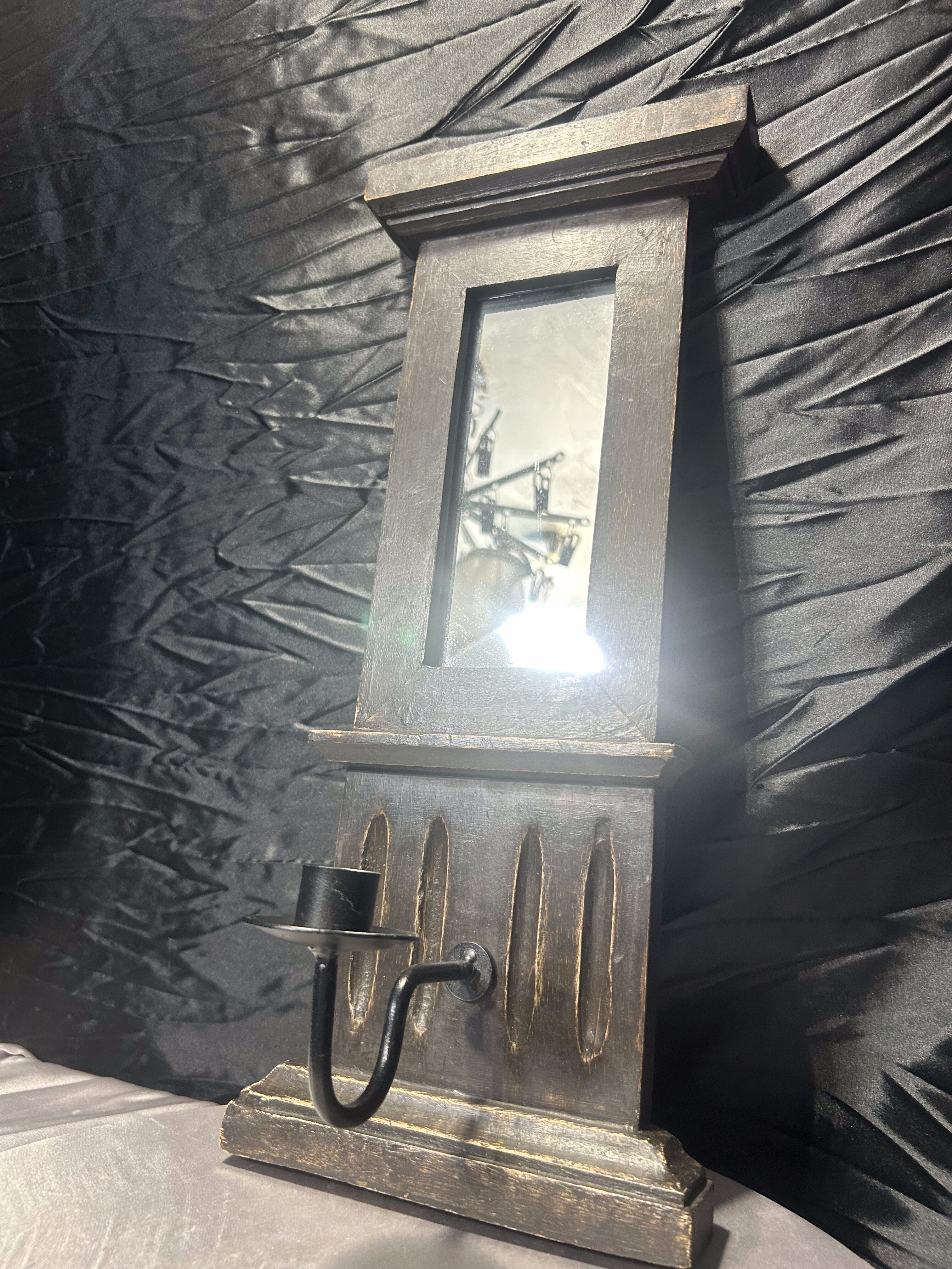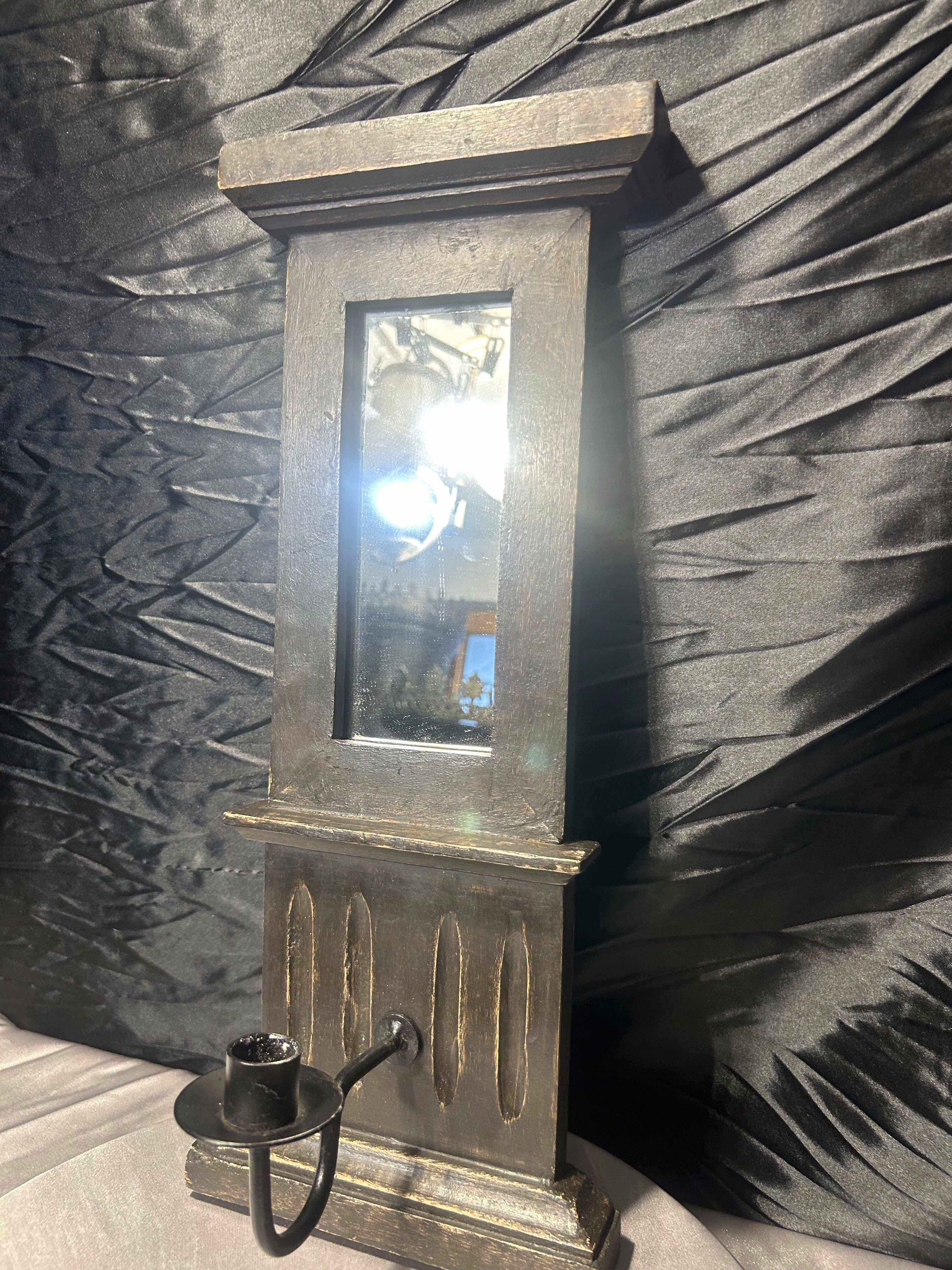 - Drewniany świecznik ścienny z lusterkiem – dekoracja ścienna – styl klasyczny