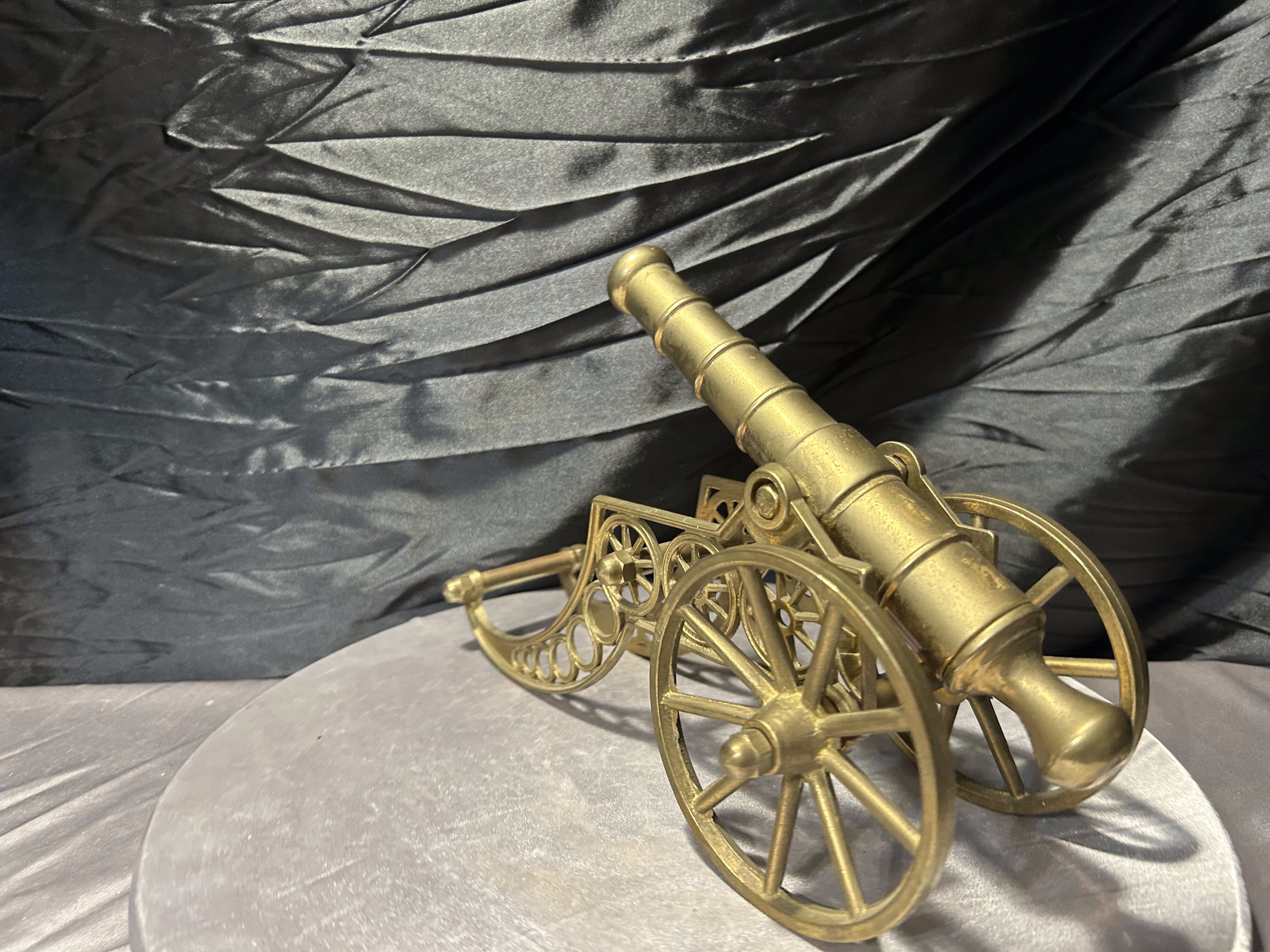 Masywna, solidna i niezwykle dekoracyjna armata z mosiądzu, która wnosi do wnętrza charakter, elegancję i nutę historycznego klimatu. Doskonała propozycja dla kolekcjonerów militariów oraz miłośników wyrazistych dodatków.