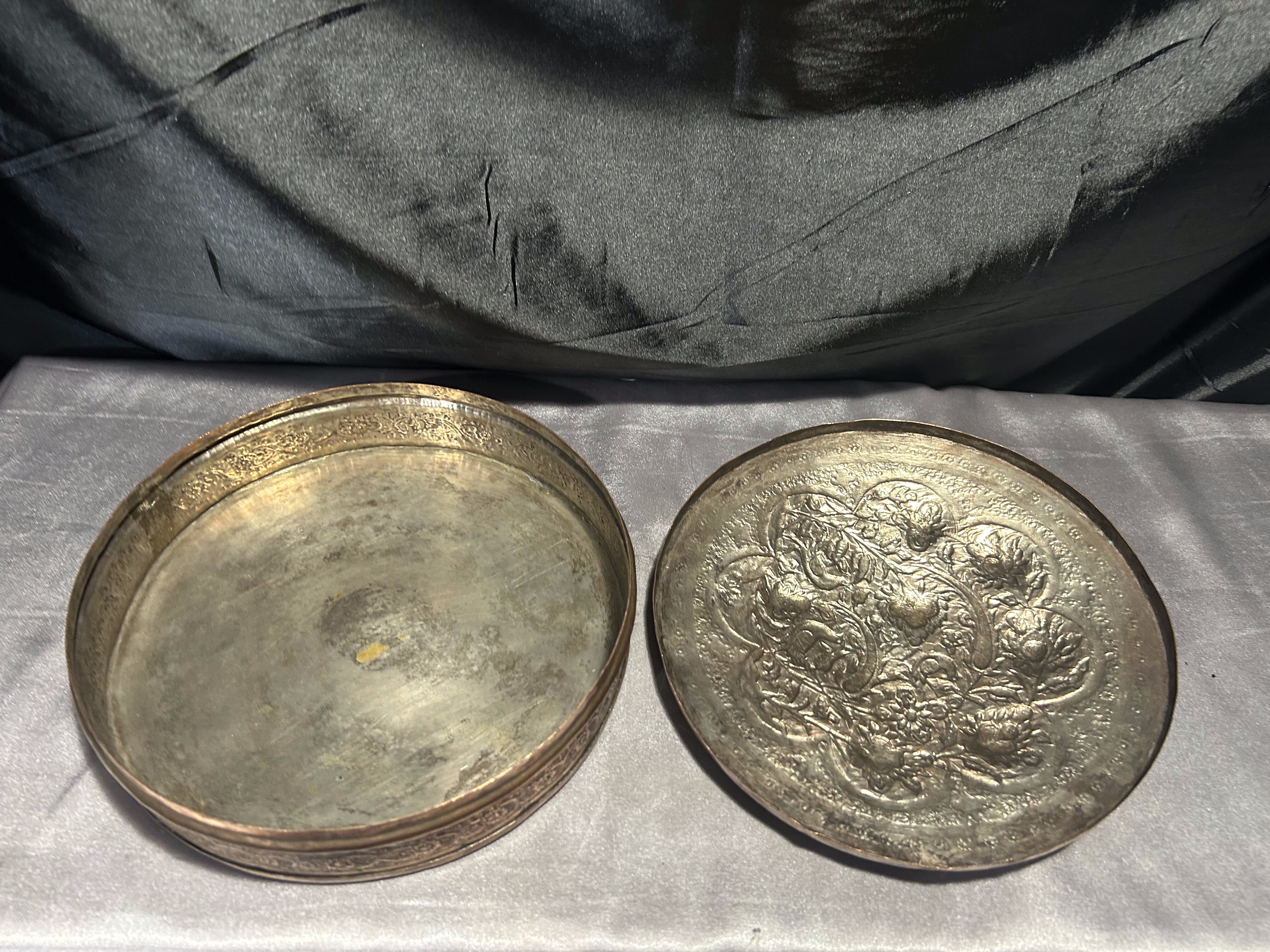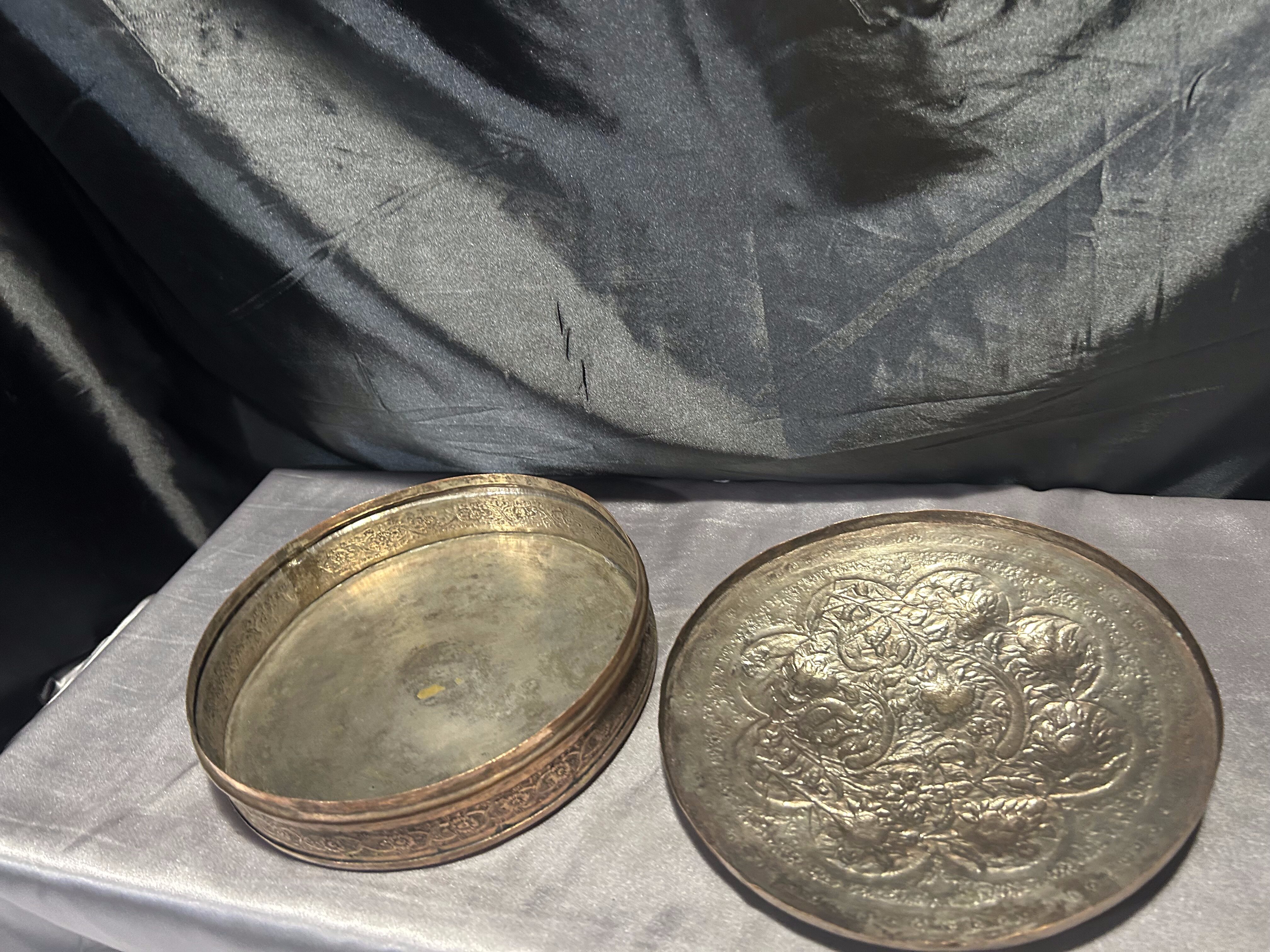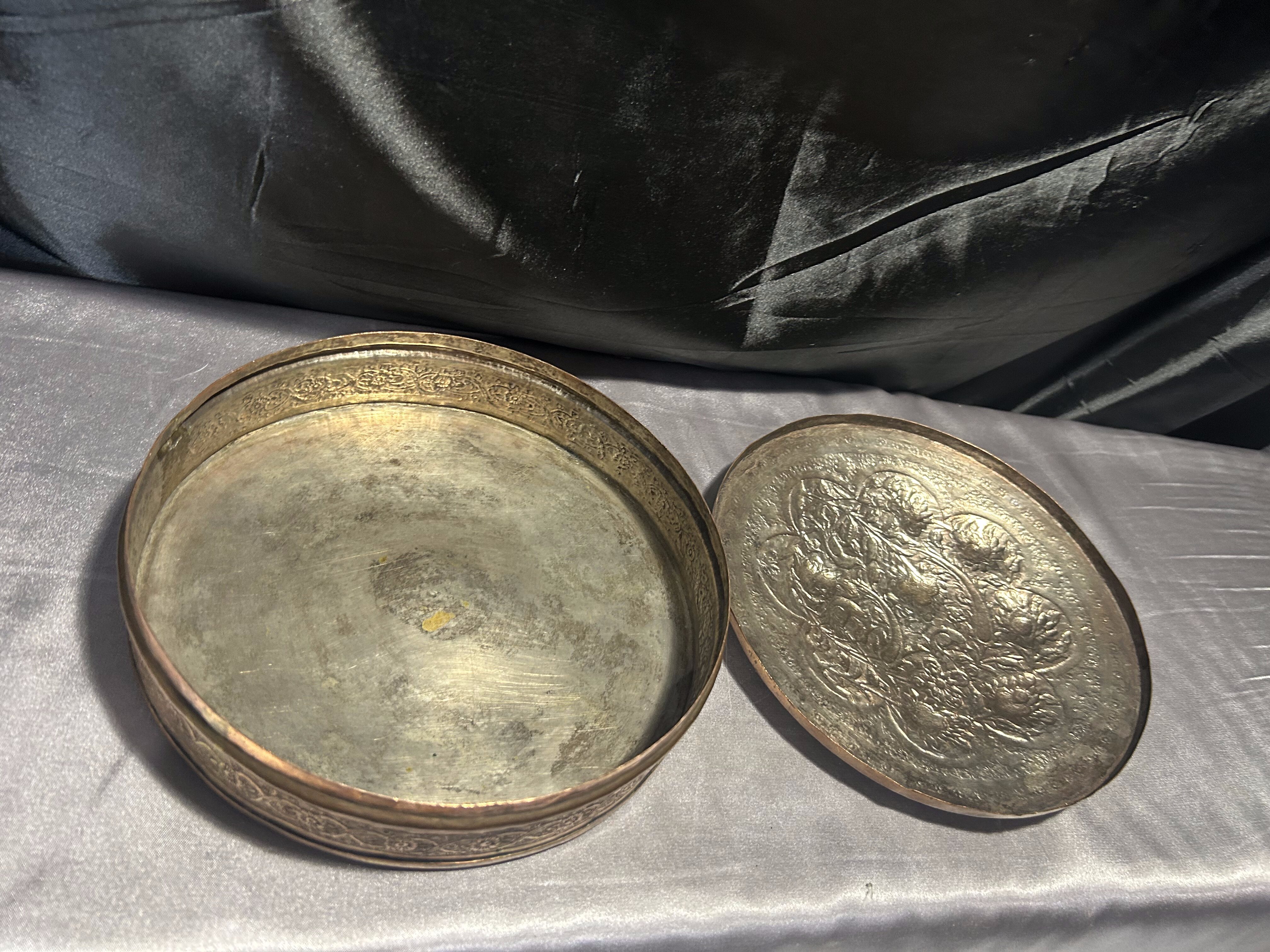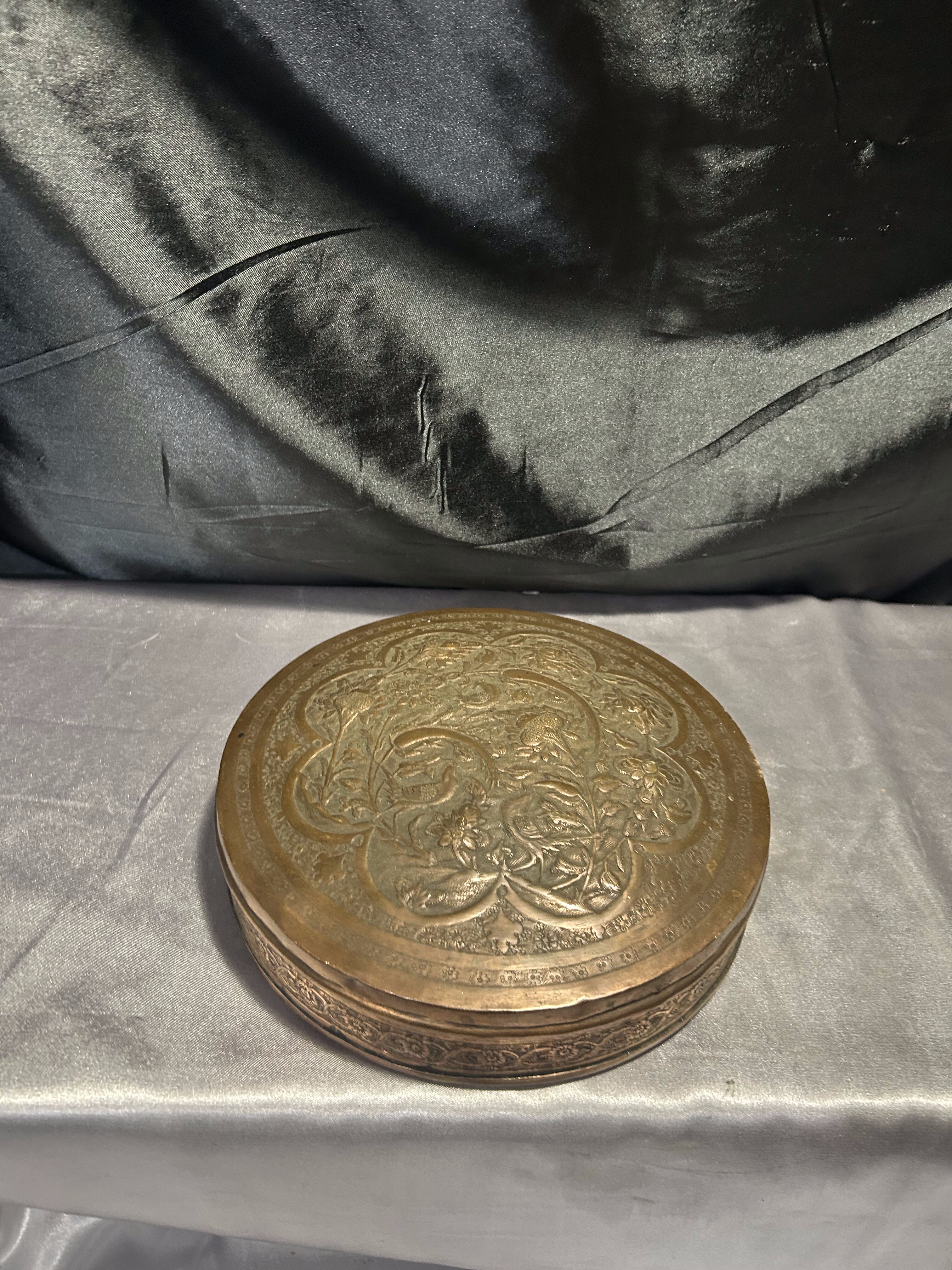 Przedmiotem sprzedaży jest wyjątkowa, duża szkatułka wykonana z mosiądzu, ozdobiona bogatym roślinnym ornamentem. Wieczko i boki szkatułki zostały misternie grawerowane, co świadczy o kunszcie ręcznej pracy. Szkatułka pochodzi prawdopodobnie z przełomu XIX i XX wieku lub z okresu kolonialnego, utrzymana w stylu orientalnym.