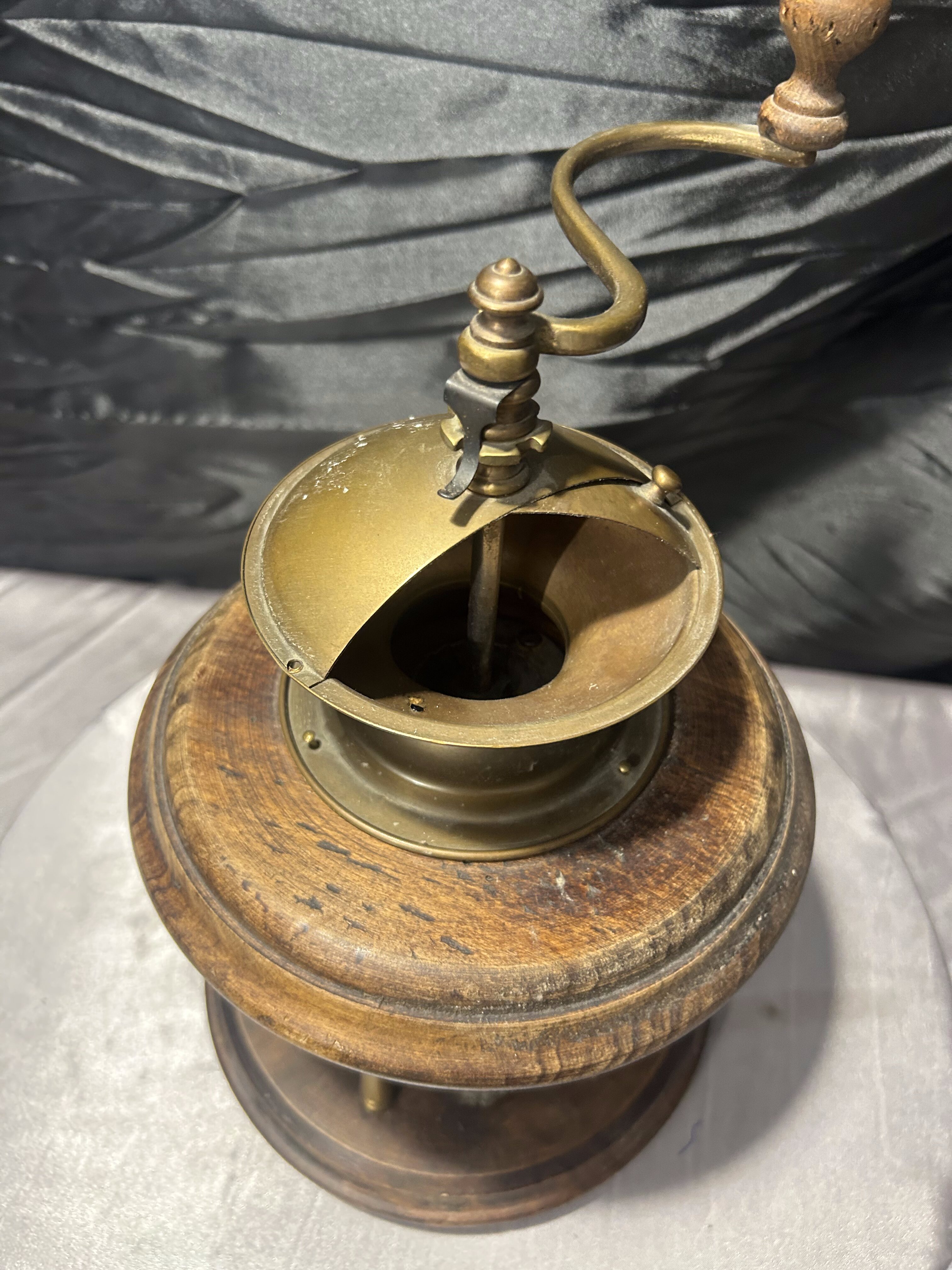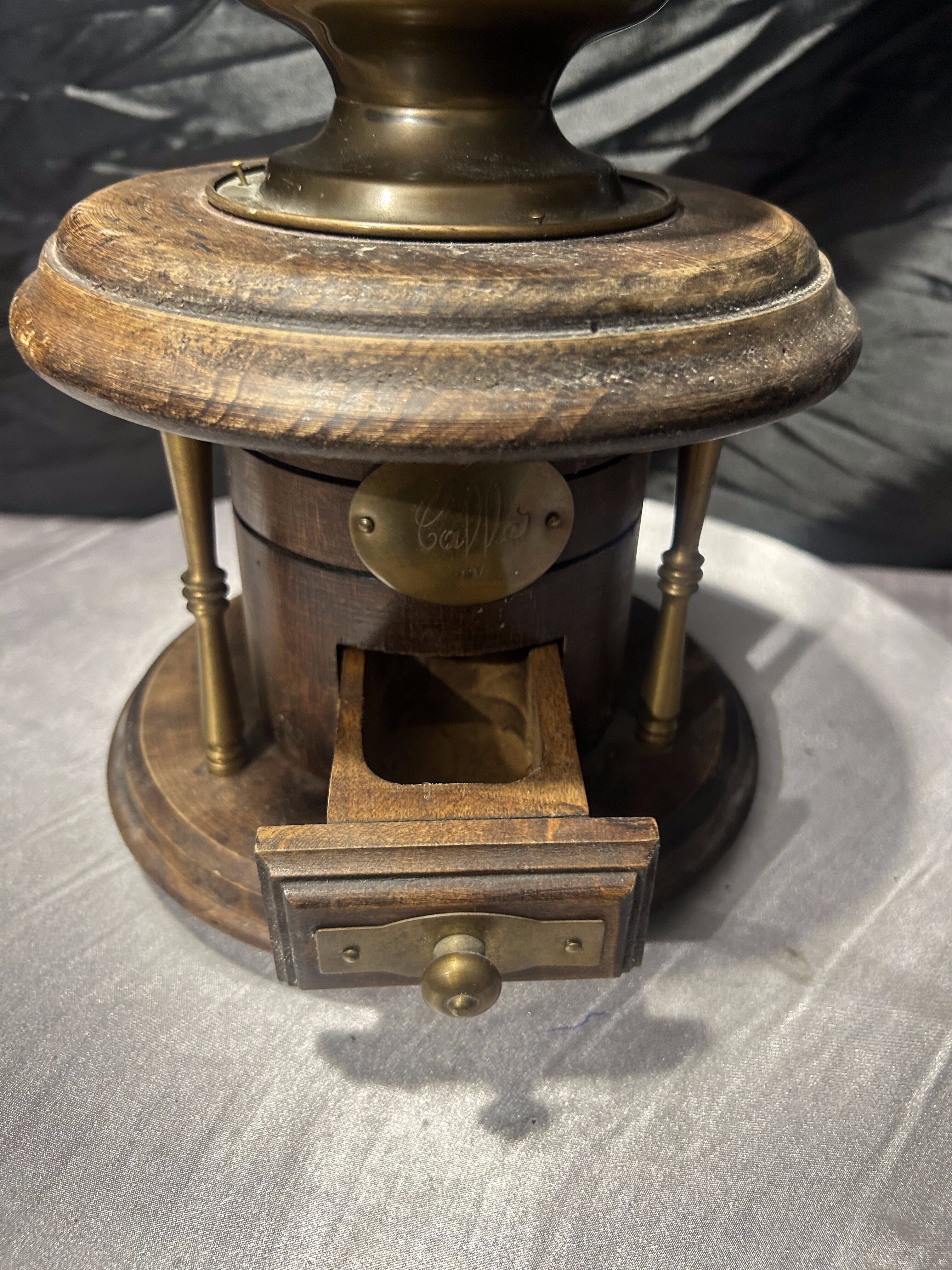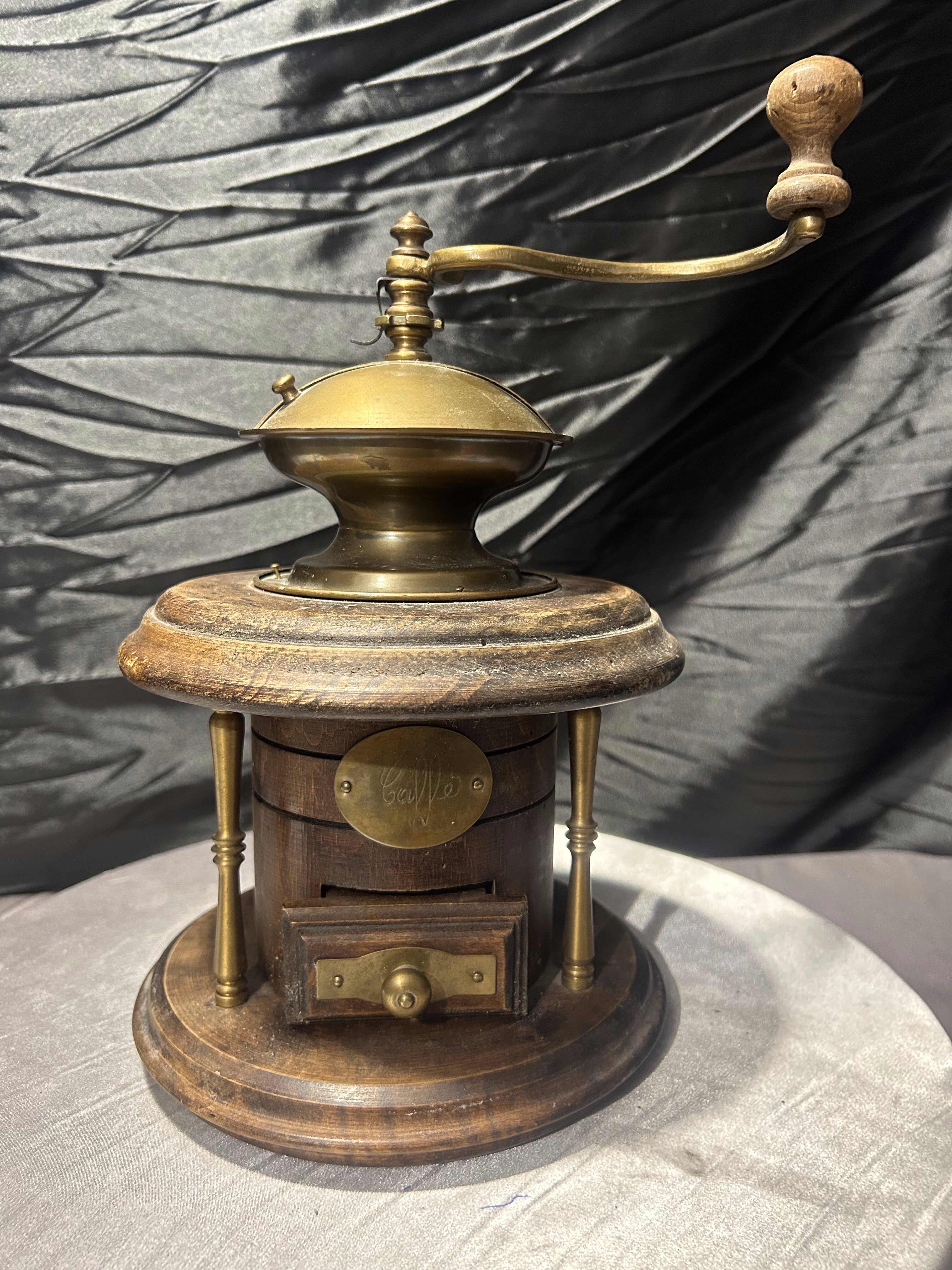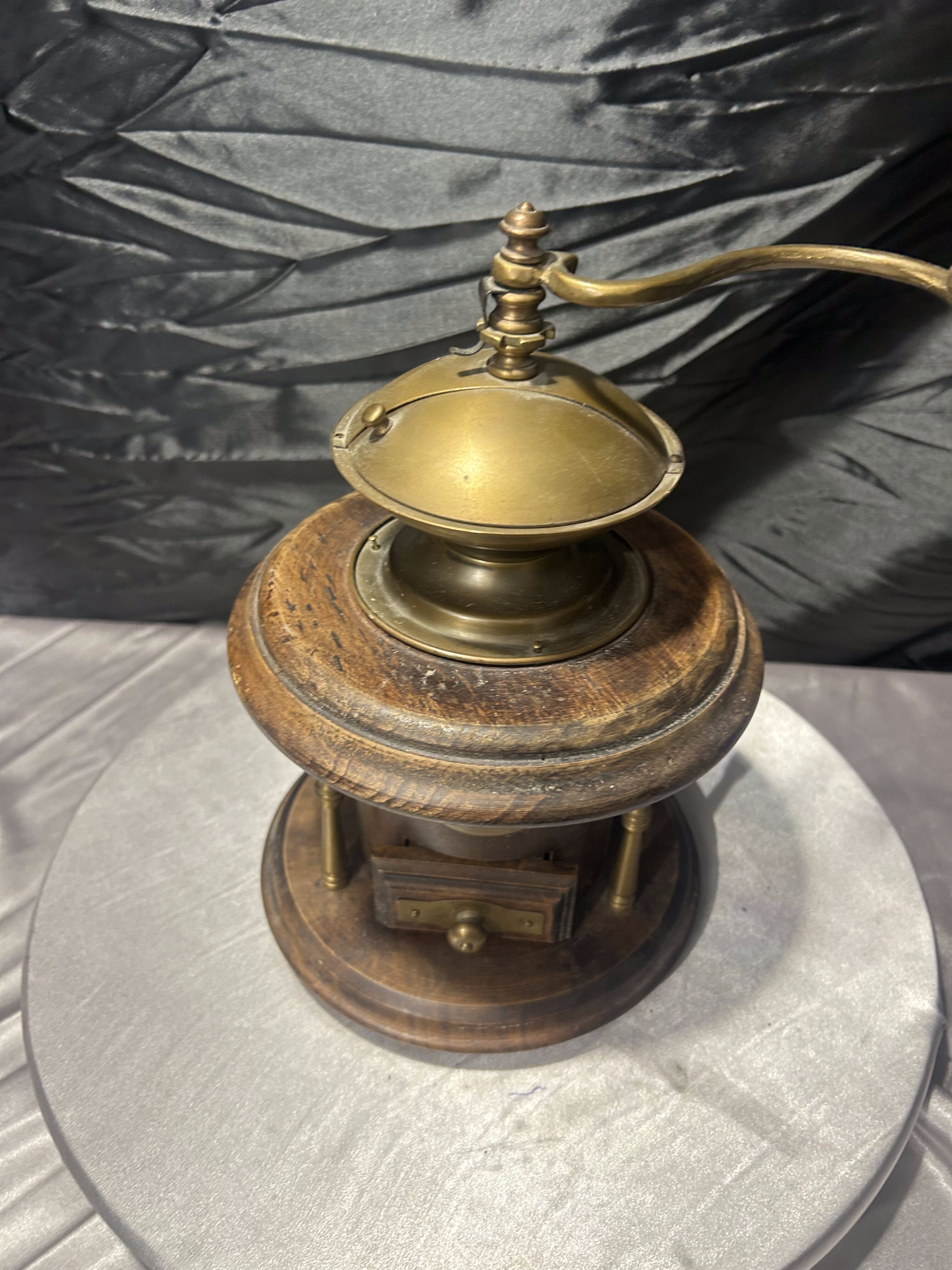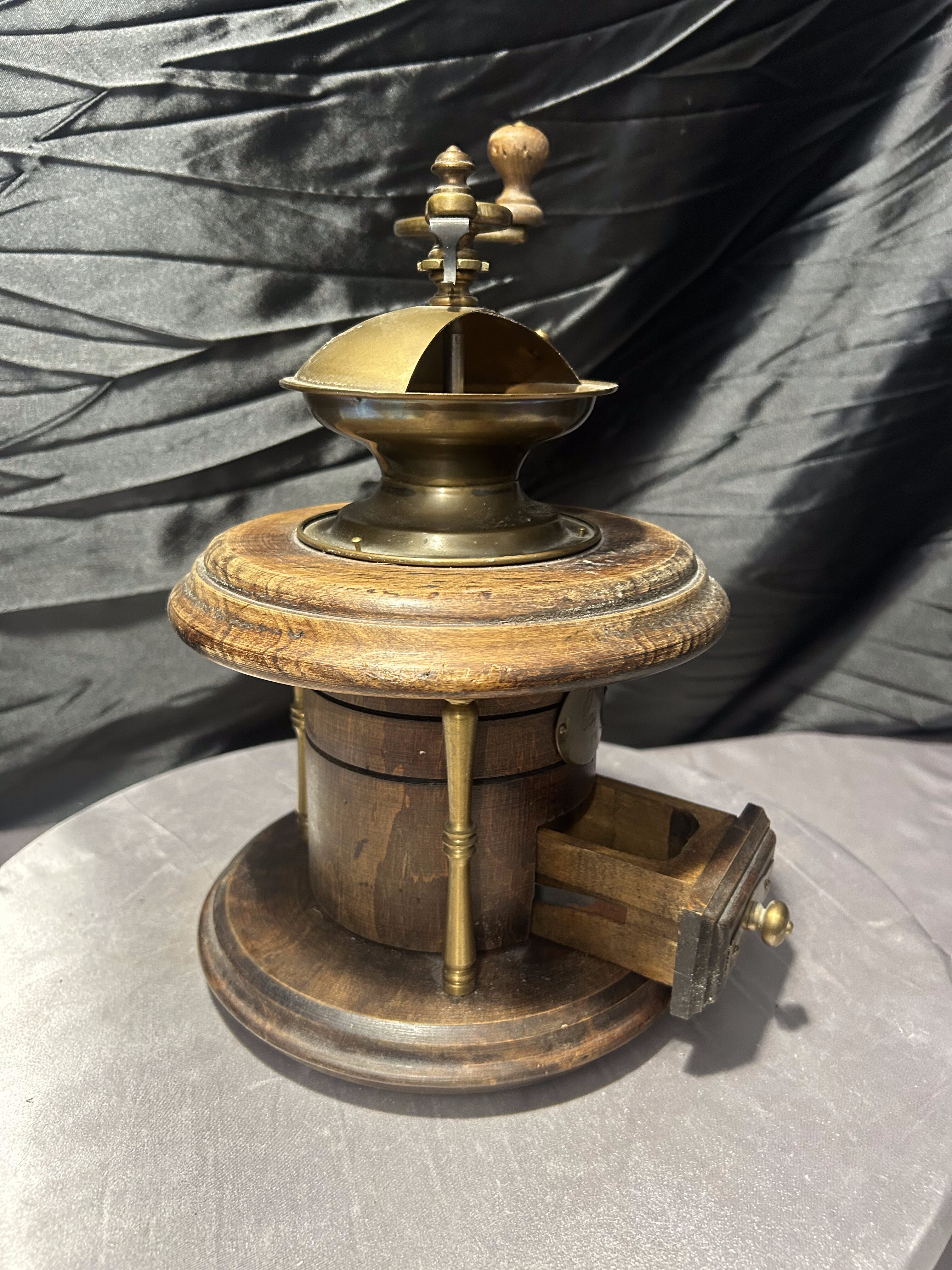 Mosiężny młynek do kawy – Z drewnianą szufladką – Dekoracyjny vintage