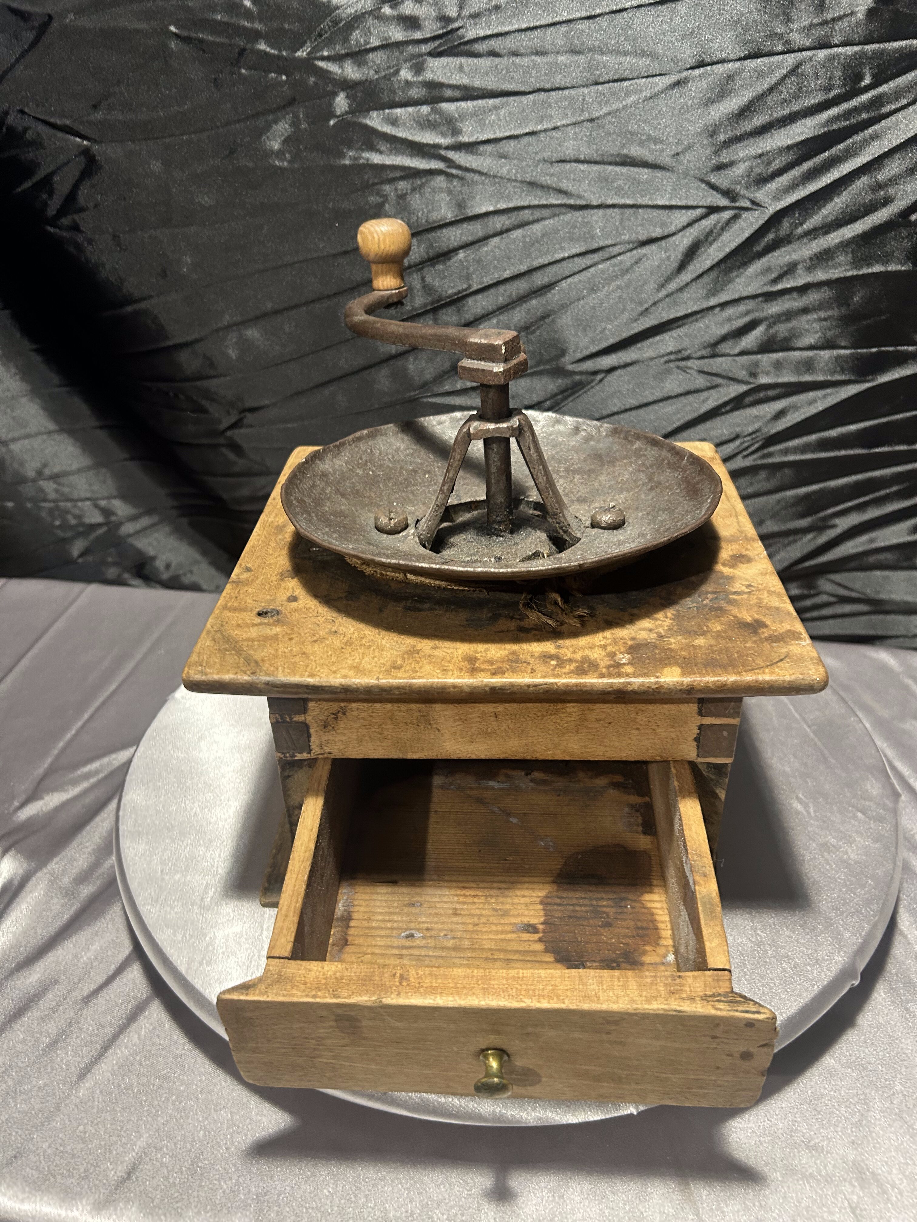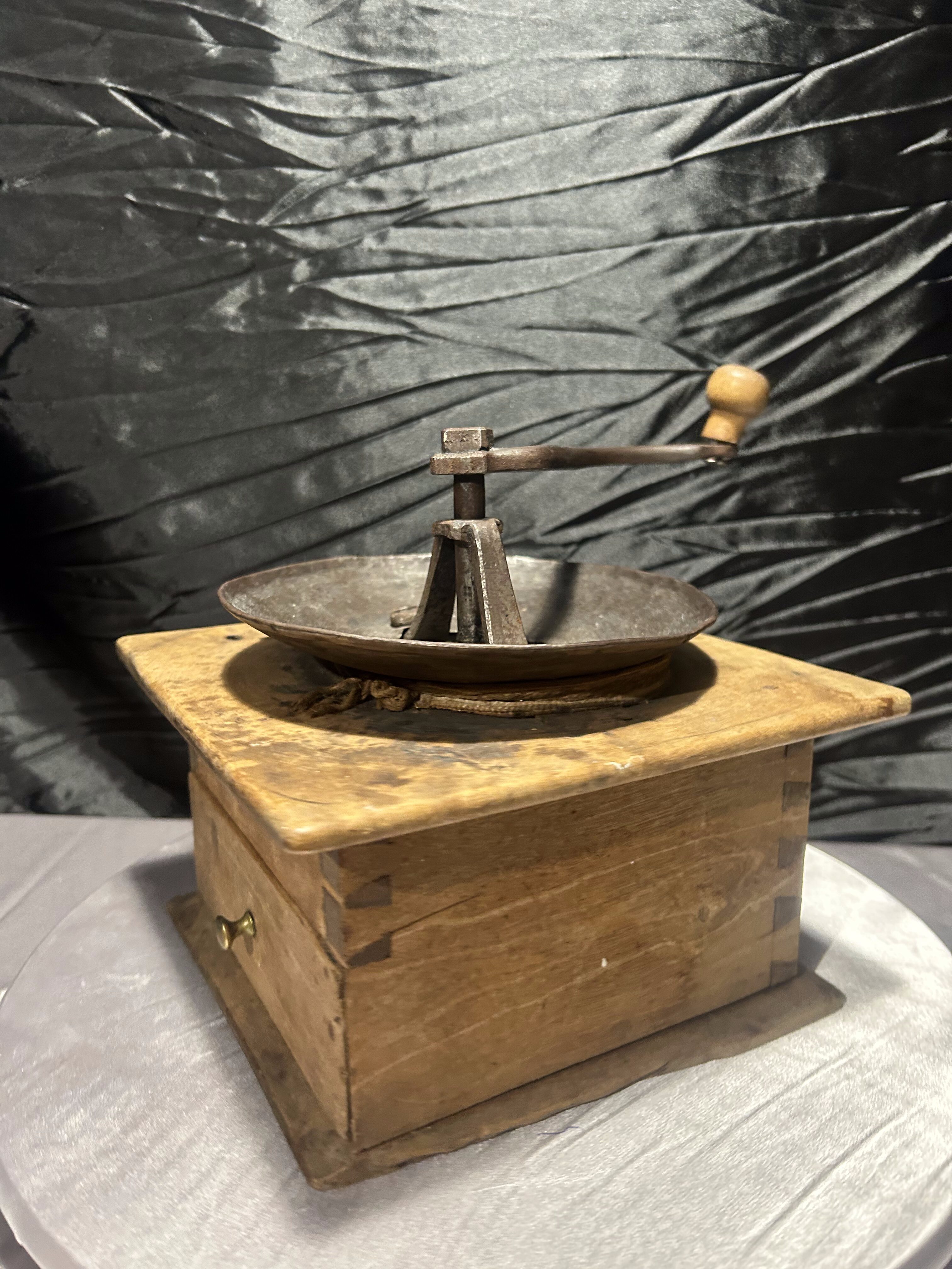 Mosiężny młynek do kawy – Z drewnianą szufladką – Dekoracyjny vintage