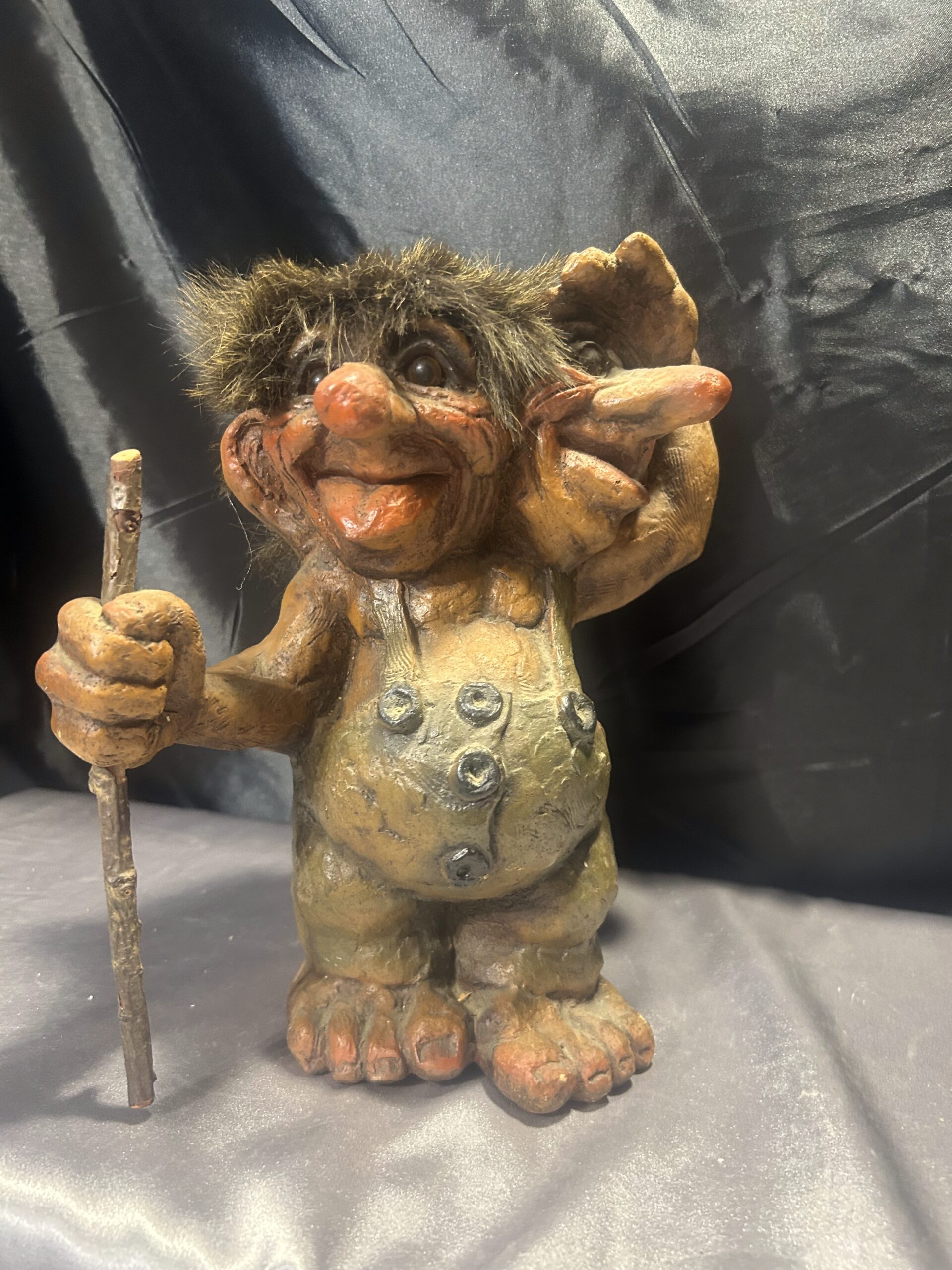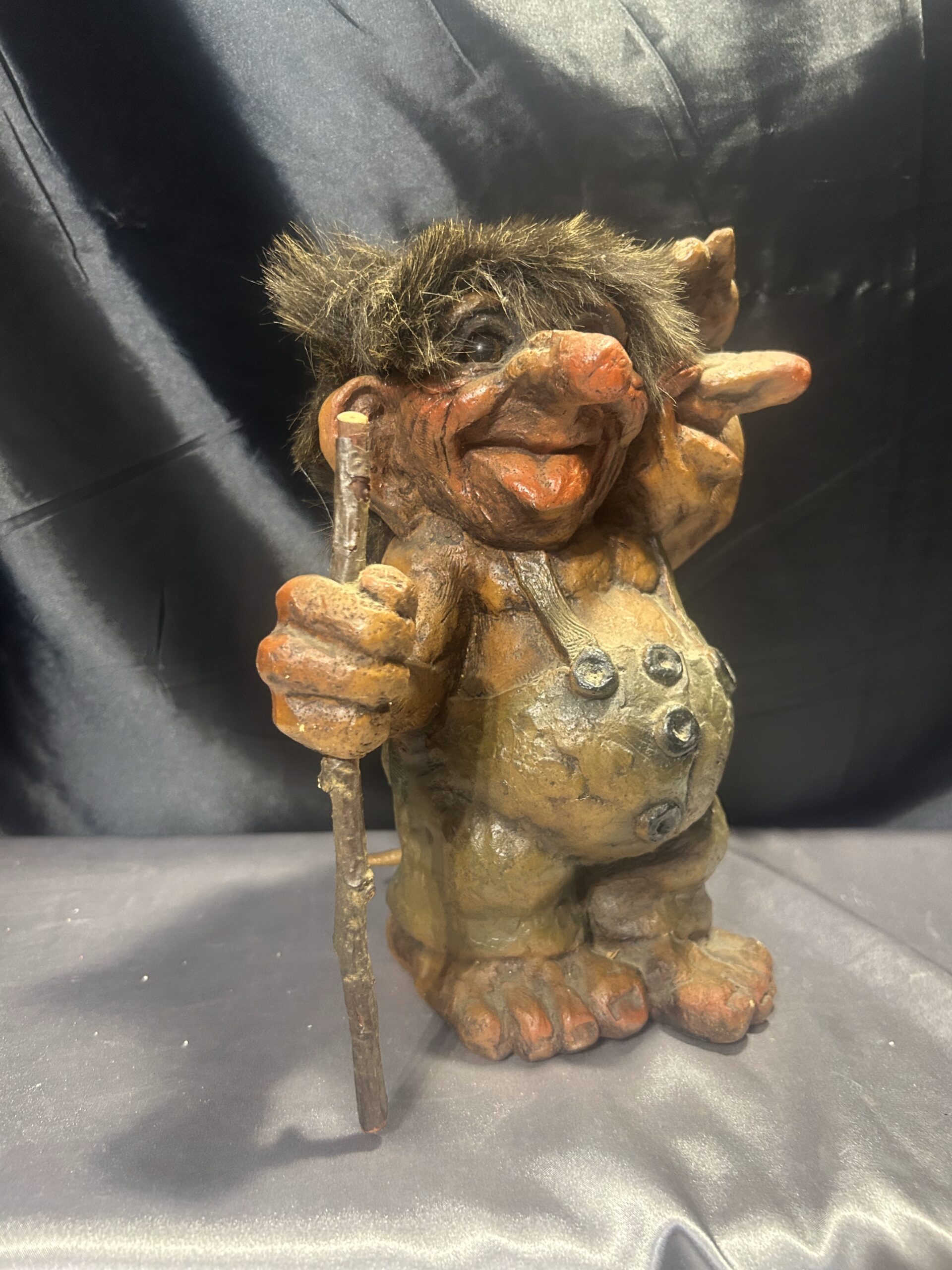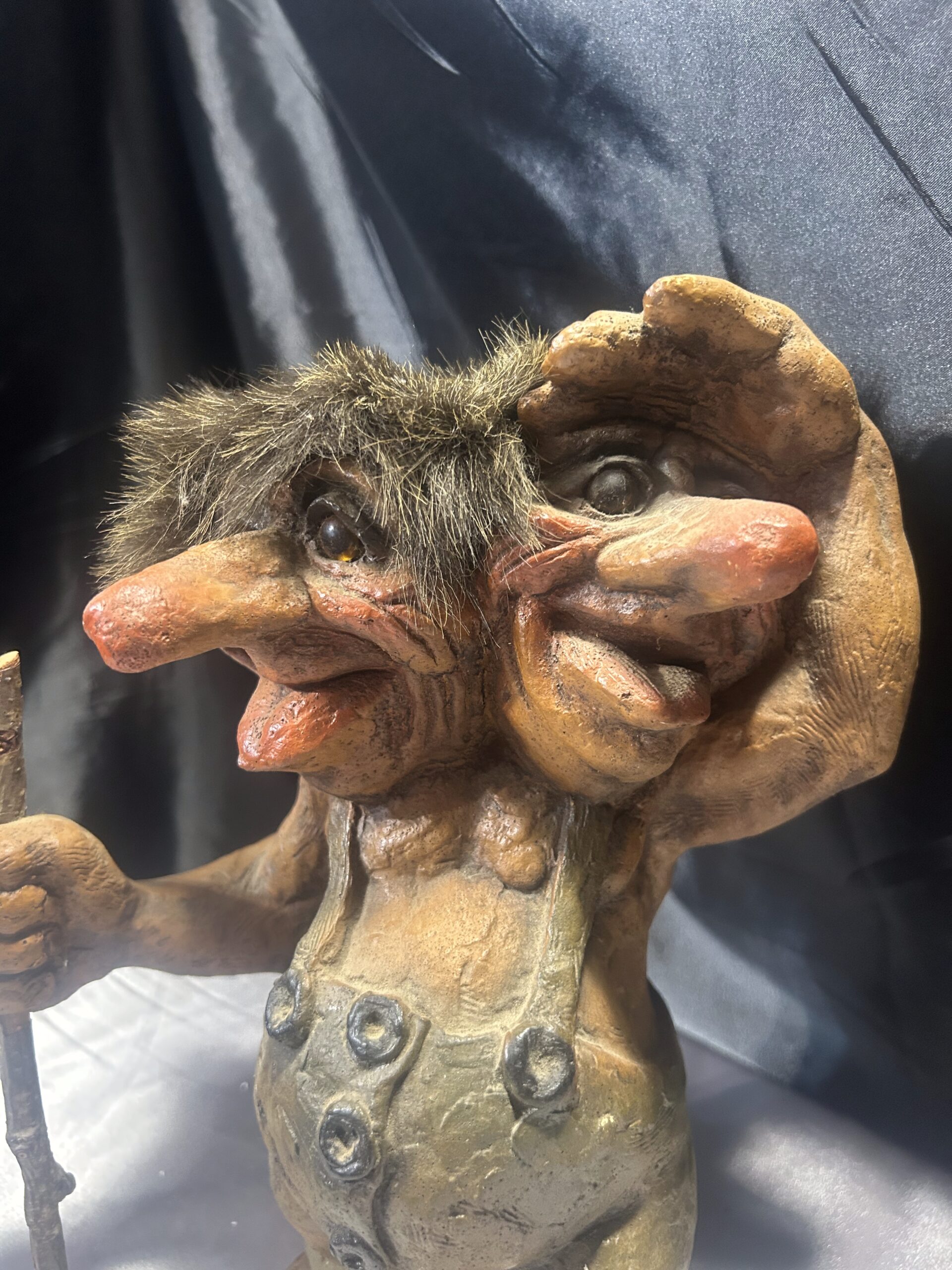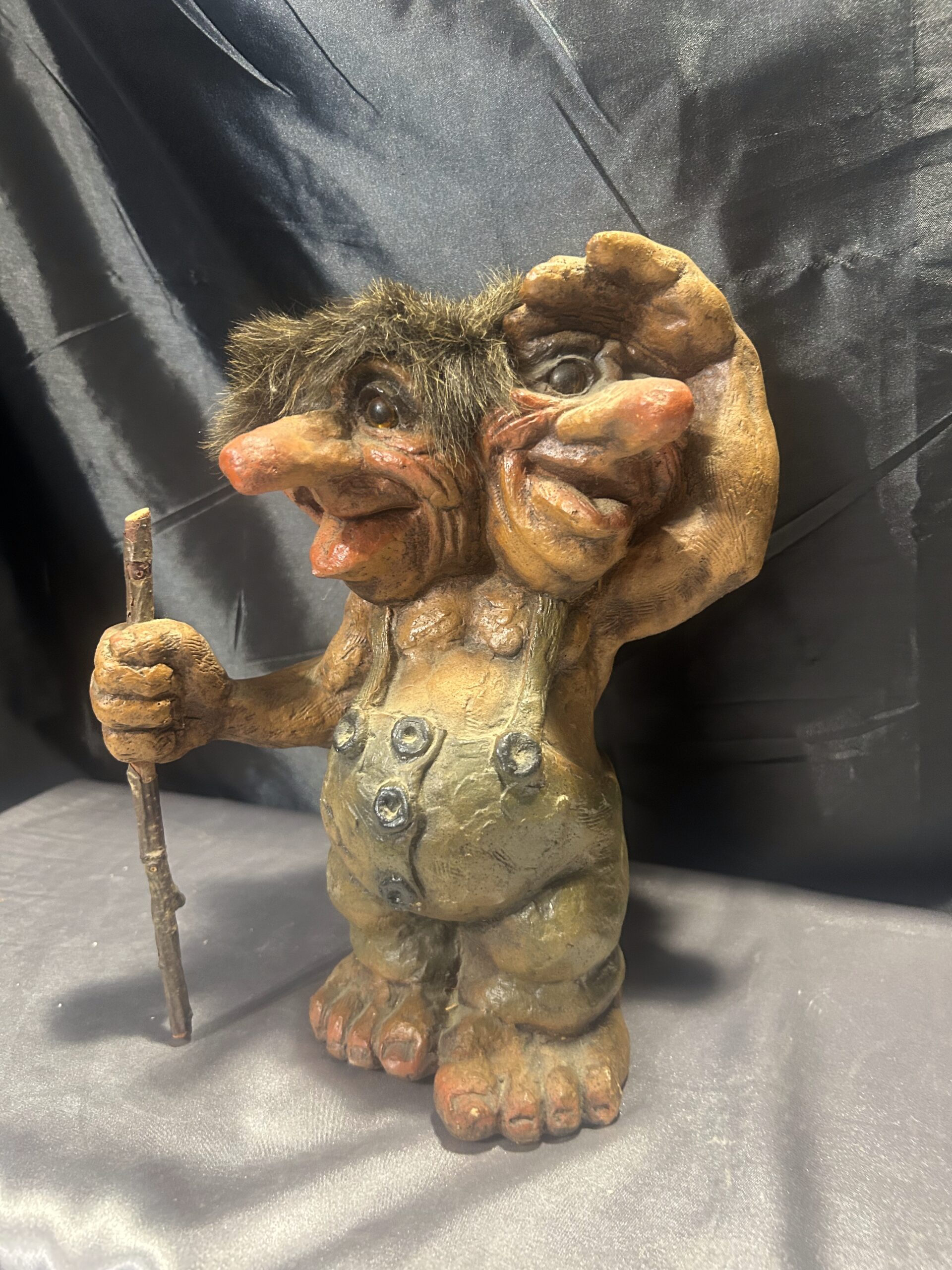 Dwugłowy troll z drewnianym kijem – unikatowa norweska figurka