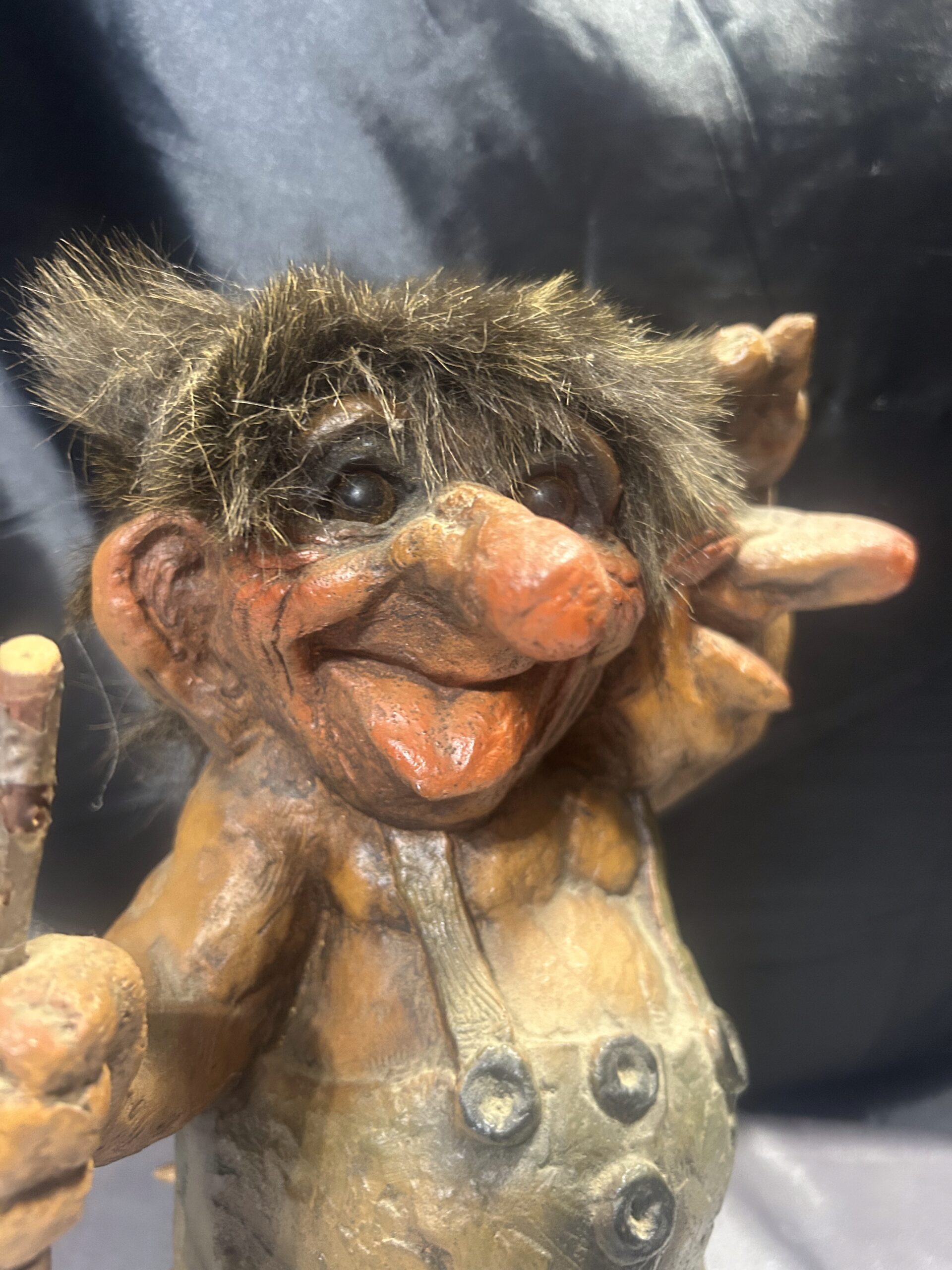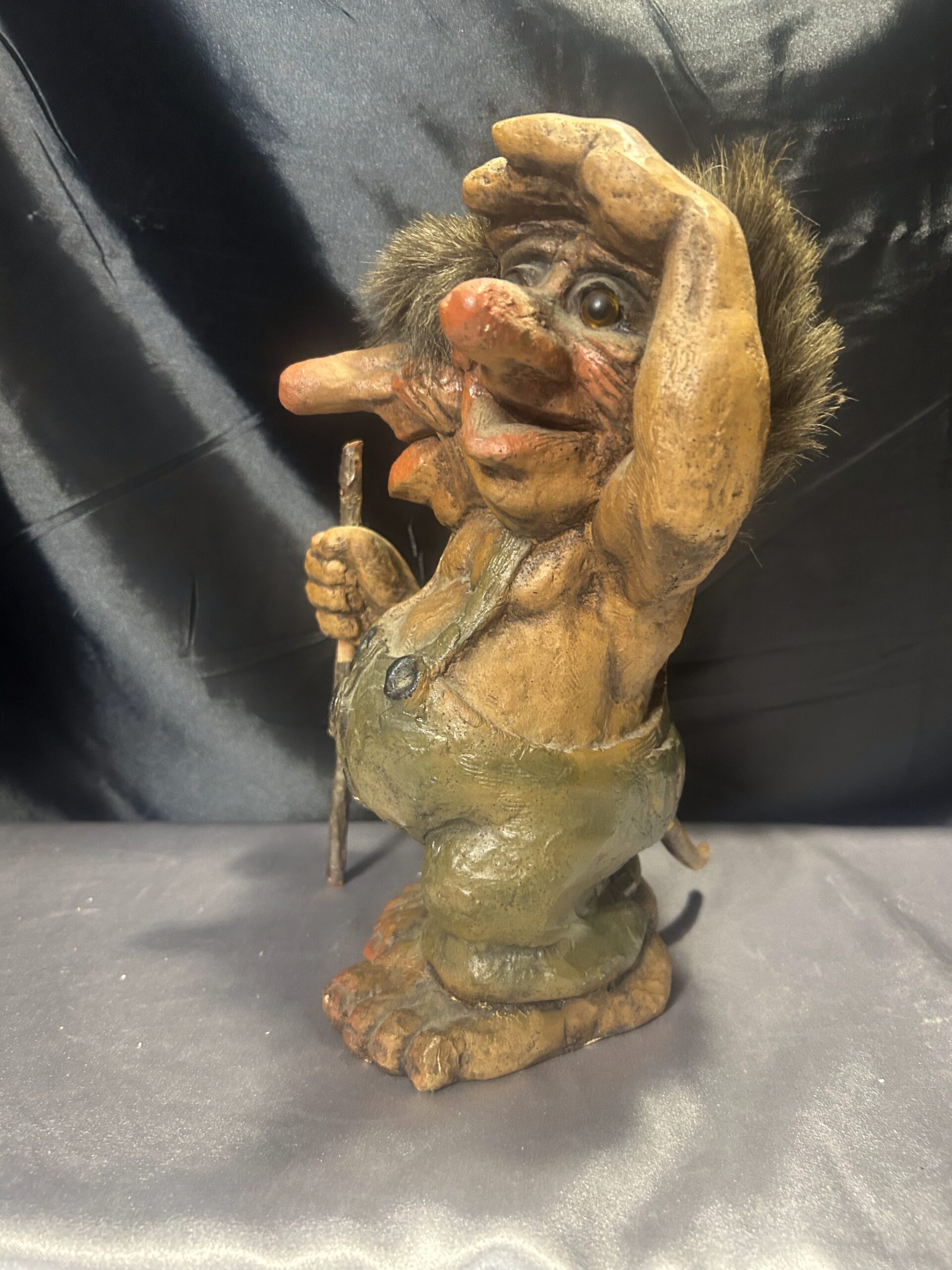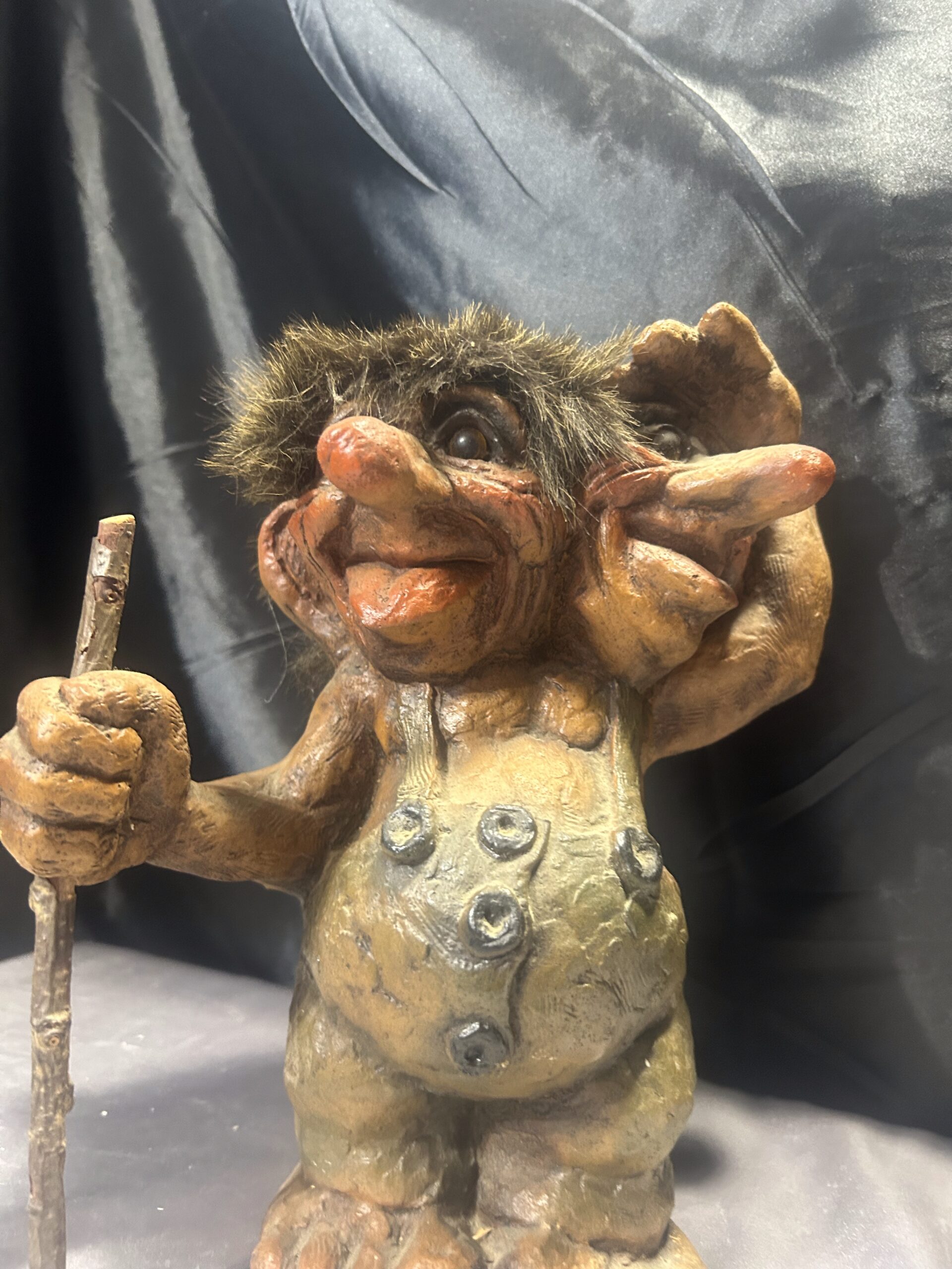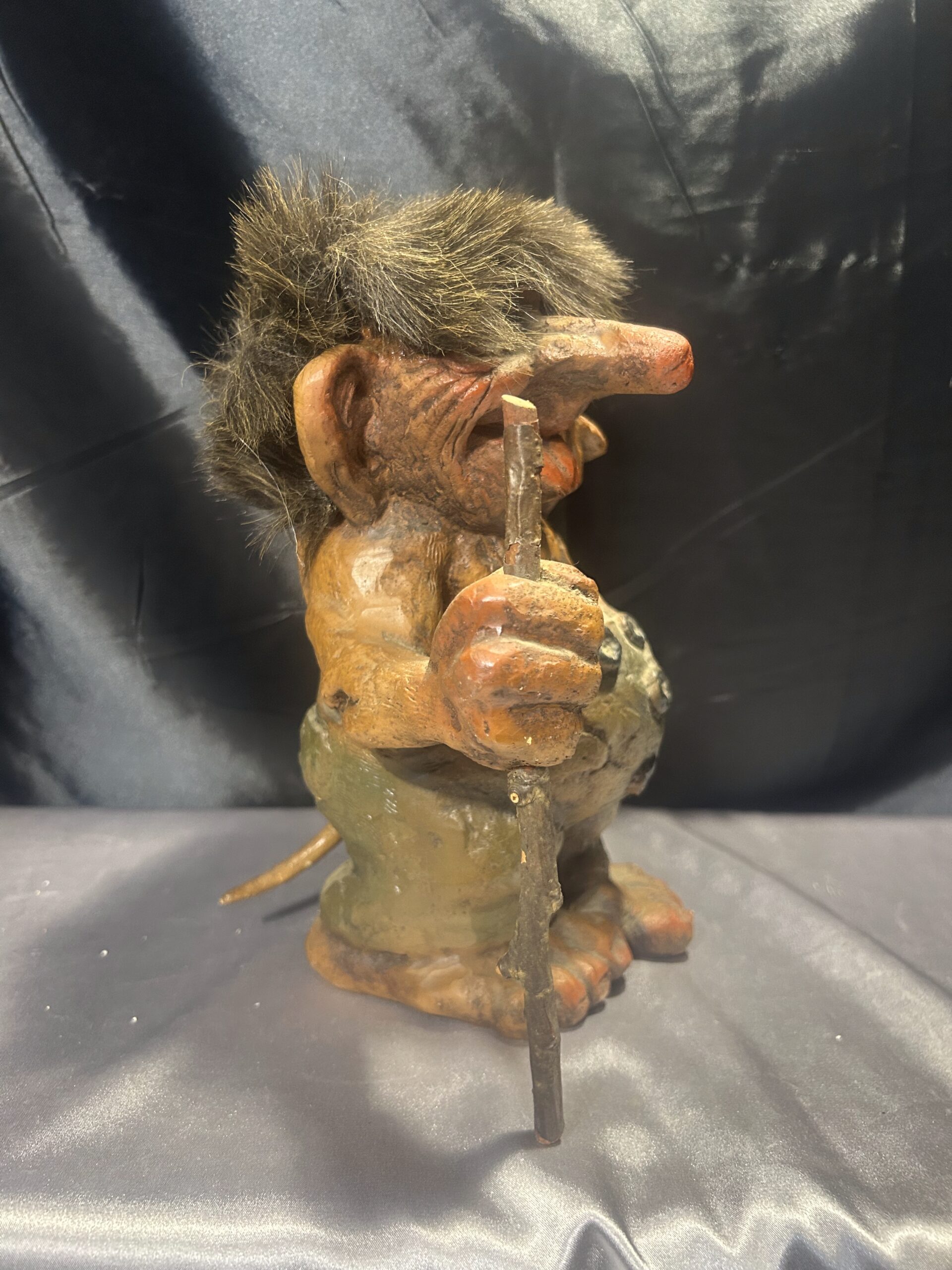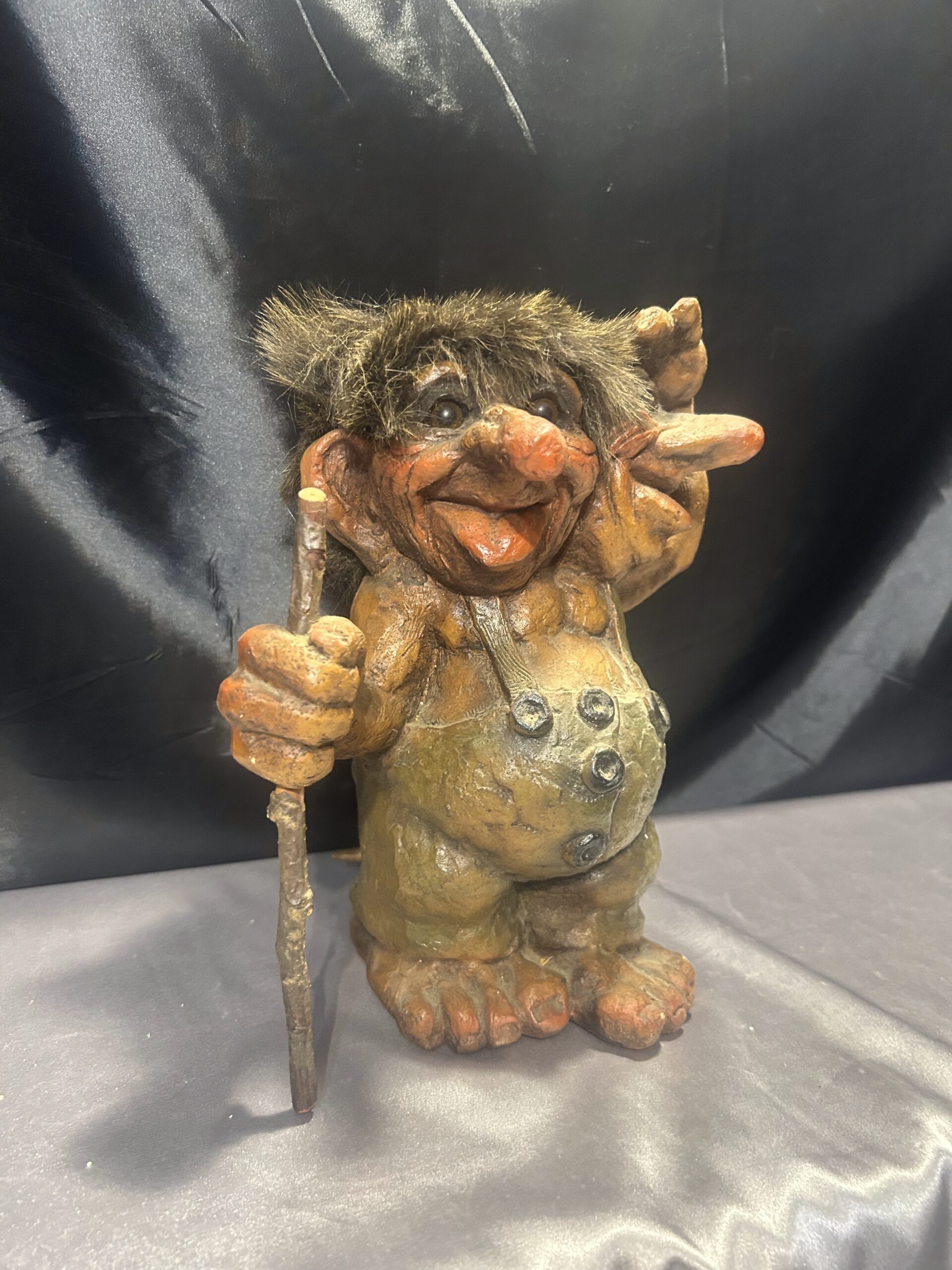 Dwugłowy troll z drewnianym kijem – unikatowa norweska figurka