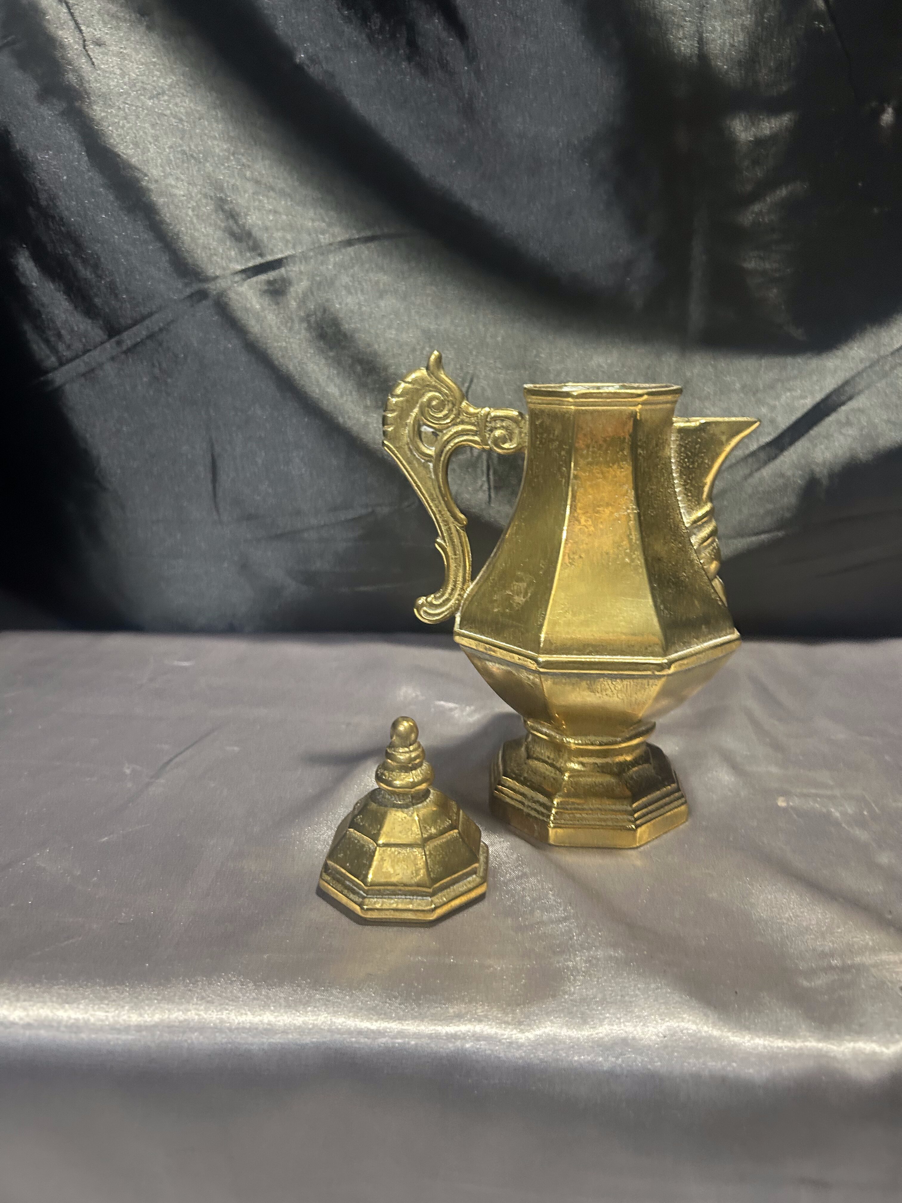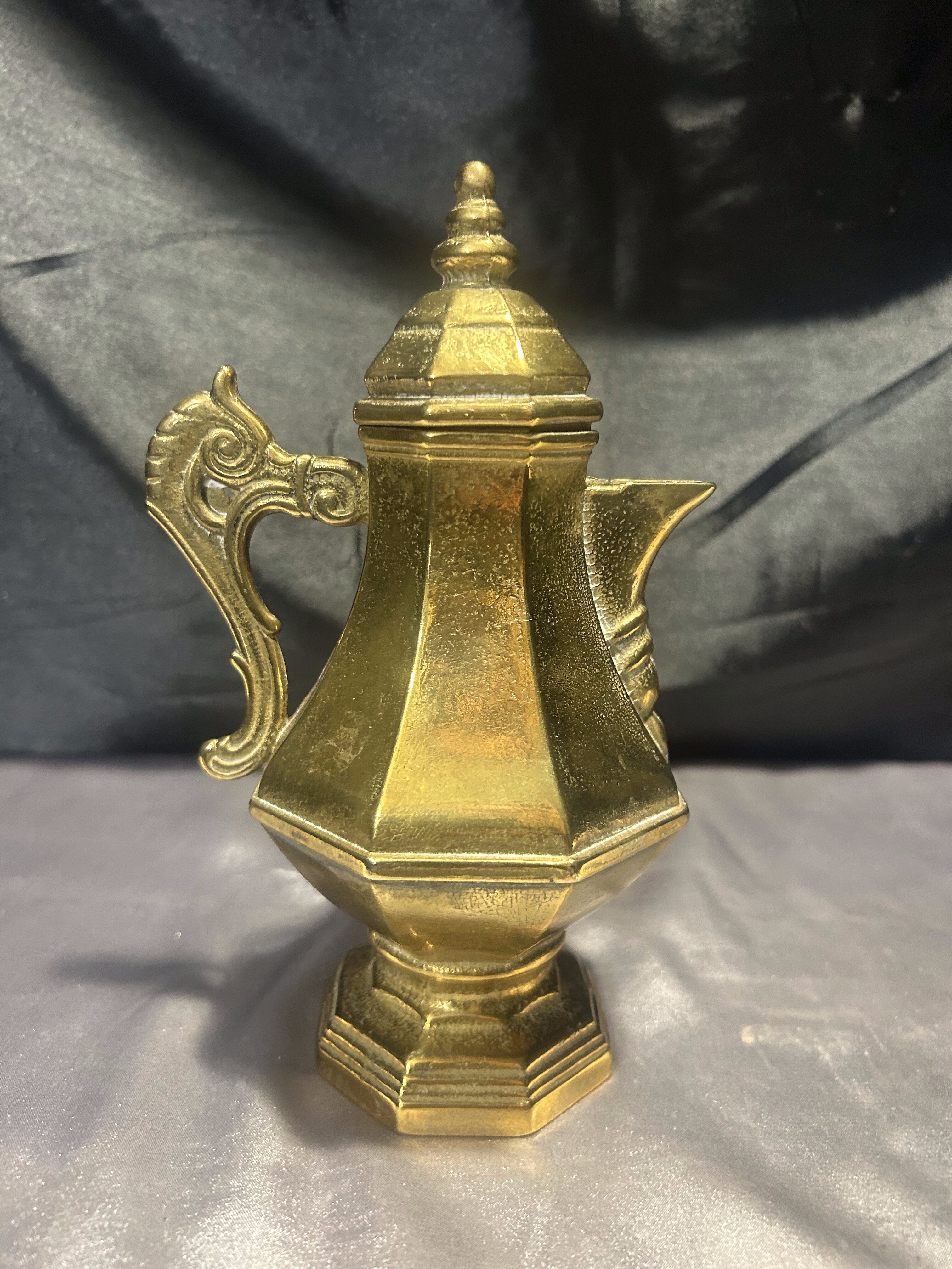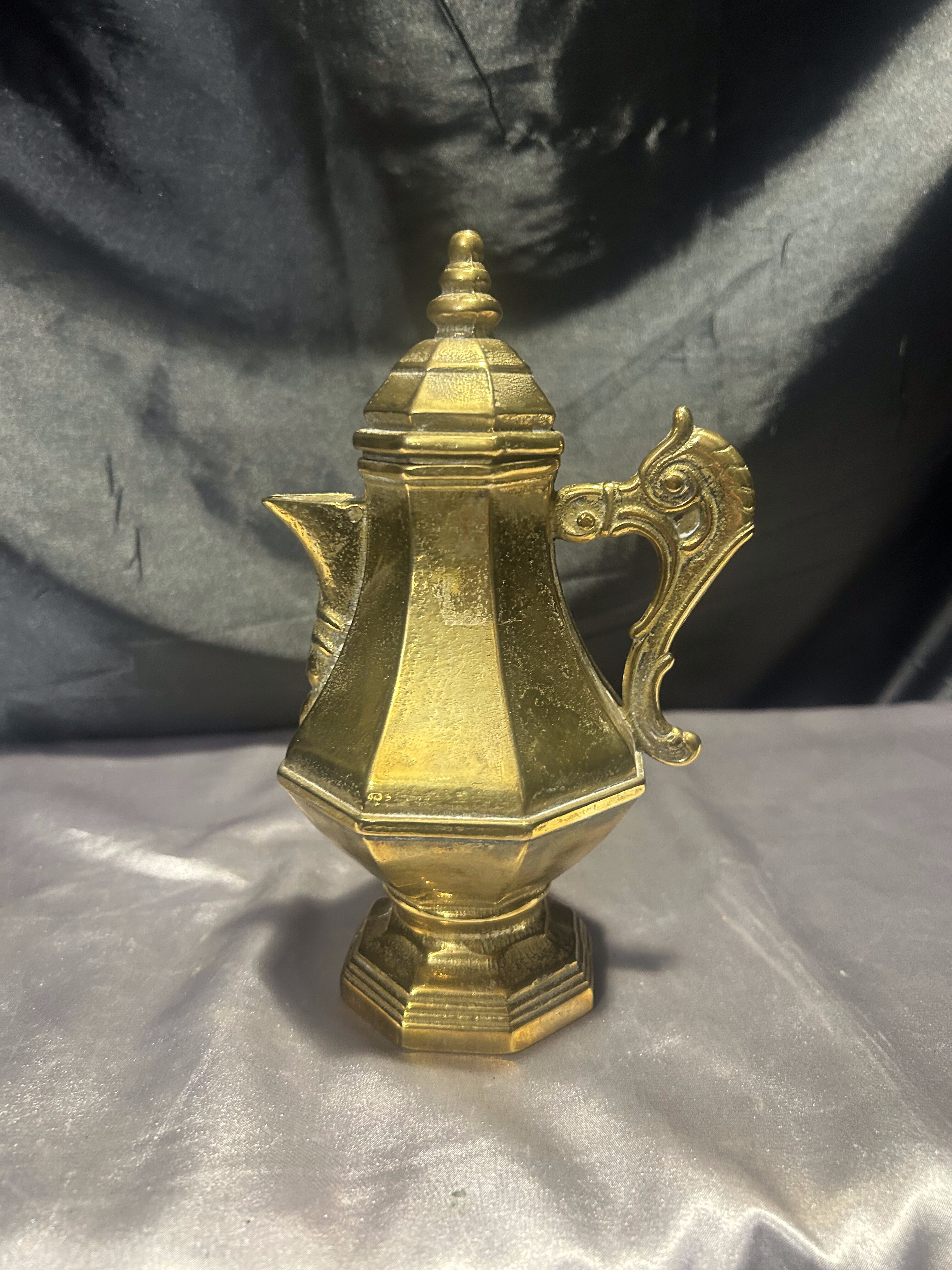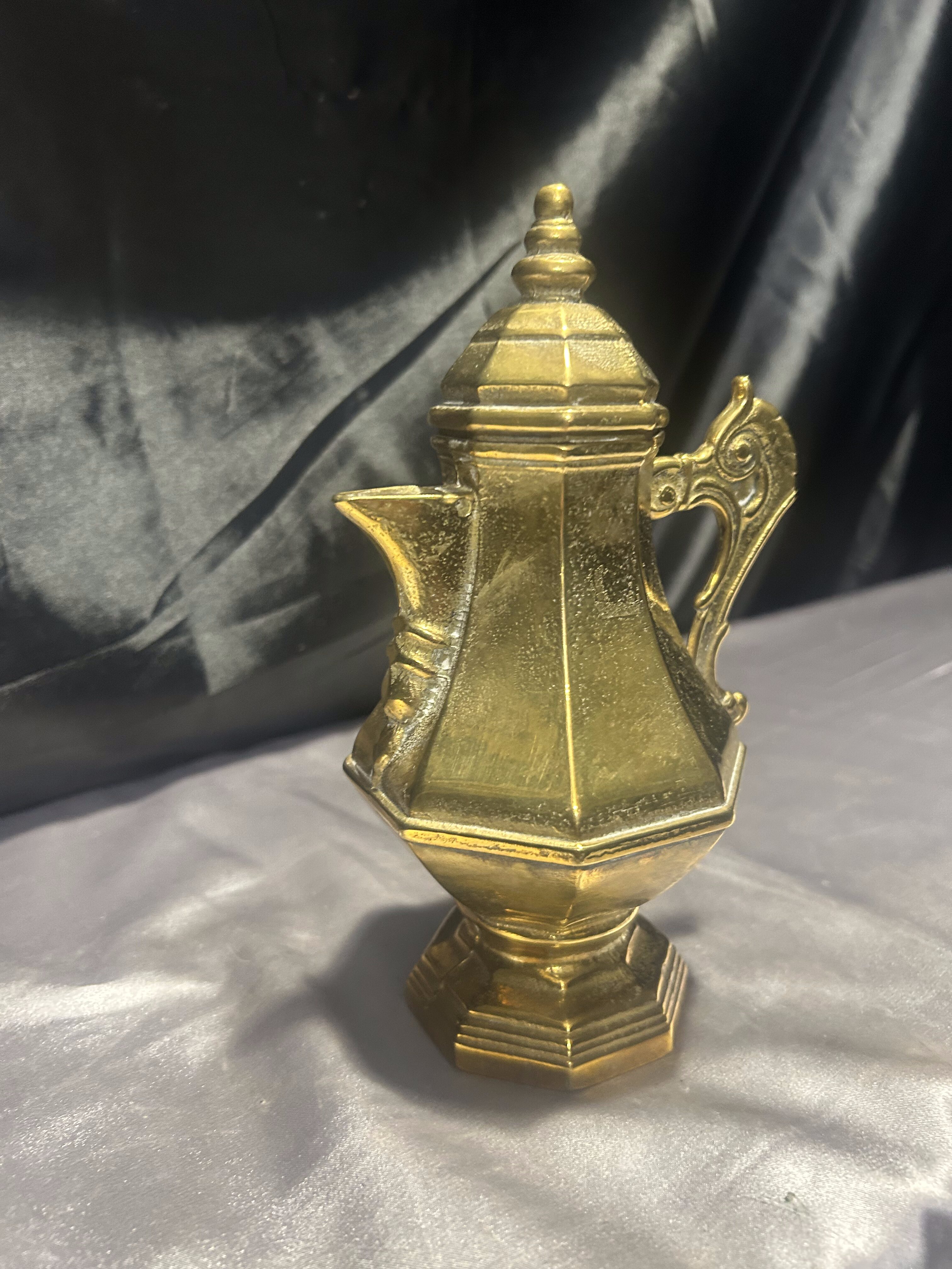 Dzbanek mosiężny z pokrywką – z uchem do trzymania – styl vintage
