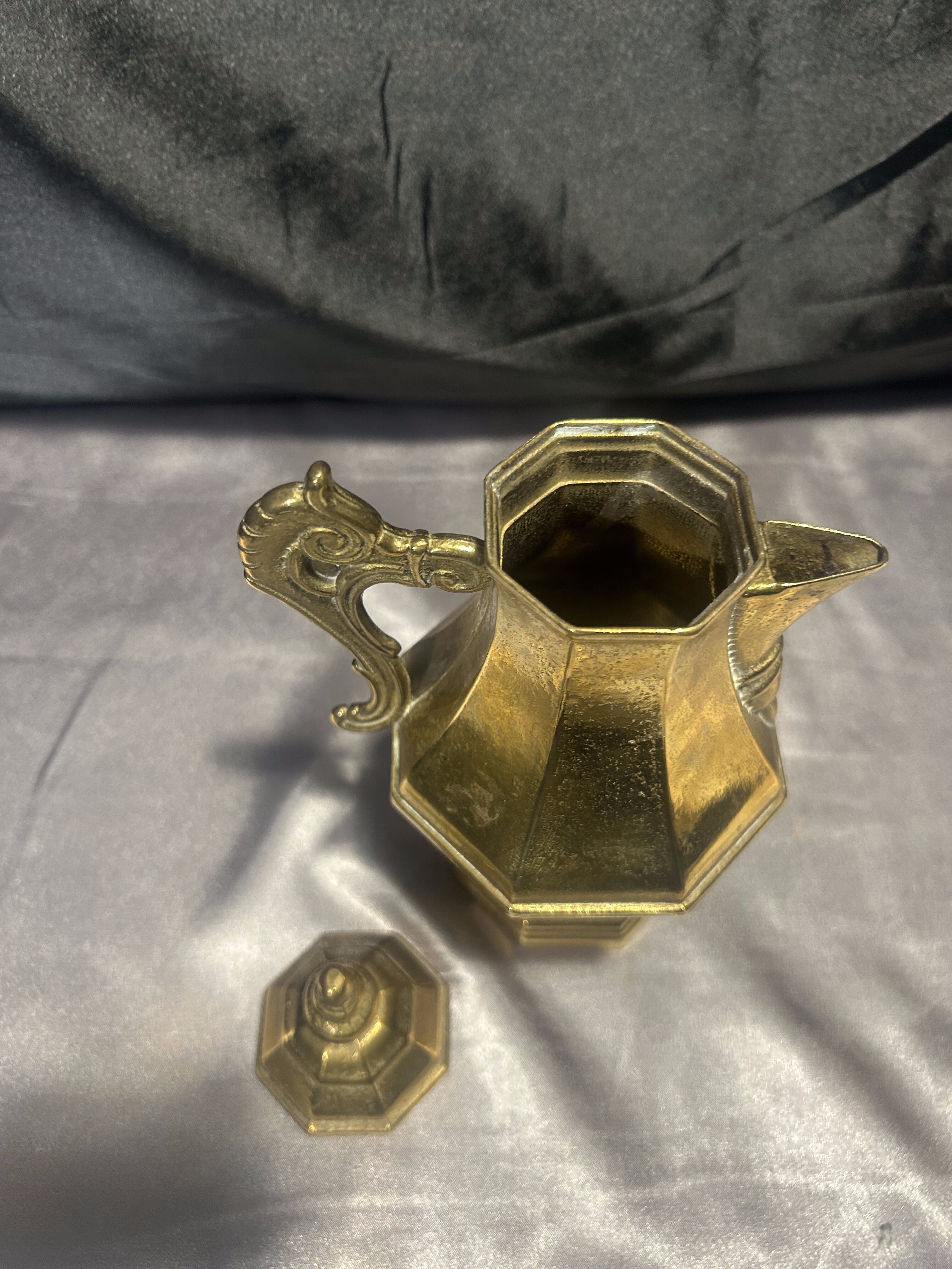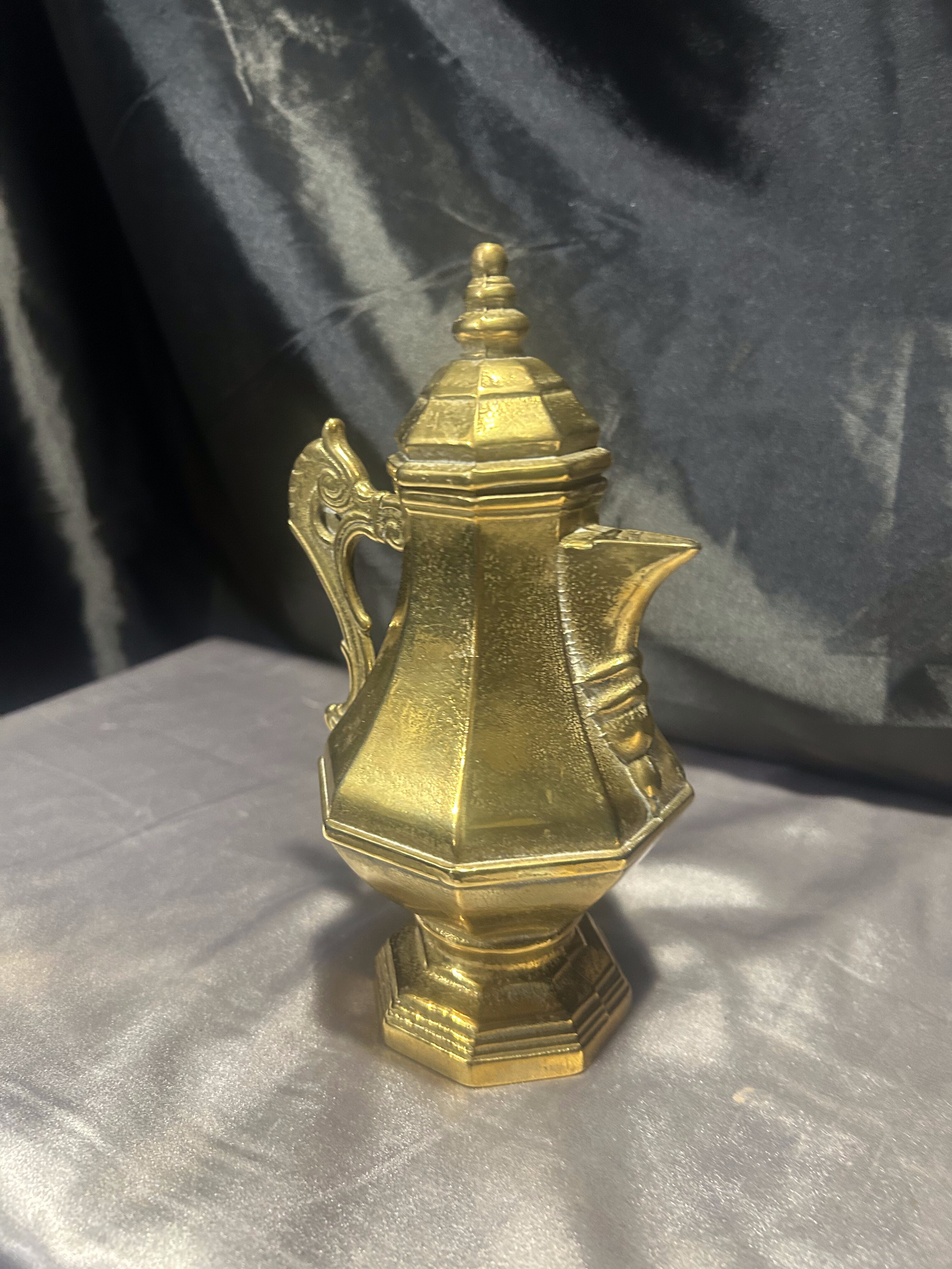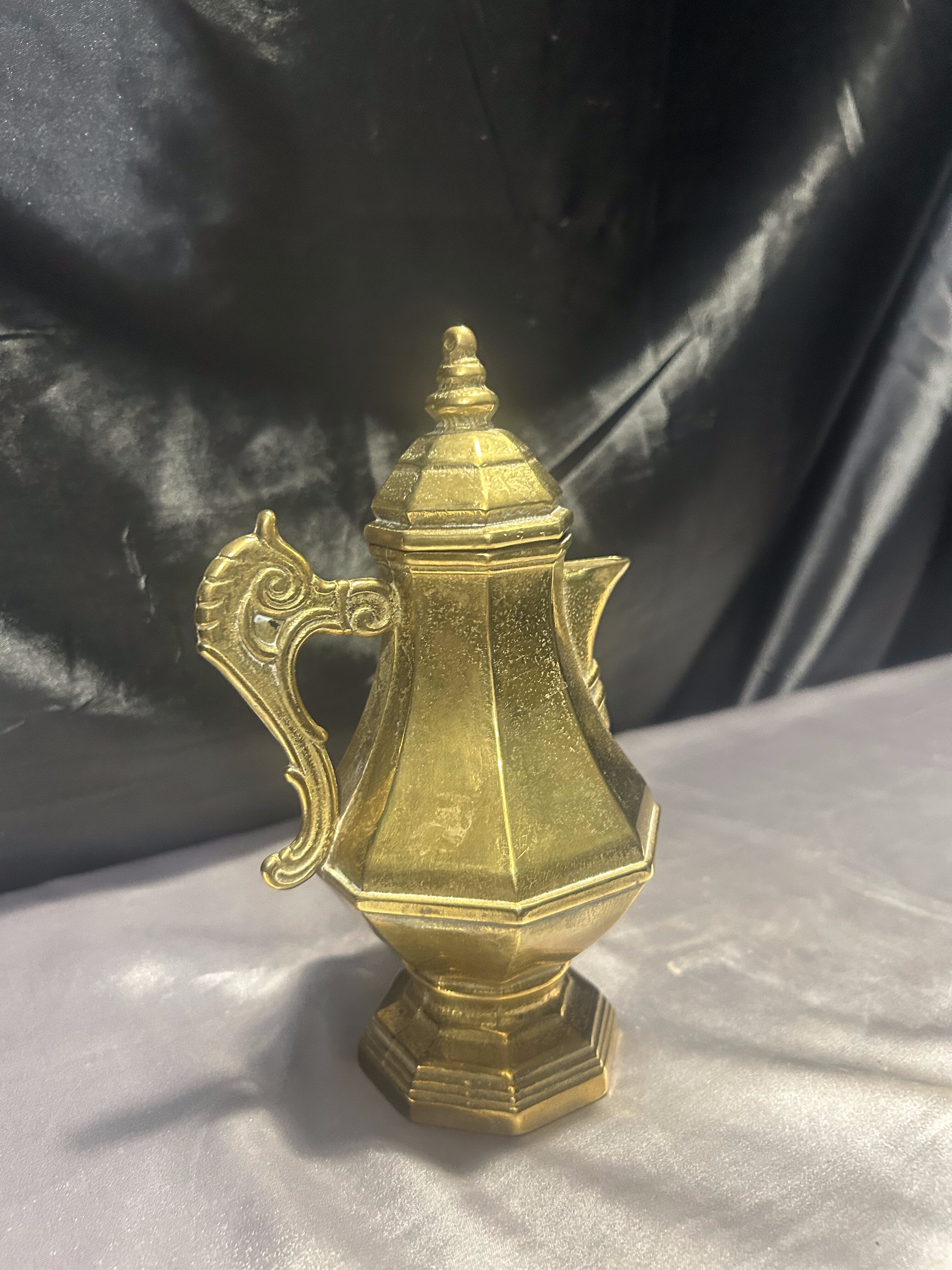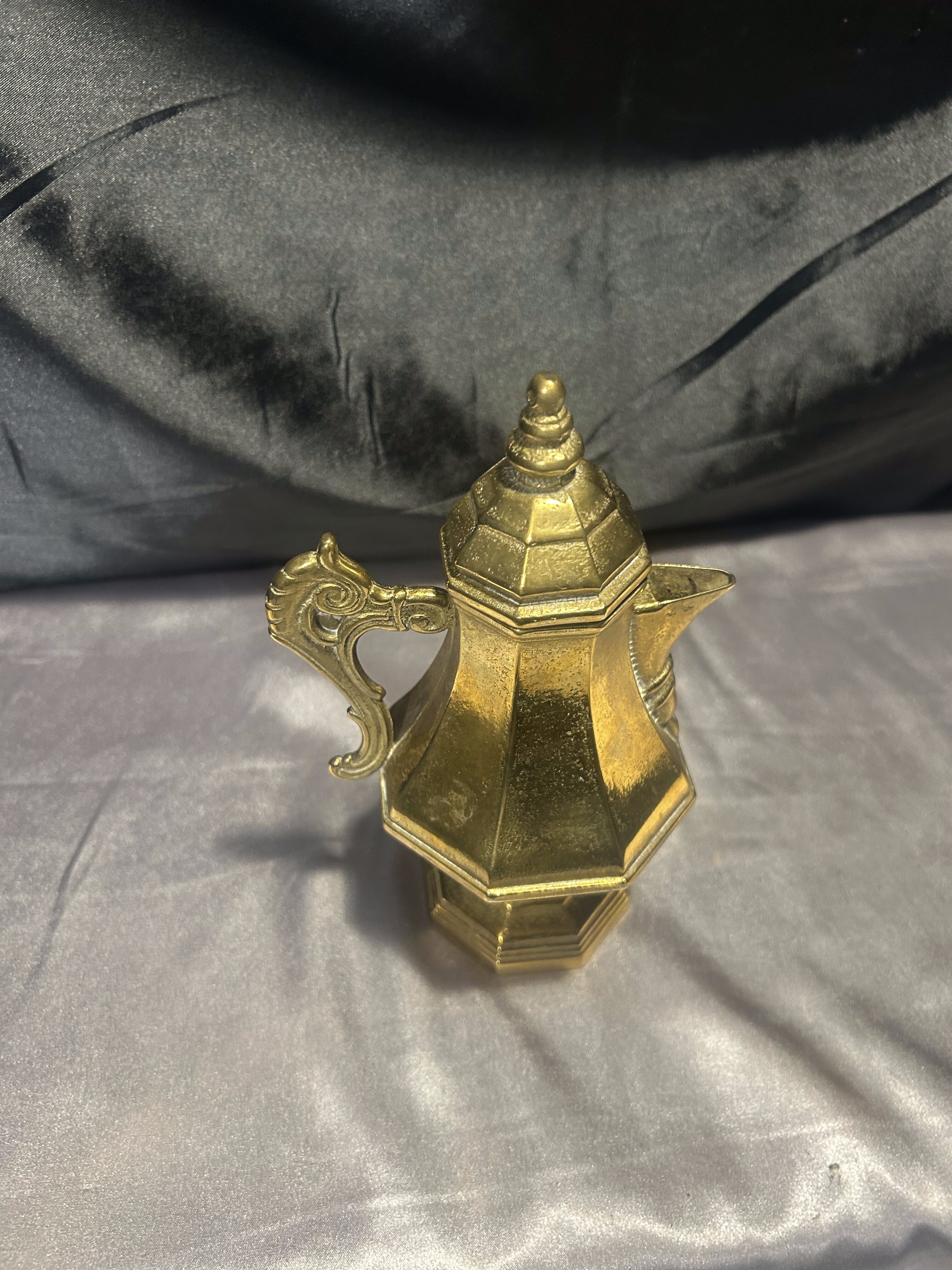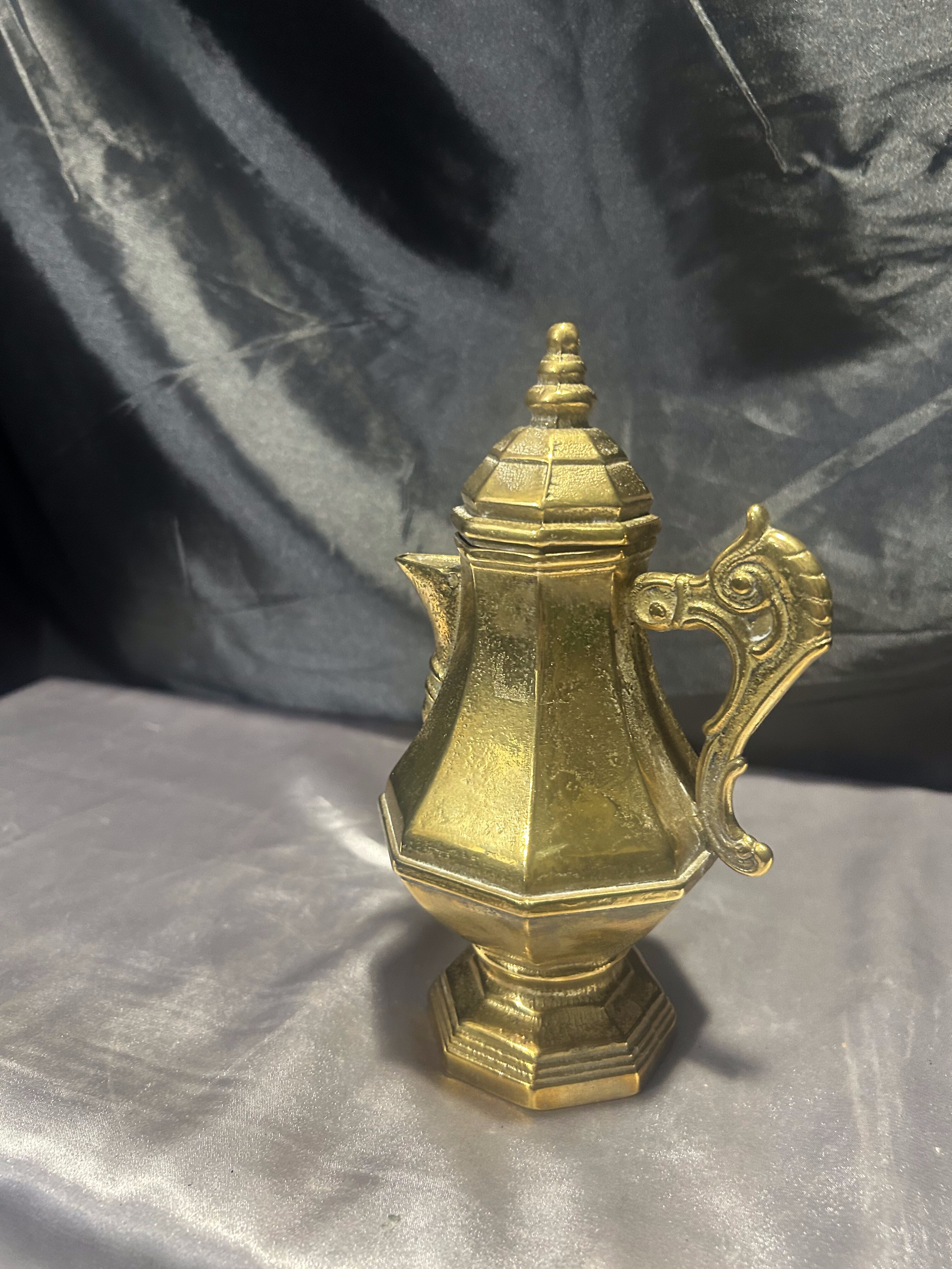 Dzbanek mosiężny z pokrywką – z uchem do trzymania – styl vintage