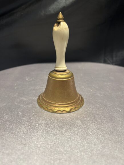 Mosiężny dzwonek z dekoracyjną rączką – vintage – wysokość 11 cm