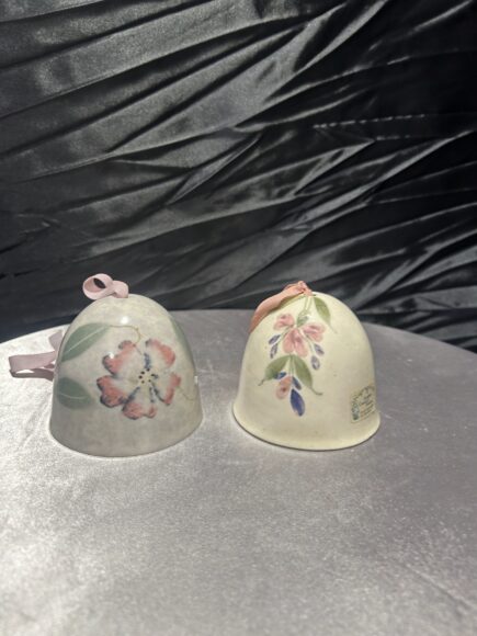 Zestaw 2 ceramicznych dzwonków – ręcznie malowane kwiaty – styl rustykalny