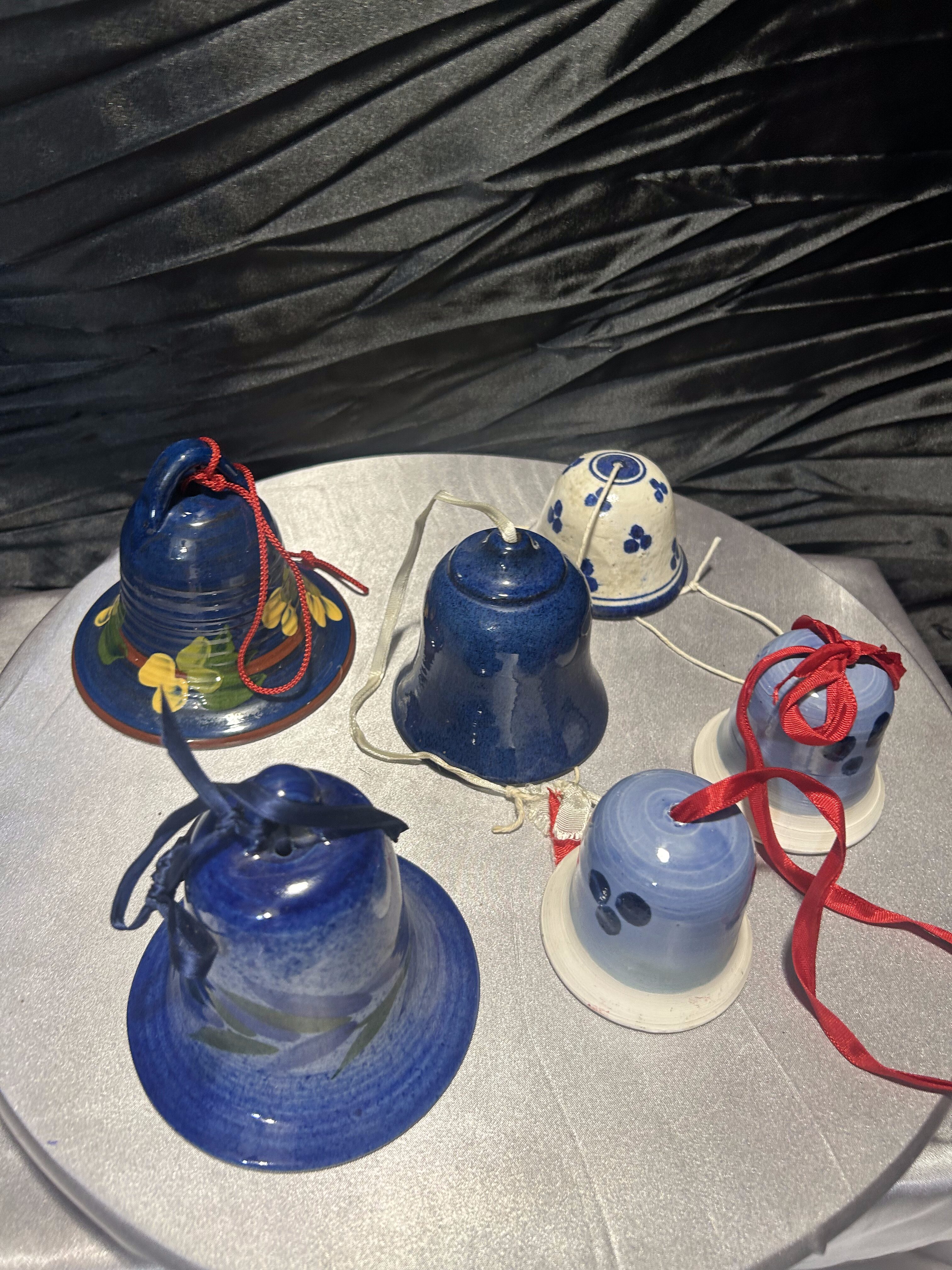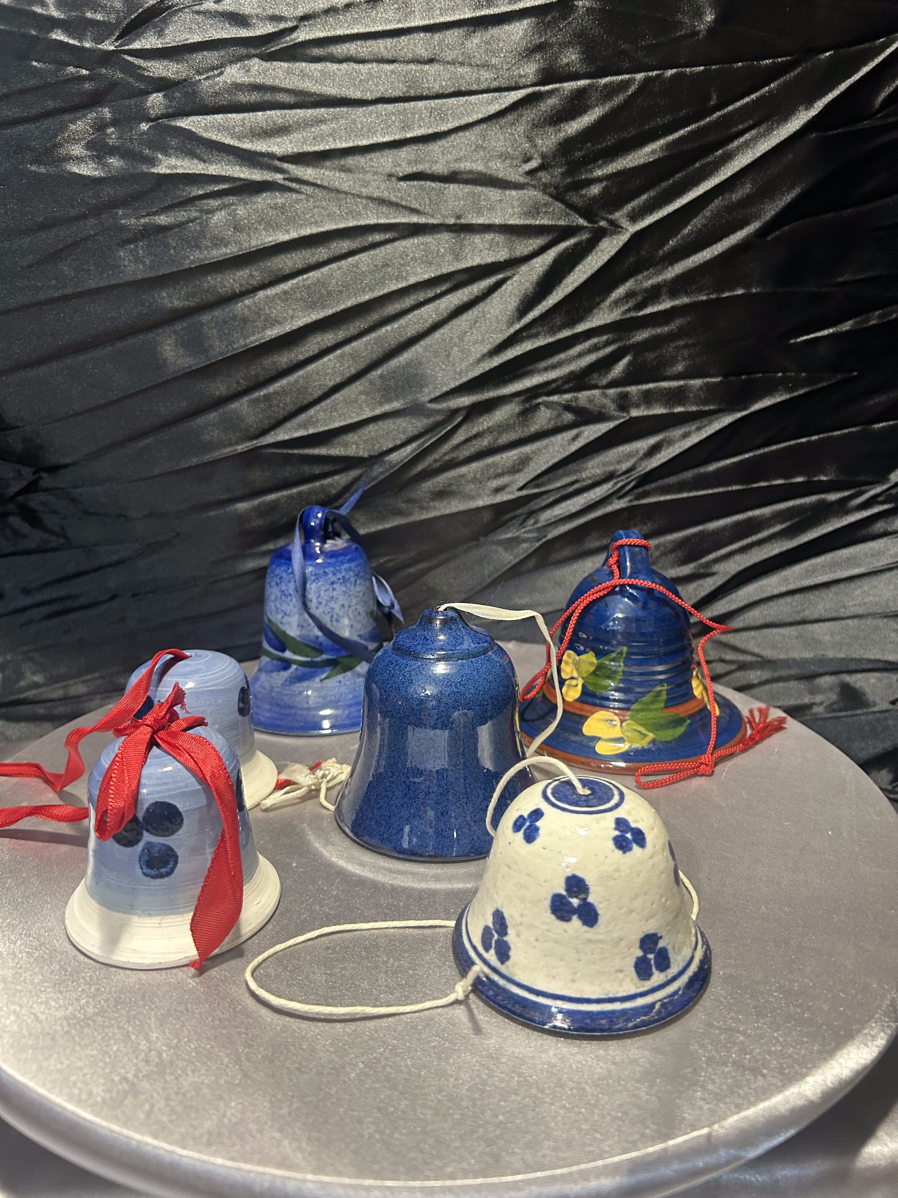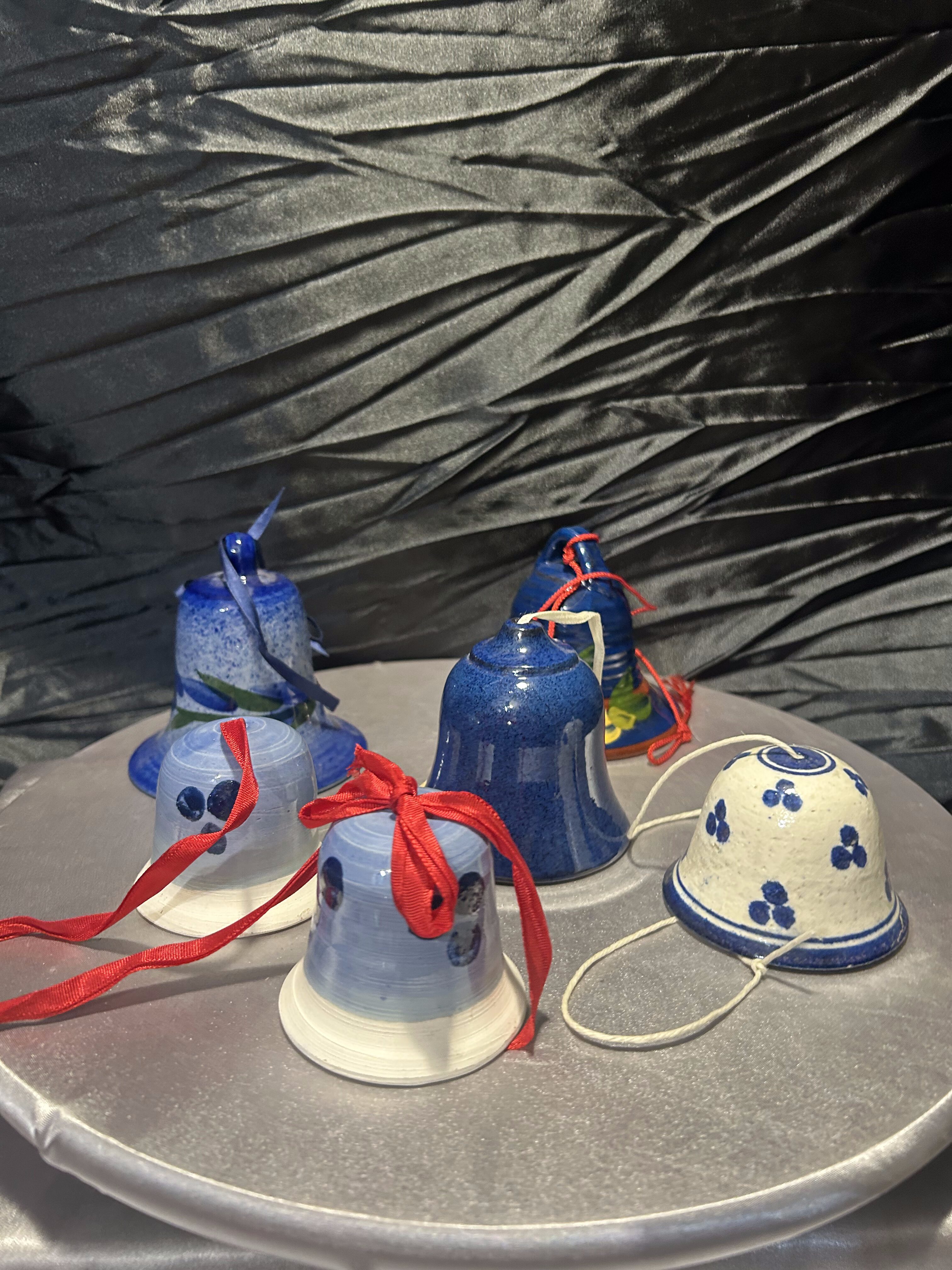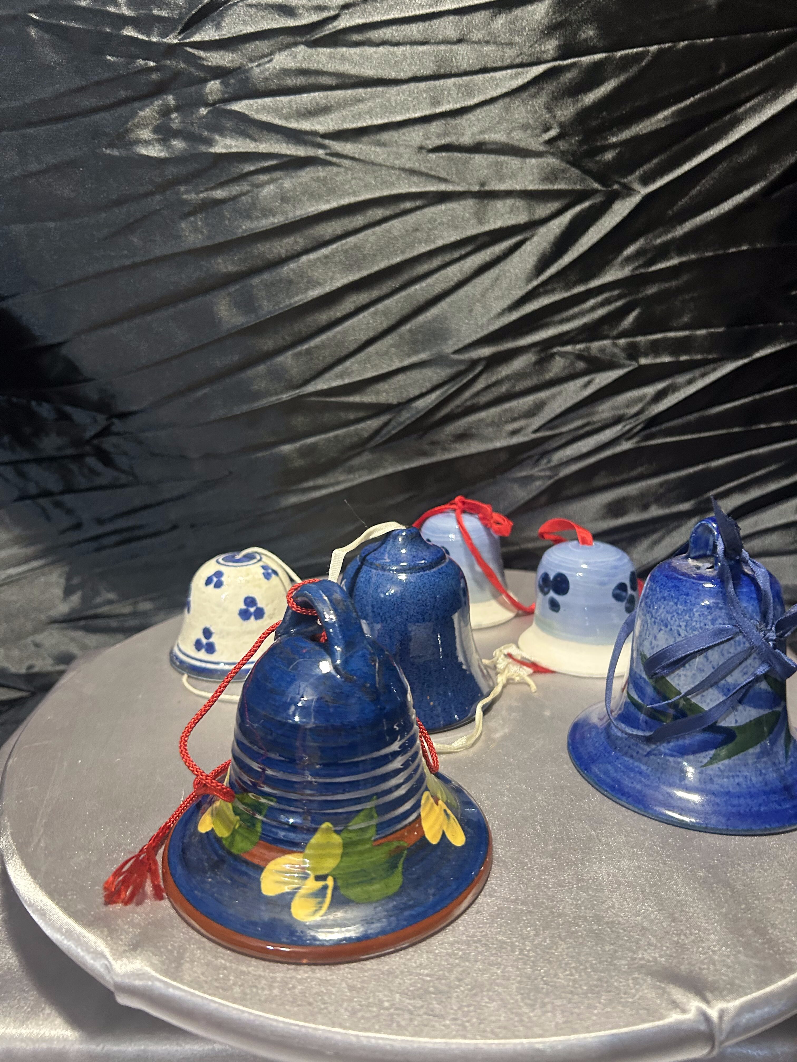 Piękna kolekcja sześciu ceramicznych dzwonków w odcieniach błękitu, granatu i bieli, ozdobionych delikatnymi wzorami kwiatowymi i dekoracyjnymi wstążkami. Każdy z dzwonków różni się kształtem, wielkością i zdobieniem, dzięki czemu każdy egzemplarz jest unikatowy. Można zakupić jeden wybrany dzwonek lub kilka sztuk, tworząc własny zestaw dekoracyjny. Doskonale sprawdzą się jako świąteczne ozdoby choinkowe, element dekoracji wnętrza w stylu rustykalnym, skandynawskim czy vintage, a także jako oryginalny prezent.