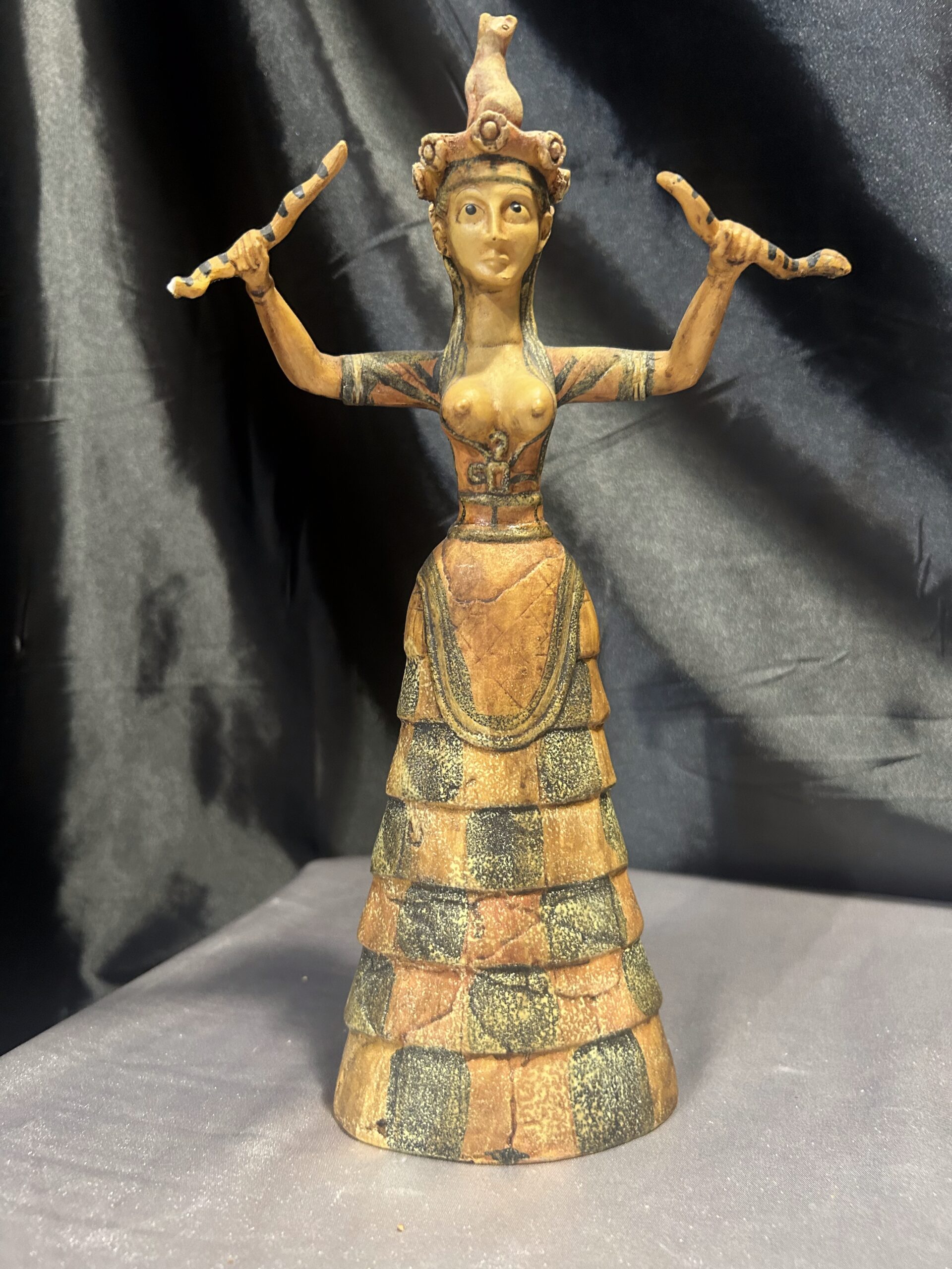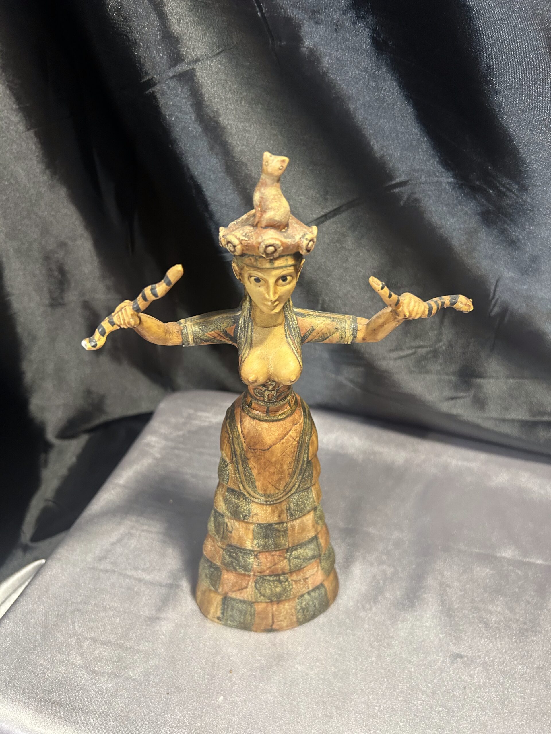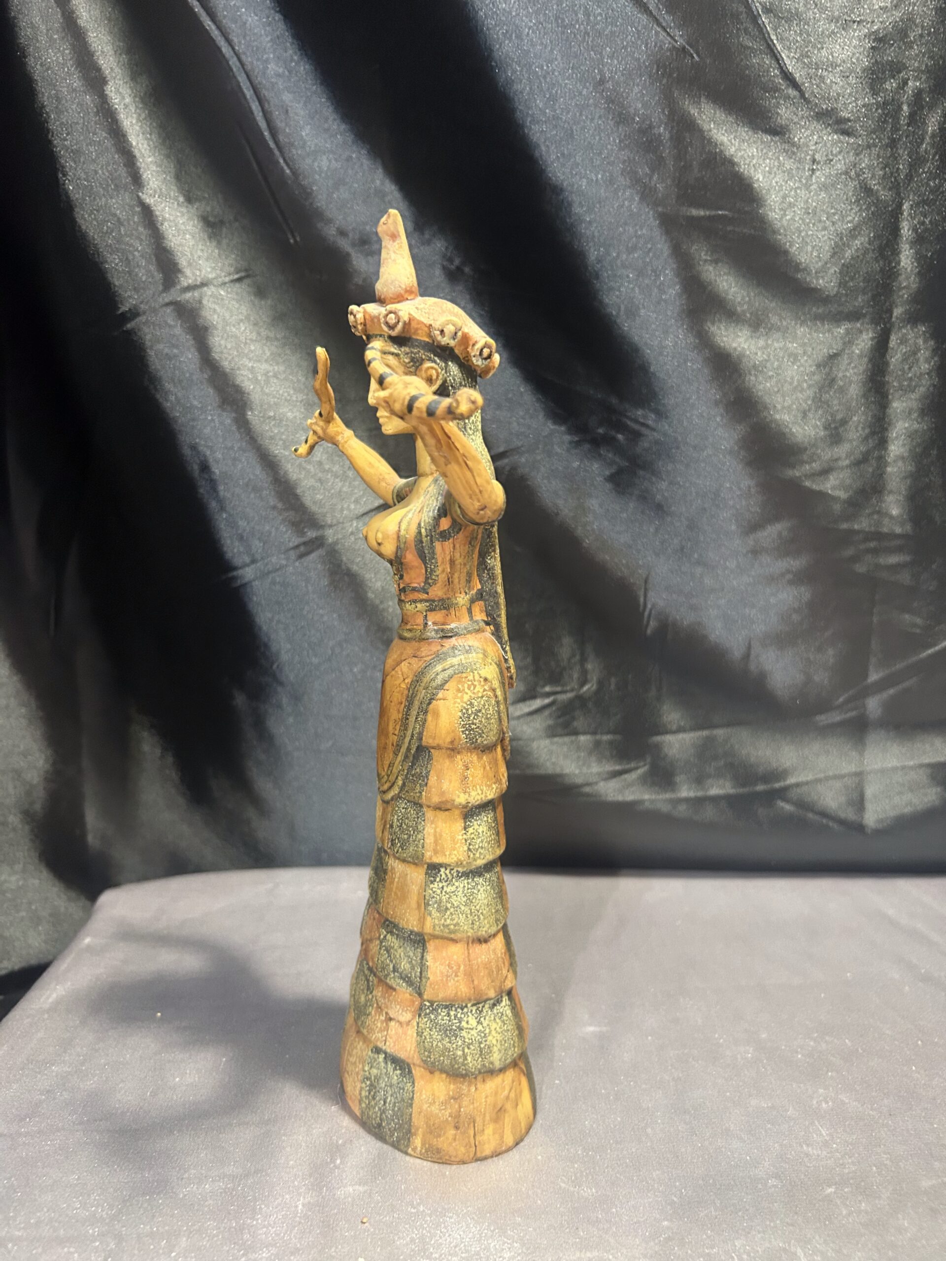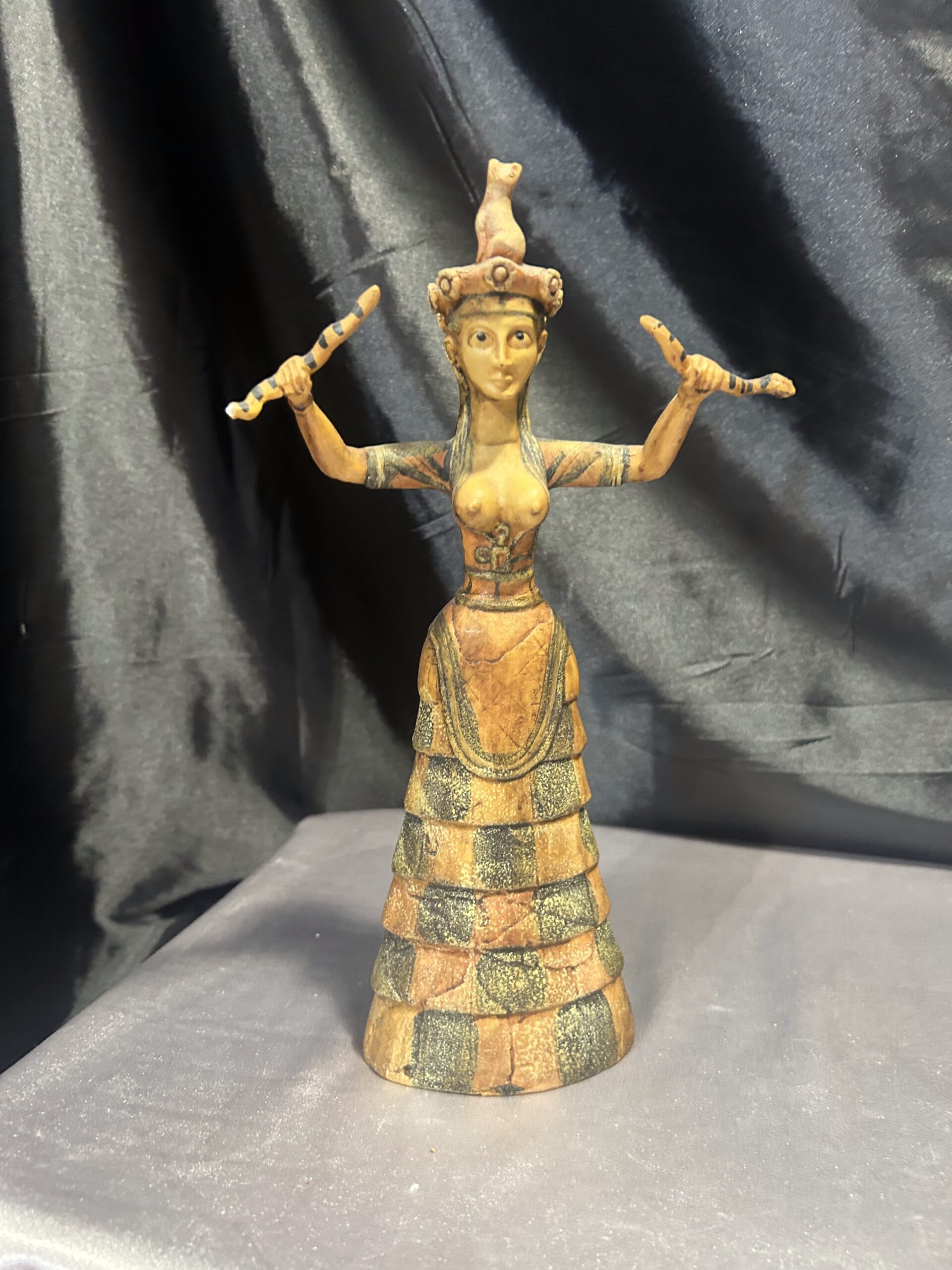 Oferujemy wyjątkową figurkę inspirowaną postacią Bogini Minojskiej, czczonej w starożytnych kulturach jako symbol płodności, ochrony i duchowej mocy. Rzeźba przedstawia boginię o dostojnej sylwetce, zdobionych szatach i charakterystycznym pozie, która od wieków kojarzona jest z siłami natury oraz kobiecą energią.