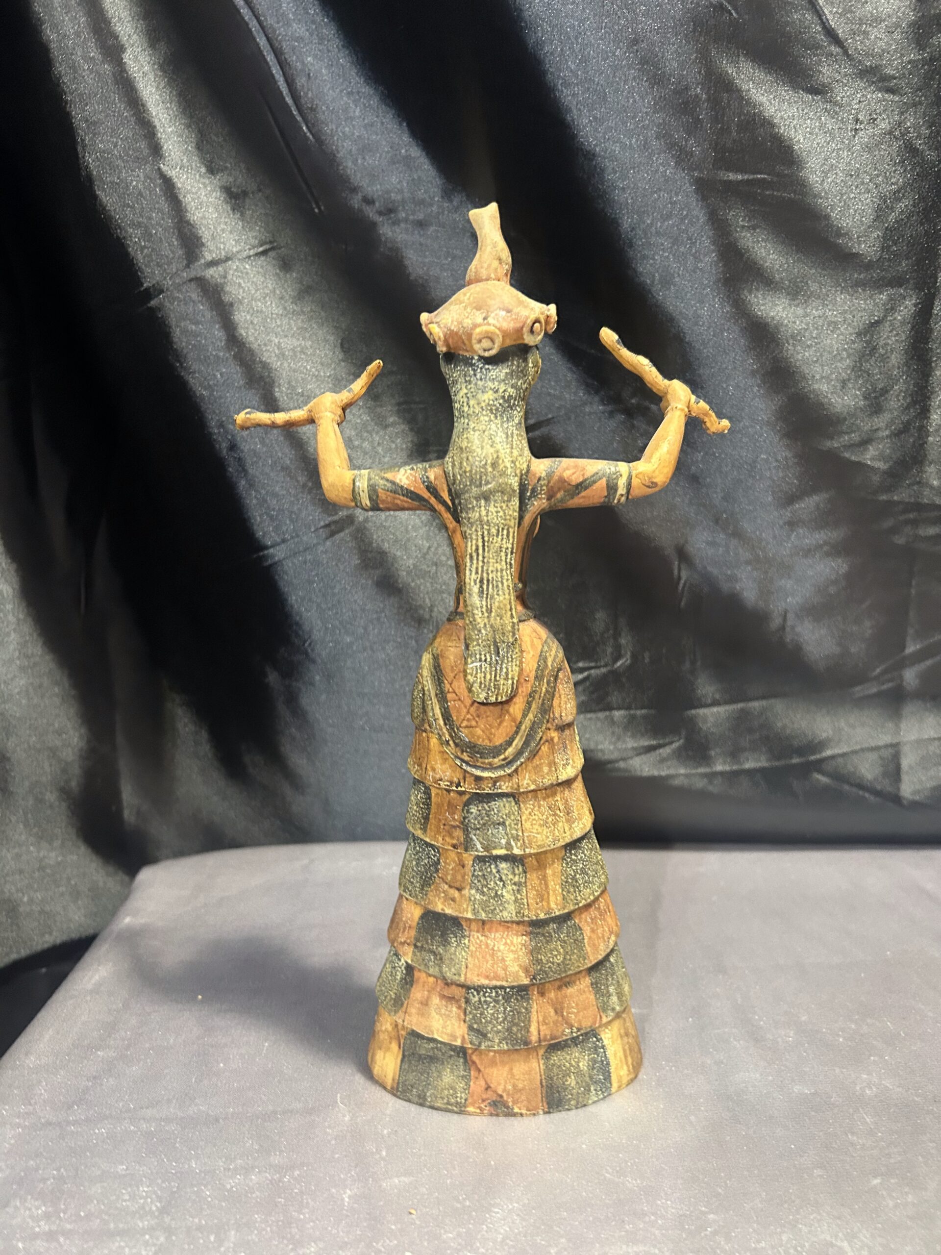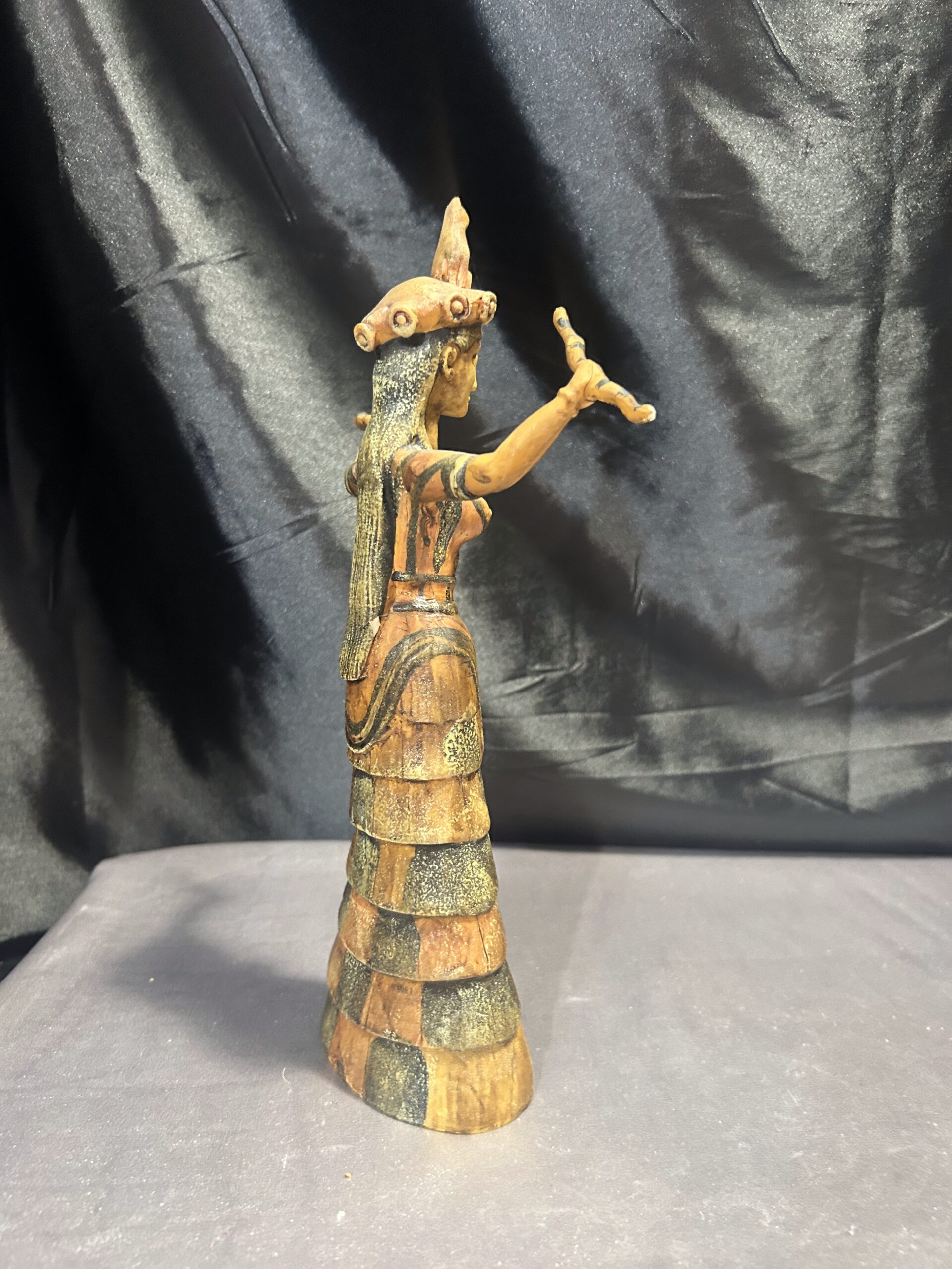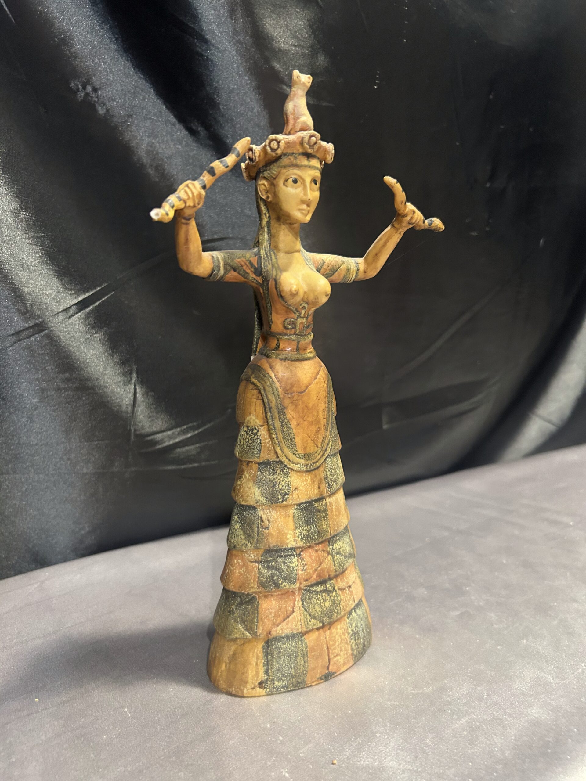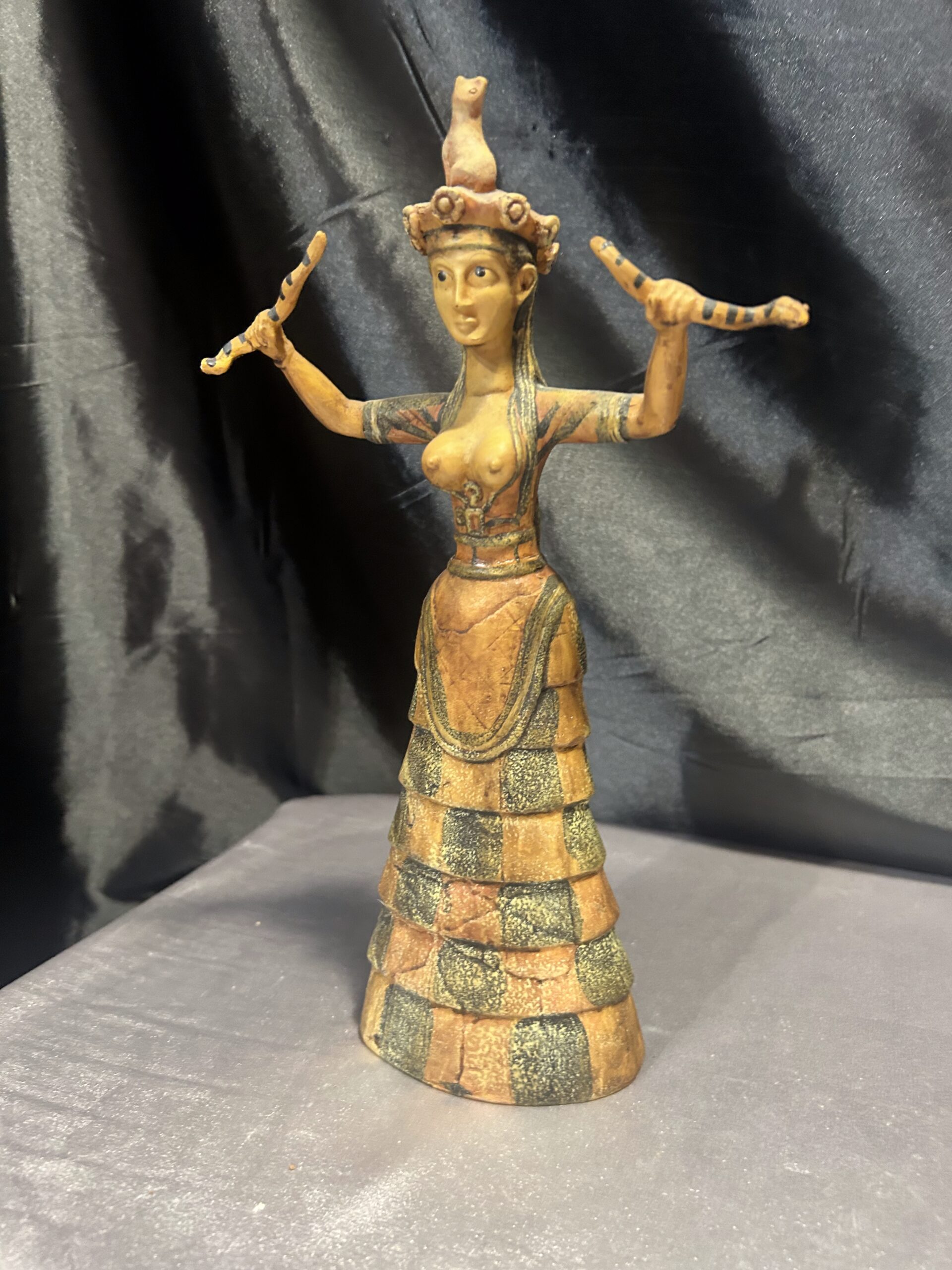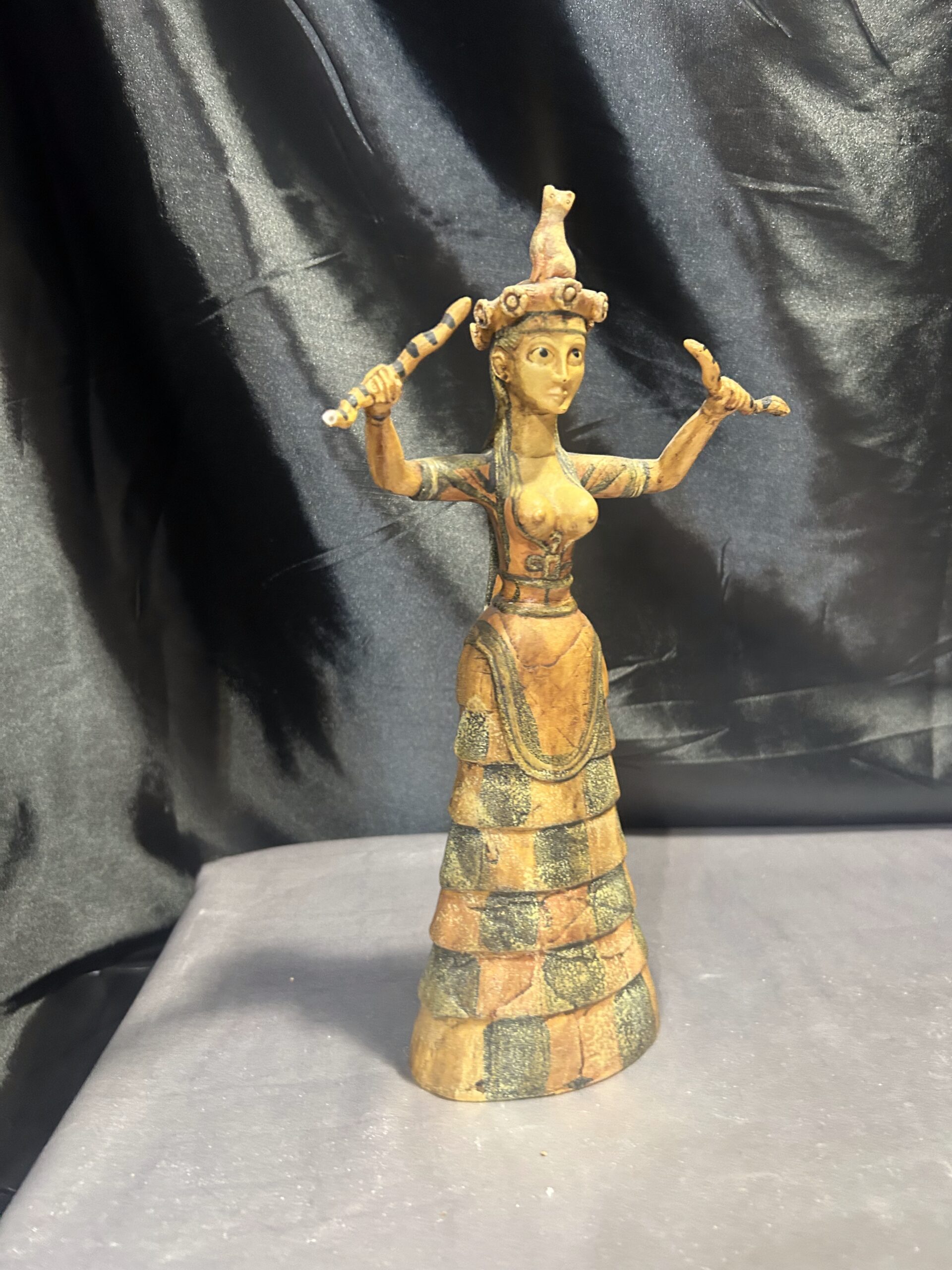 Oferujemy wyjątkową figurkę inspirowaną postacią Bogini Minojskiej, czczonej w starożytnych kulturach jako symbol płodności, ochrony i duchowej mocy. Rzeźba przedstawia boginię o dostojnej sylwetce, zdobionych szatach i charakterystycznym pozie, która od wieków kojarzona jest z siłami natury oraz kobiecą energią.