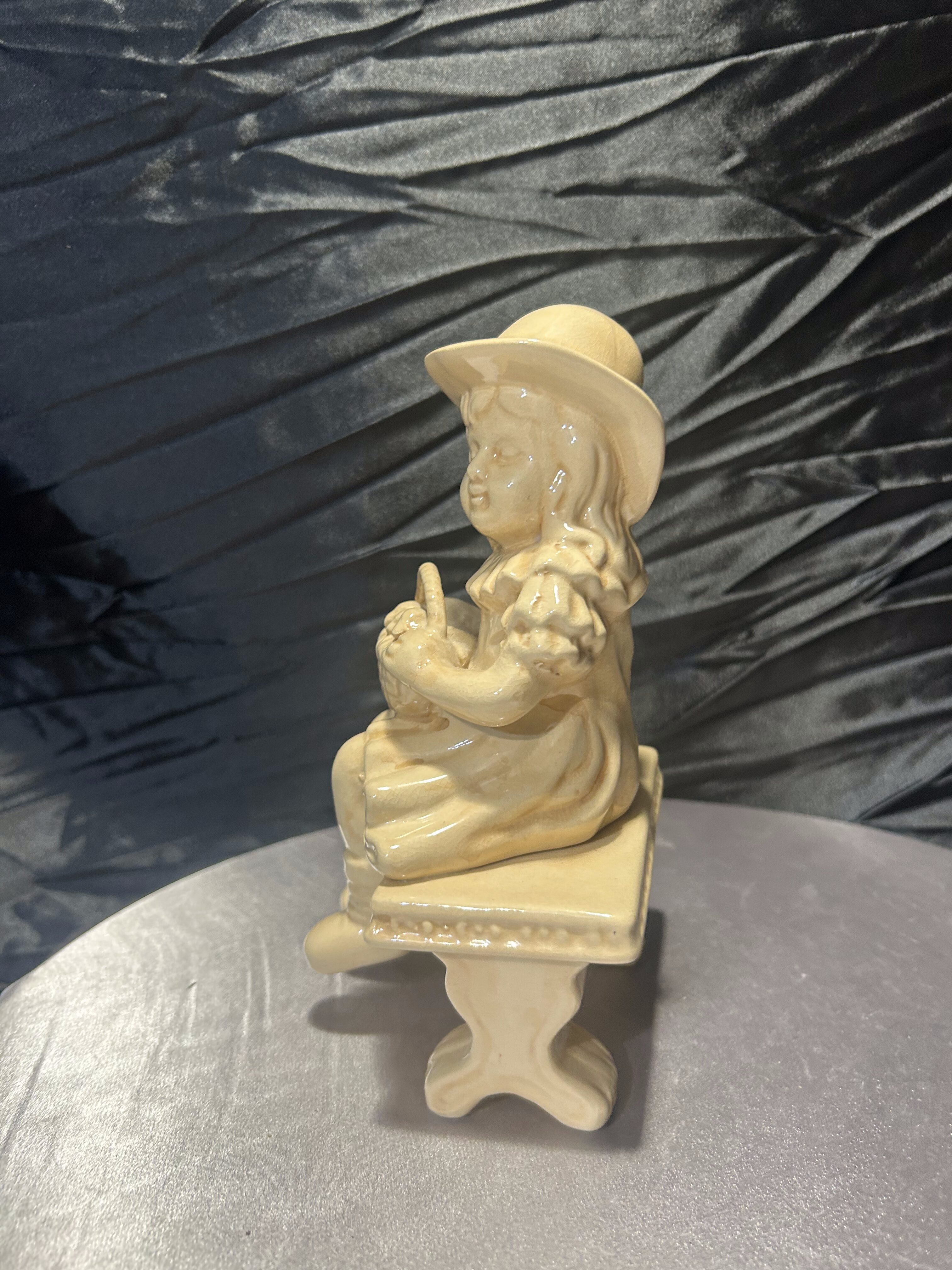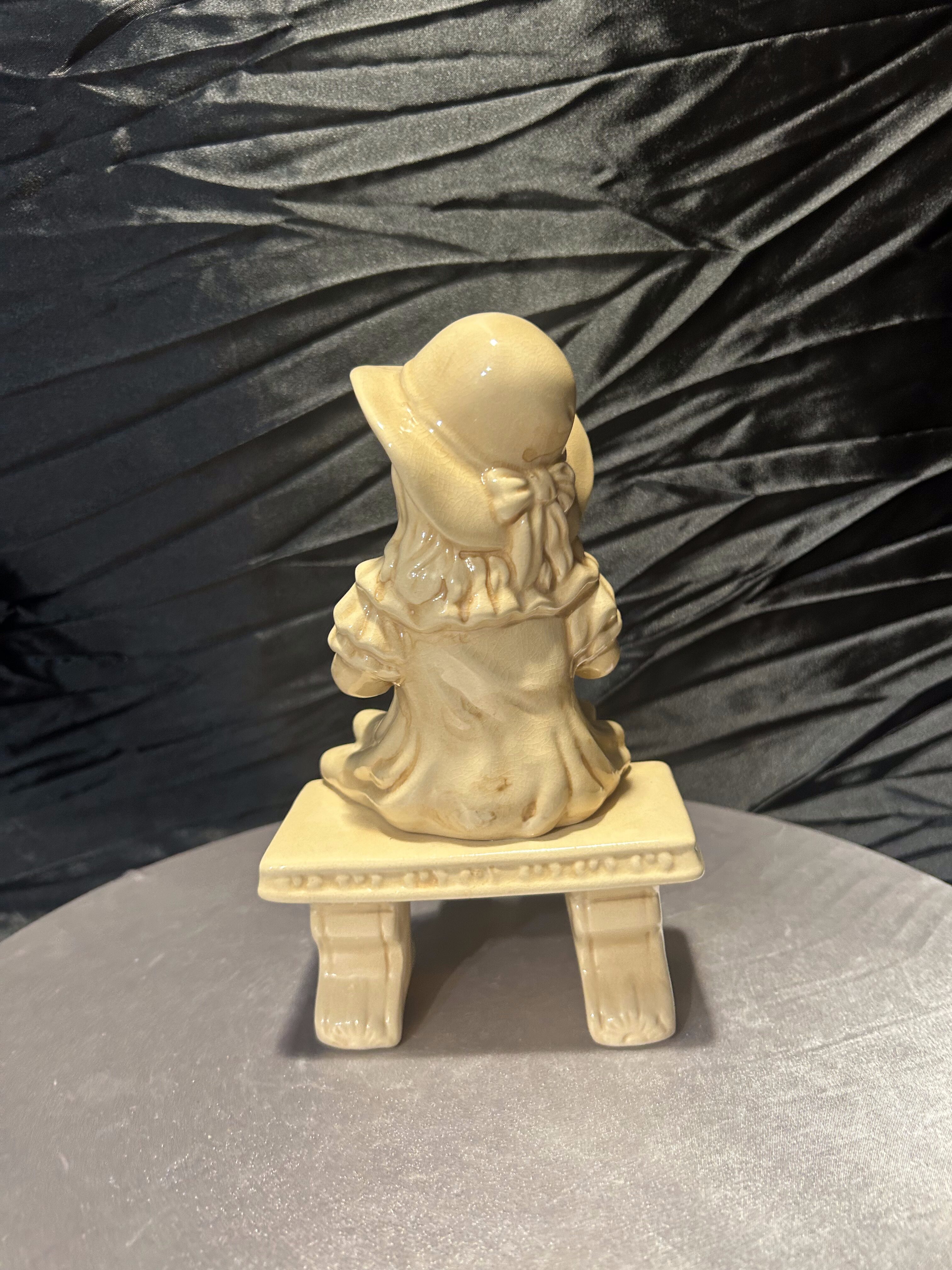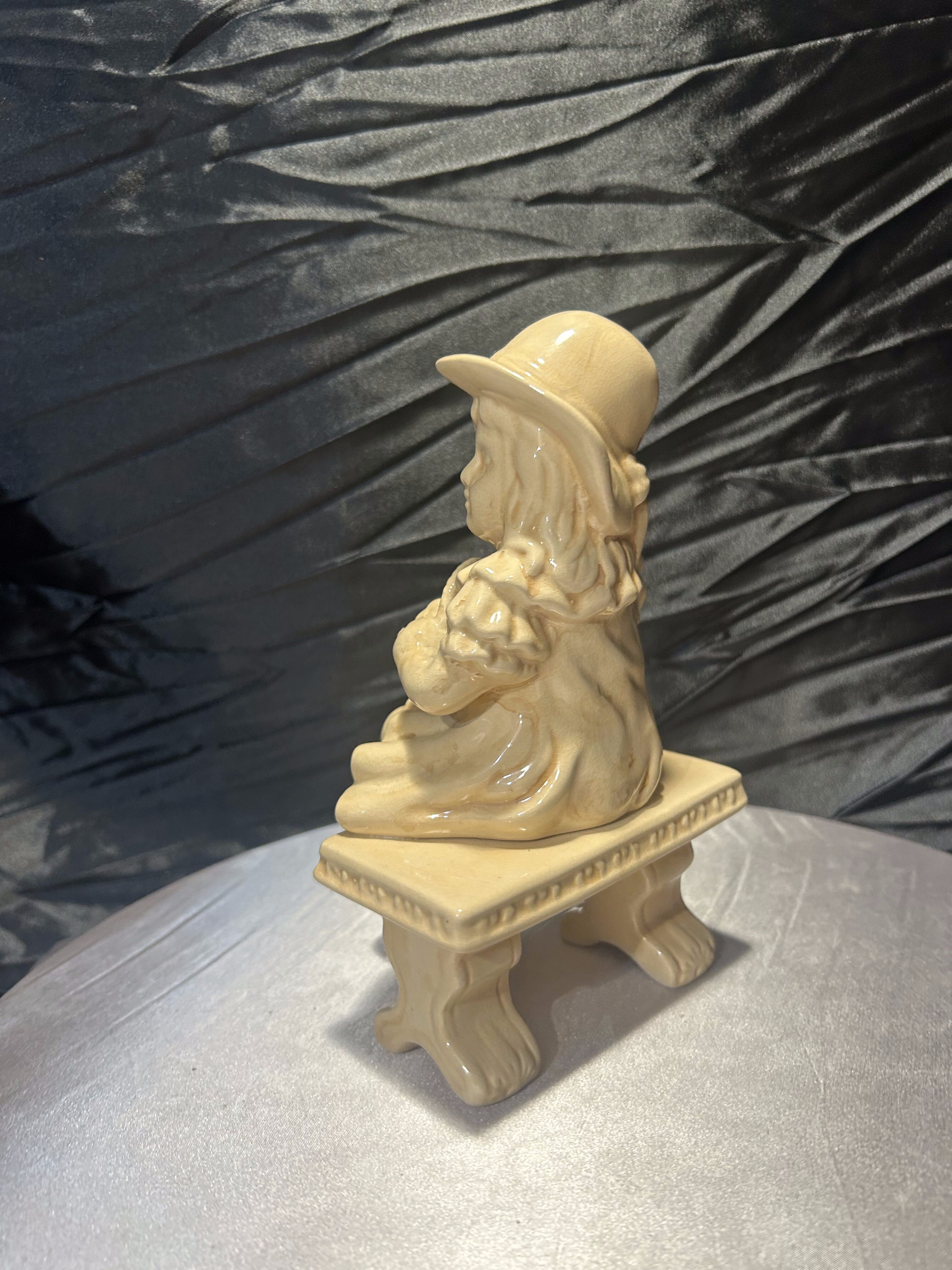 Urokliwa figurka ceramiczna przedstawiająca dziewczynkę siedzącą na ławce, trzymającą na kolanach koszyczek, w którym znajdują się małe kaczuszki. Delikatne detale, od kapelusza po starannie odwzorowaną fakturę ubioru i koszyka, podkreślają kunszt wykonania. To wyjątkowa dekoracja, która wprowadzi do wnętrza ciepły, sielski klimat i subtelny urok dawnego rzemiosła.