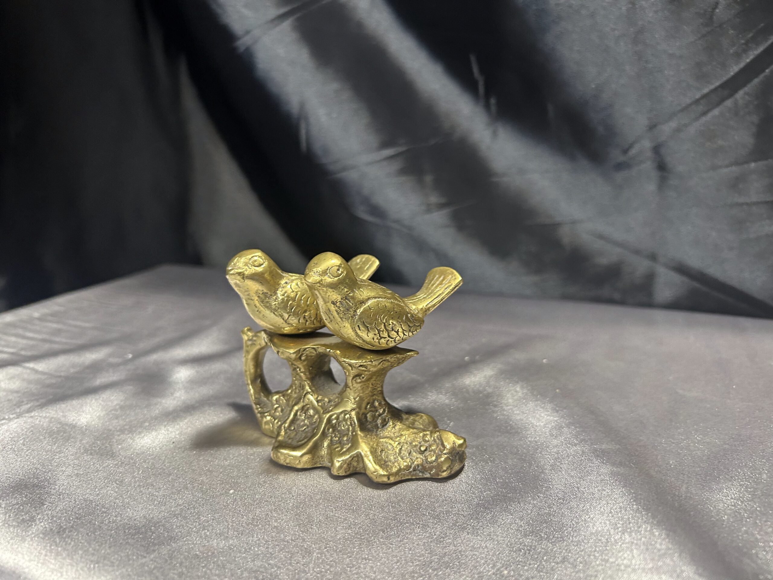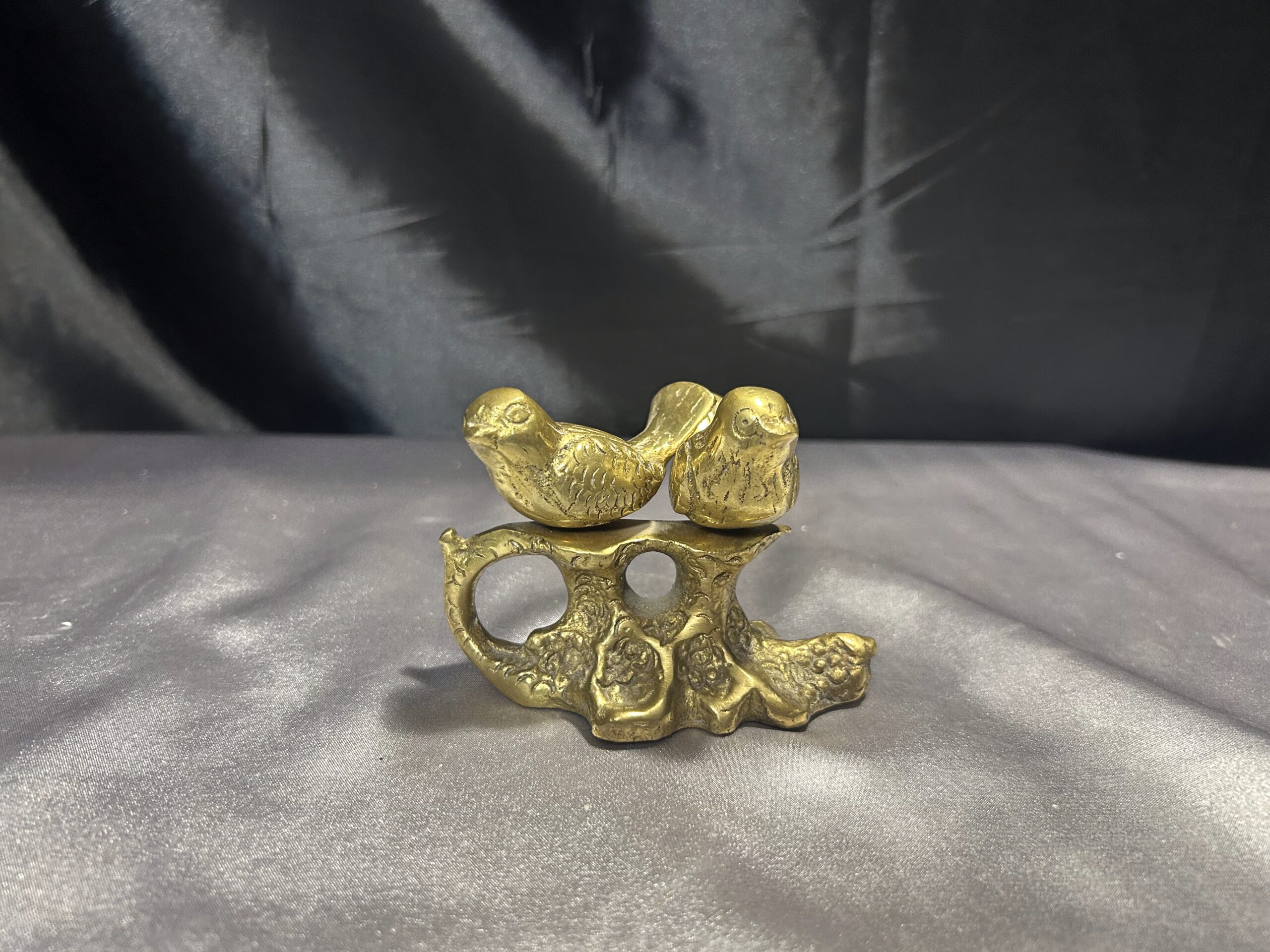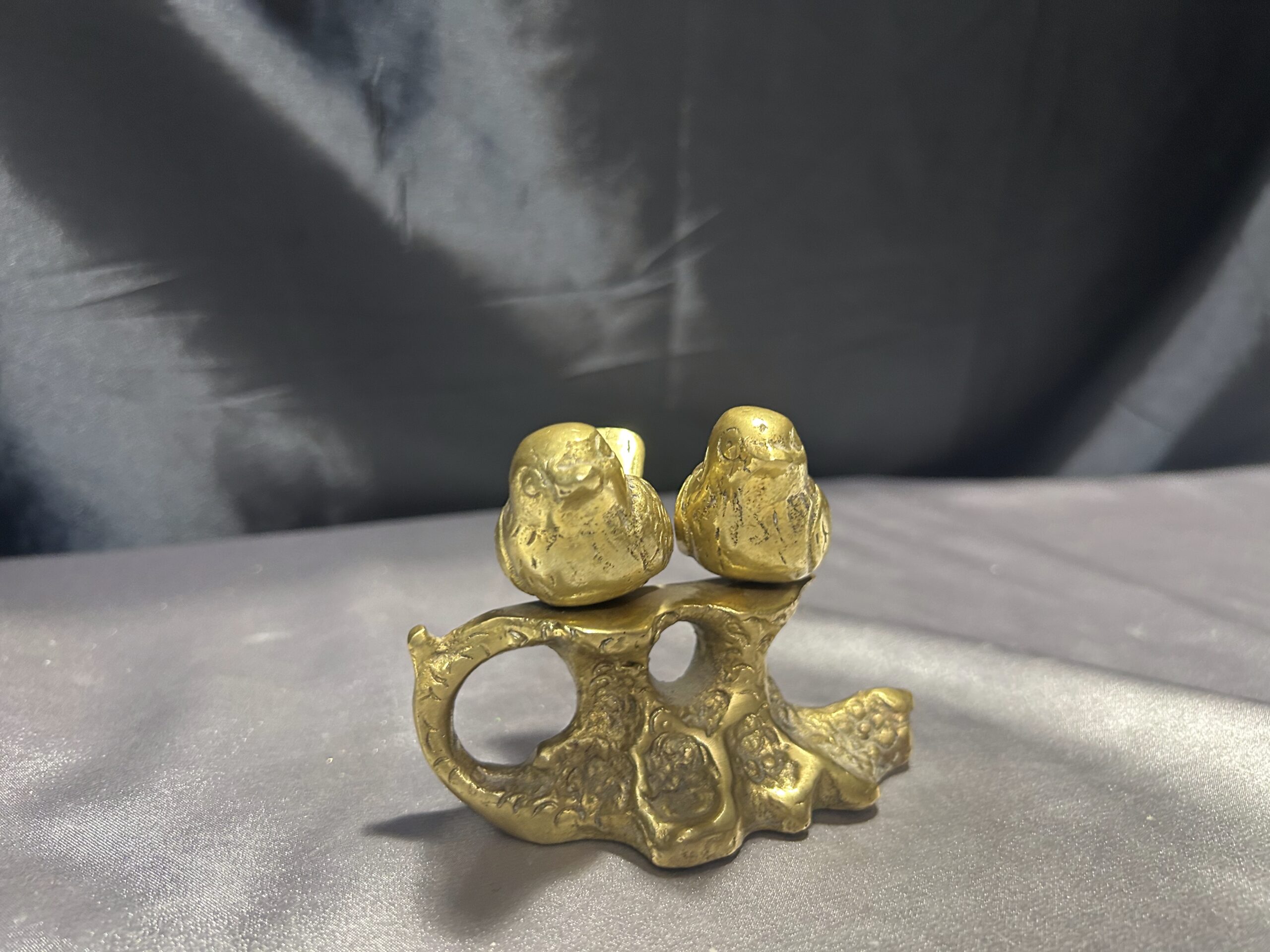 Figurka Dwóch Ptaków na Patyku z Mosiądzu – Ruchoma Dekoracja